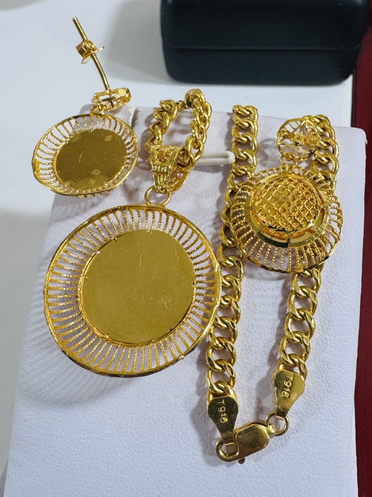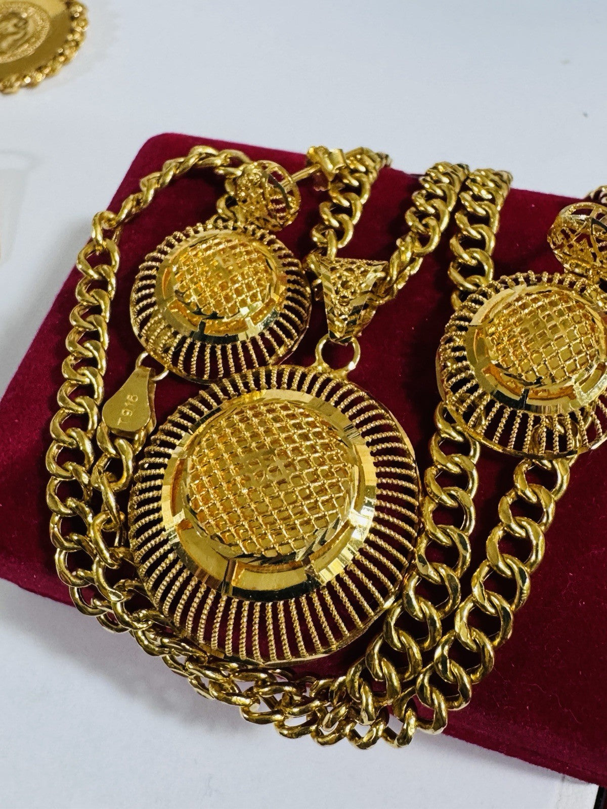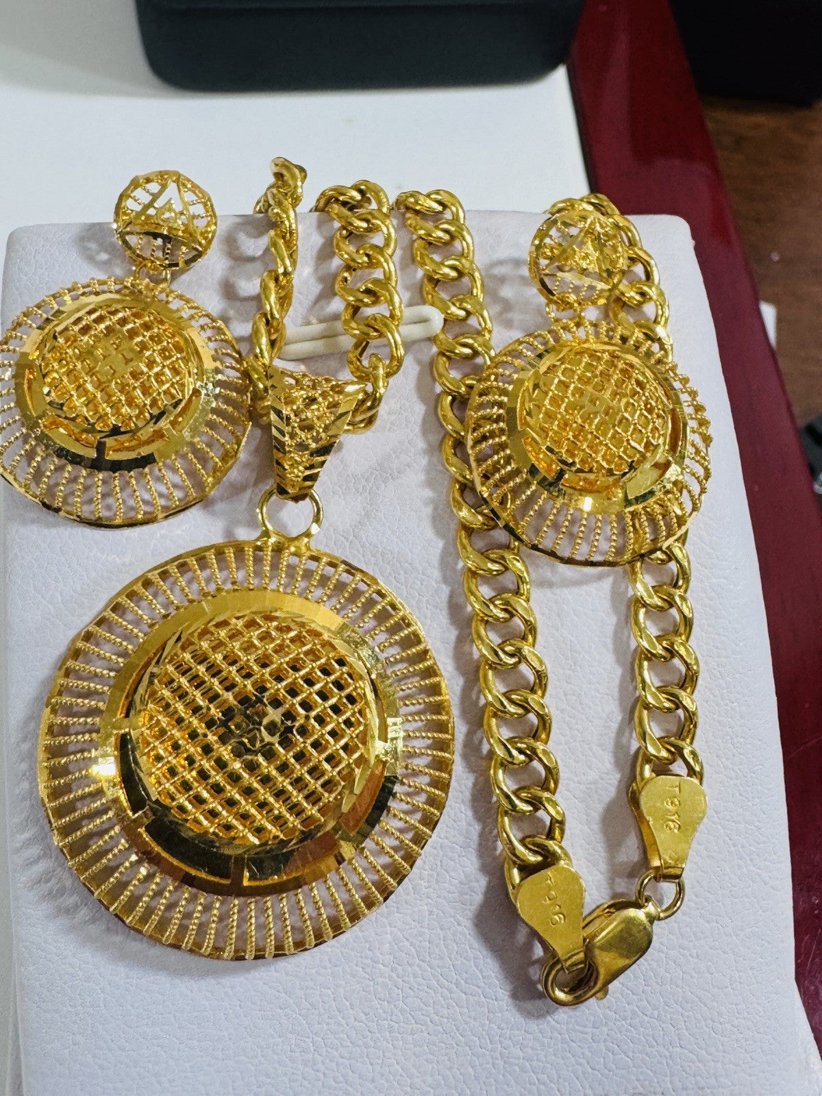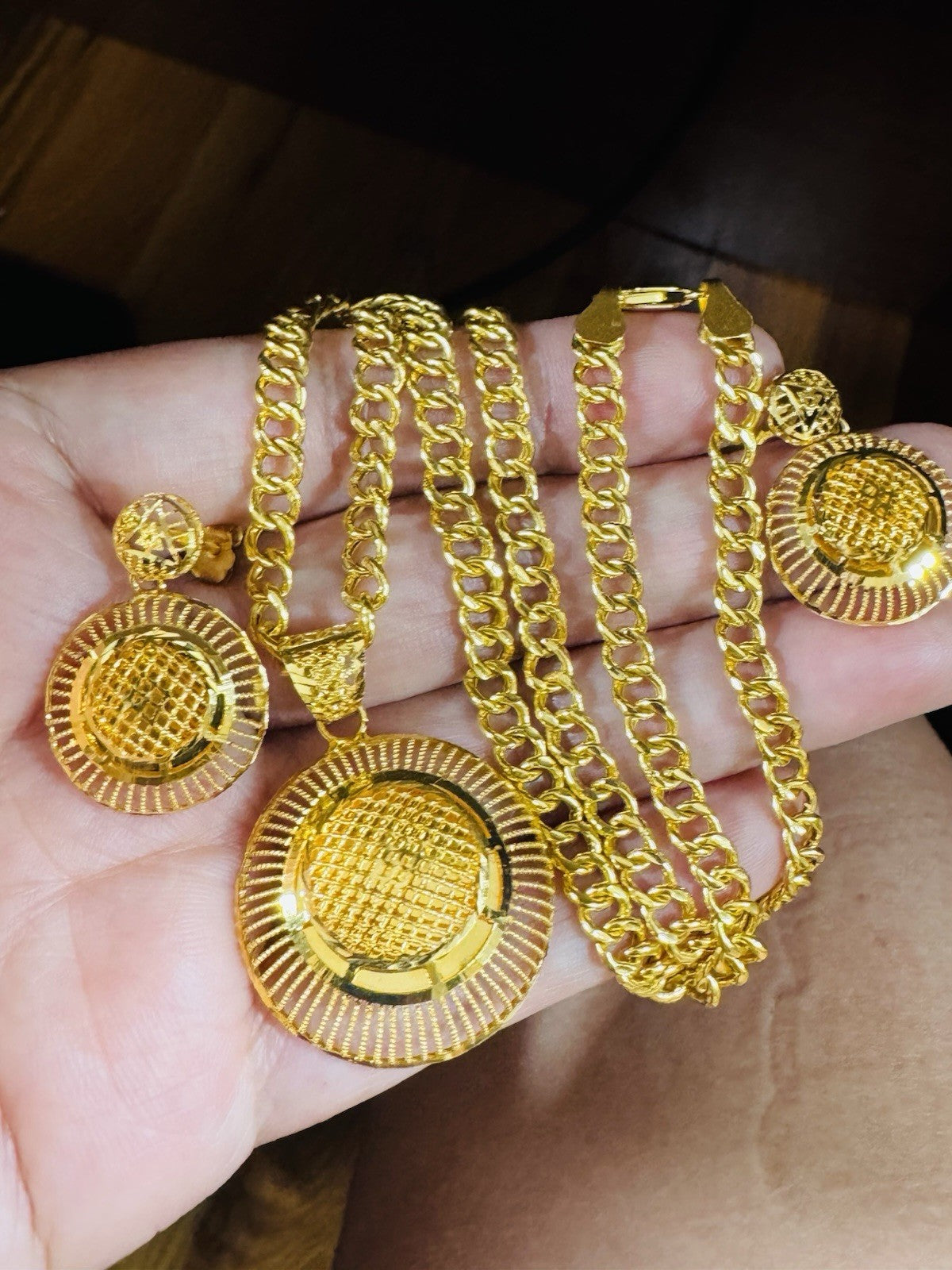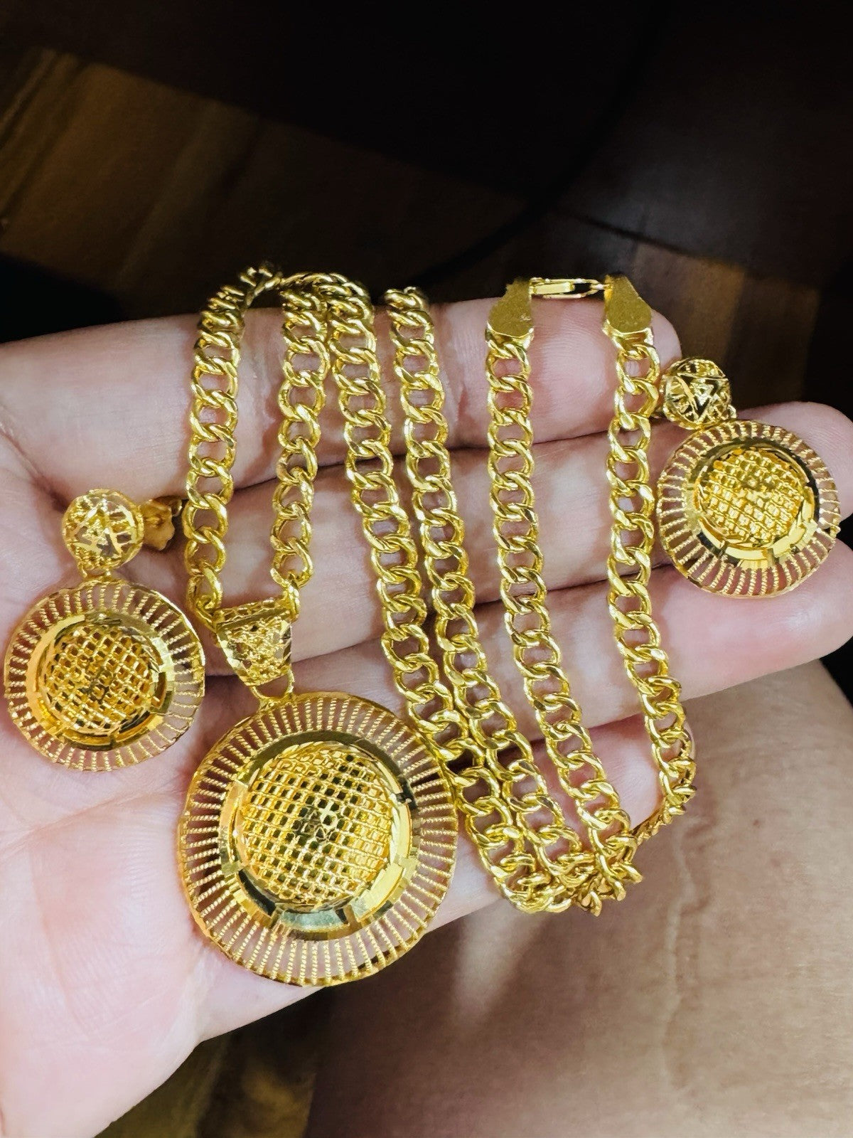 *Hello You are buying Real Beautiful Solid 22K 916 Fine Real Gold 18.5” Long Women’s size Set Earring & Necklace 21.24g 5.5mm wide chain