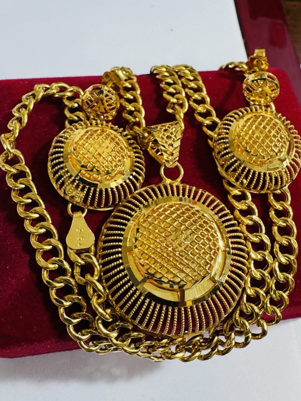 *100% 22C gold "916” equivalent, Mark stamp and tested Saudi gold, Good weight thin size due to Solid type gold inside strong enough to hold.