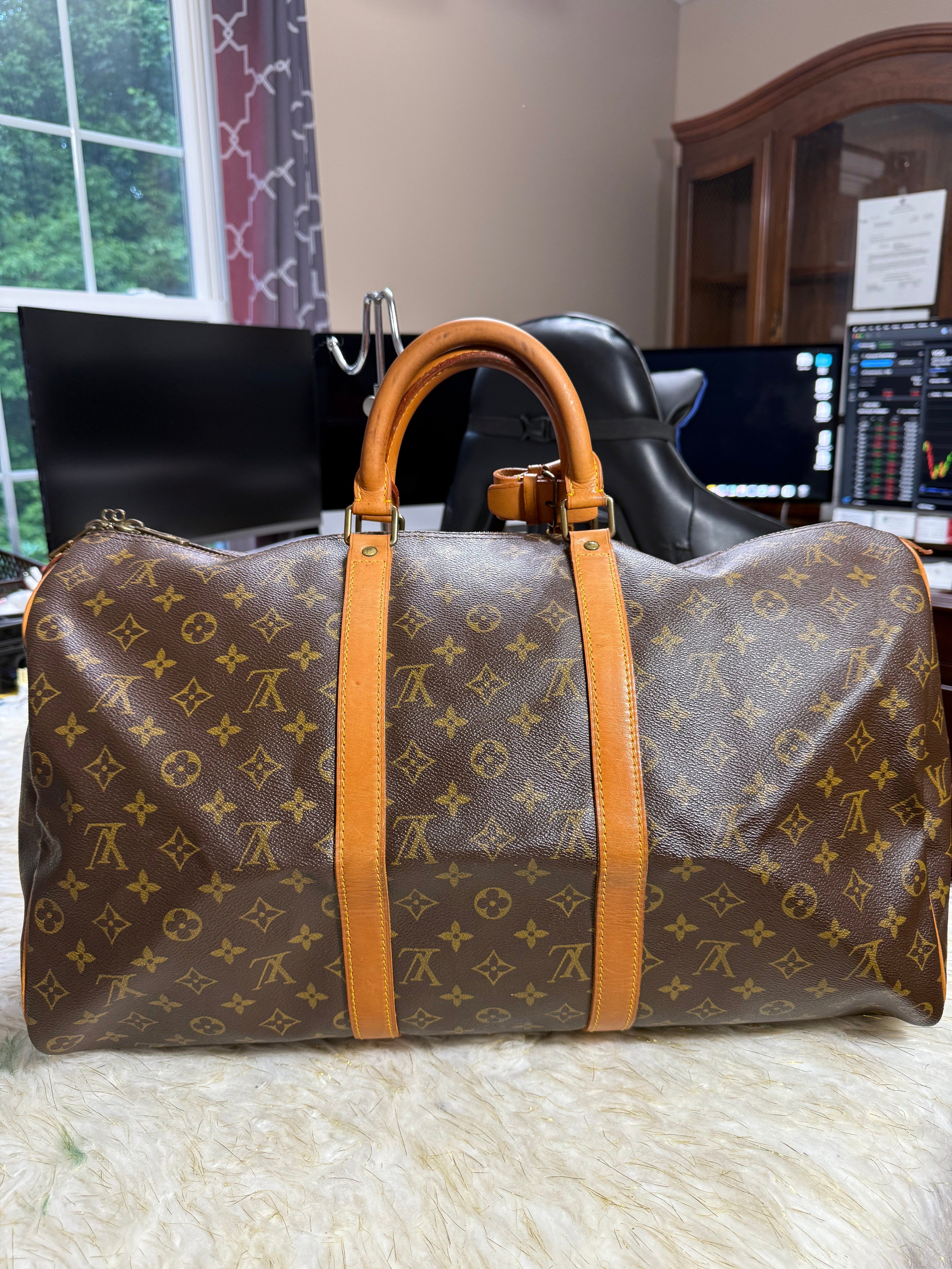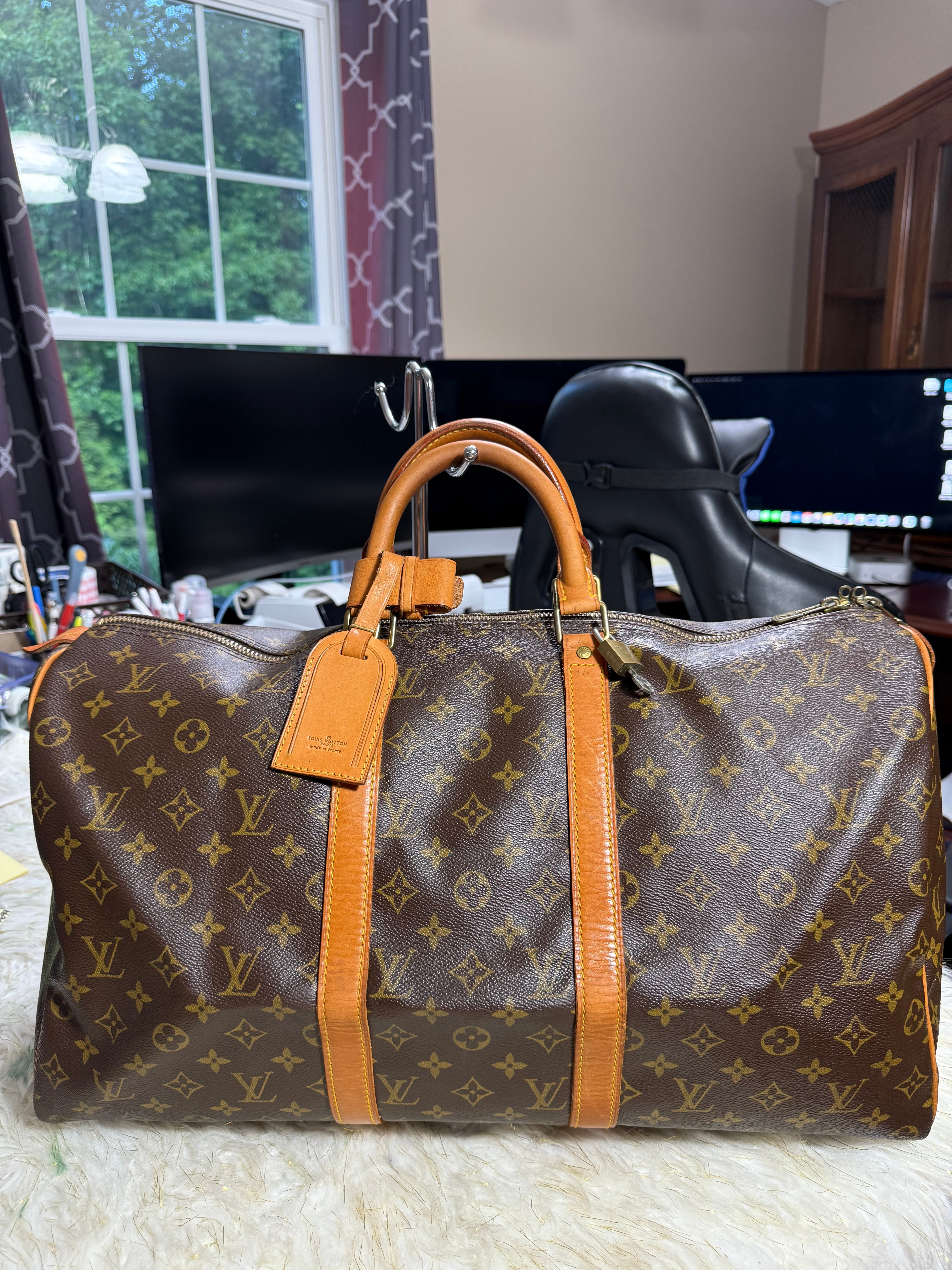 Authentic Preloved Louis Vuitton Keepall 50 travel handbag with lock n key size great weekend bag carry on carryall