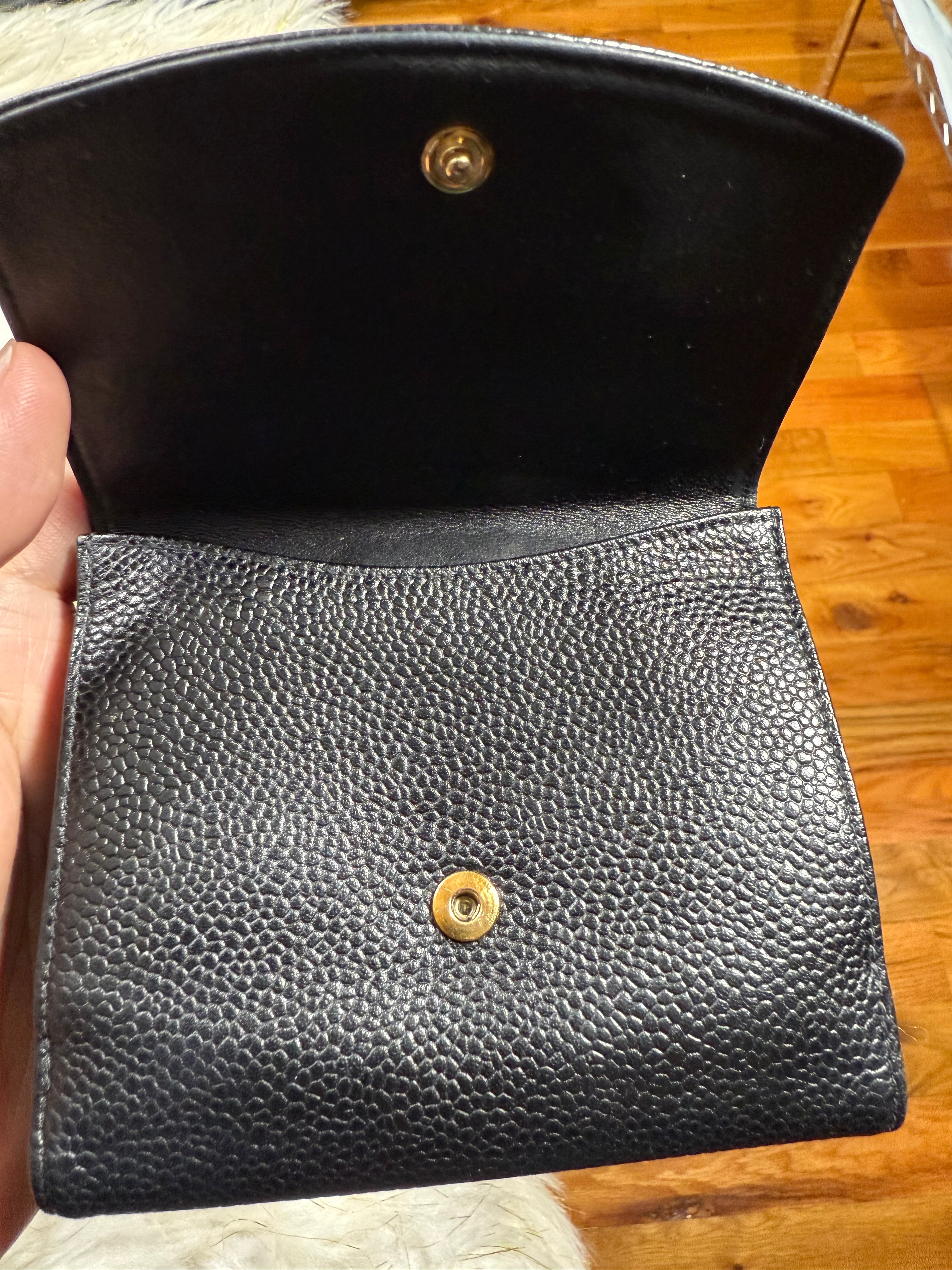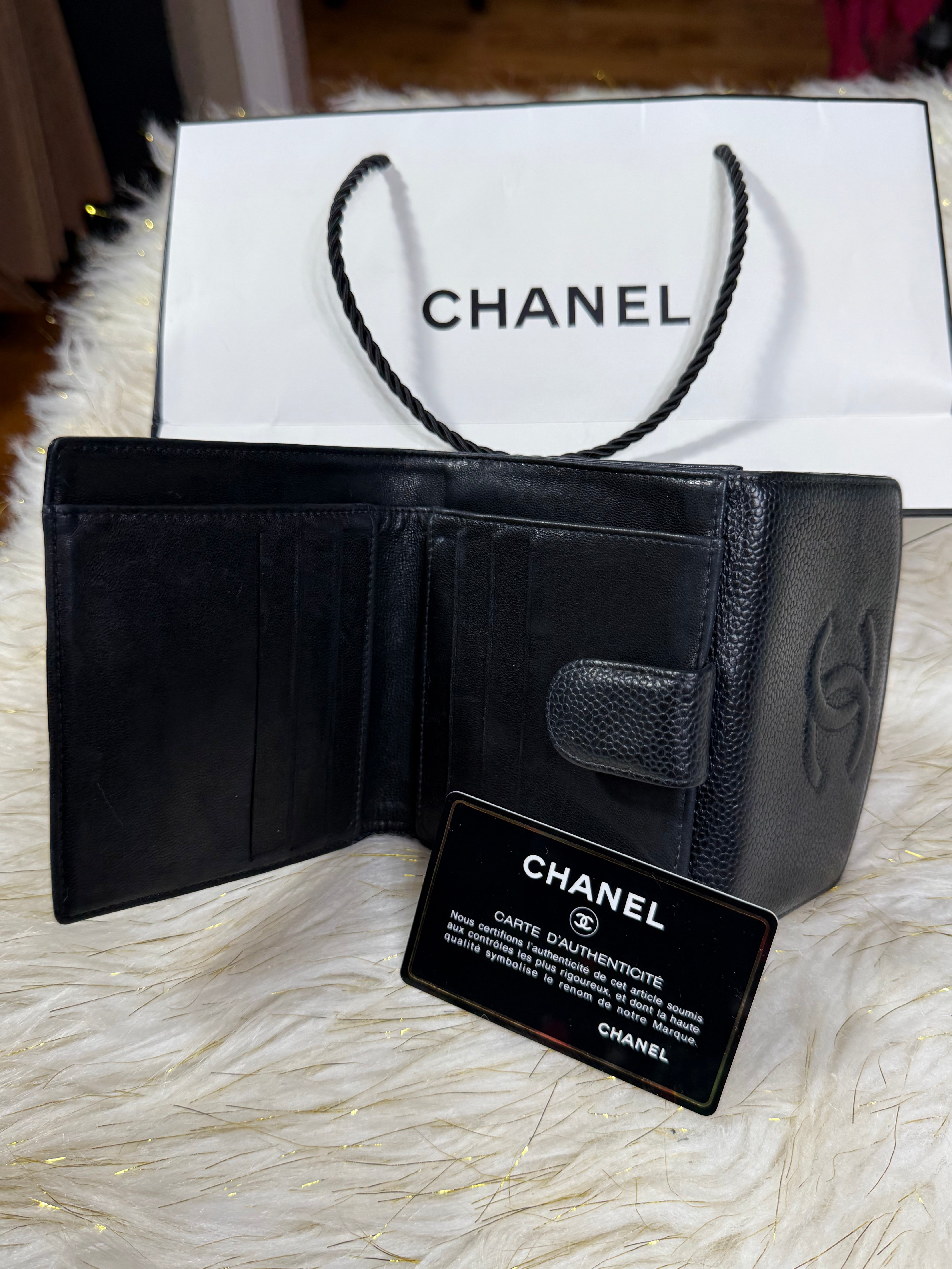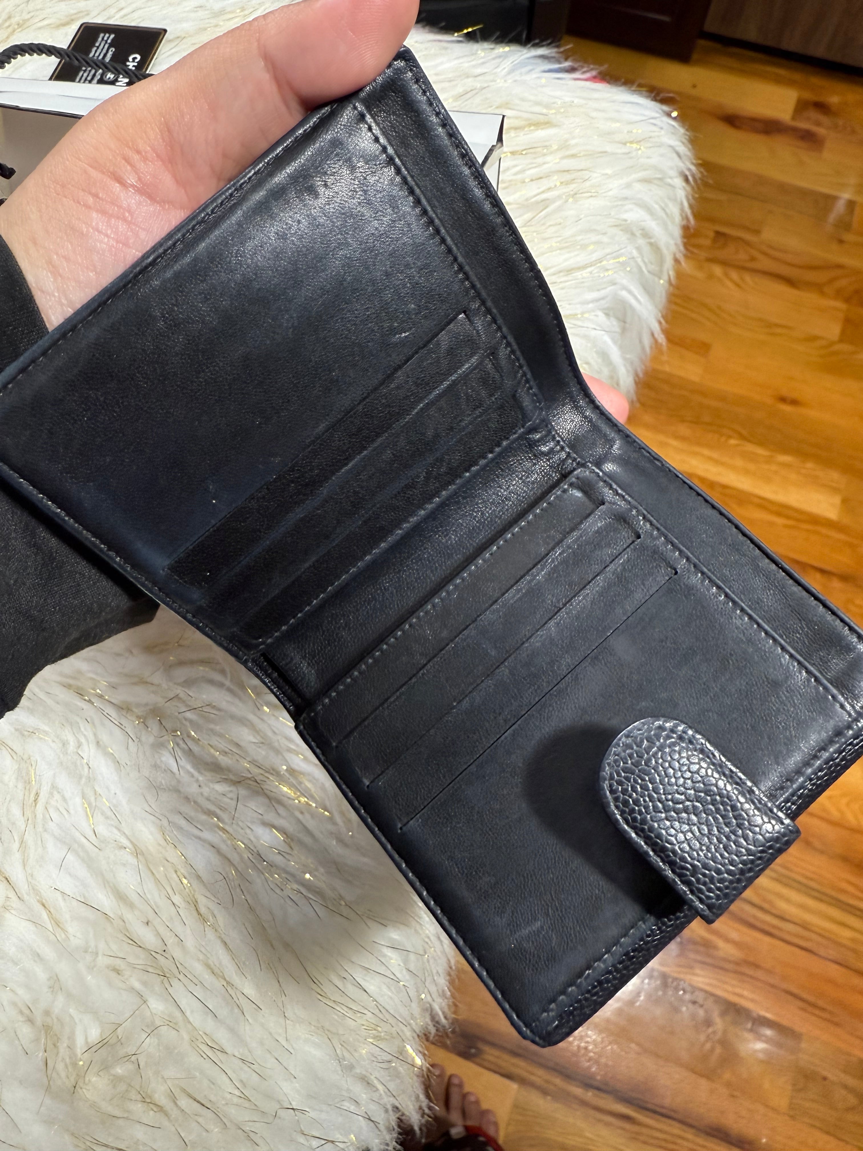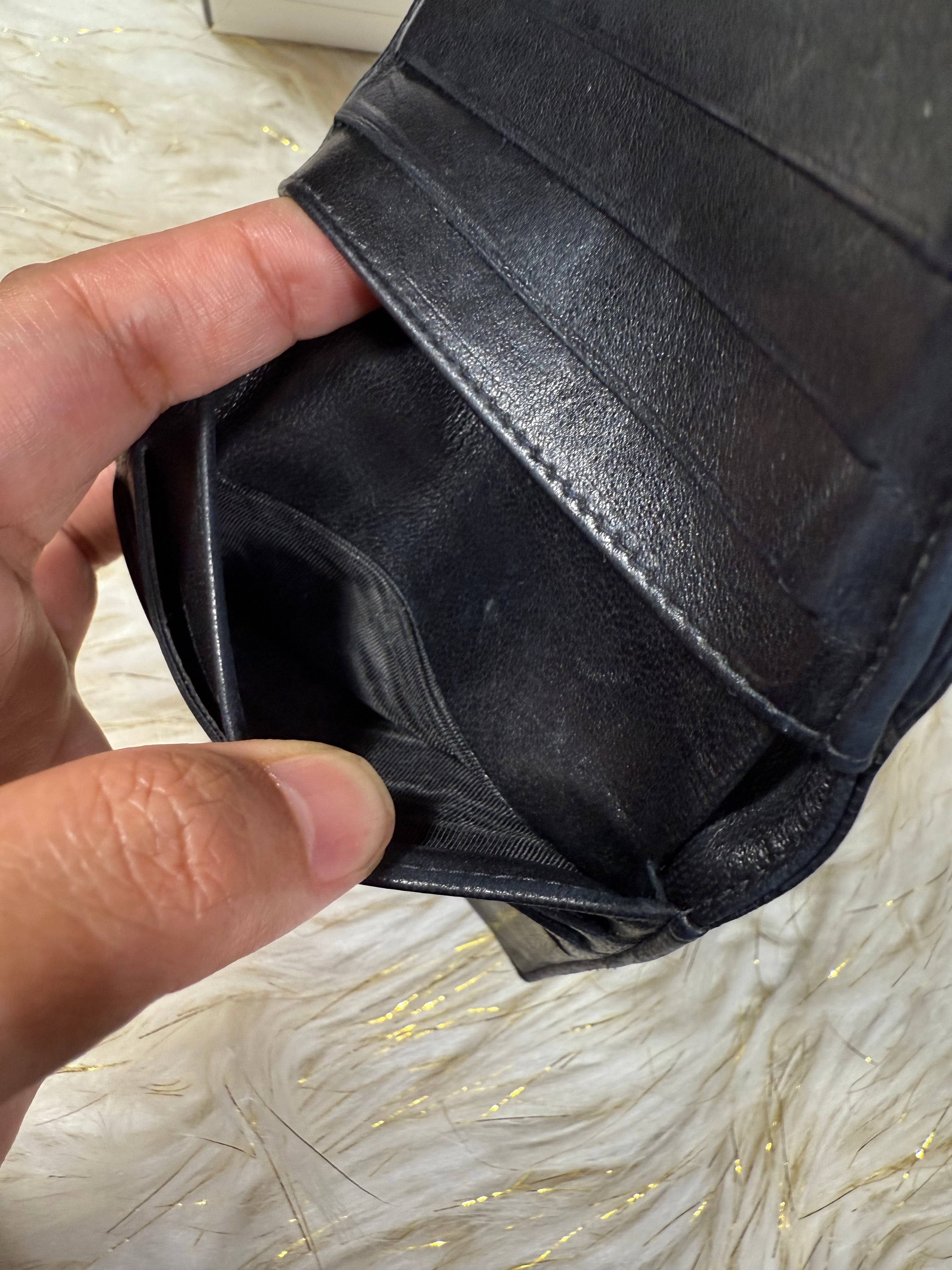 Authentic Preloved Chanel CC Black Small Bifold Calfskin wallet with Paperbag and card authenticity.
