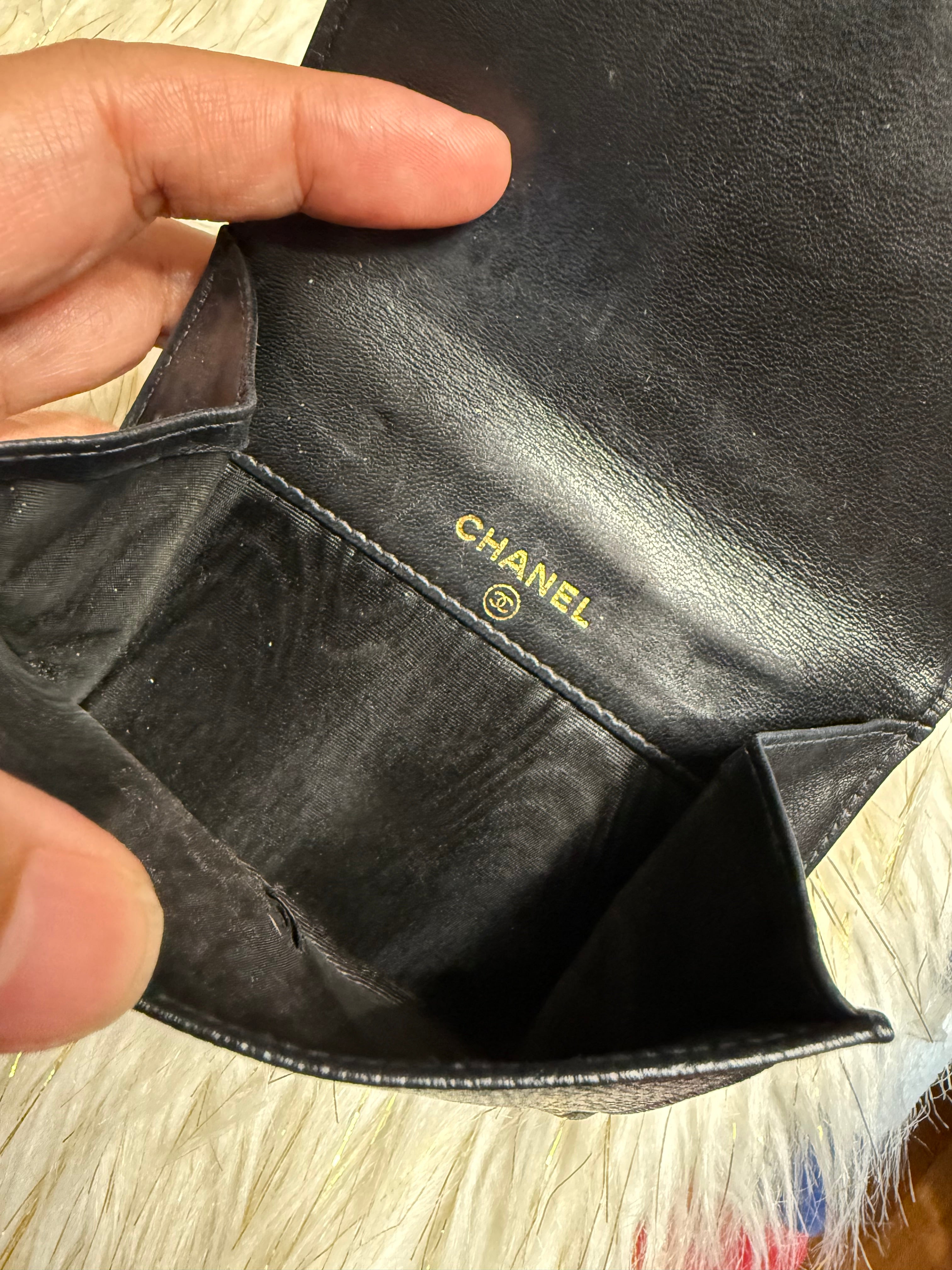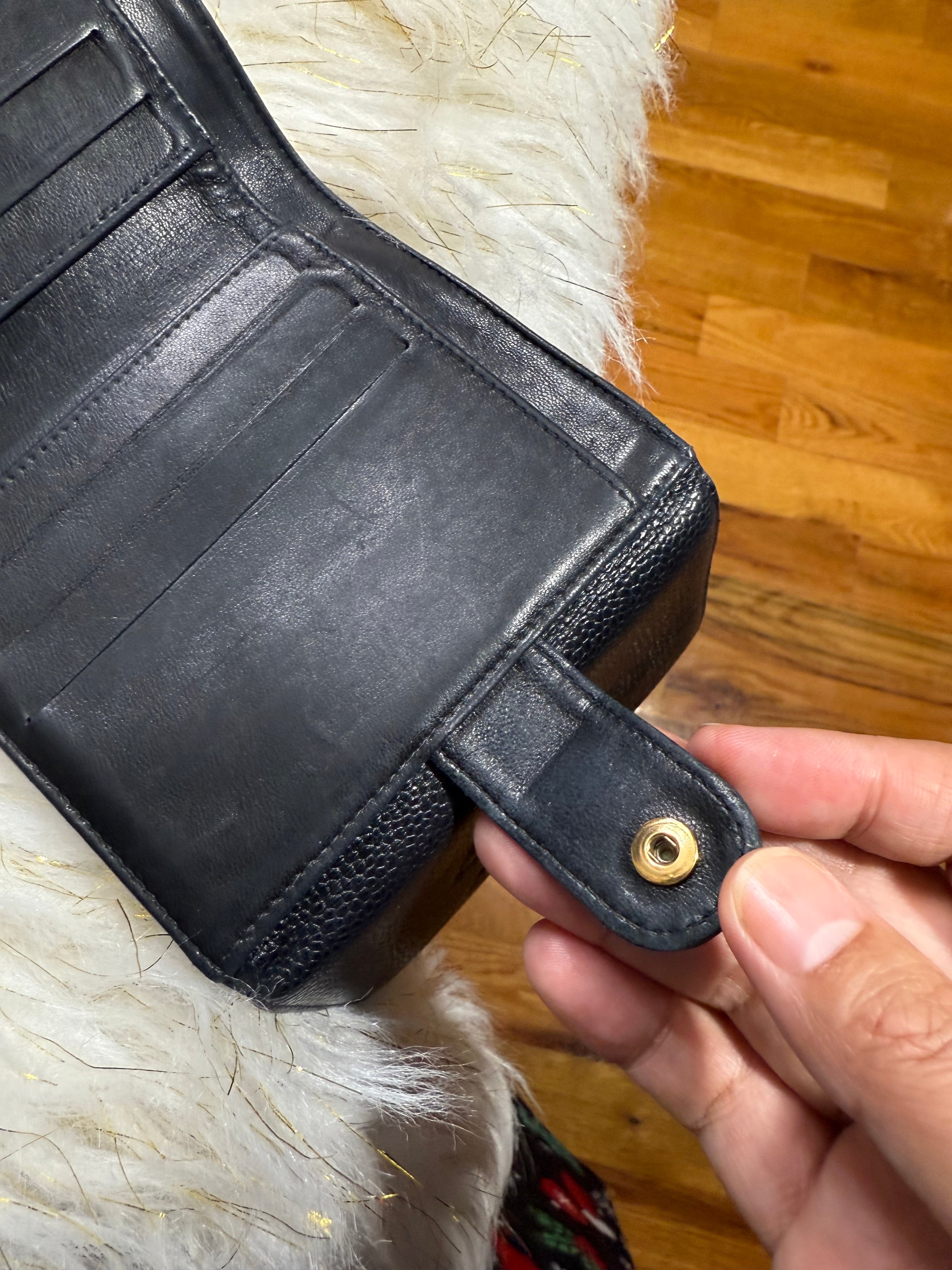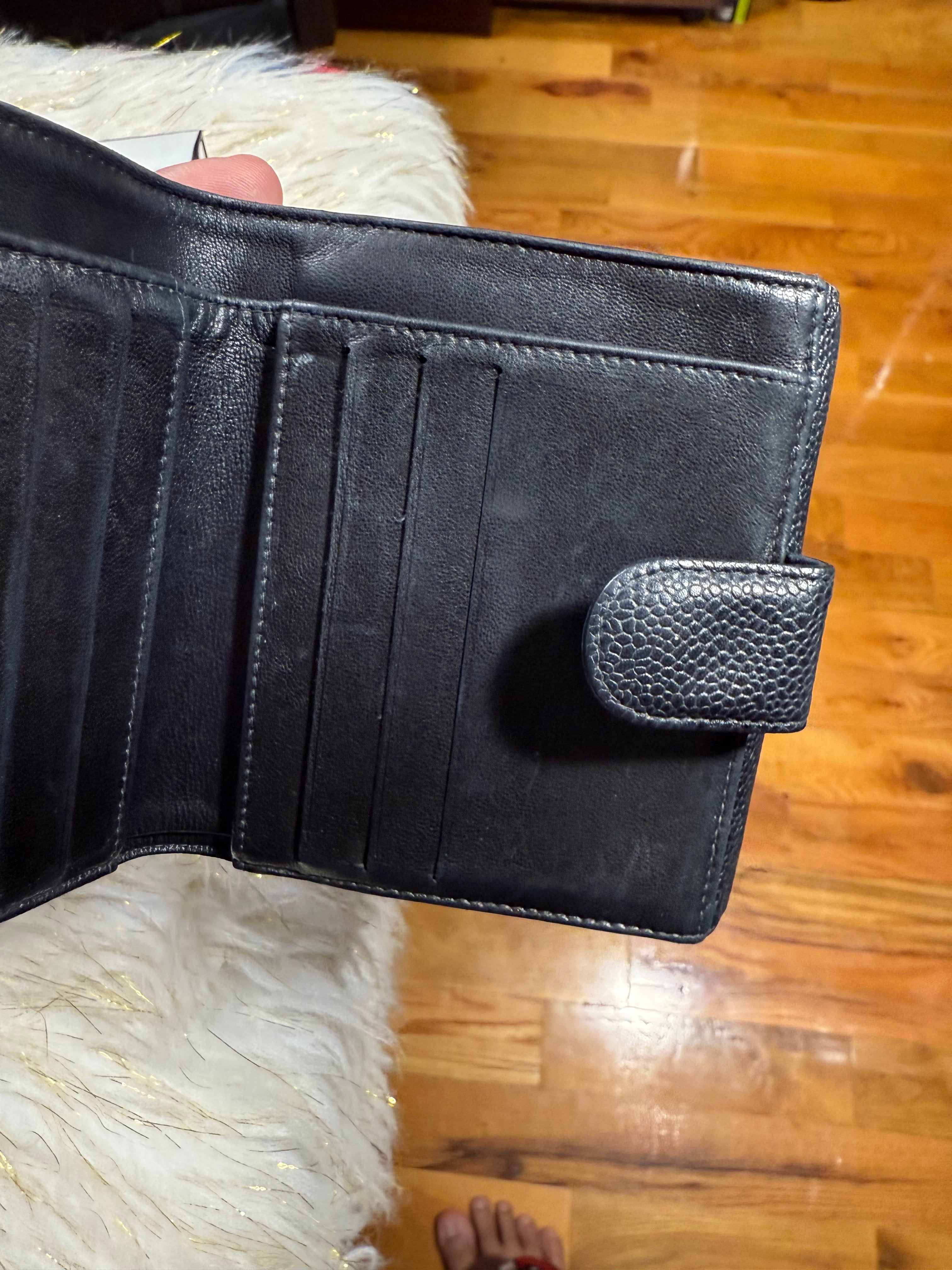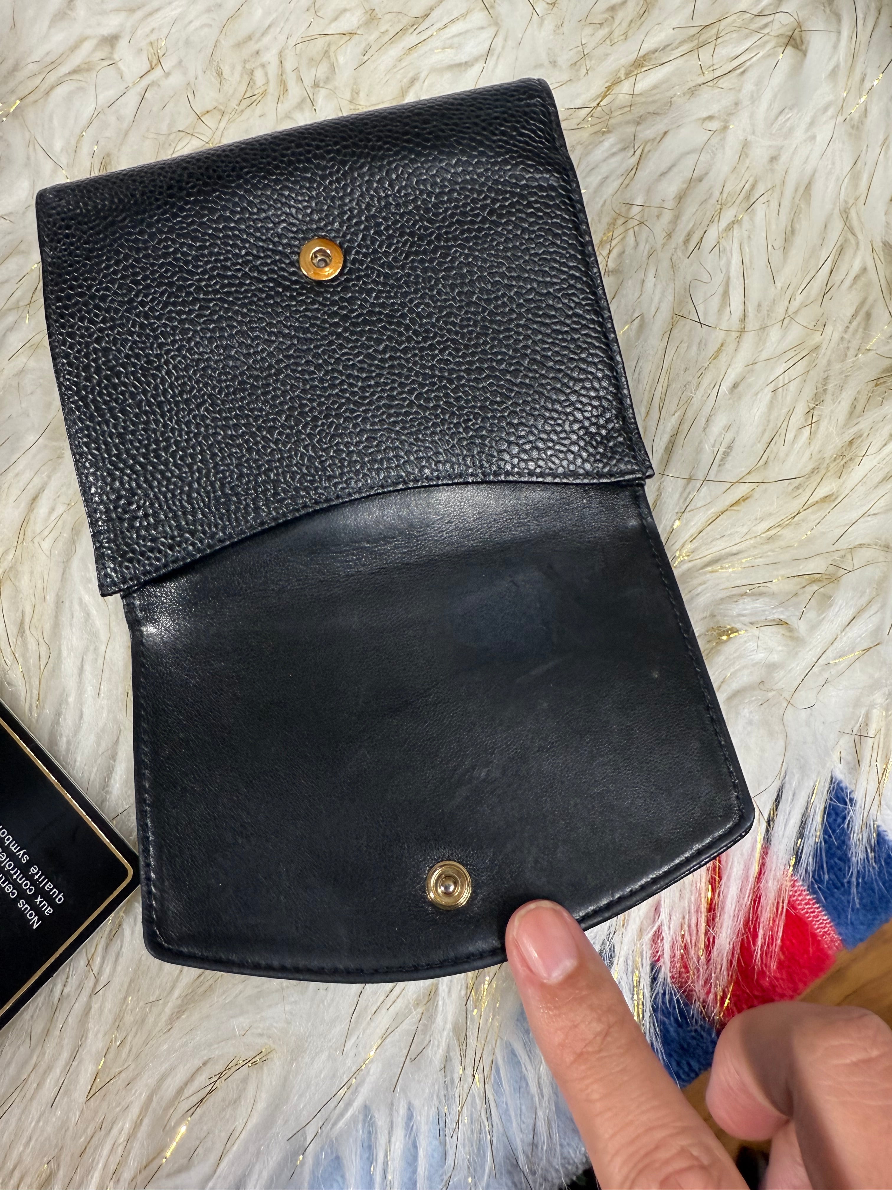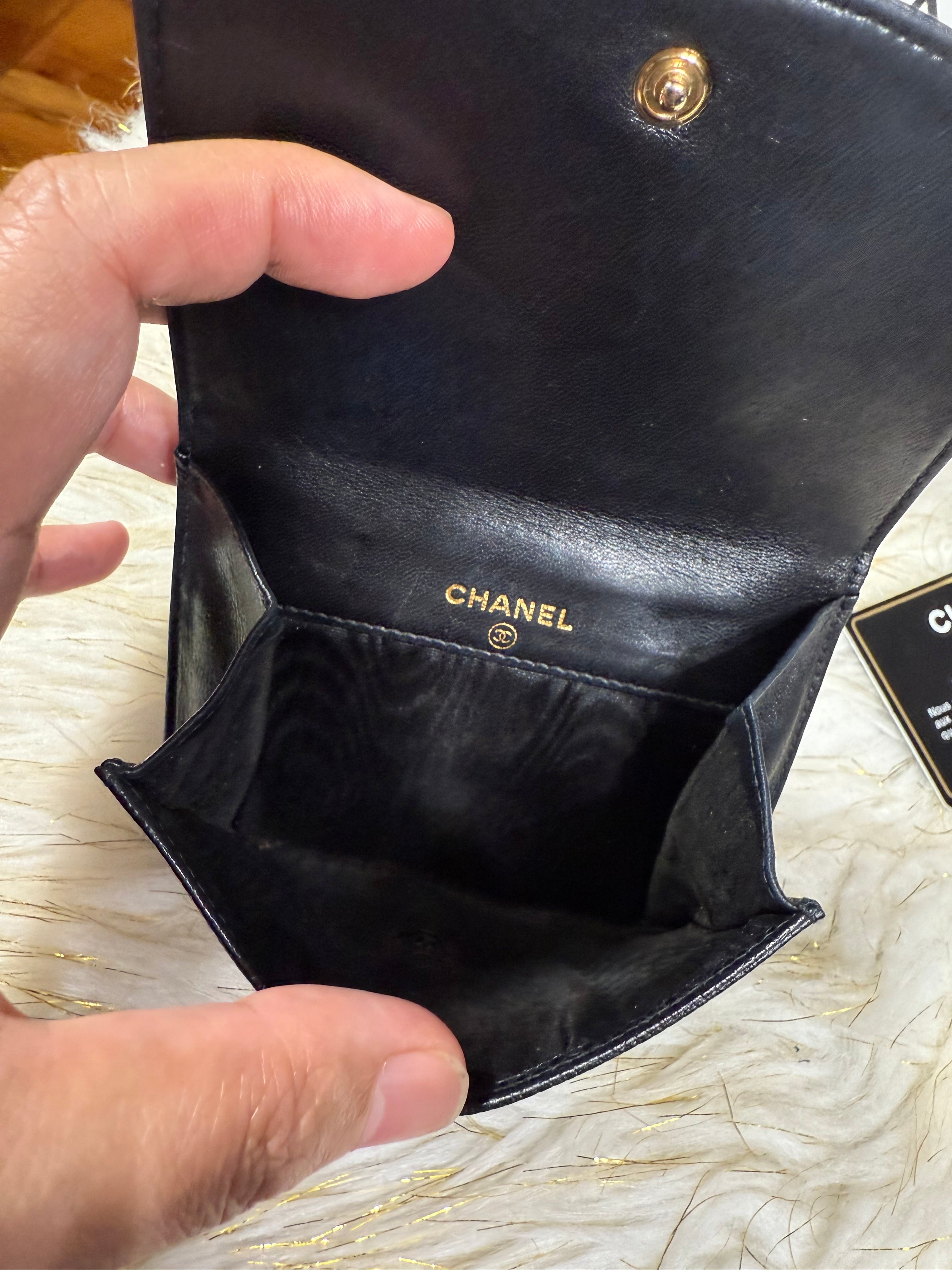 Authentic Preloved Chanel CC Black Small Bifold Calfskin wallet with Paperbag and card authenticity.