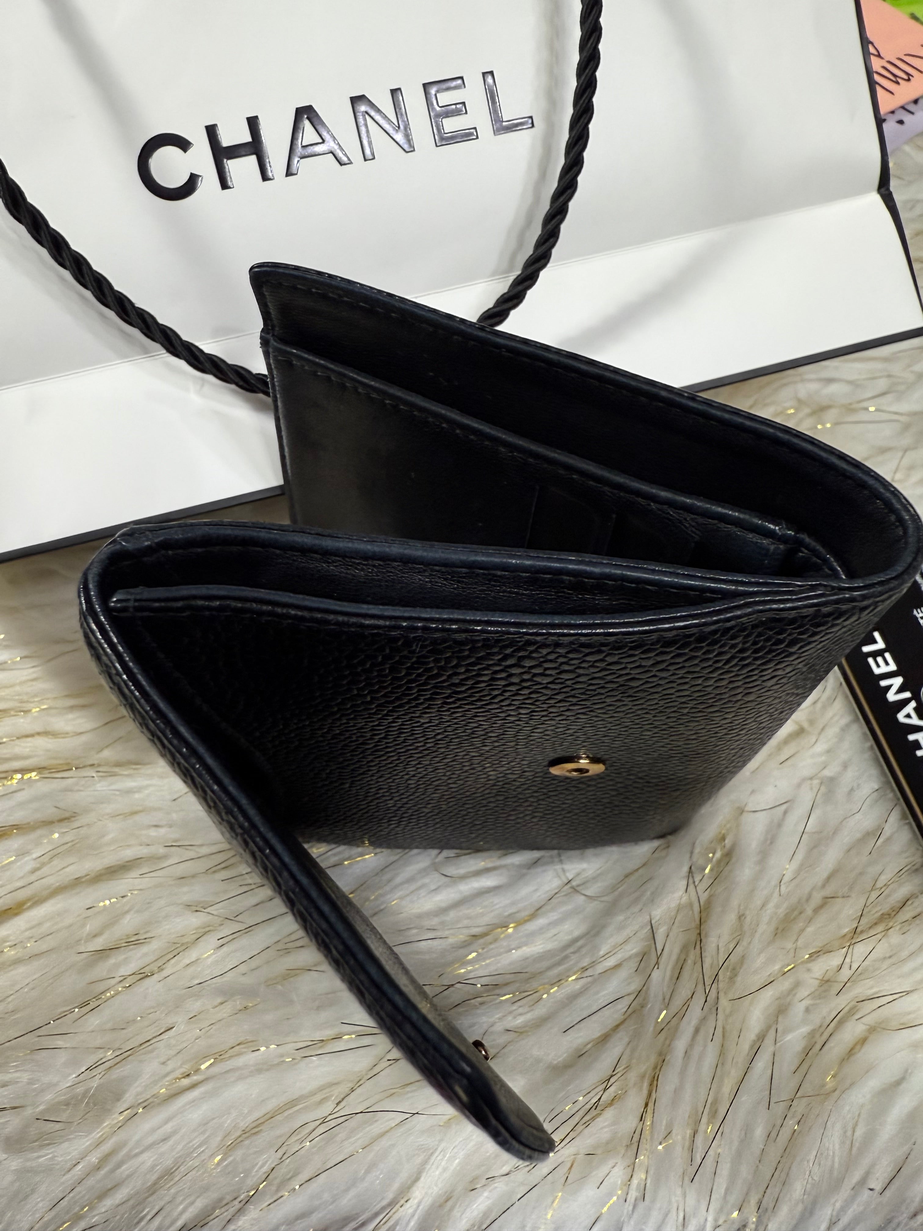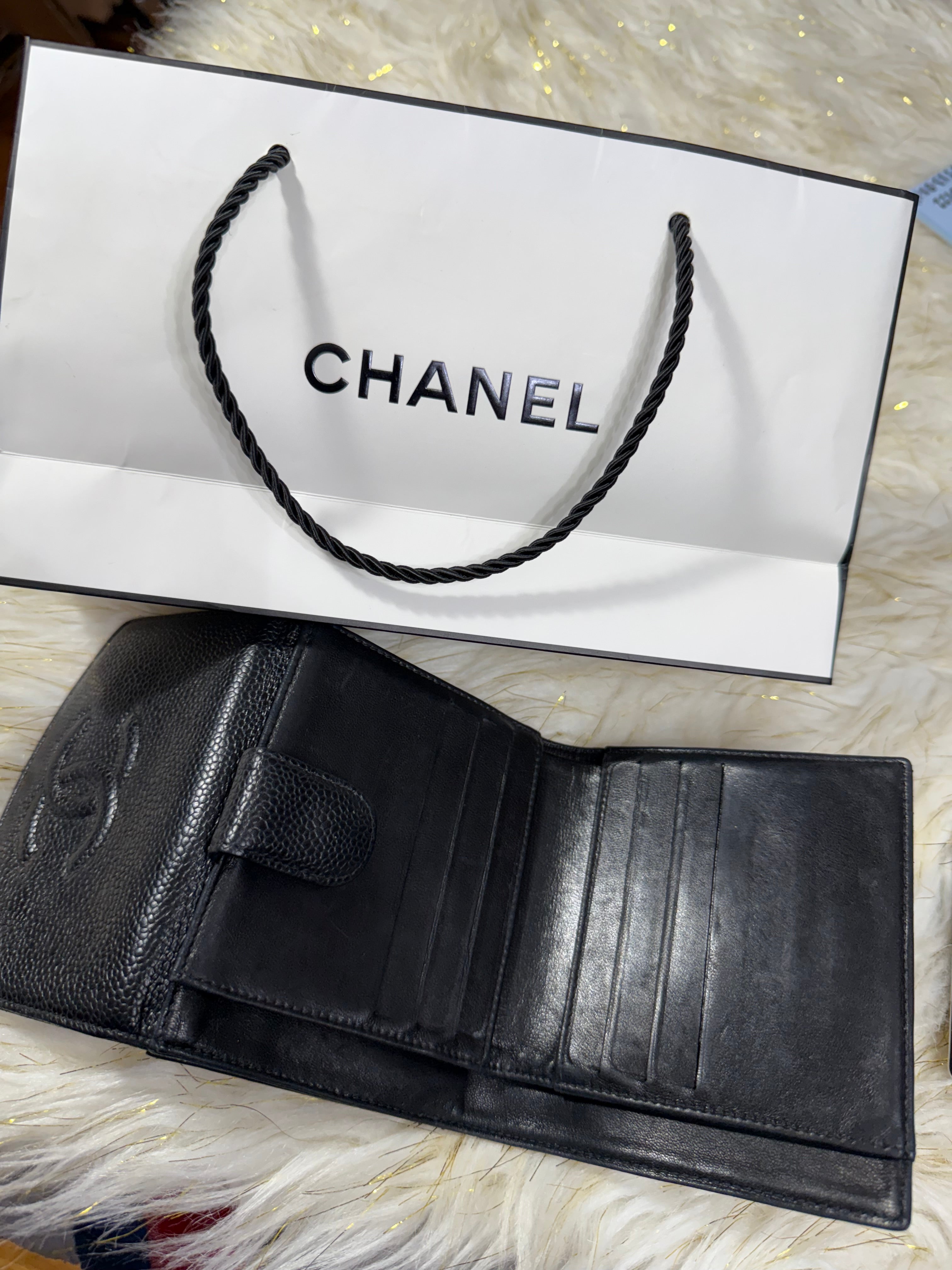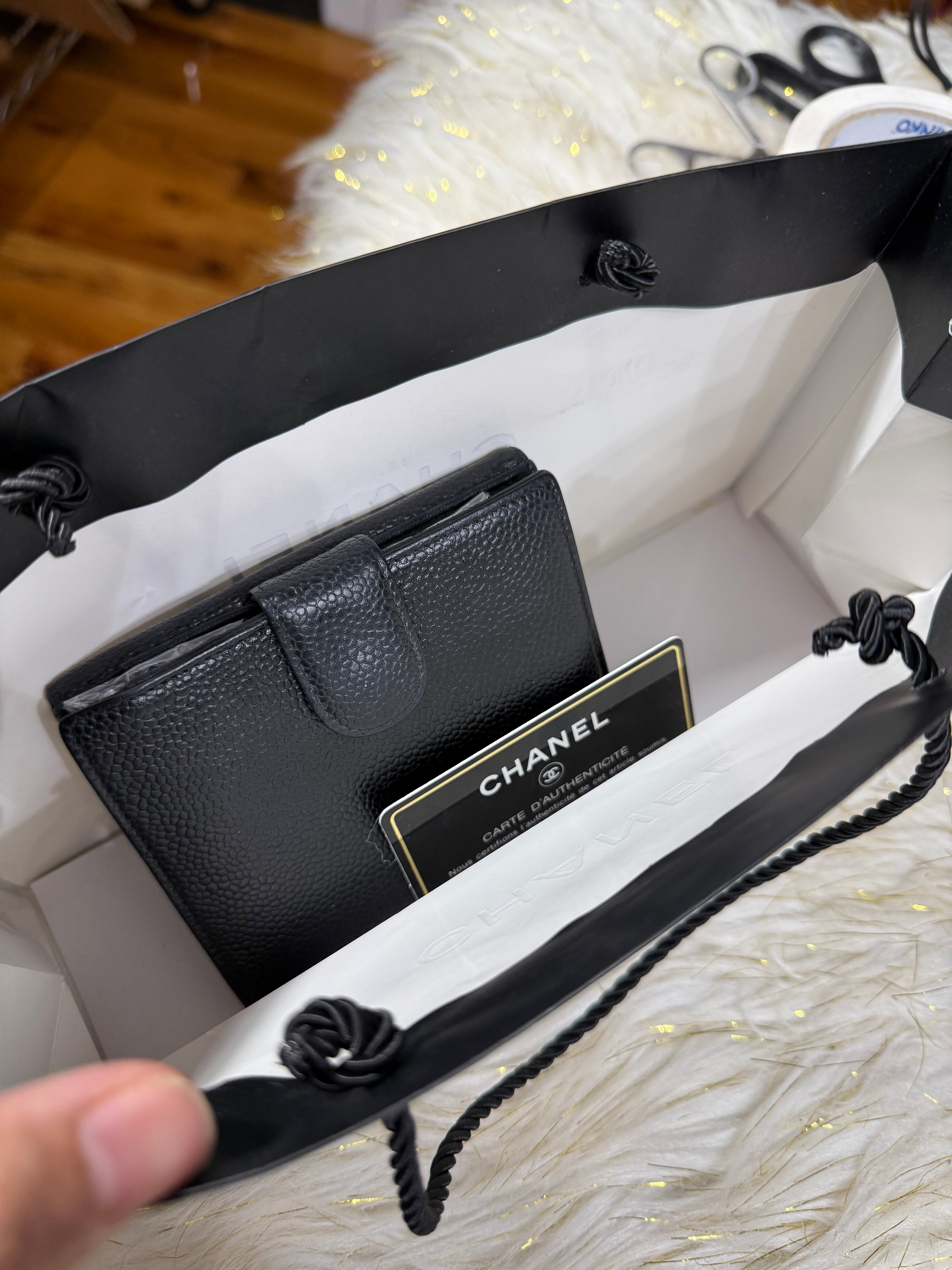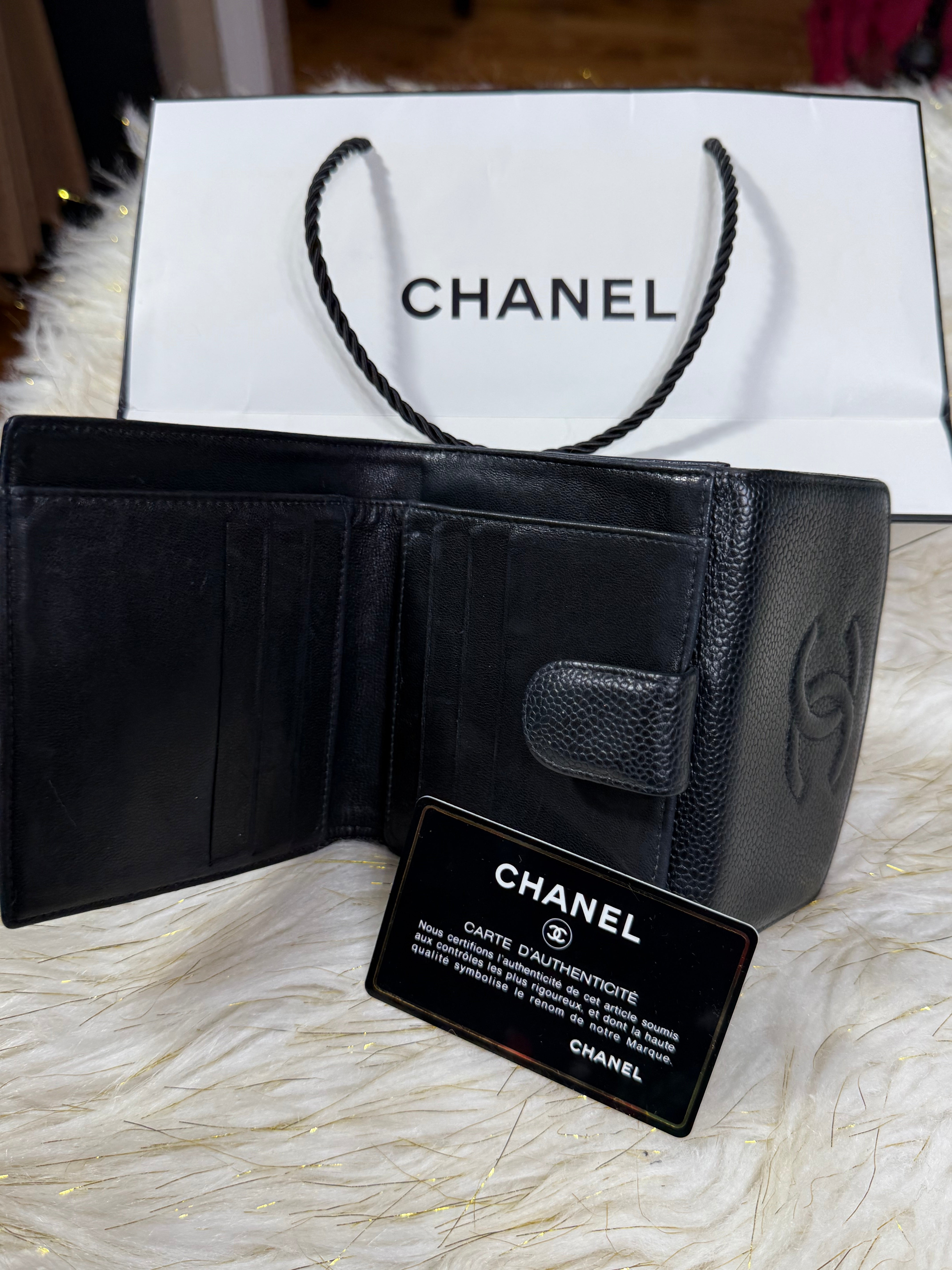 Chanel CC Black Small Bifold Calfskin wallet with Paperbag and card authenticity