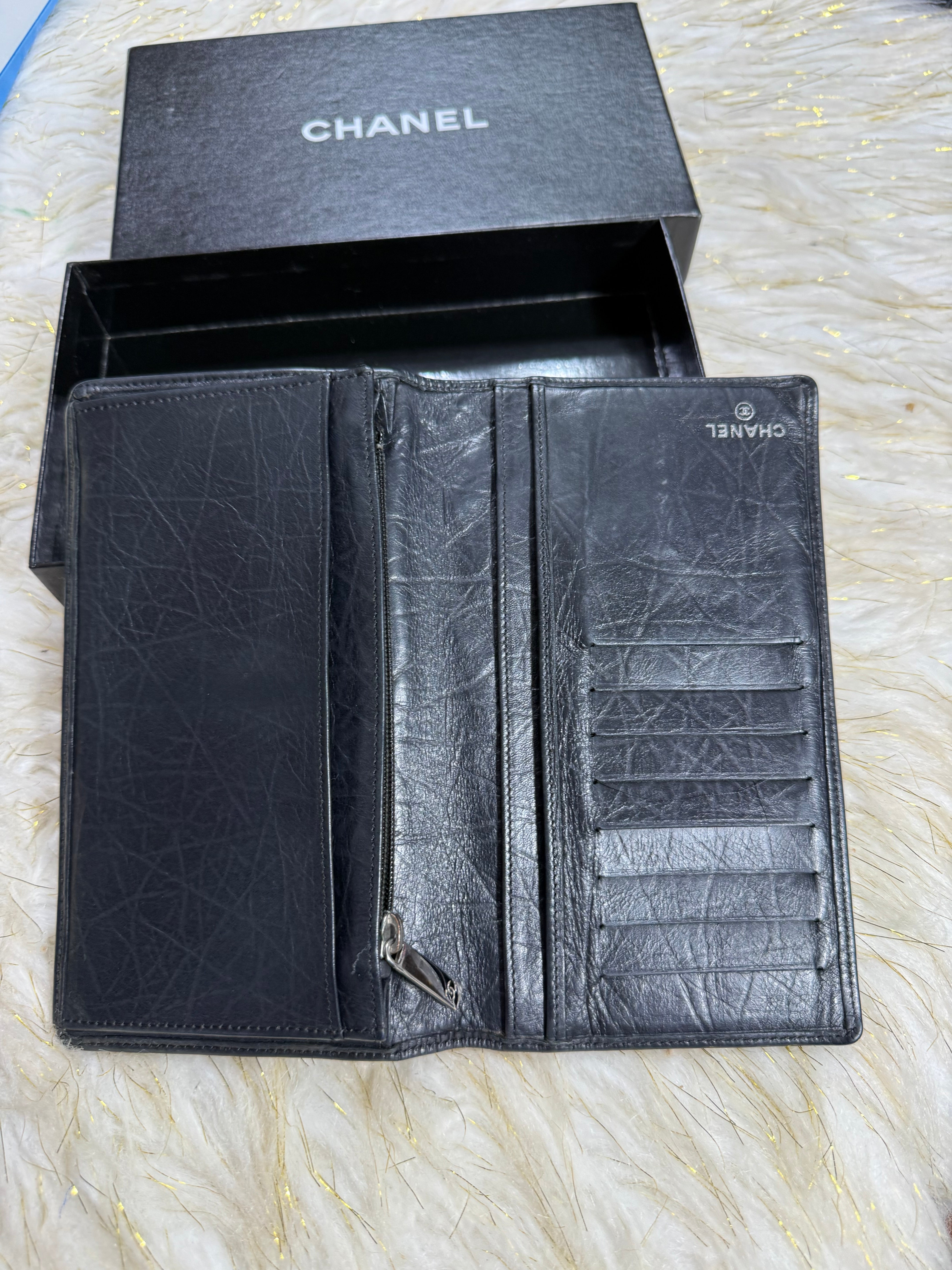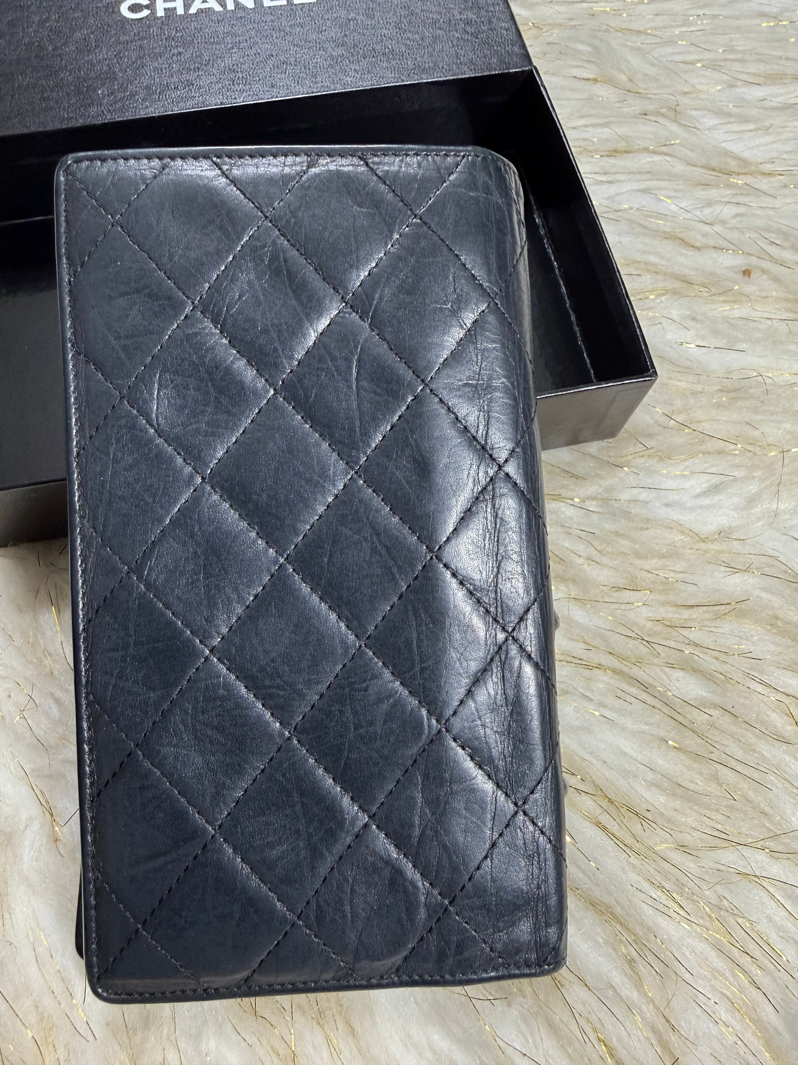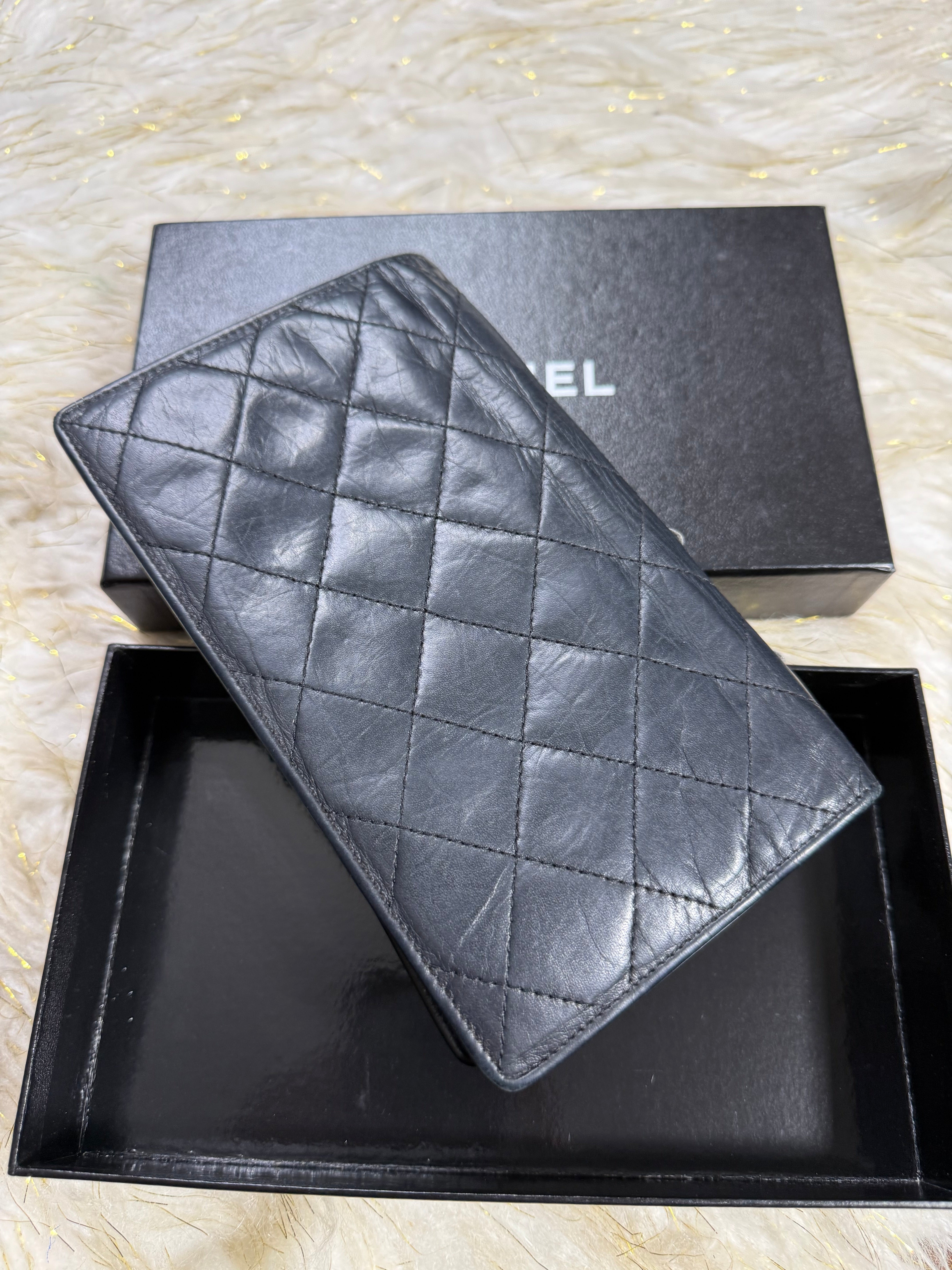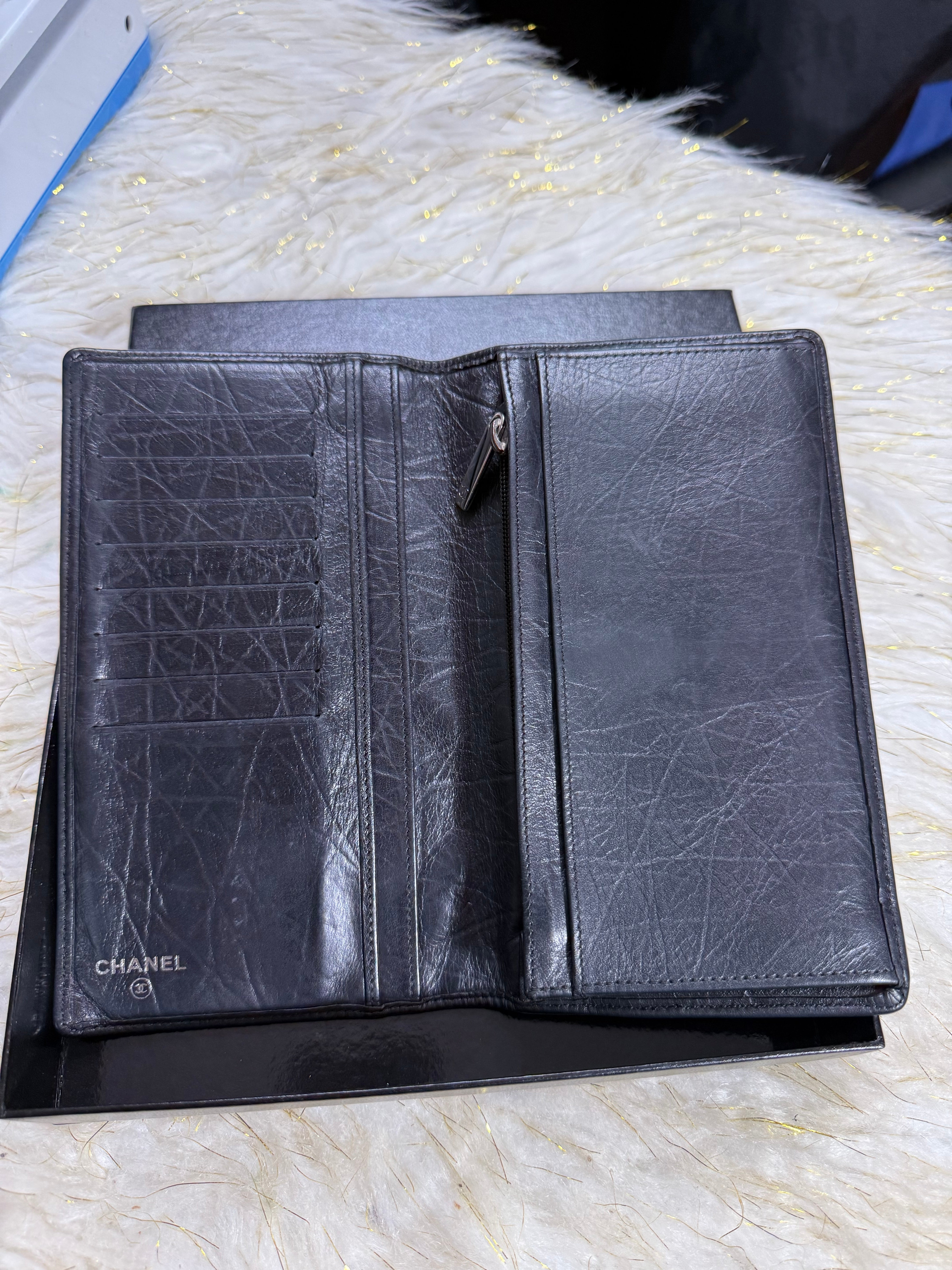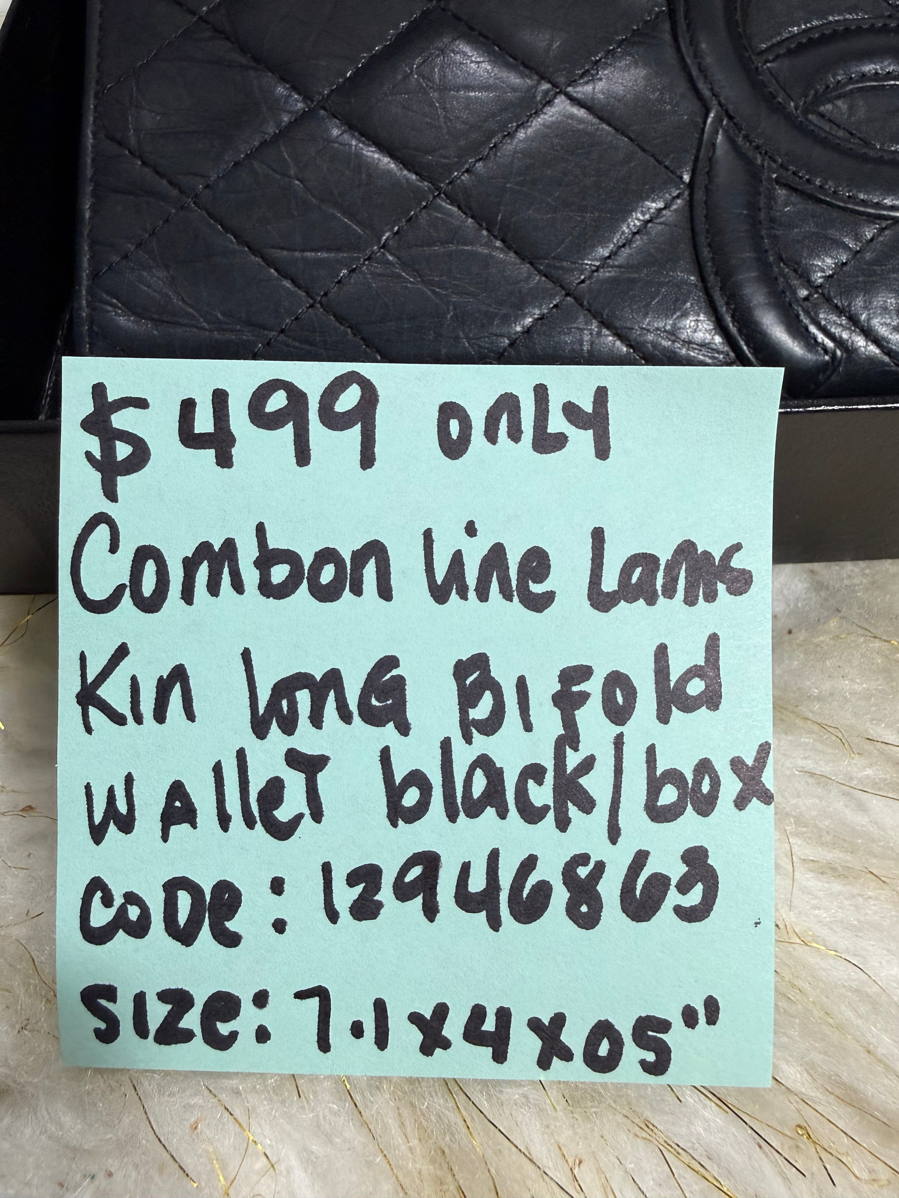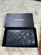 Auth Preloved Chanel CC Combon Line Lambskin Soft leather Bifold Wallet Black with Box.