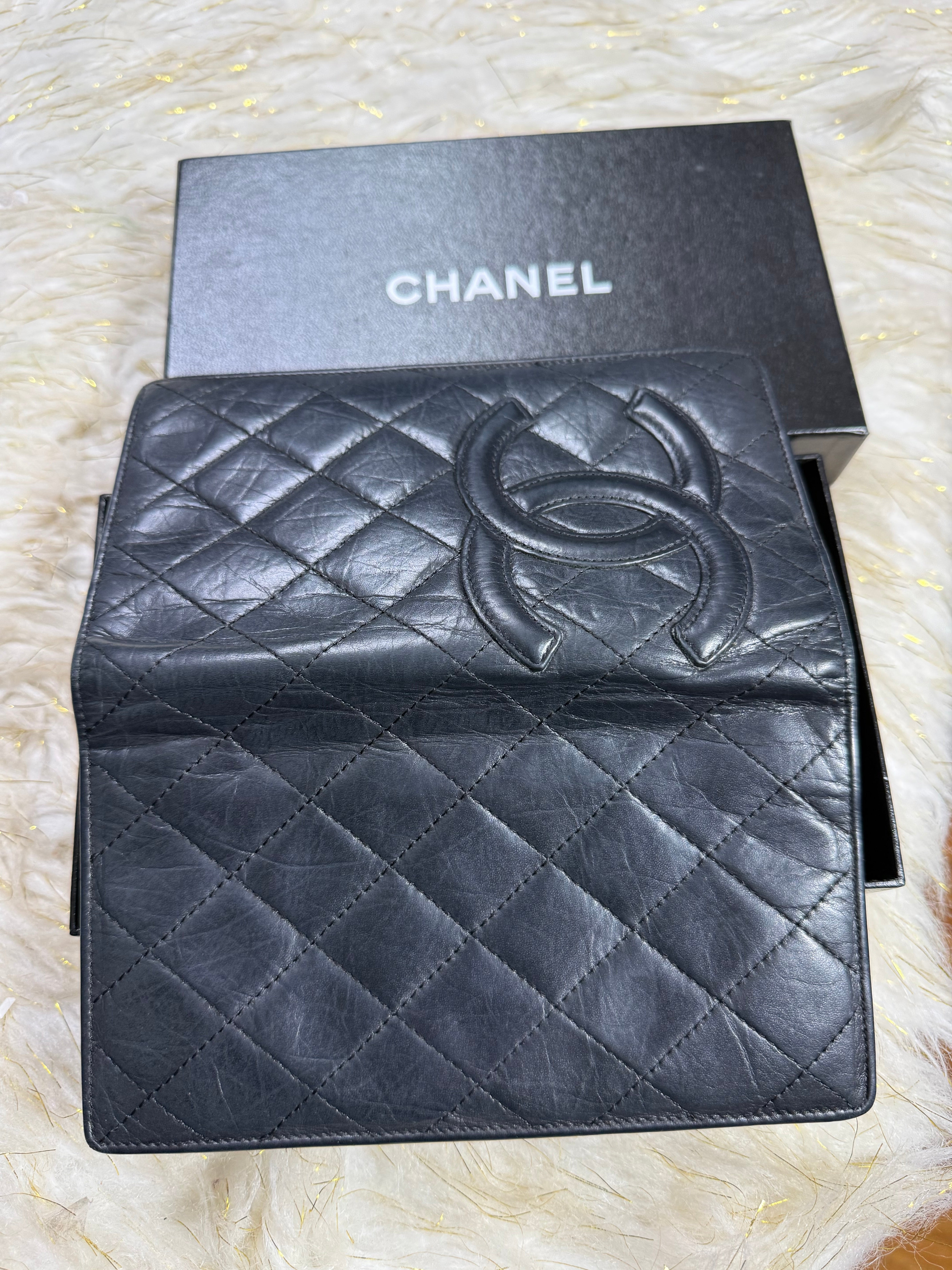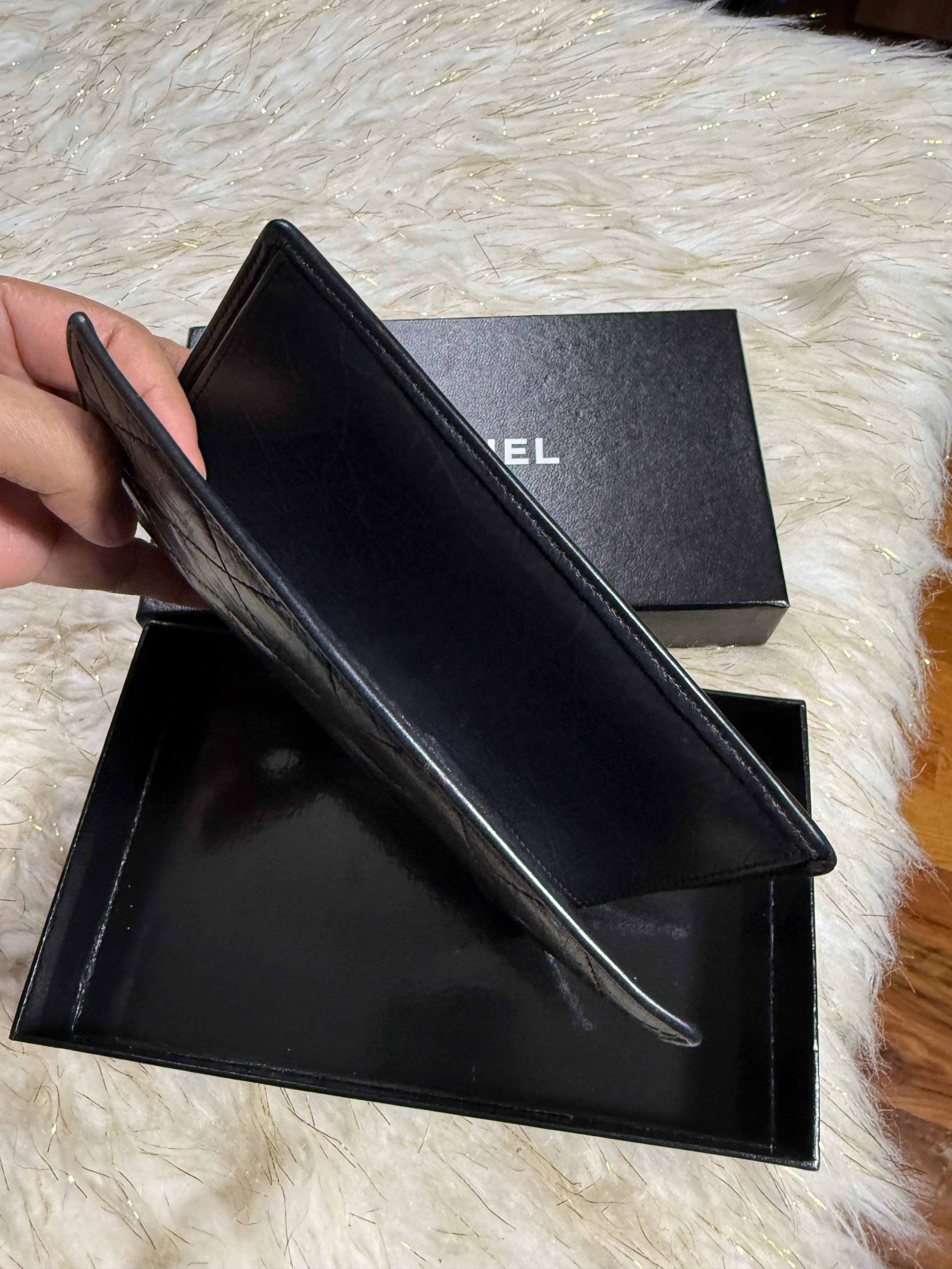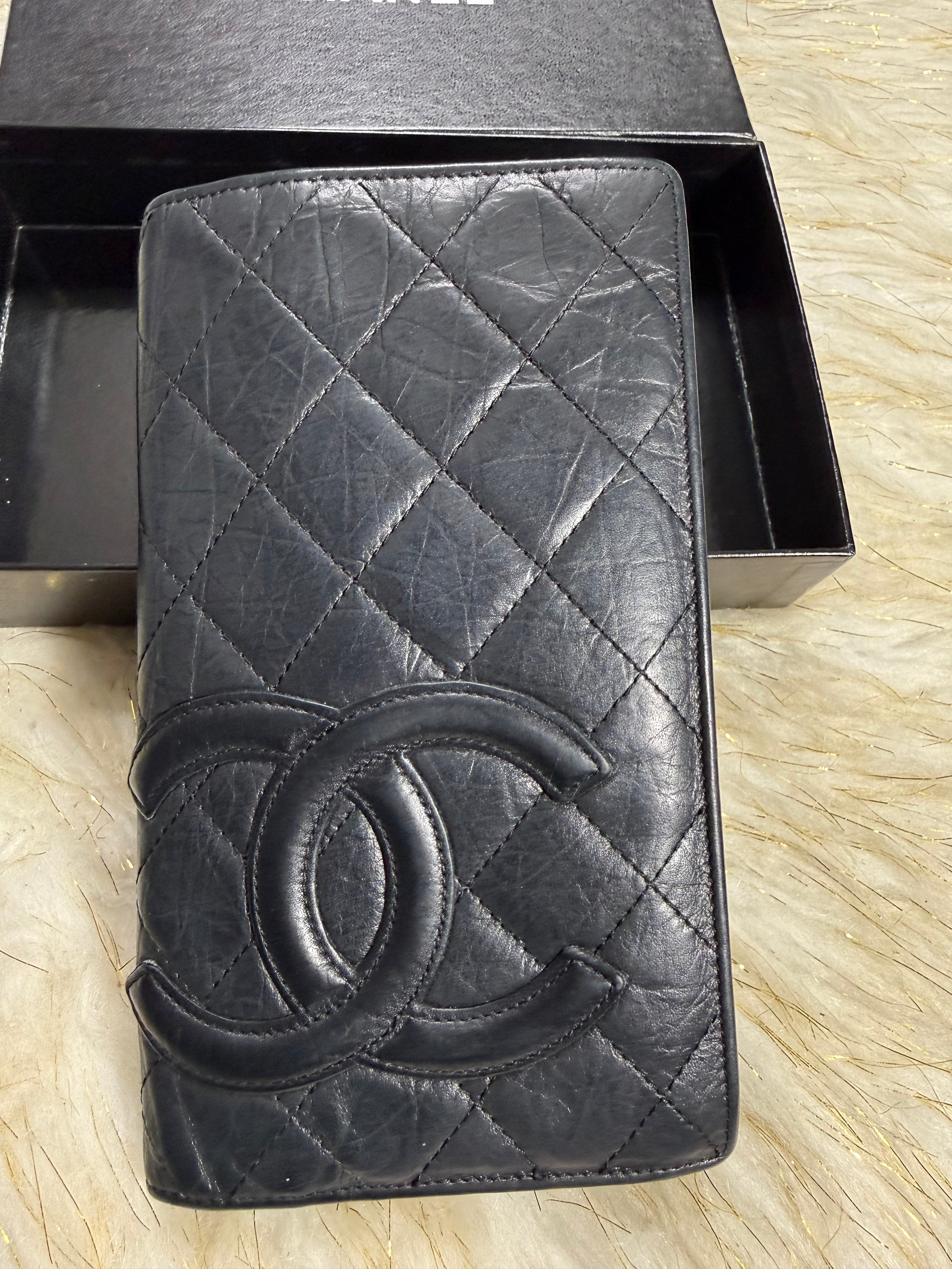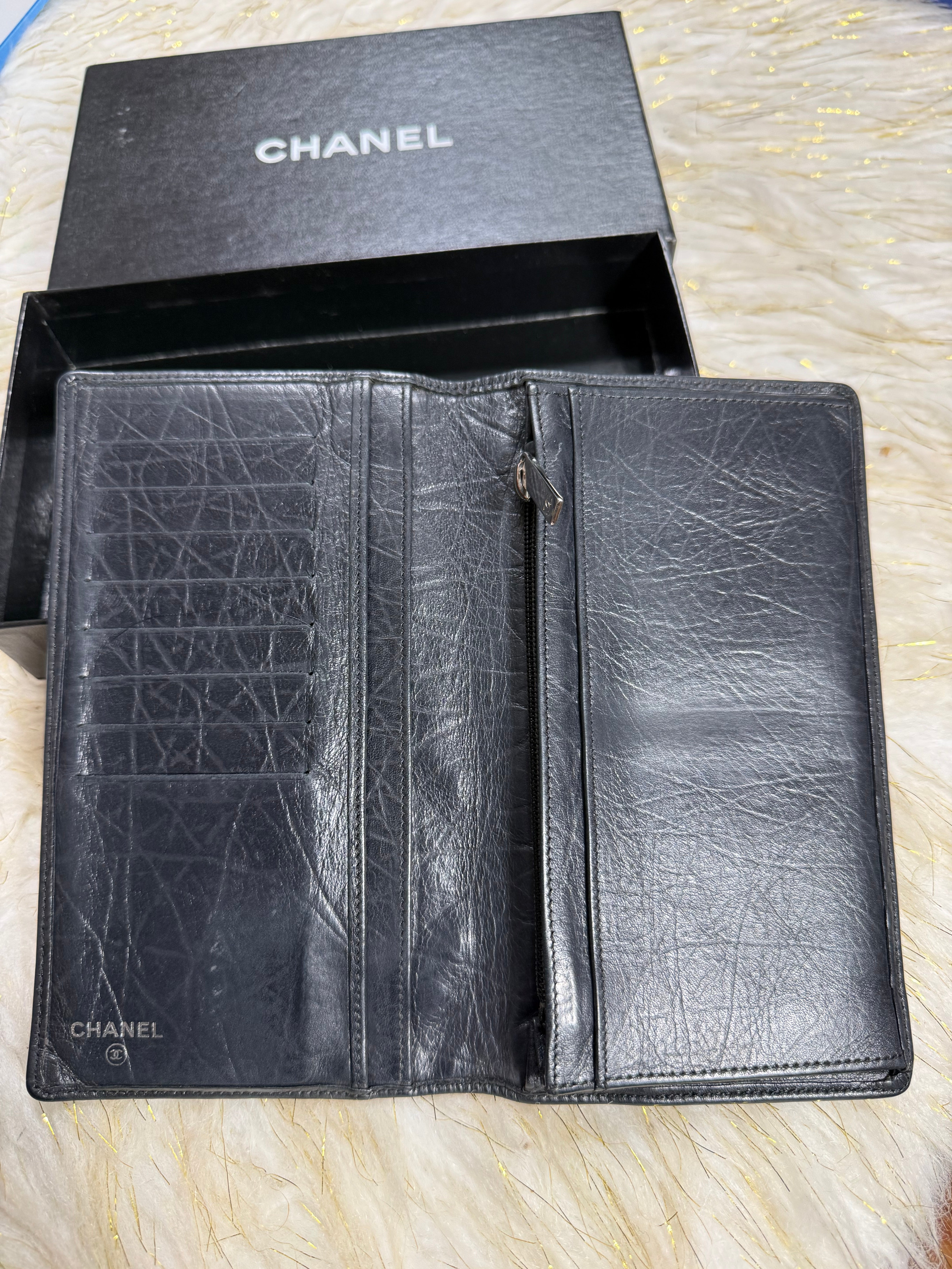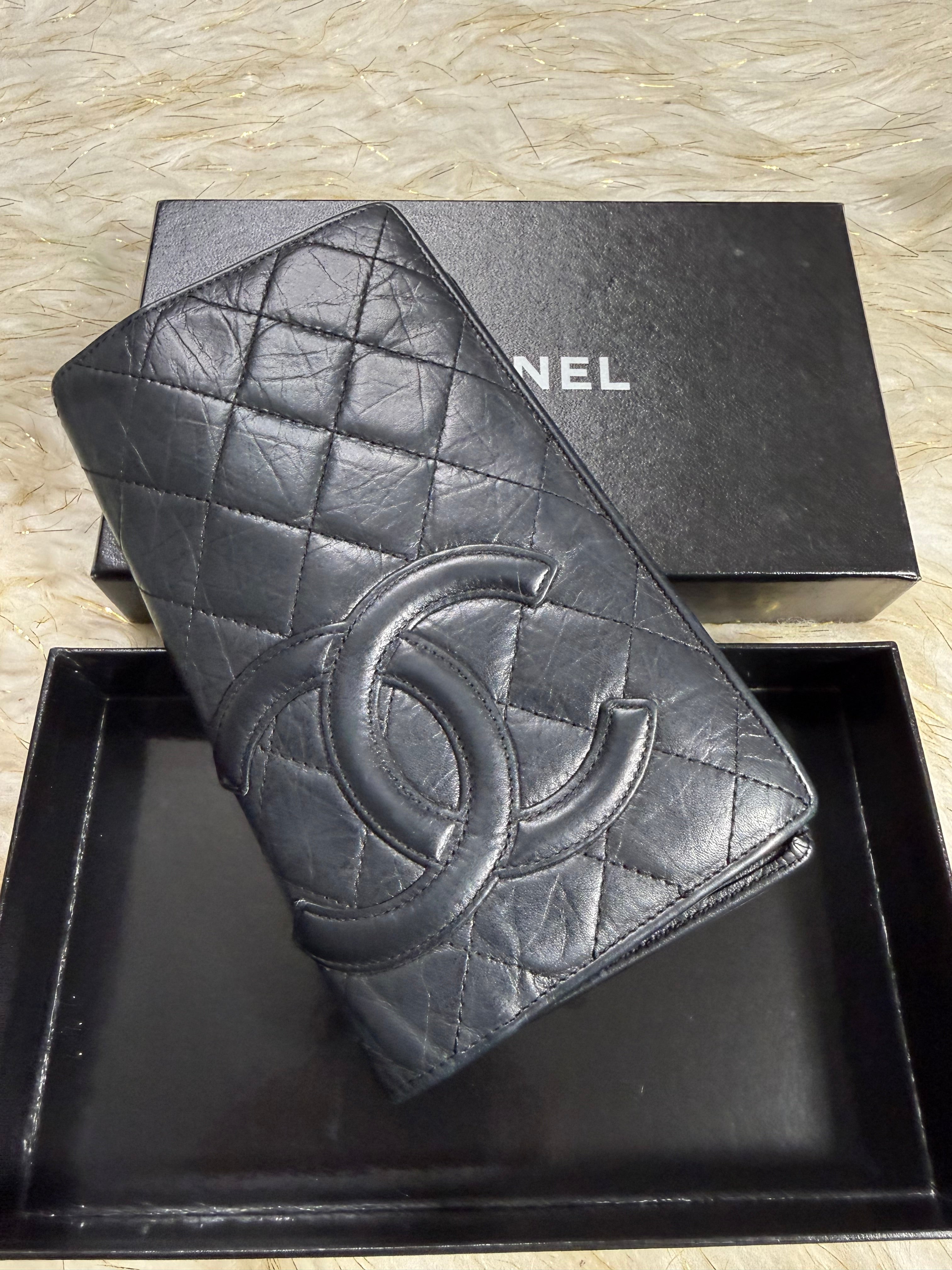 Auth Preloved Chanel CC Combon Line Lambskin Soft leather Bifold Wallet Black with Box.