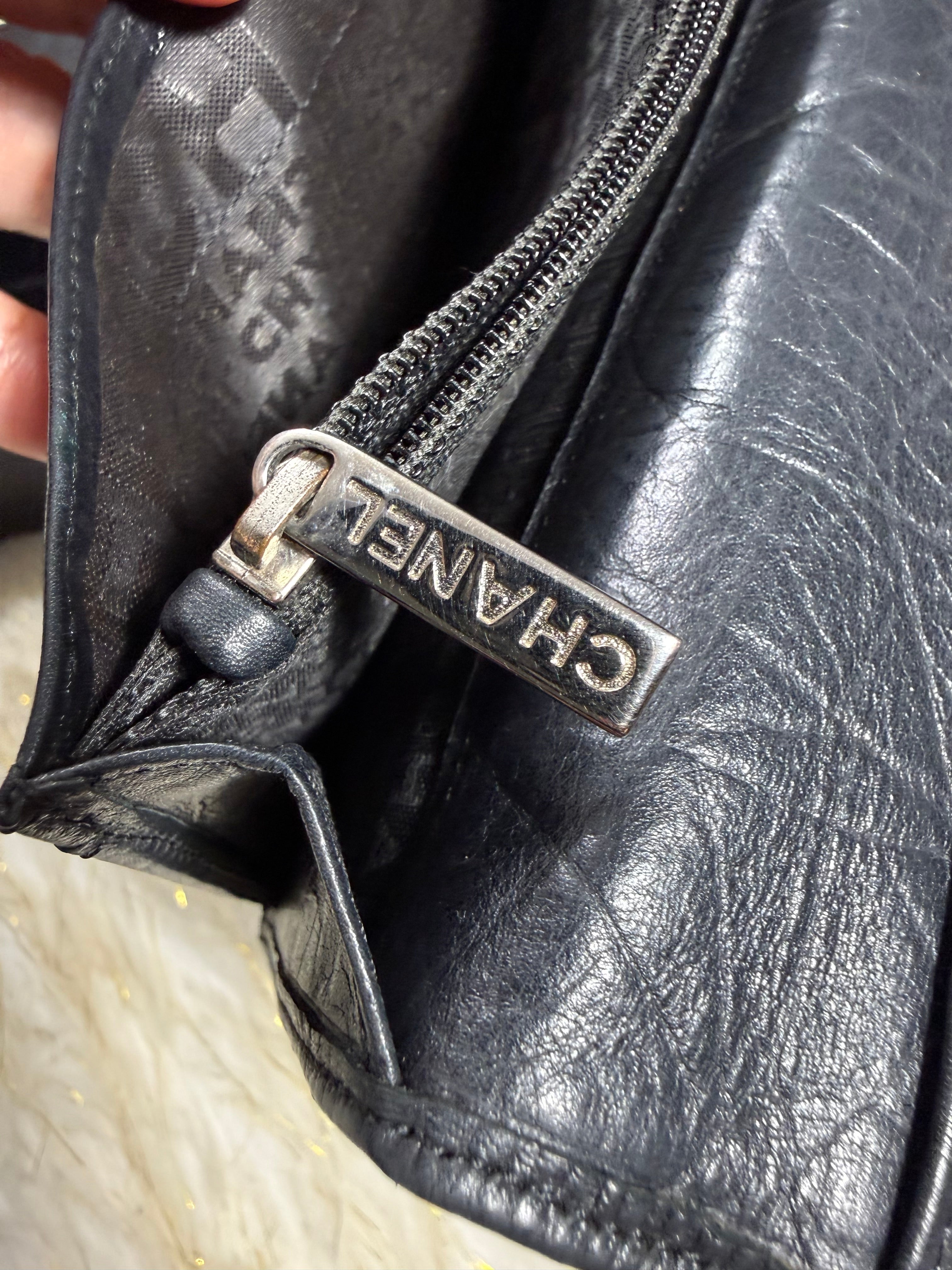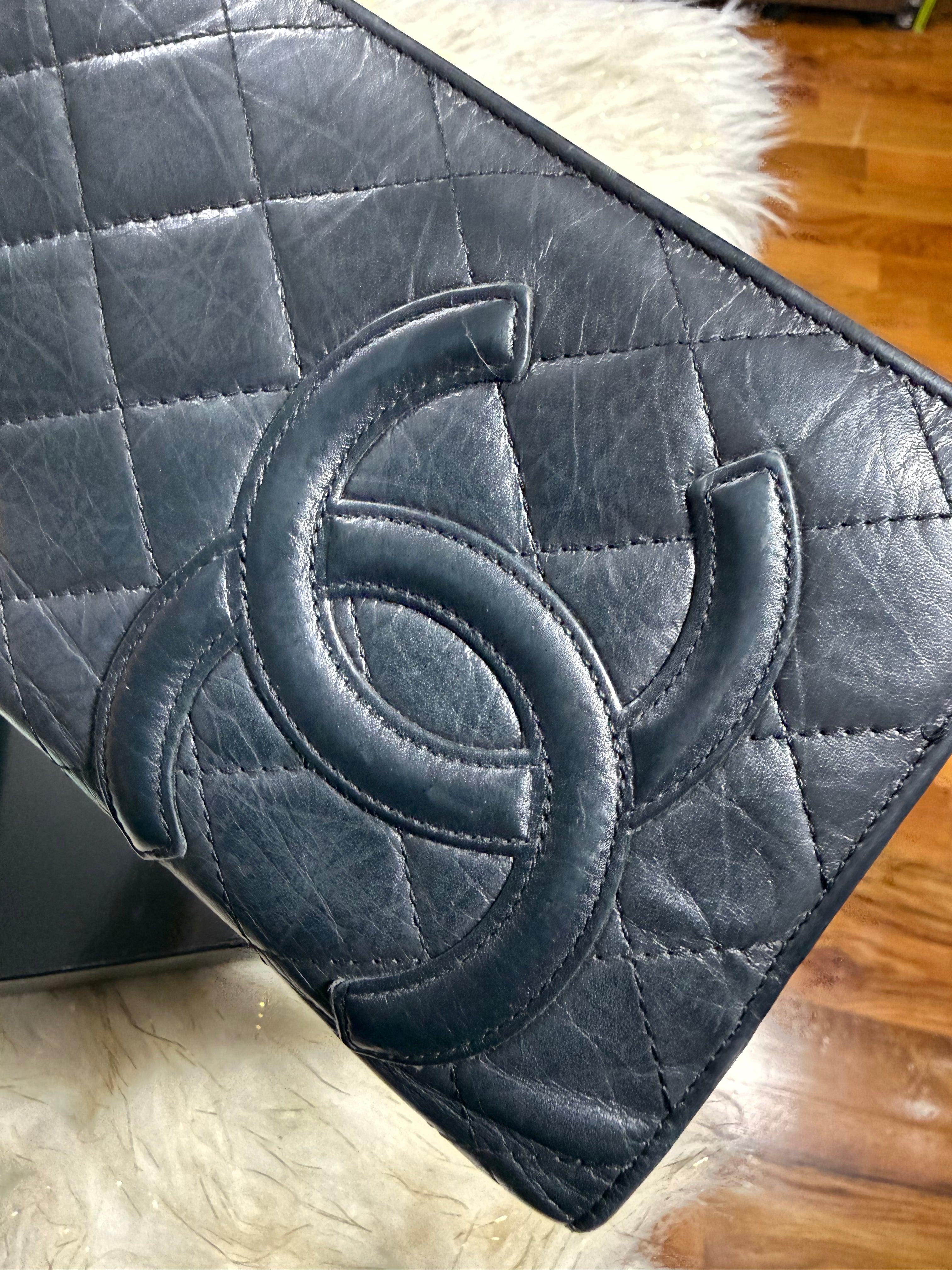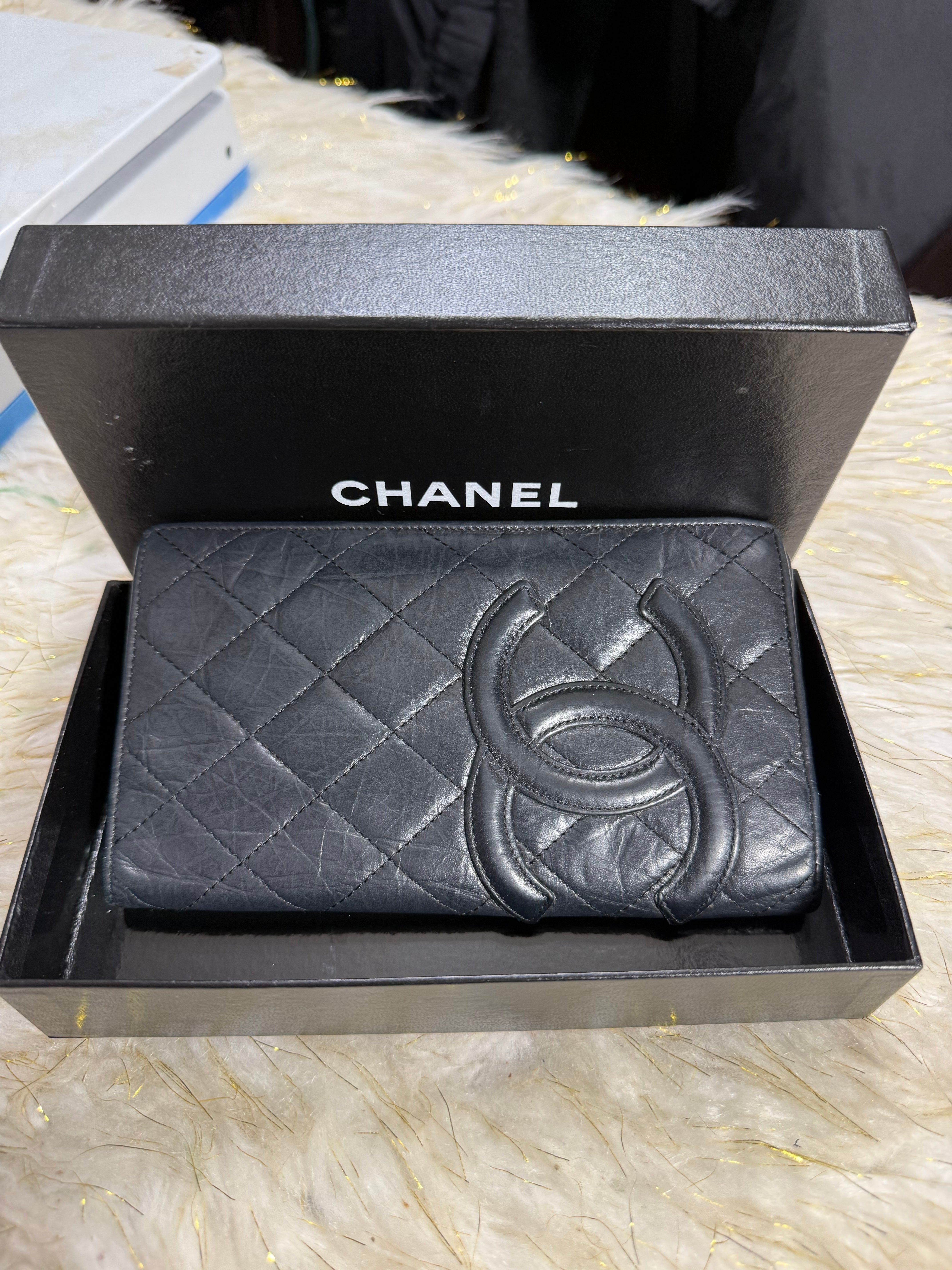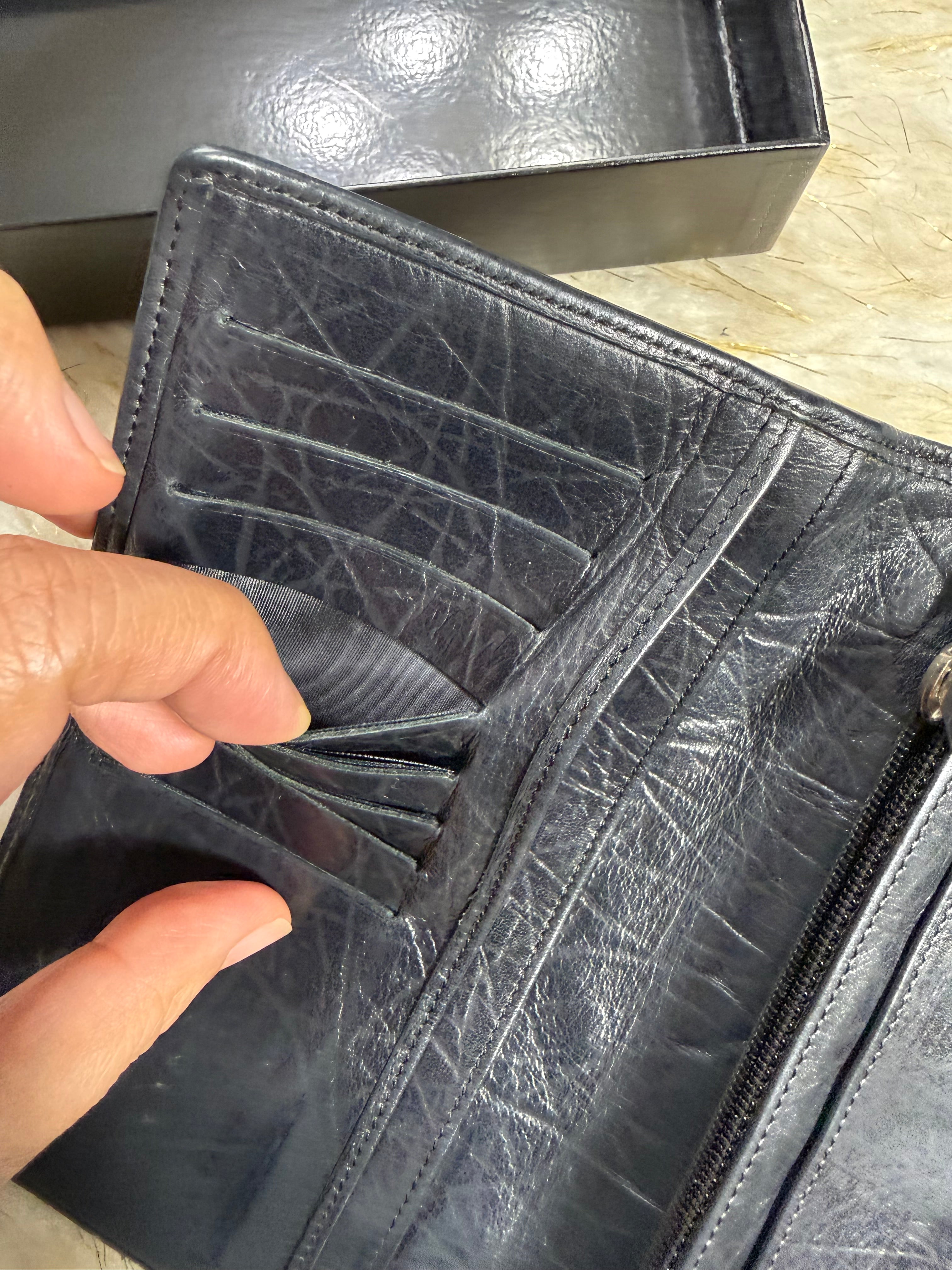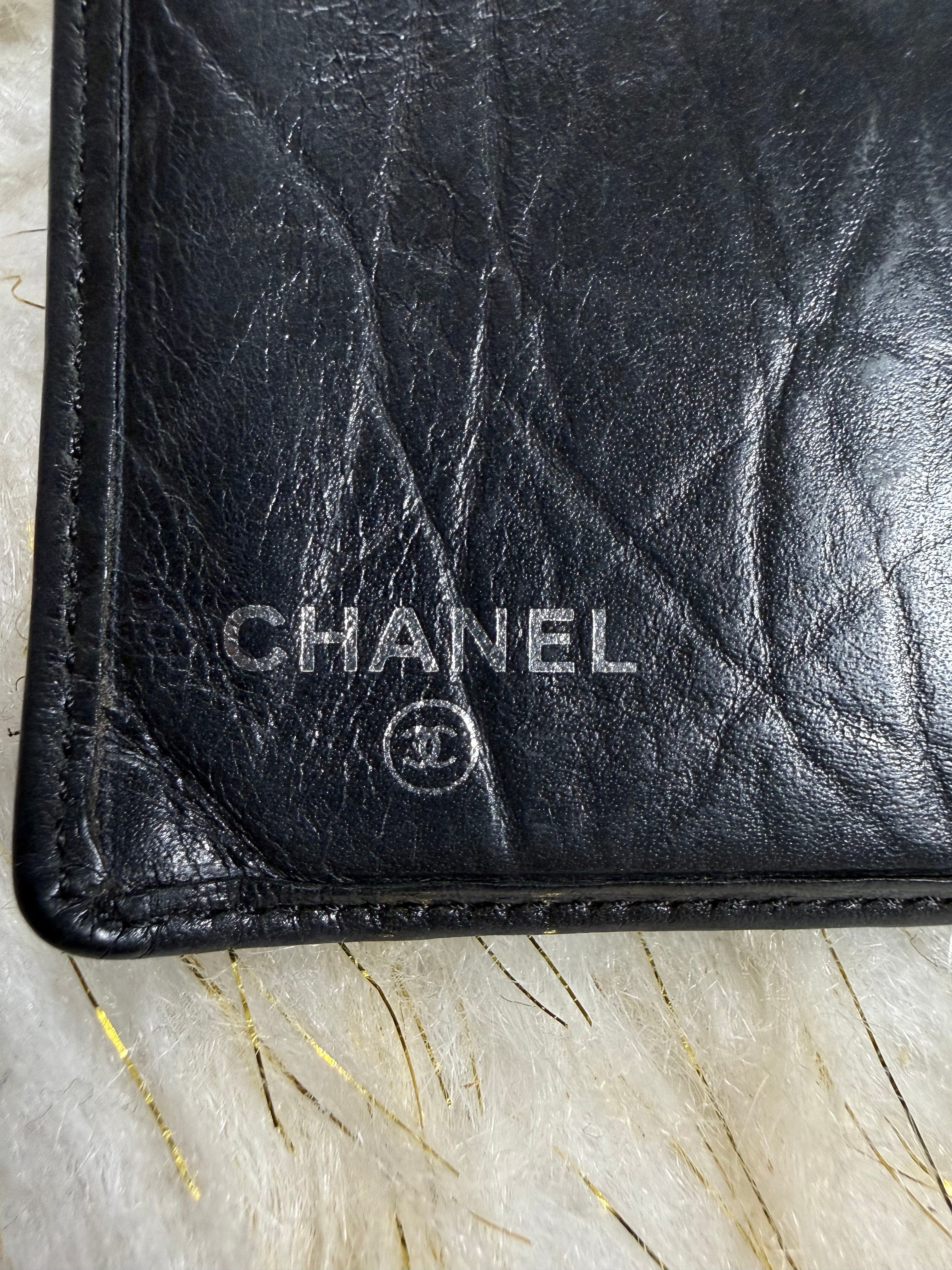 Auth Preloved Chanel CC Combon Line Lambskin Soft leather Bifold Wallet Black with Box.