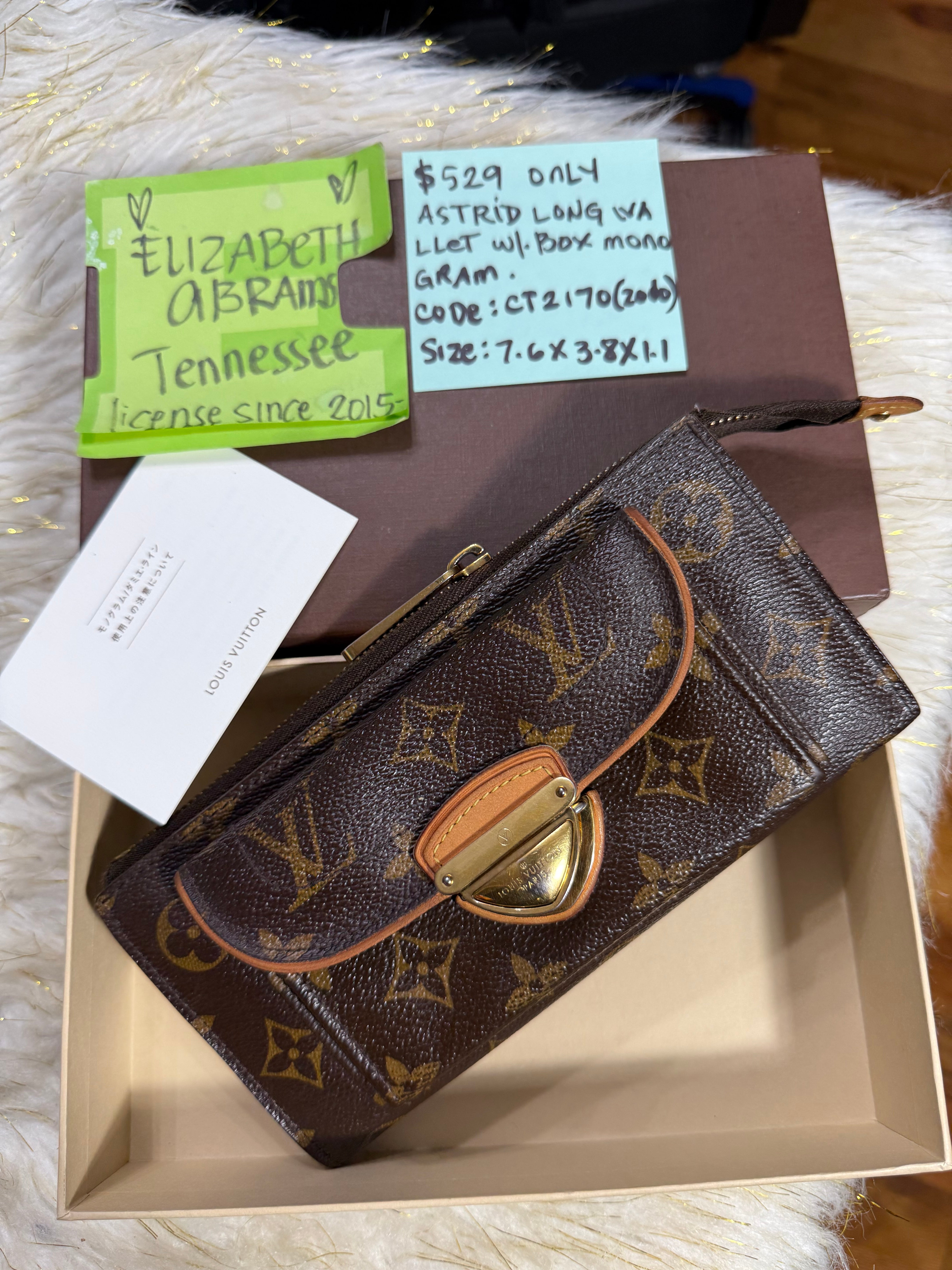 Auth Preloved Louis vuitton Astrid Long Wallet Mono with Box 12 cc compartment.