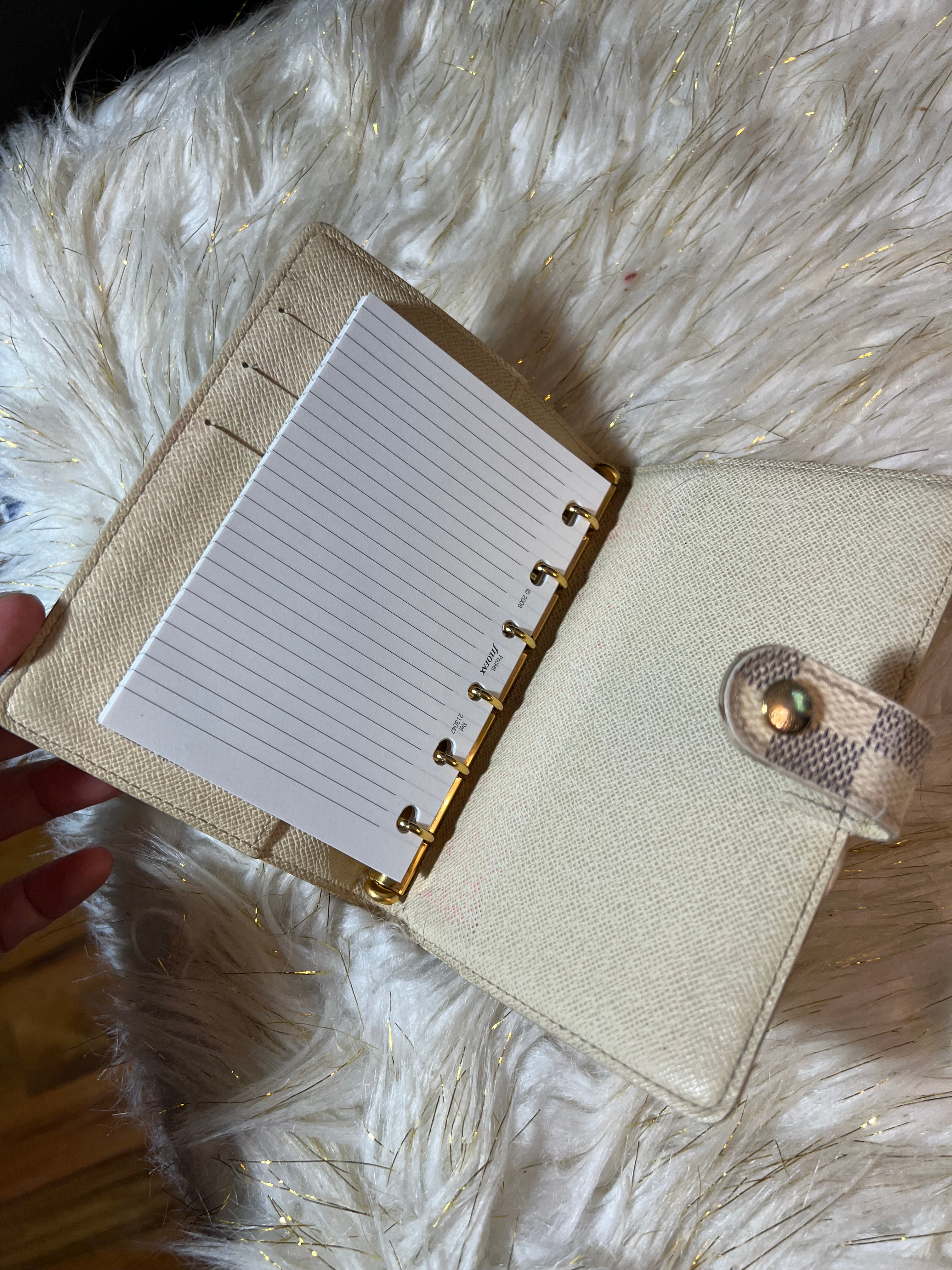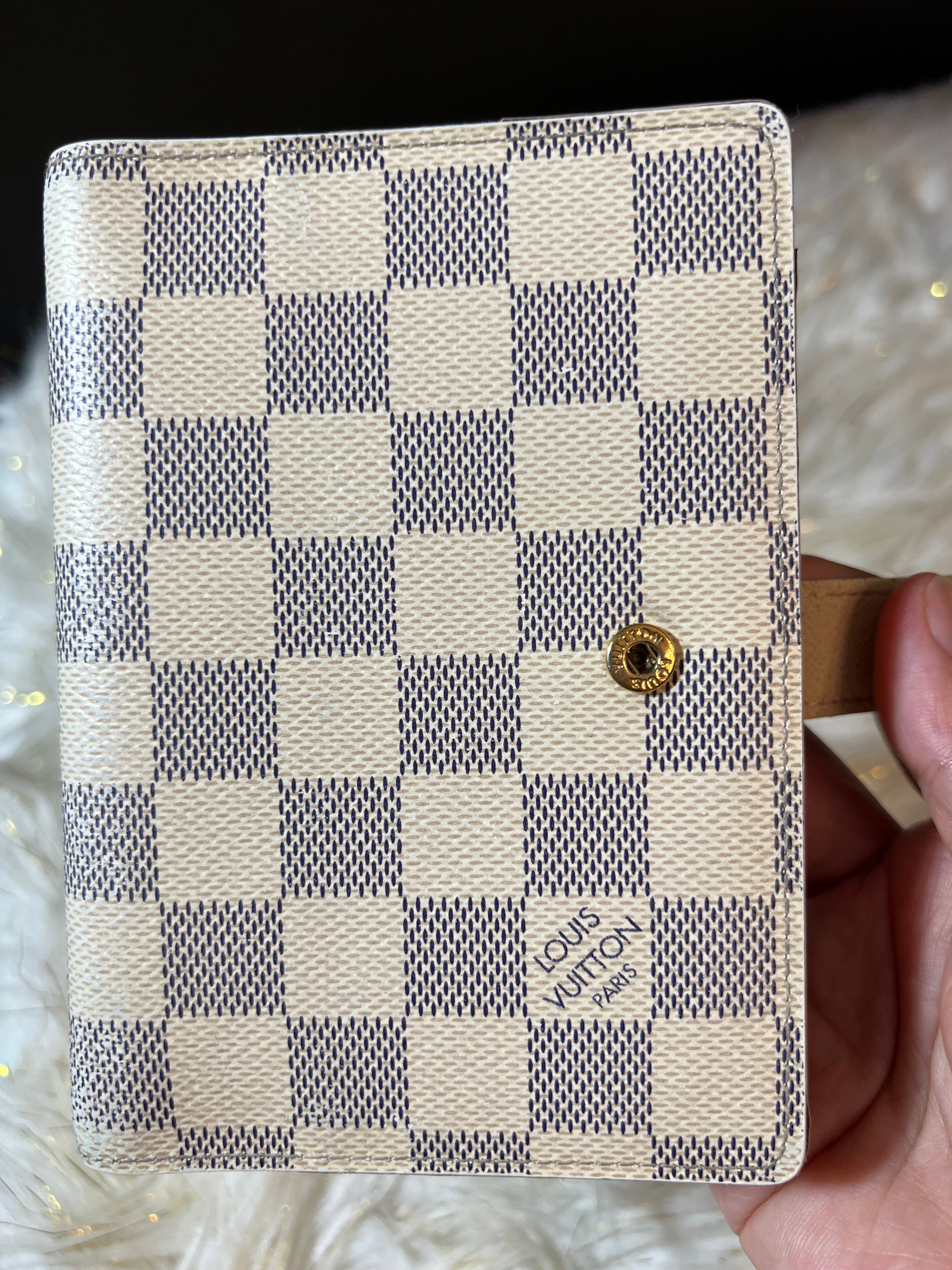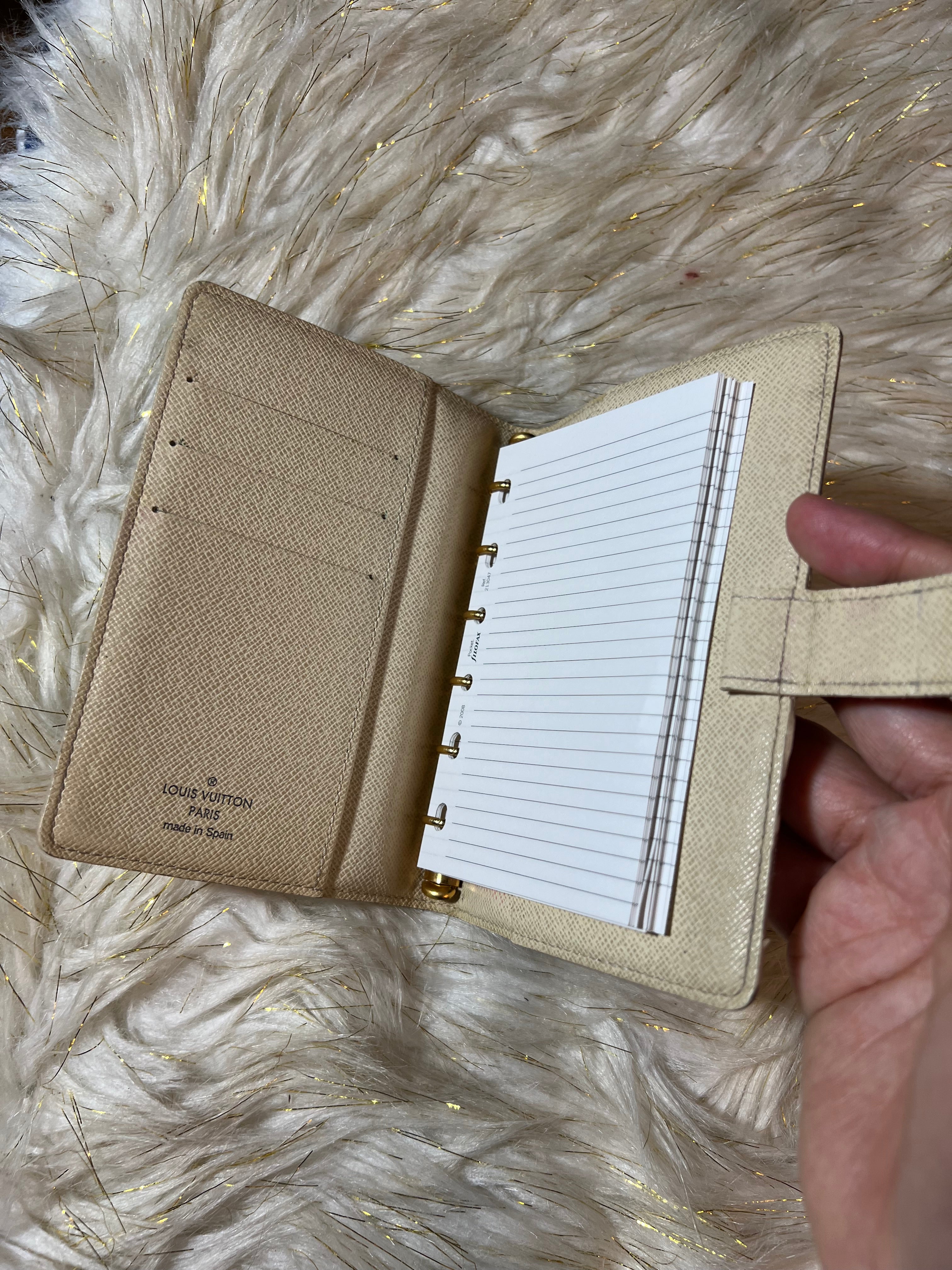 Preloved 100% Authentic Louis Vuitton Azur Agenda PM Notebook Cover with notes included.