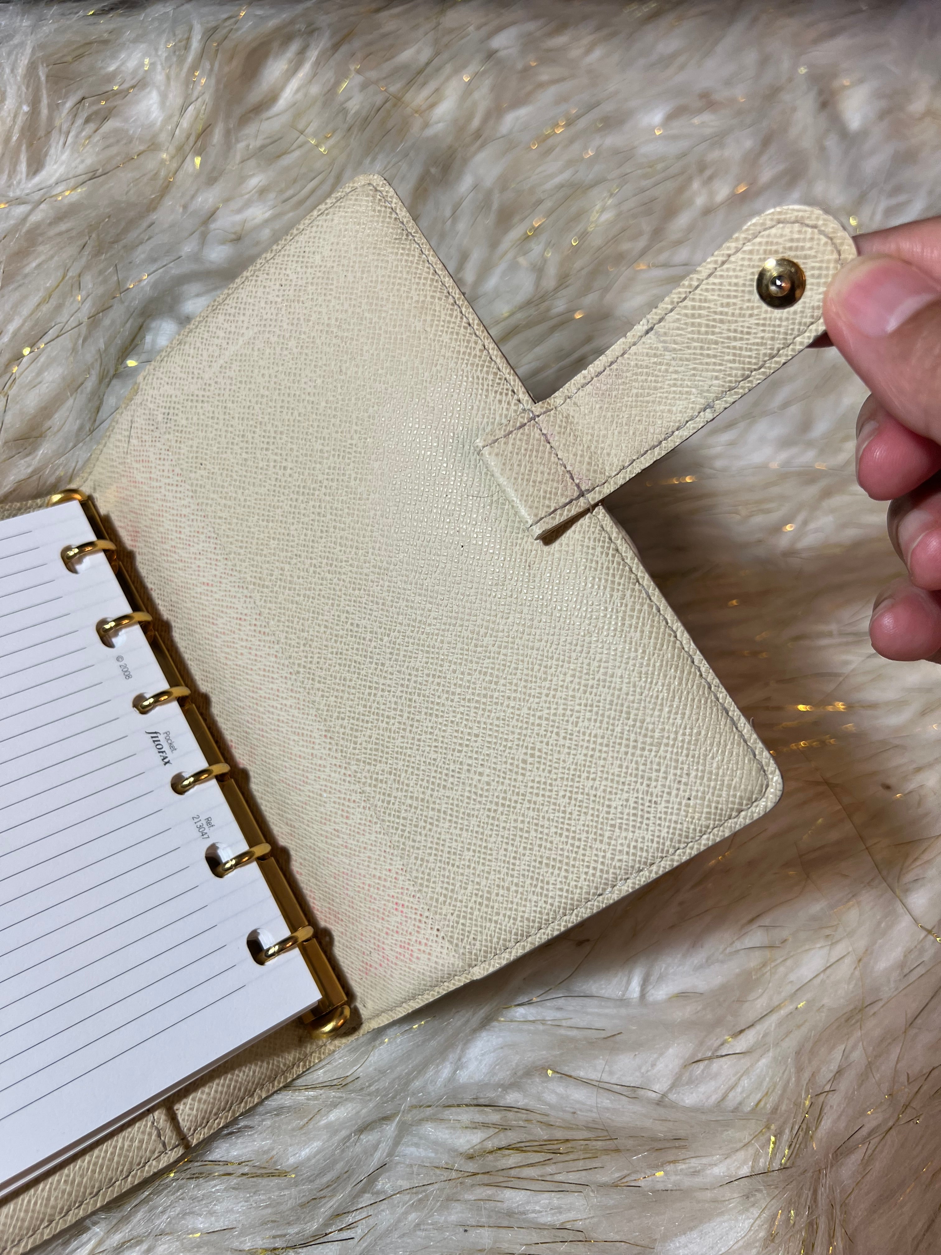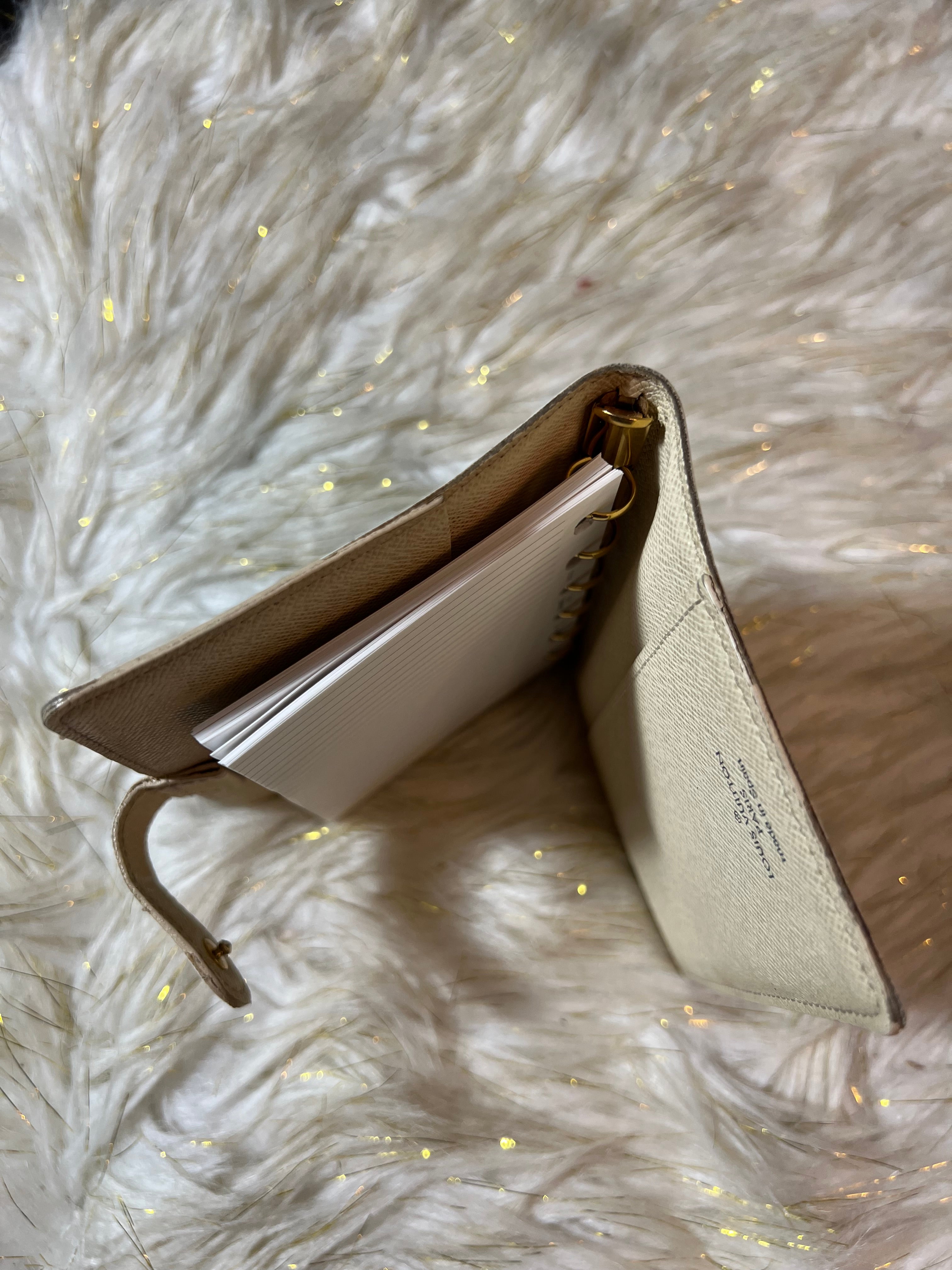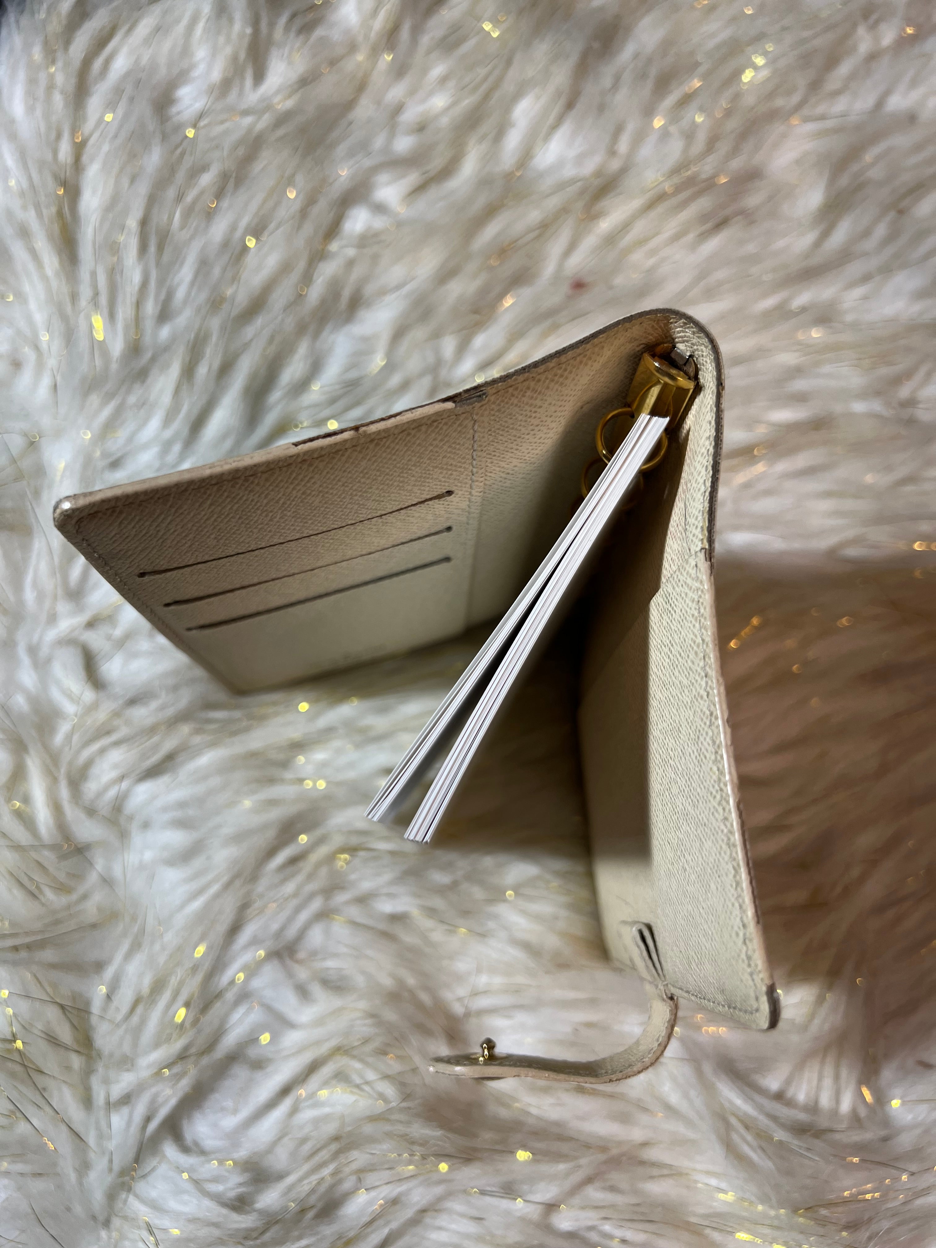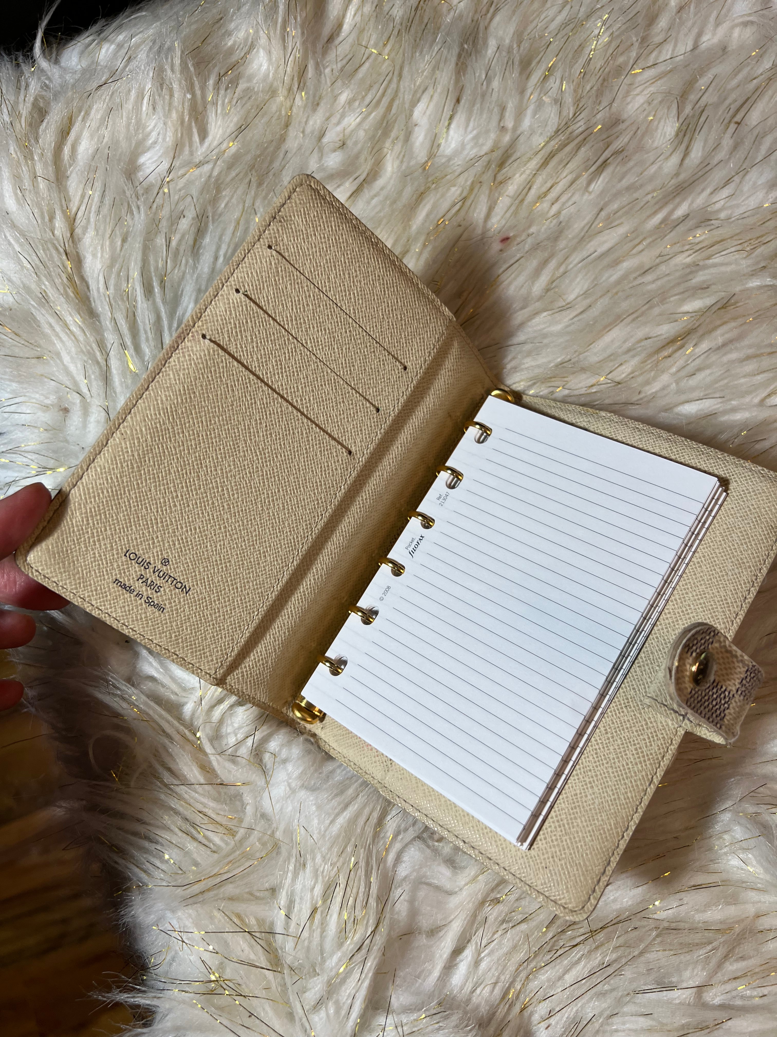 Preloved 100% Authentic Louis Vuitton Azur Agenda PM Notebook Cover with notes included.