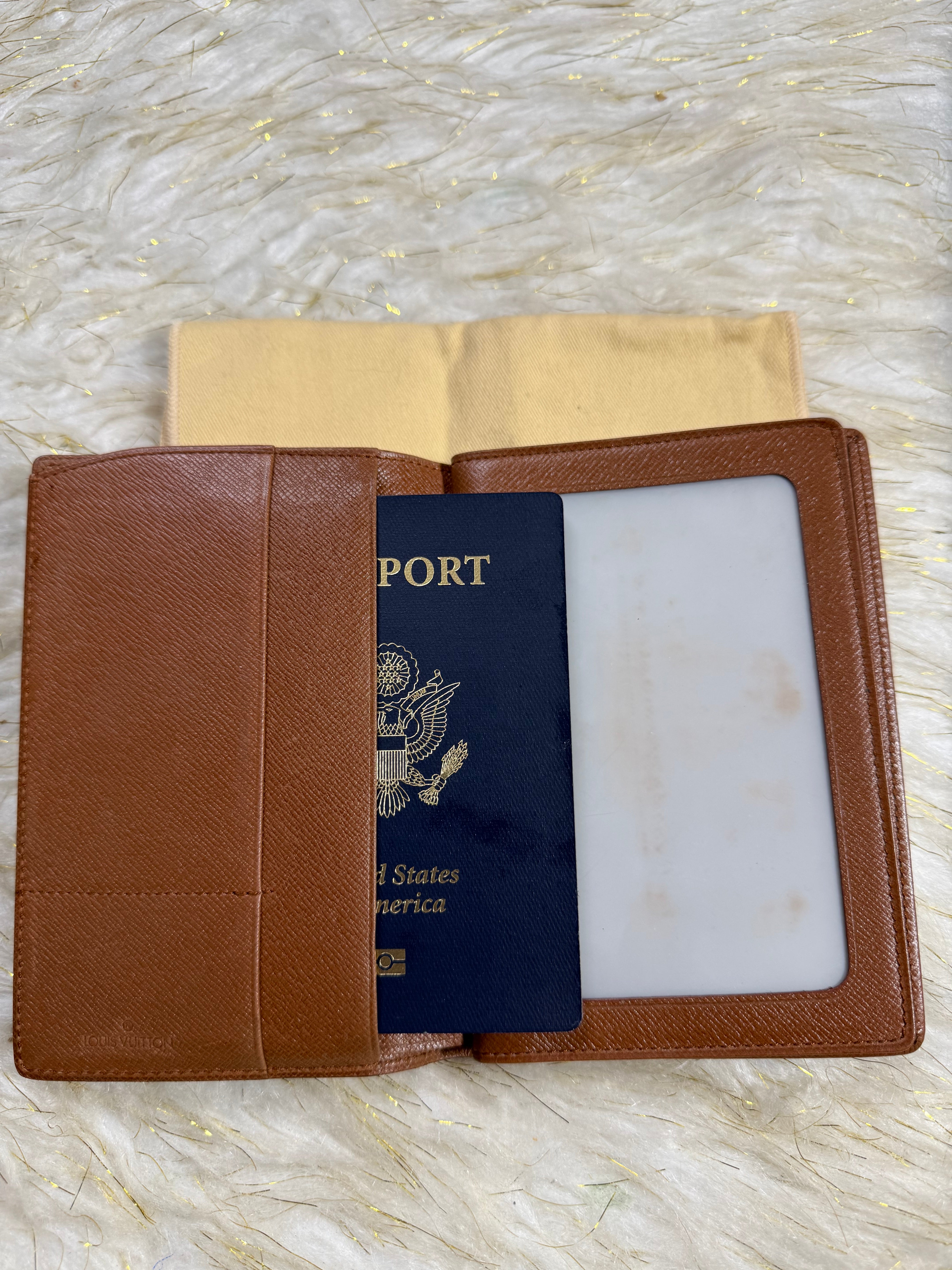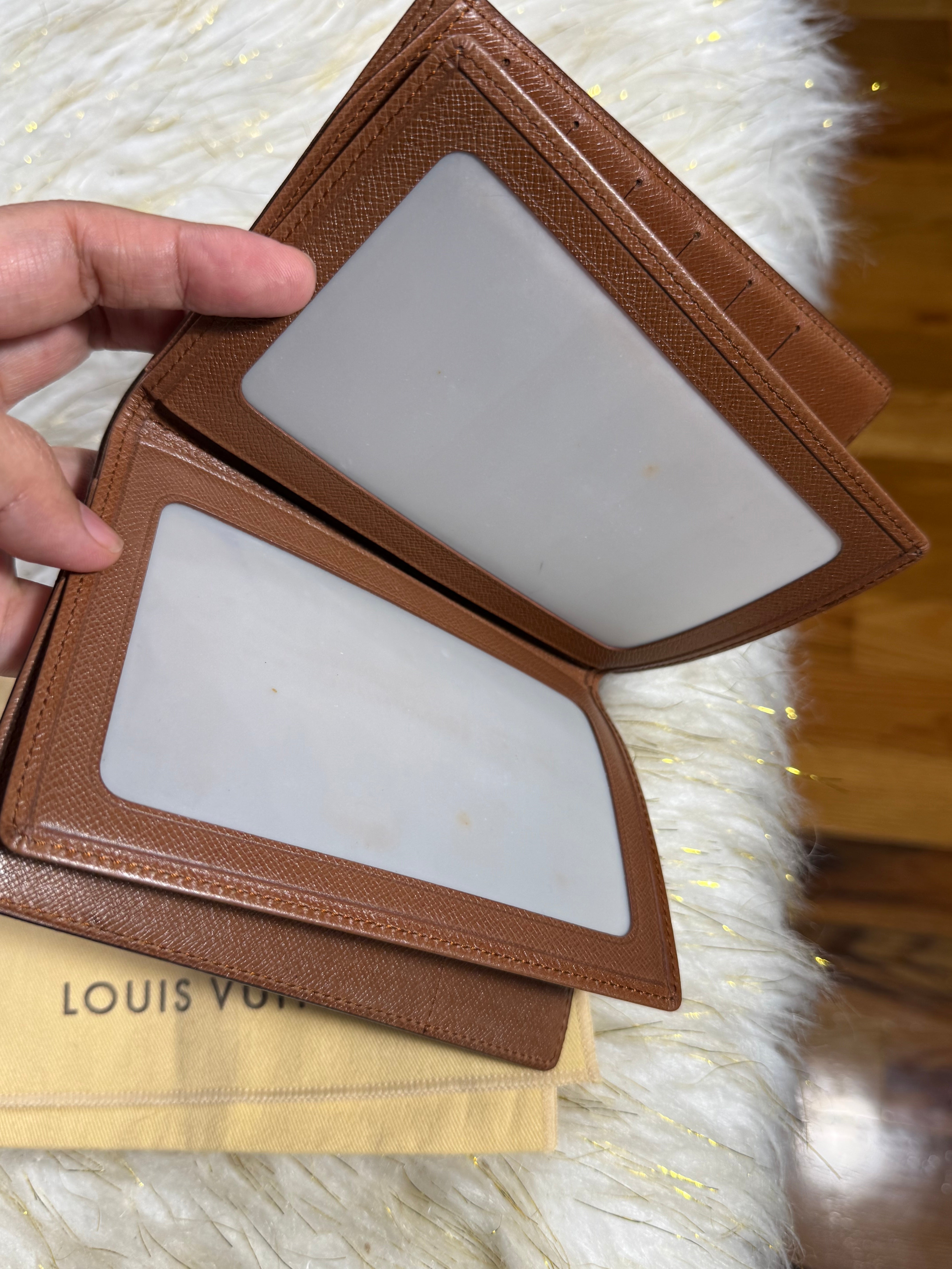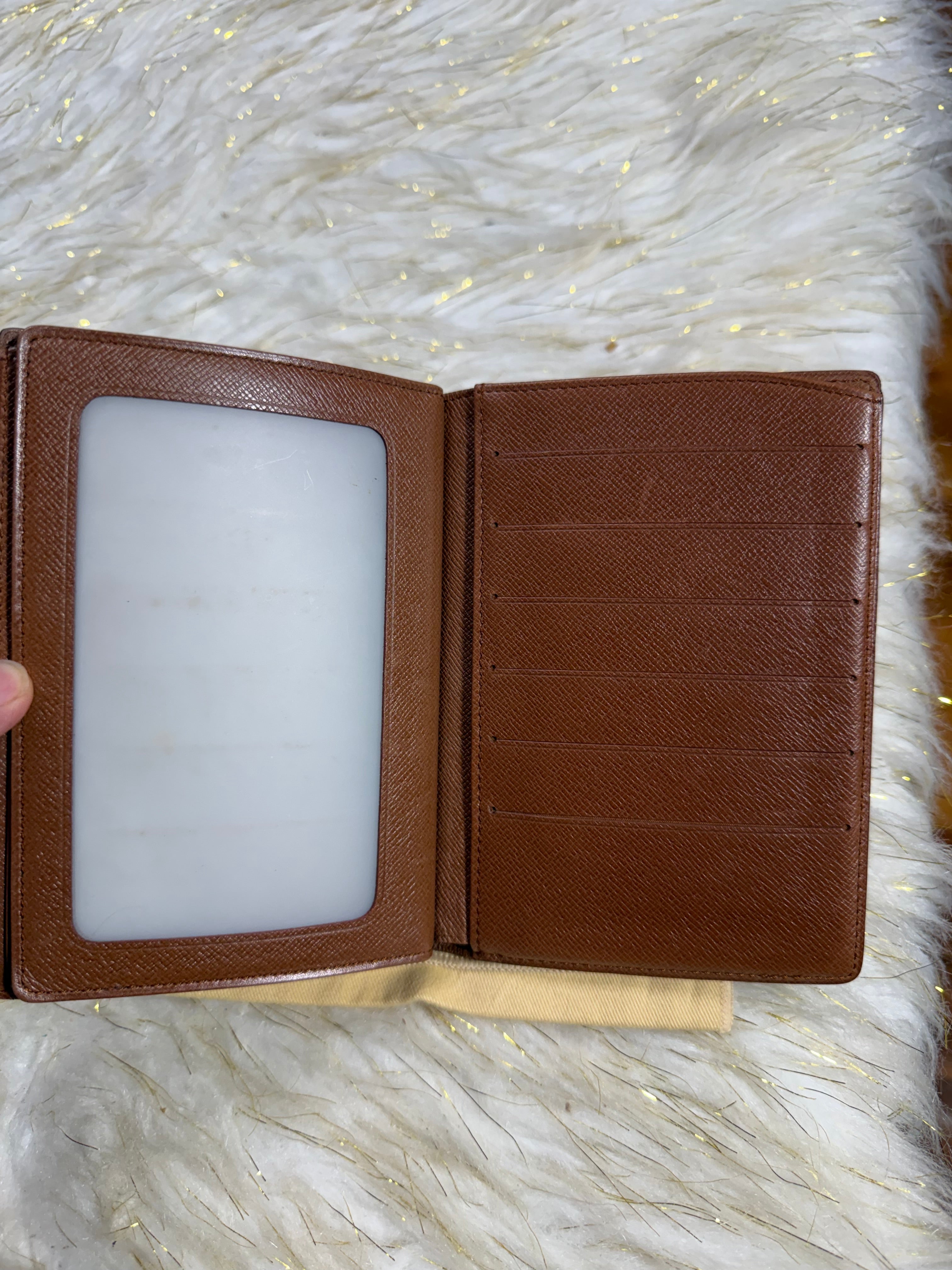 Preloved Auth. Louis Vuitton Bifold Passport Card Photo id, Mono Wallet with Duster