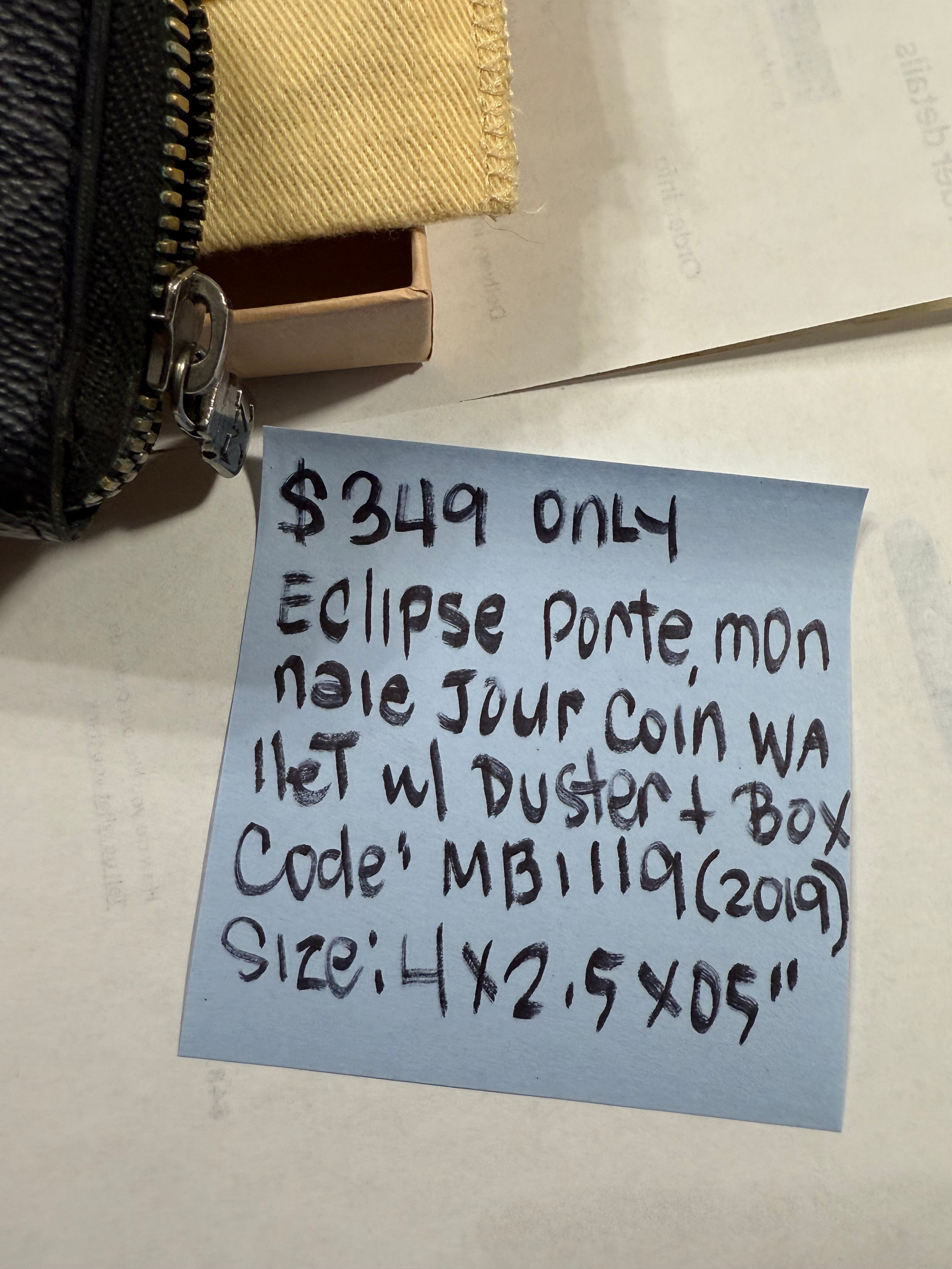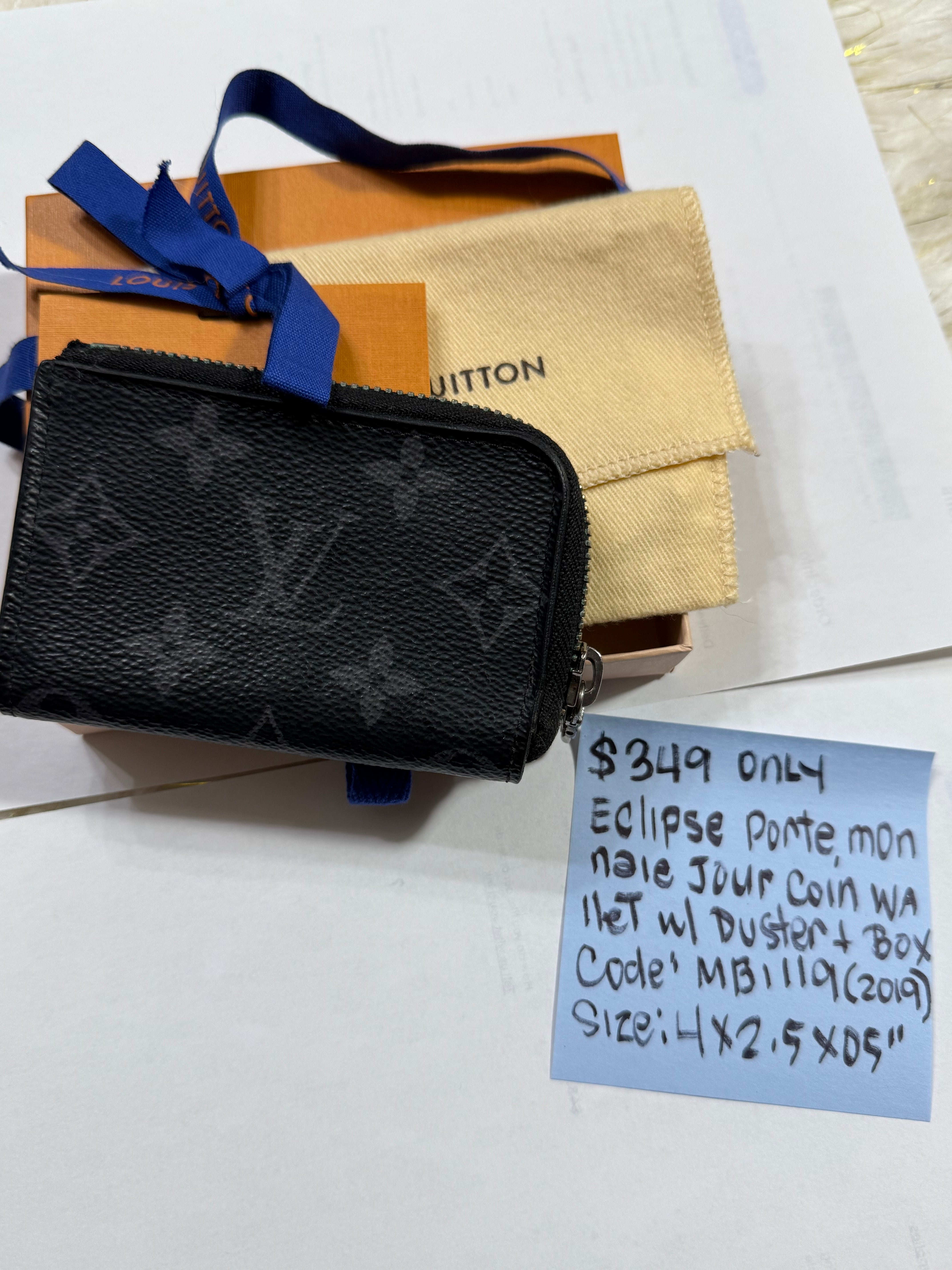 Louis Vuitton Eclipse Coin Purse wallet Black Monogram wallet with box and duster only