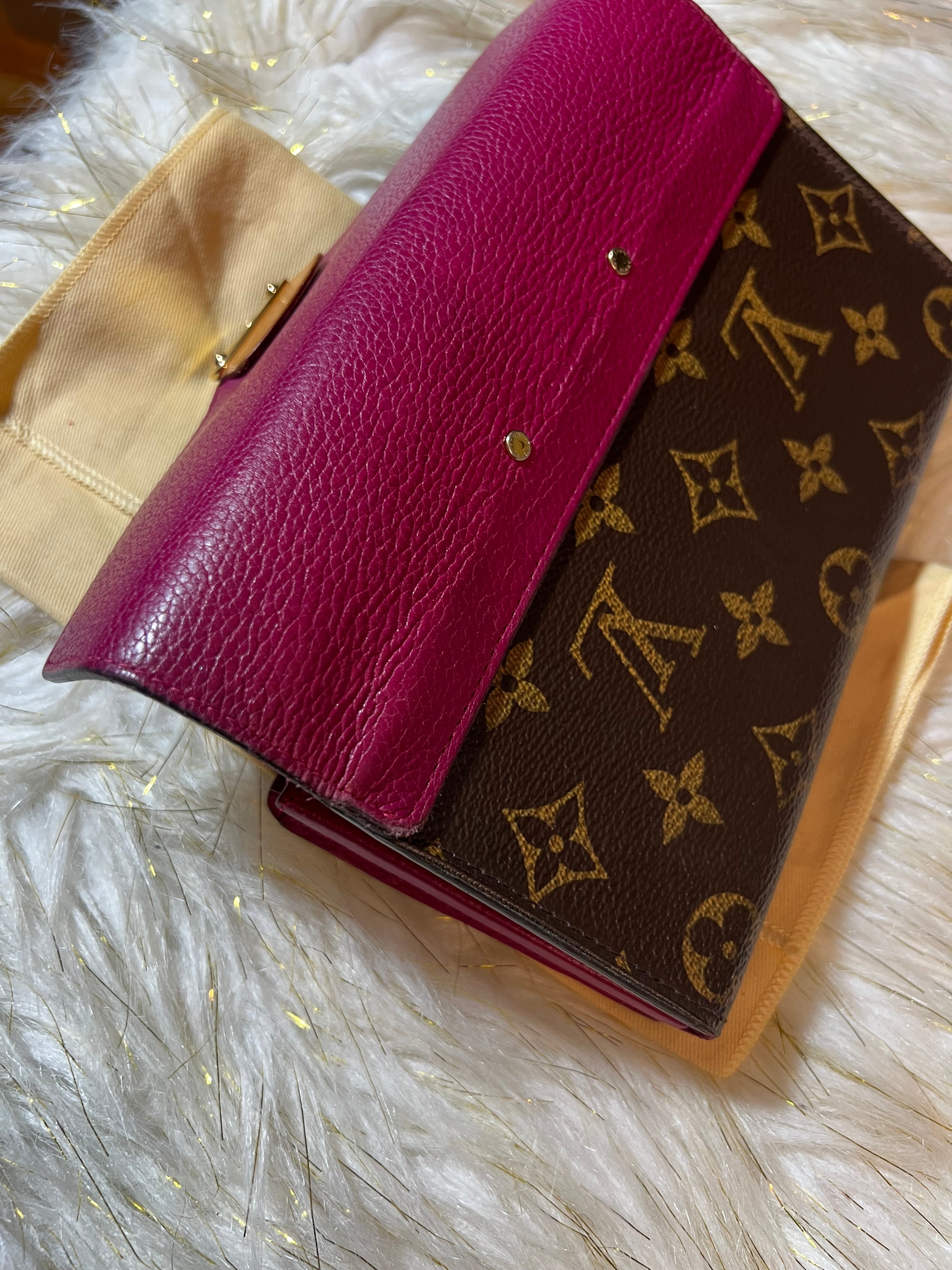 Louis Vuitton Long Wallet Portefeuille Pallas Brown Fuchsia Monogram w/ dustbag