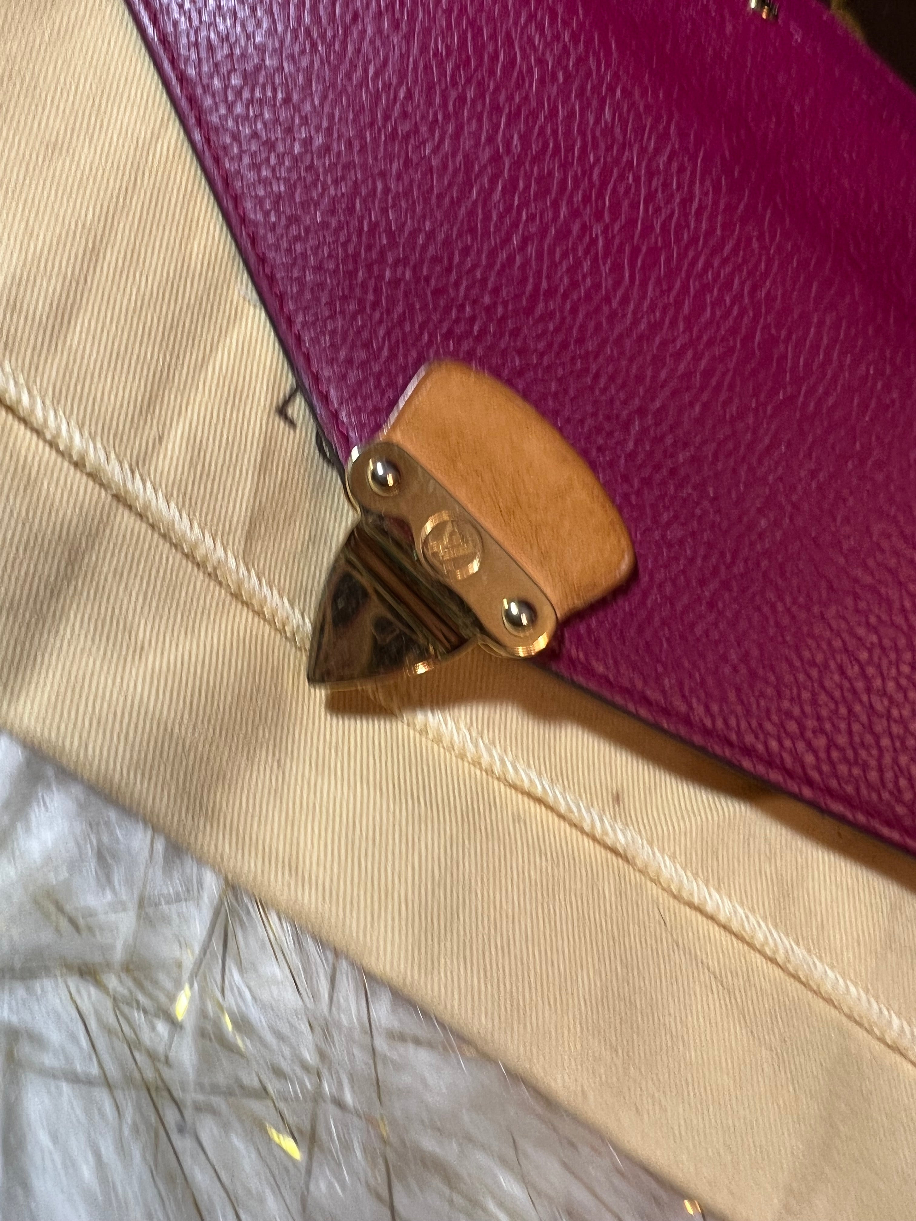 Pre-owned overall is still good.Minor tarnish on the exterior metal parts Has rubs stain scratches on outside and edges, Has faded name initial.