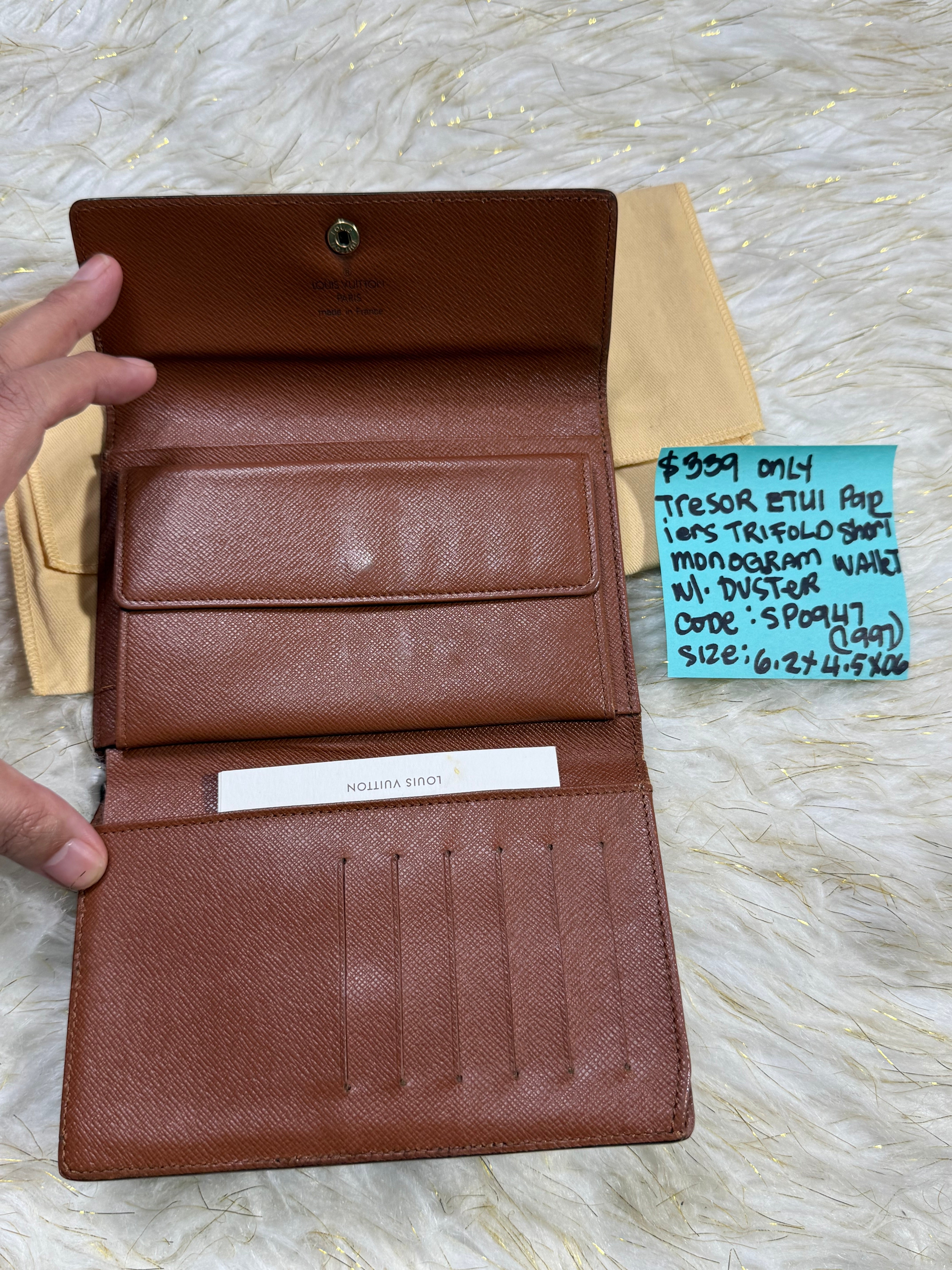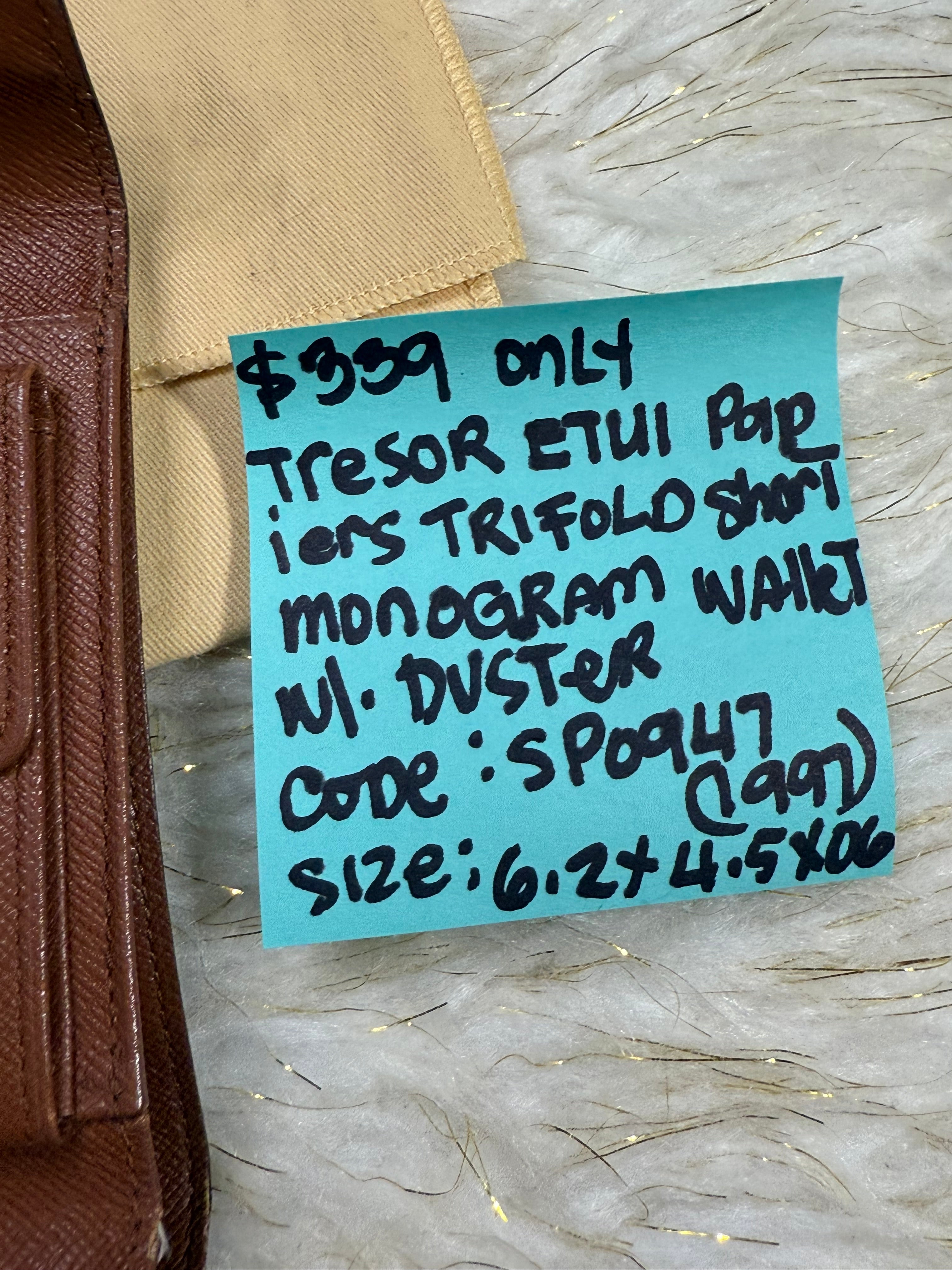 Looking for Short Small Wallet check this Louis Vuitton Tressor Trifold monogram wallet is the one and is so perfect for ur bag to be match. With duster included.