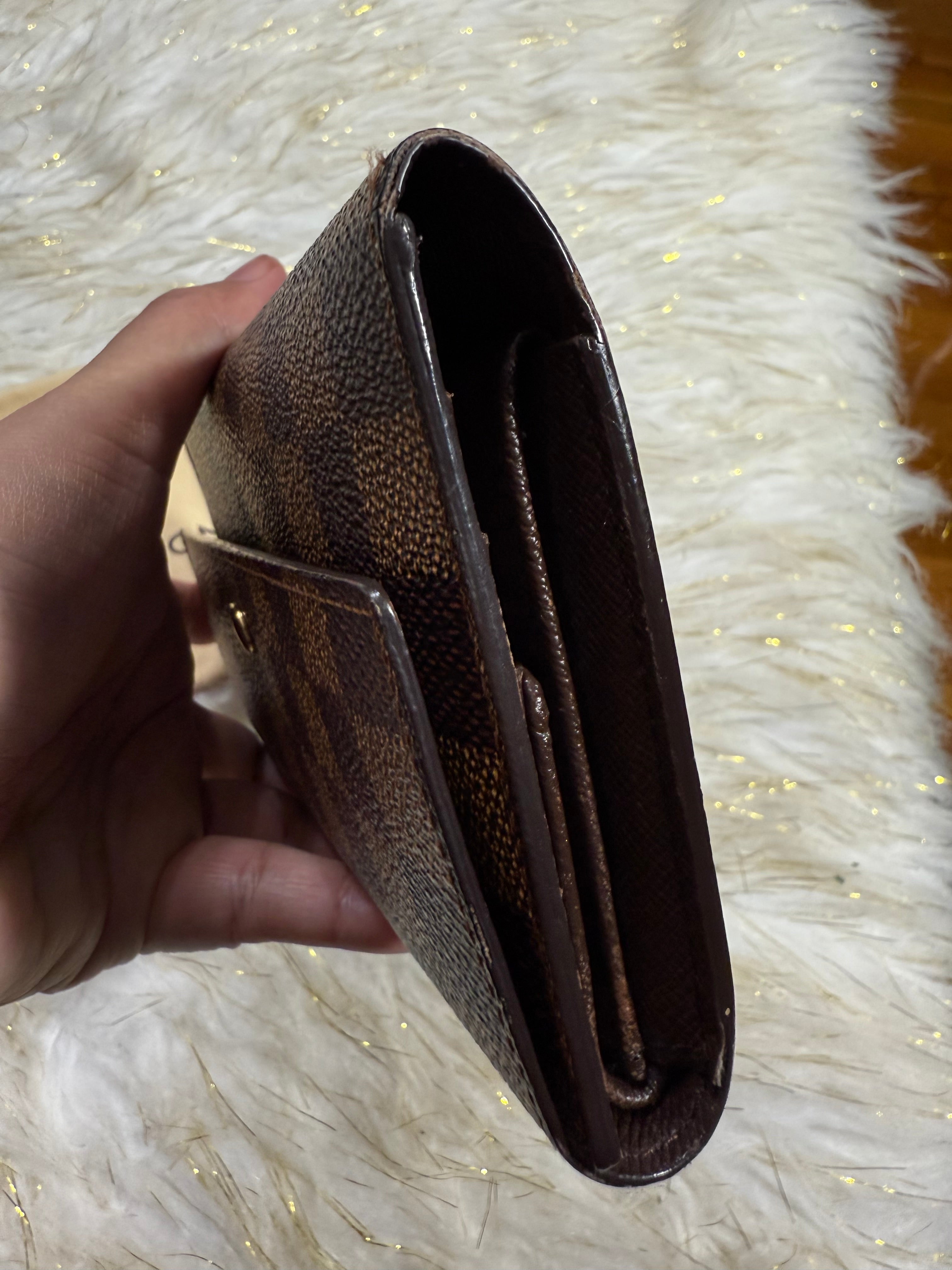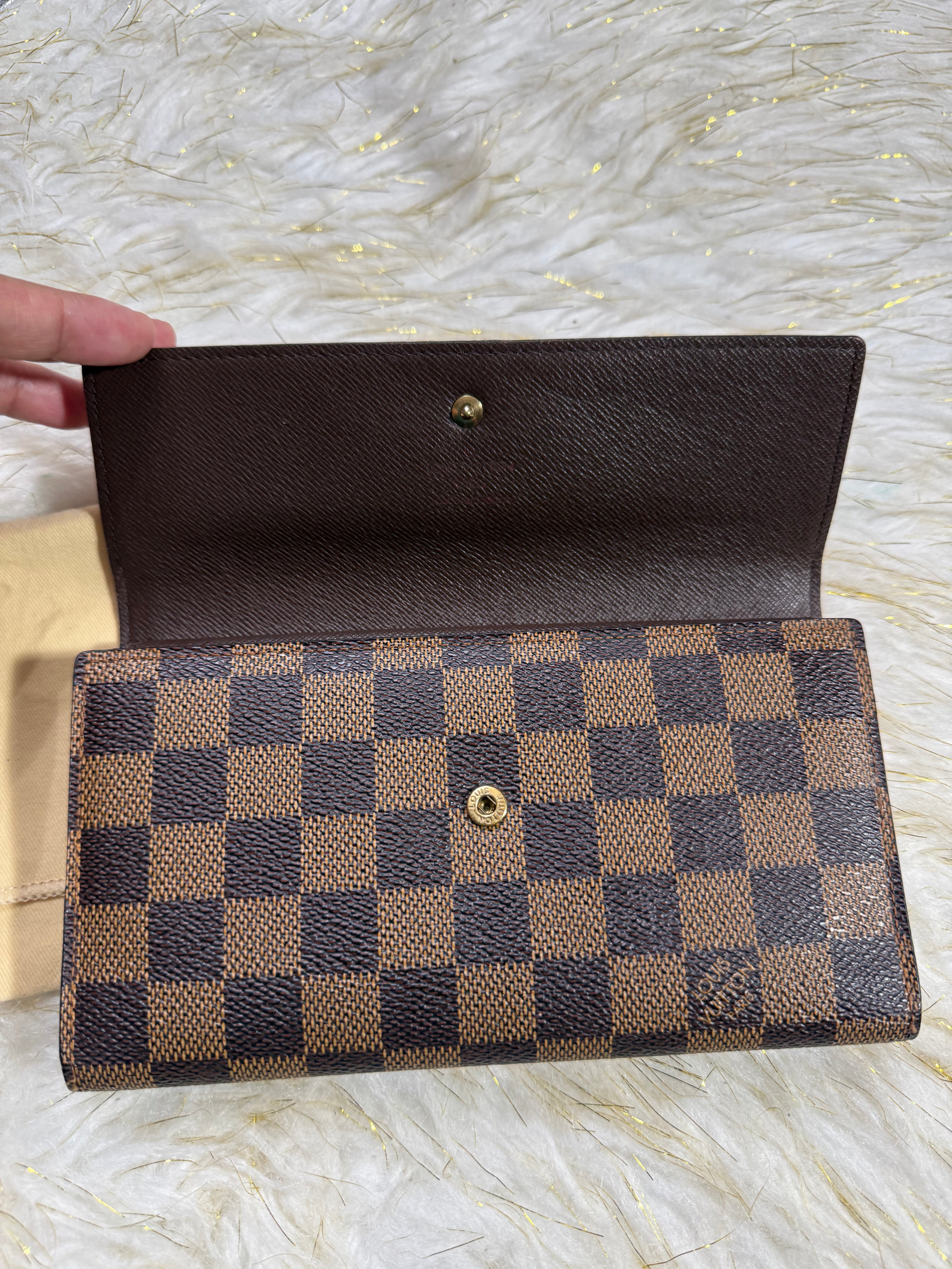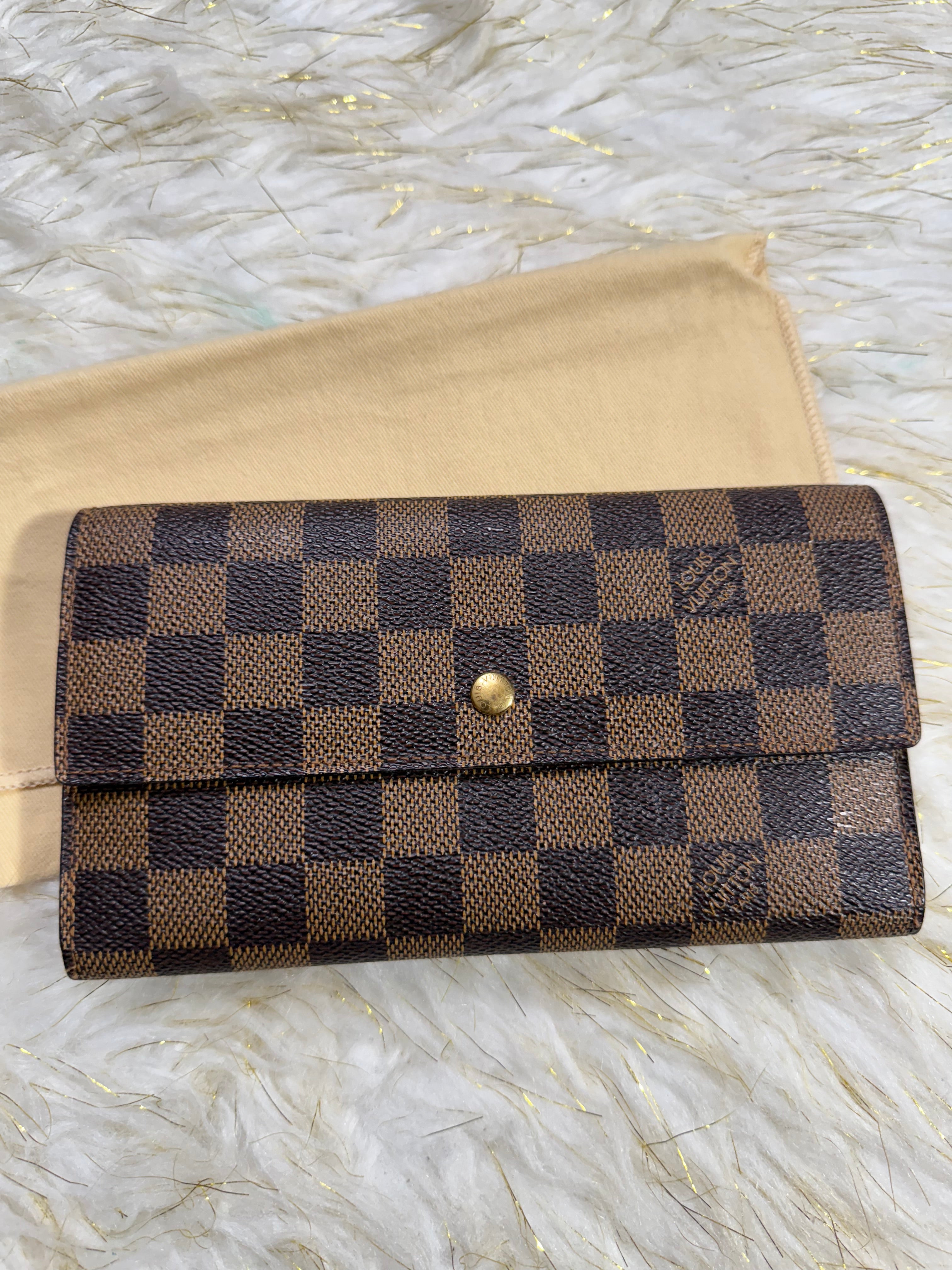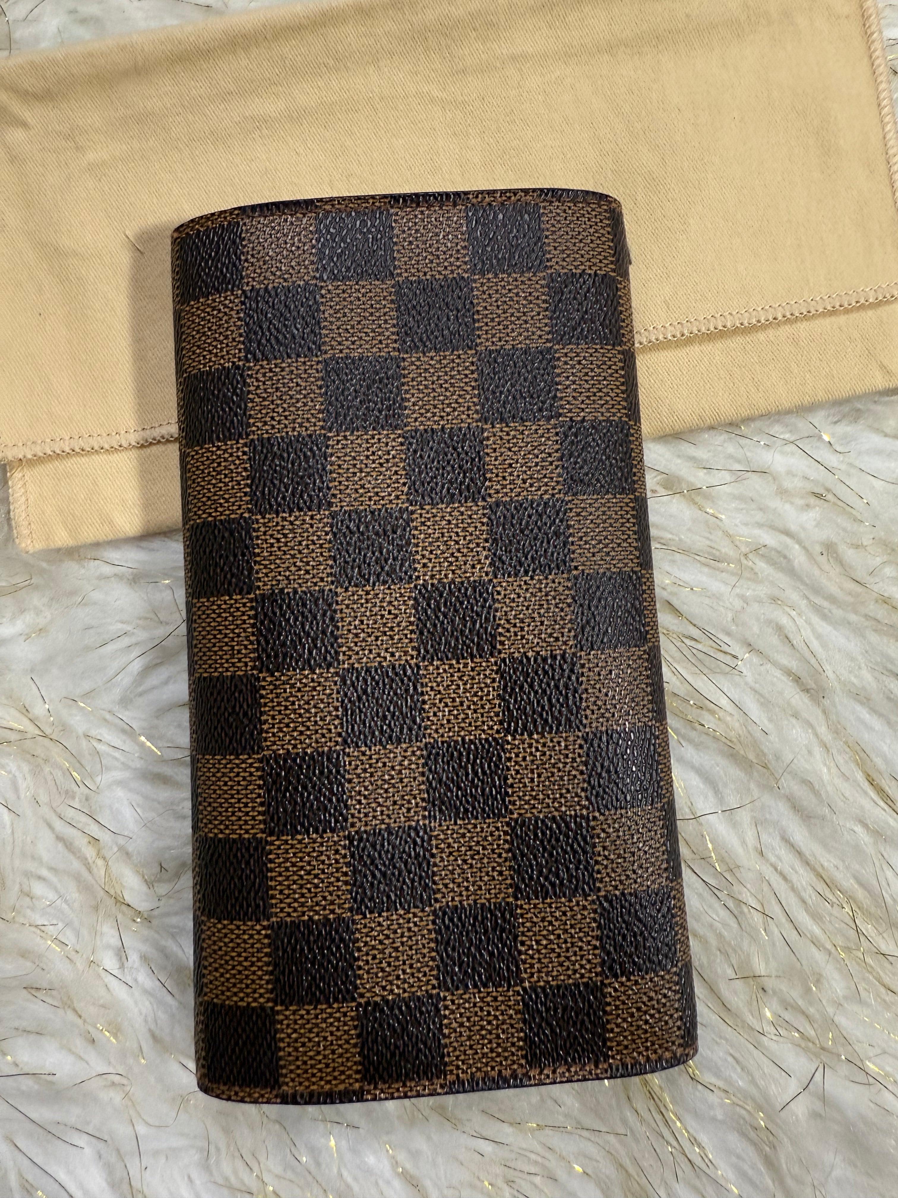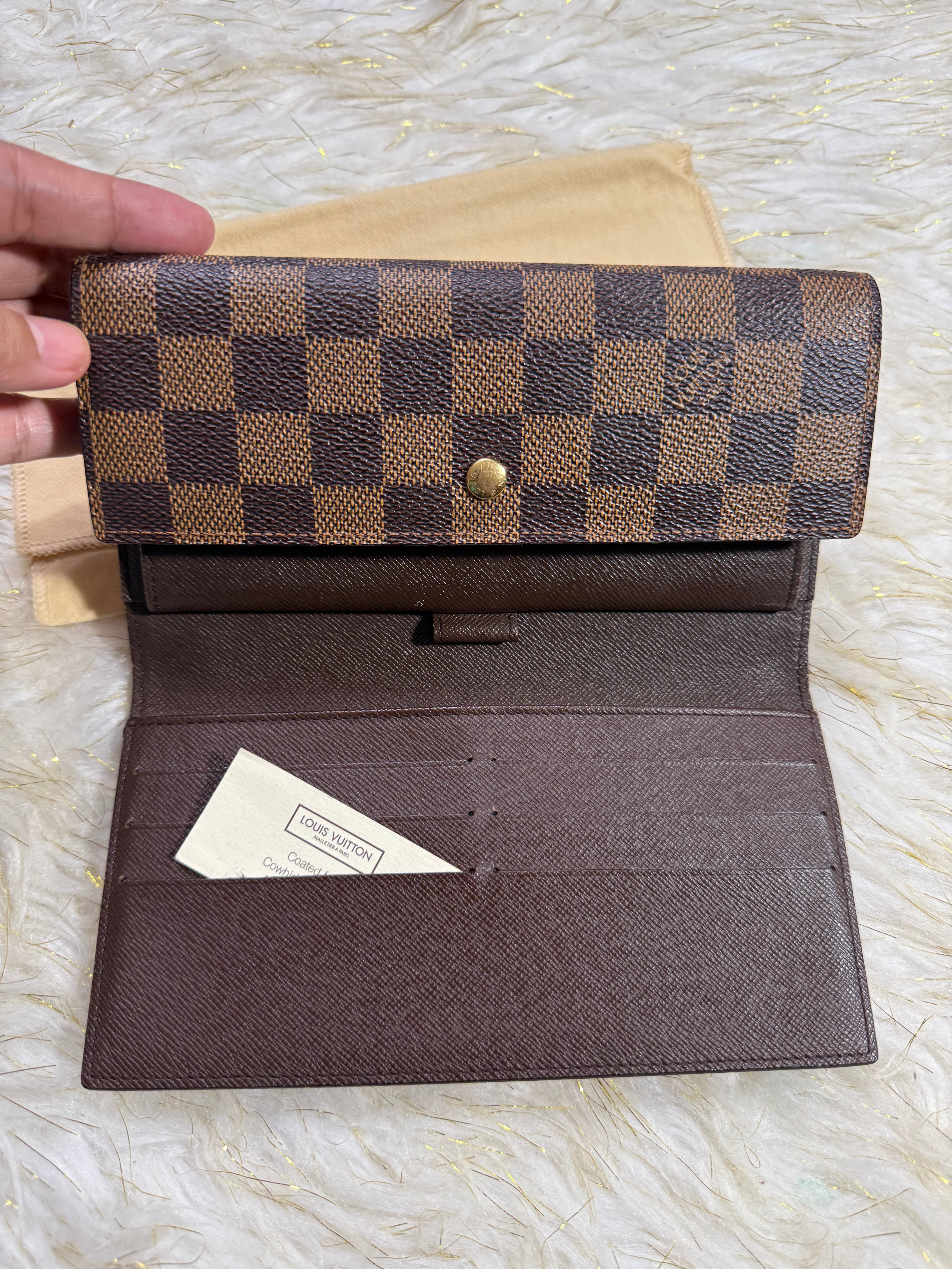 Check this Preloved Louis Vuitton Tresor Trifold DE Damier ebeneu wallet if you want long wallet this one is so perfect for ur bag to be match With duster included.