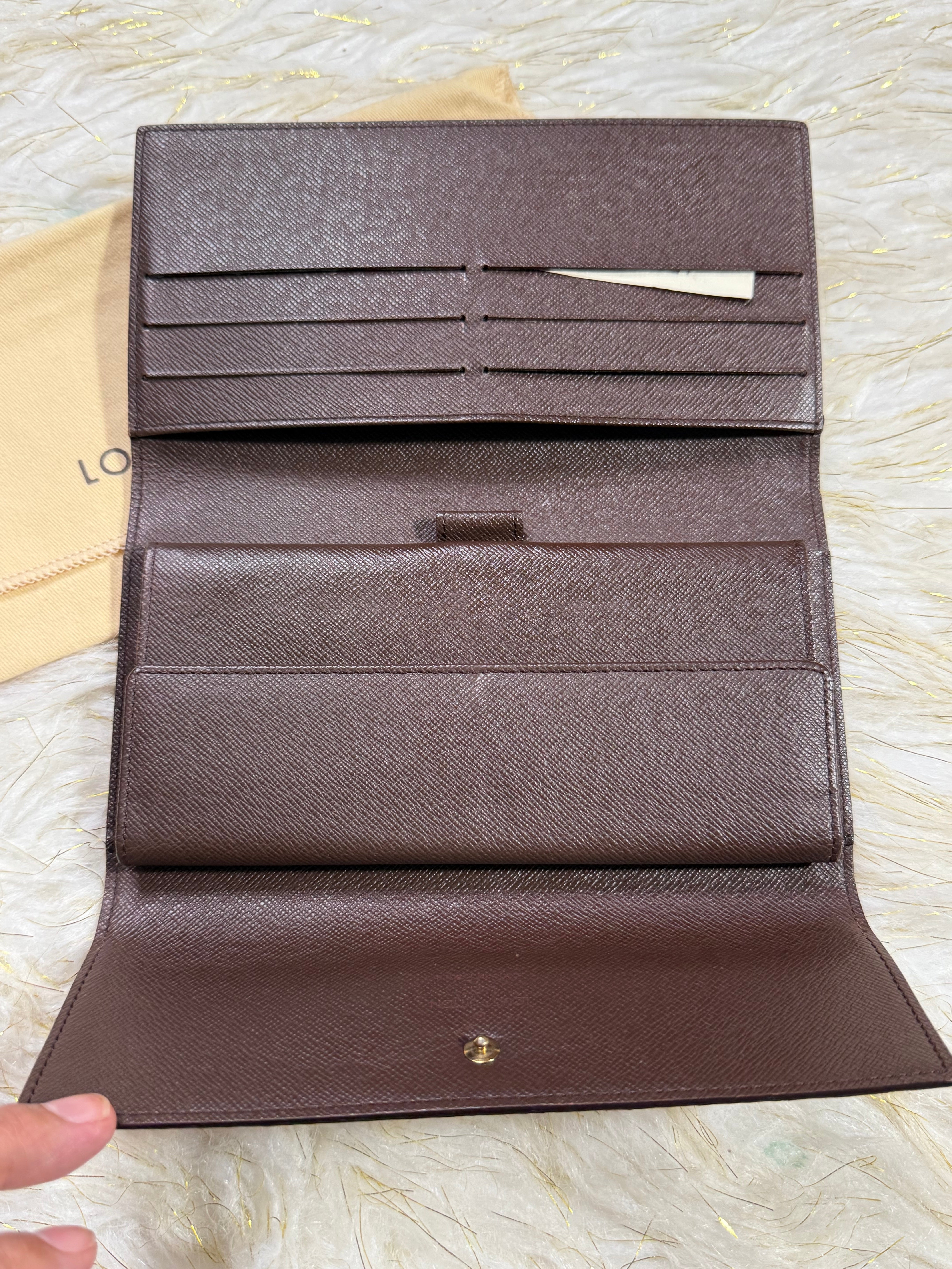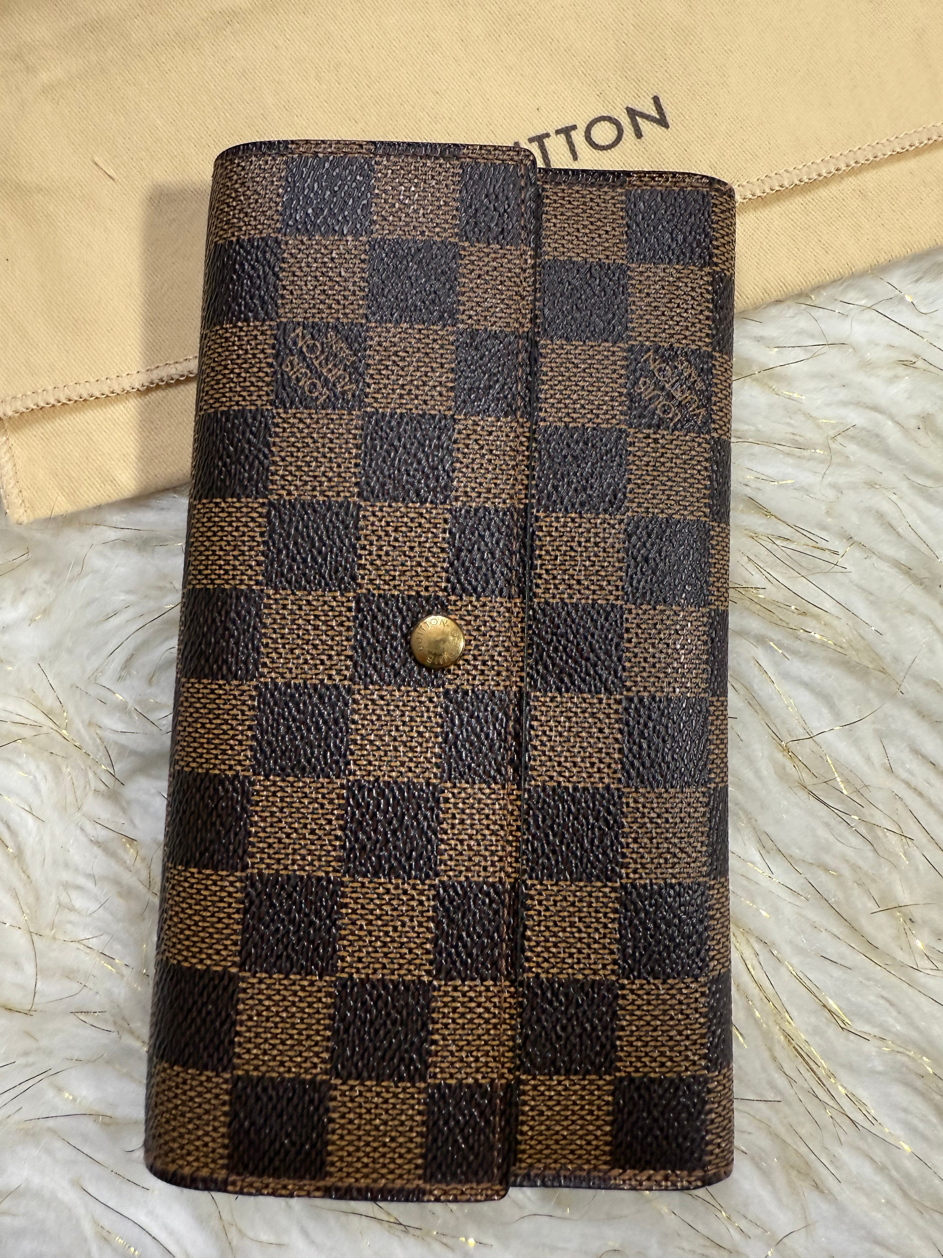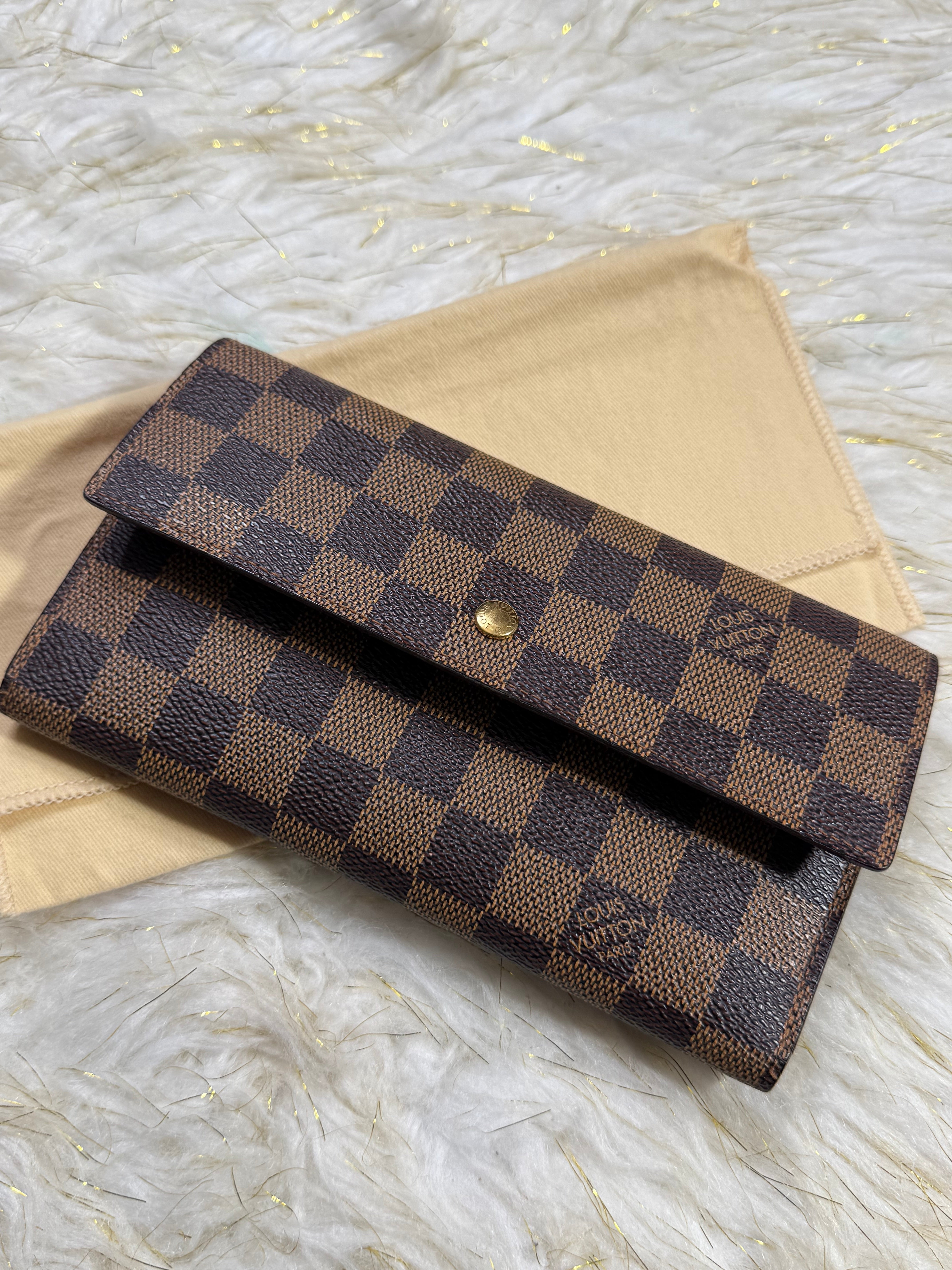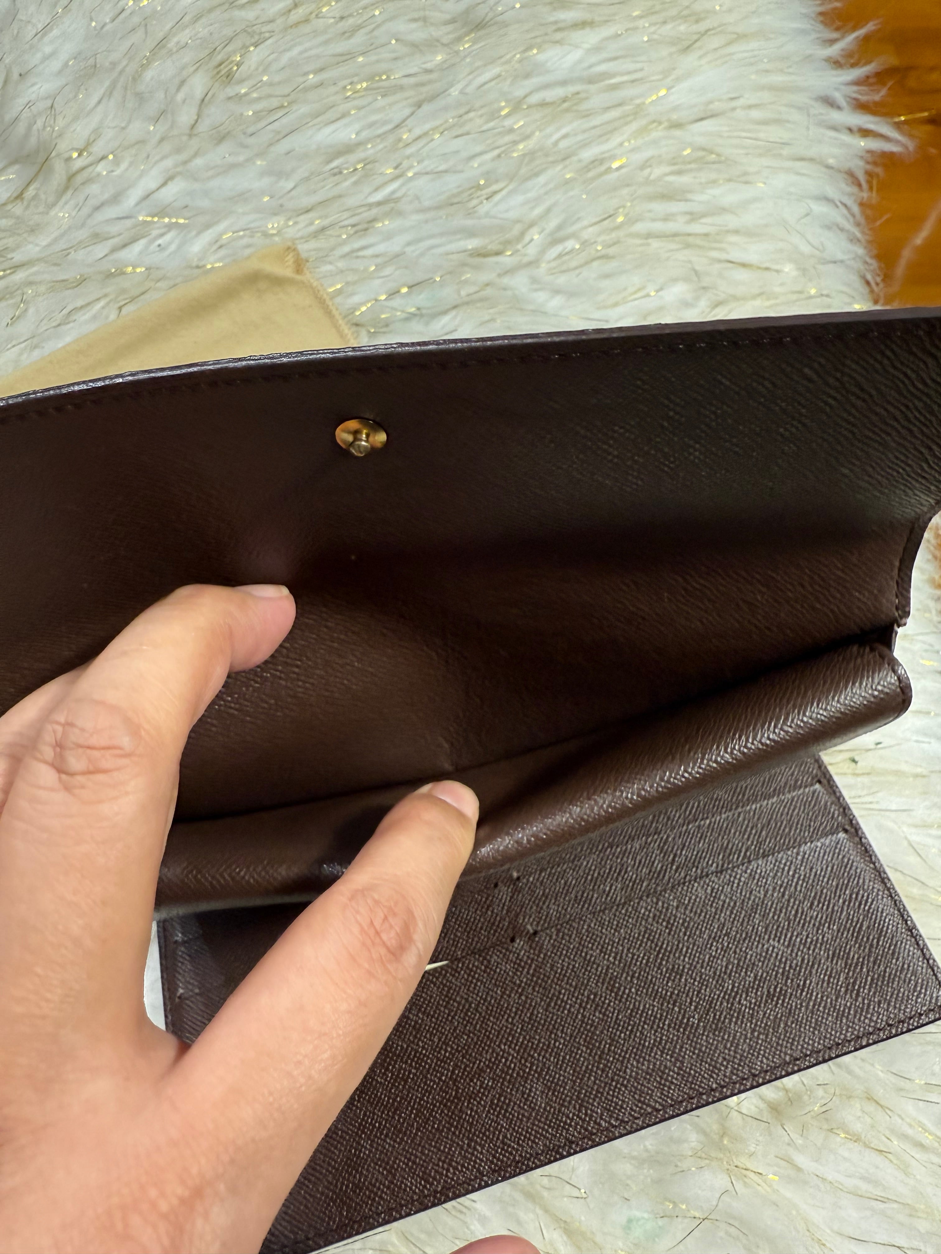 Check this Preloved Louis Vuitton Tresor Trifold DE Damier ebeneu wallet if you want long wallet this one is so perfect for ur bag to be match With duster included.