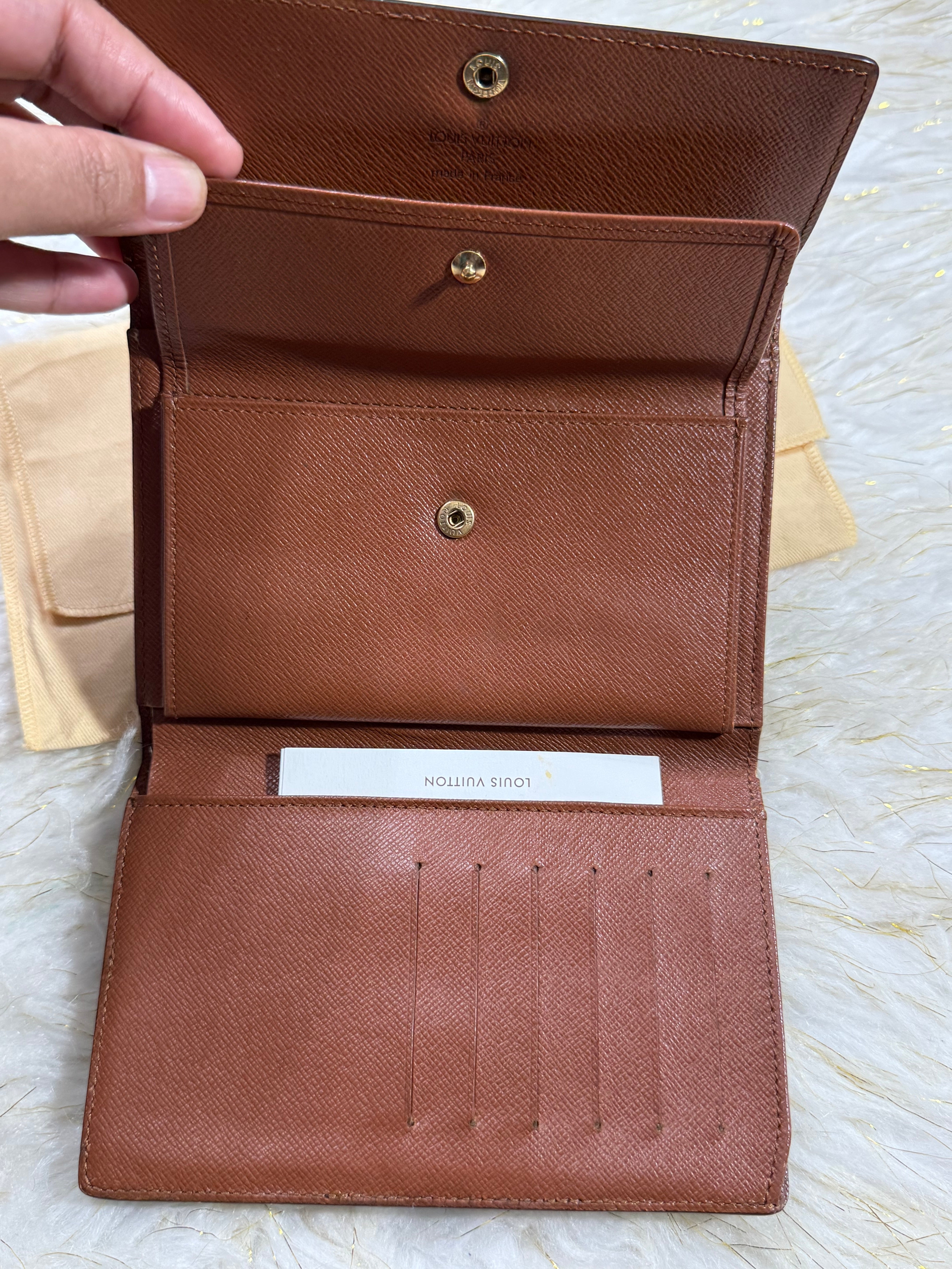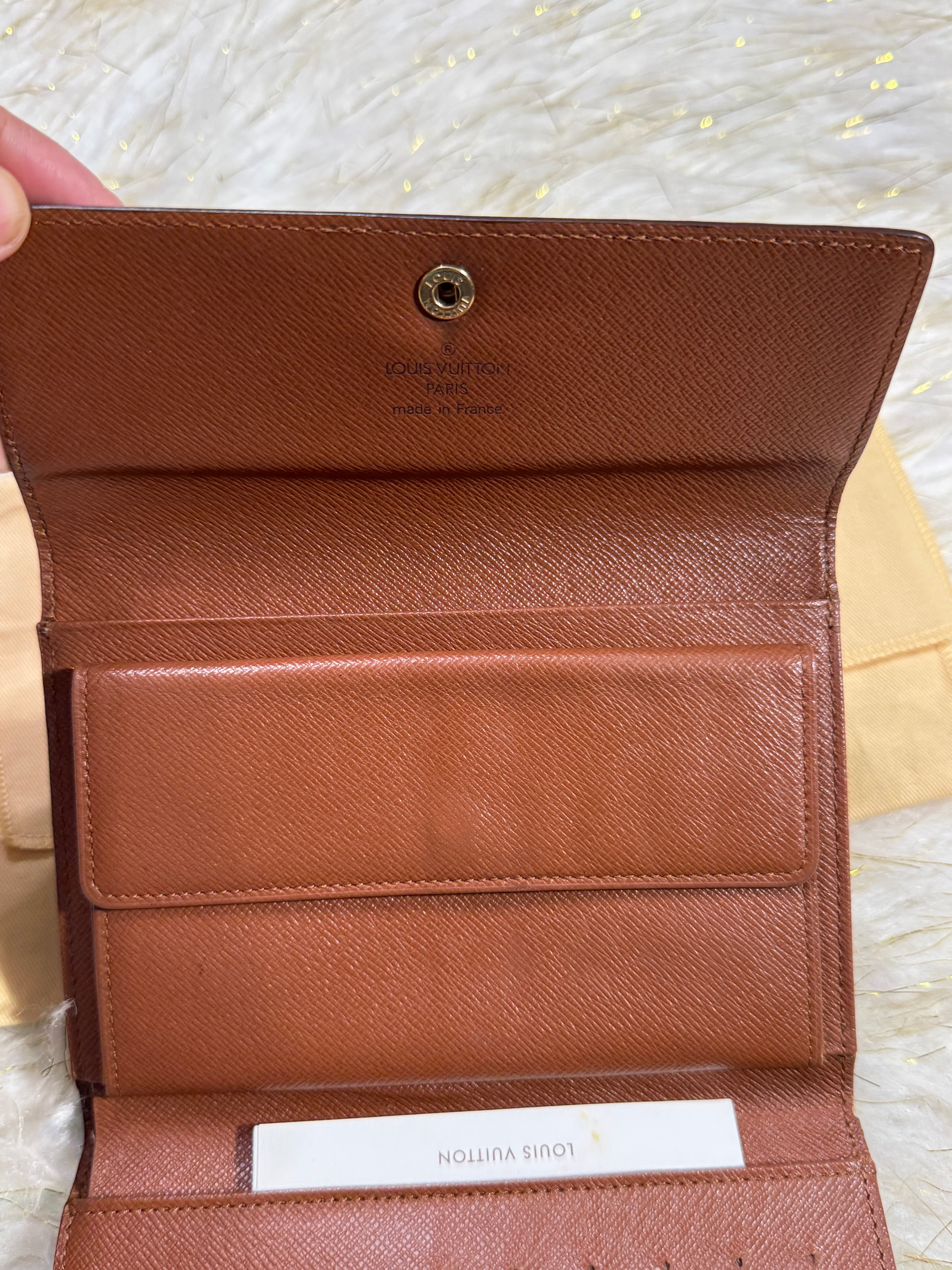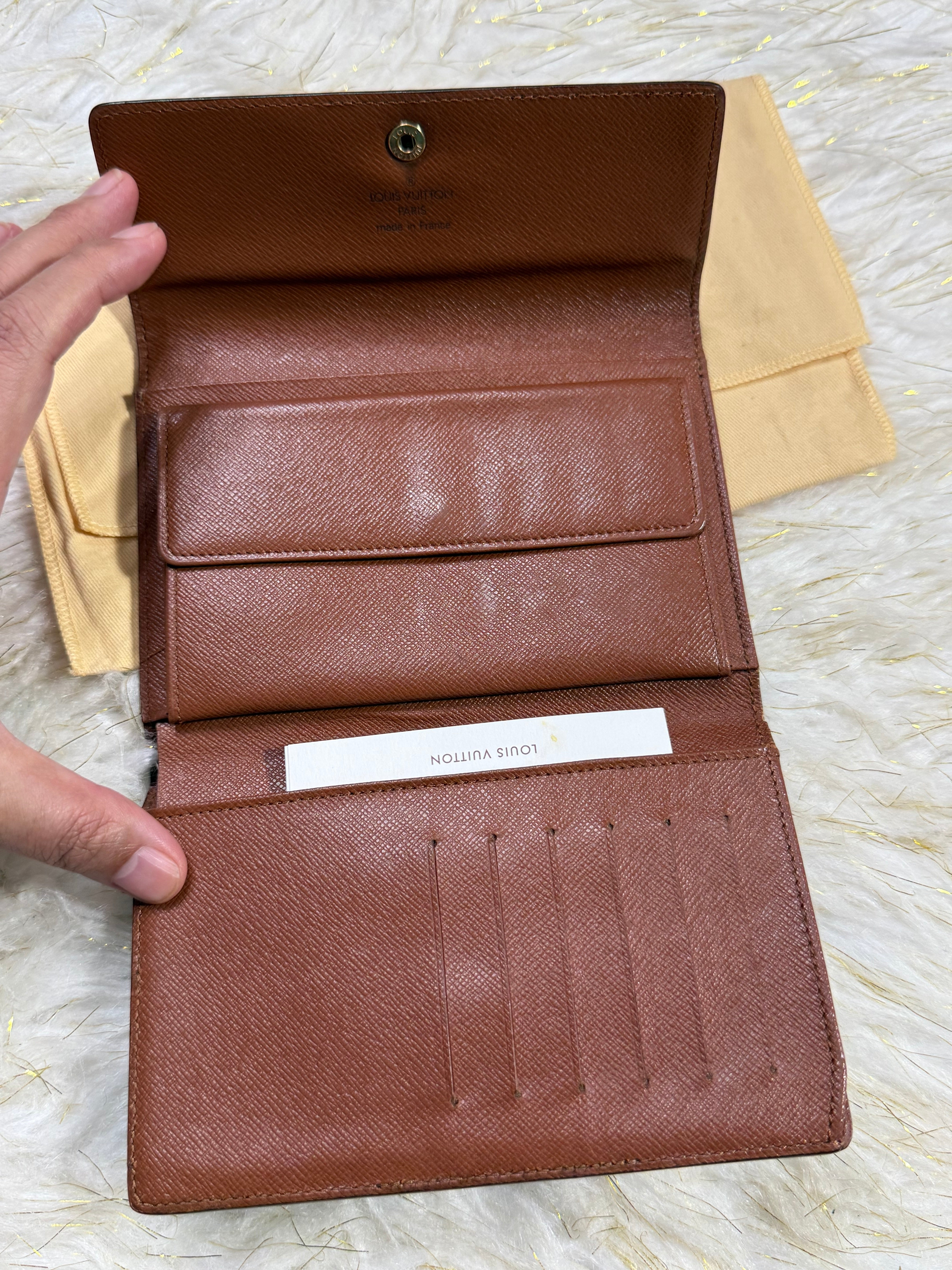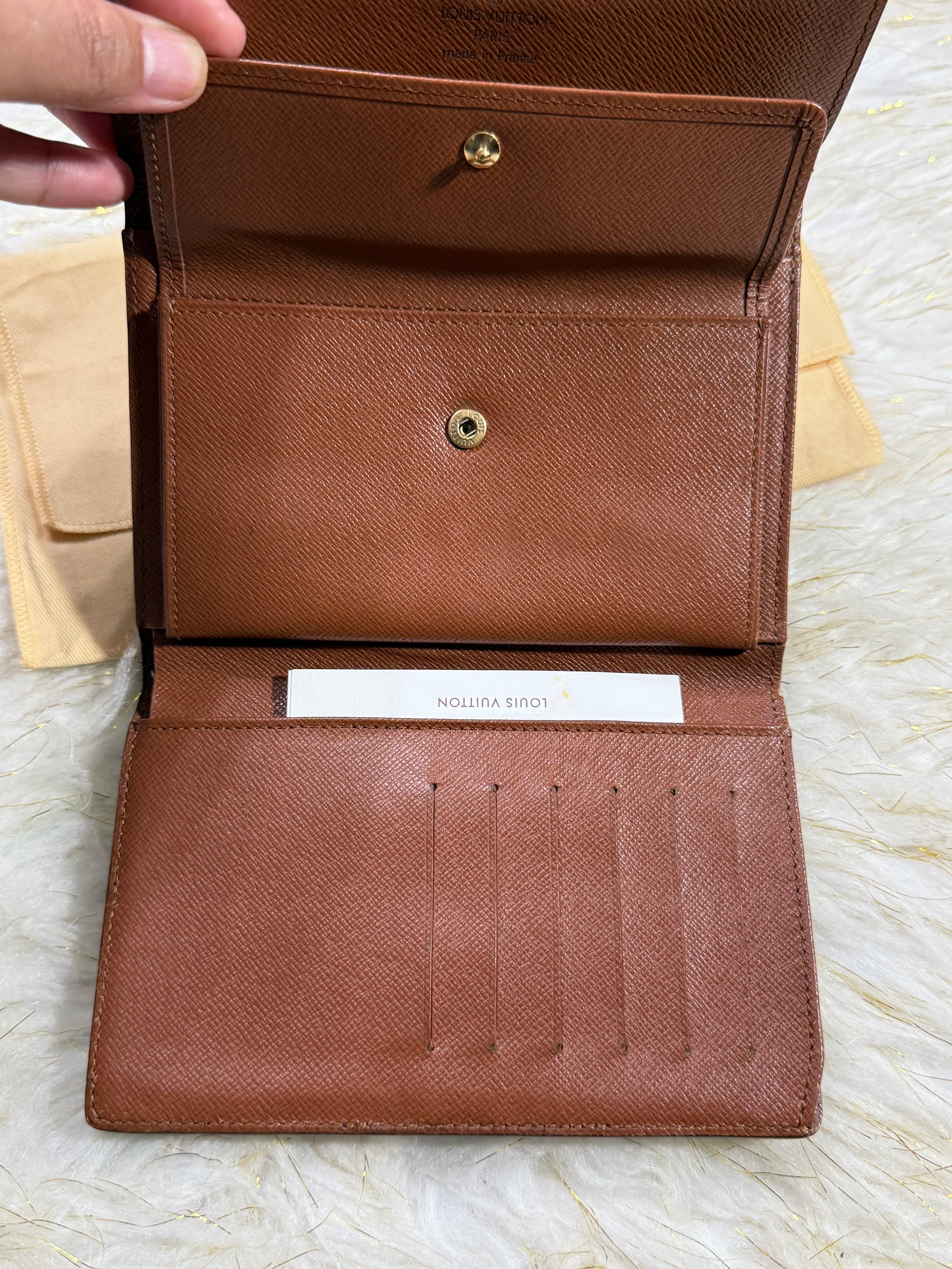 Check this Beautiful Louis Vuitton Tressor Trifold monogram wallet if you want small wallet this one is so perfect for ur bag to be match. With duster included.
