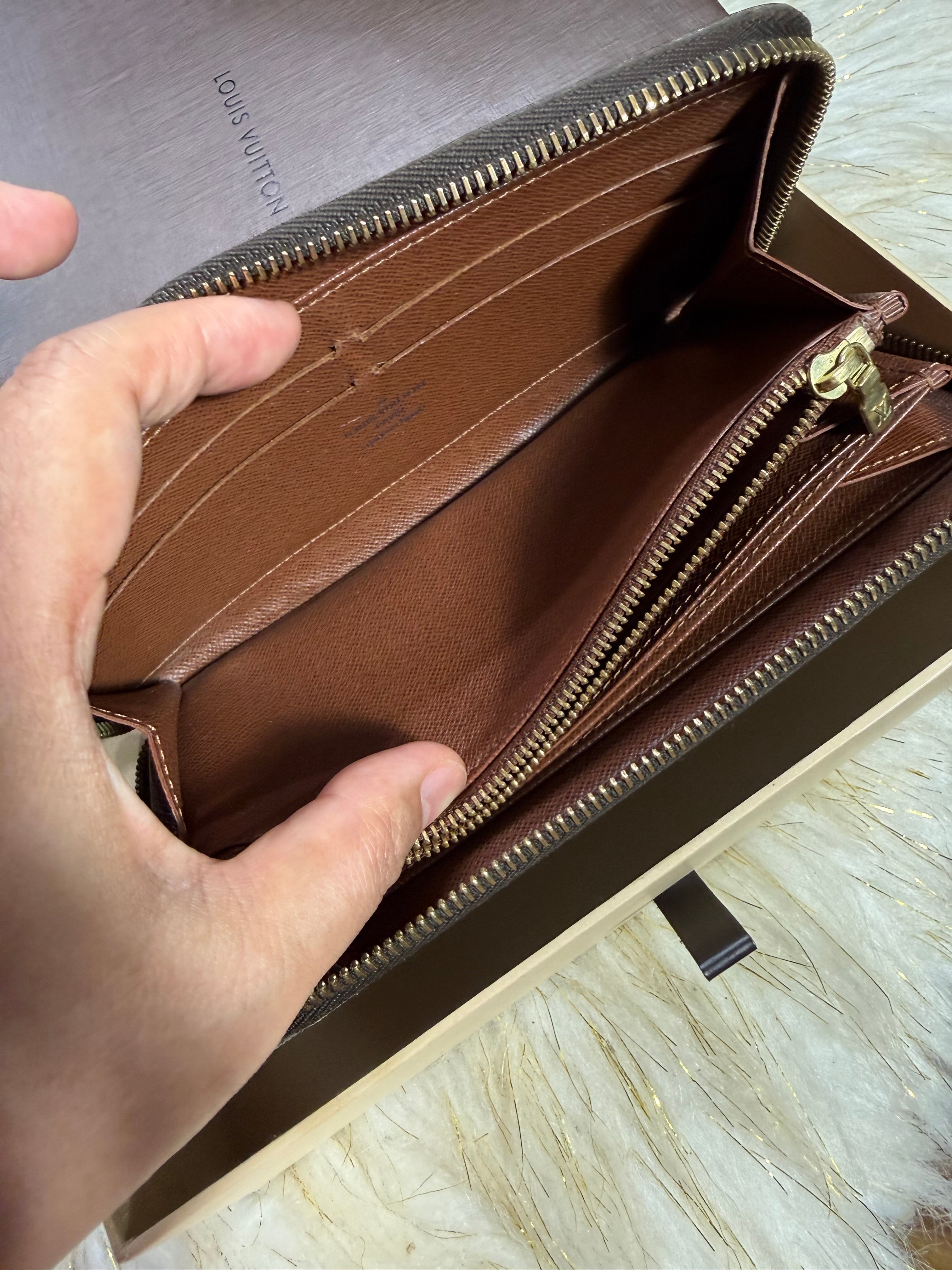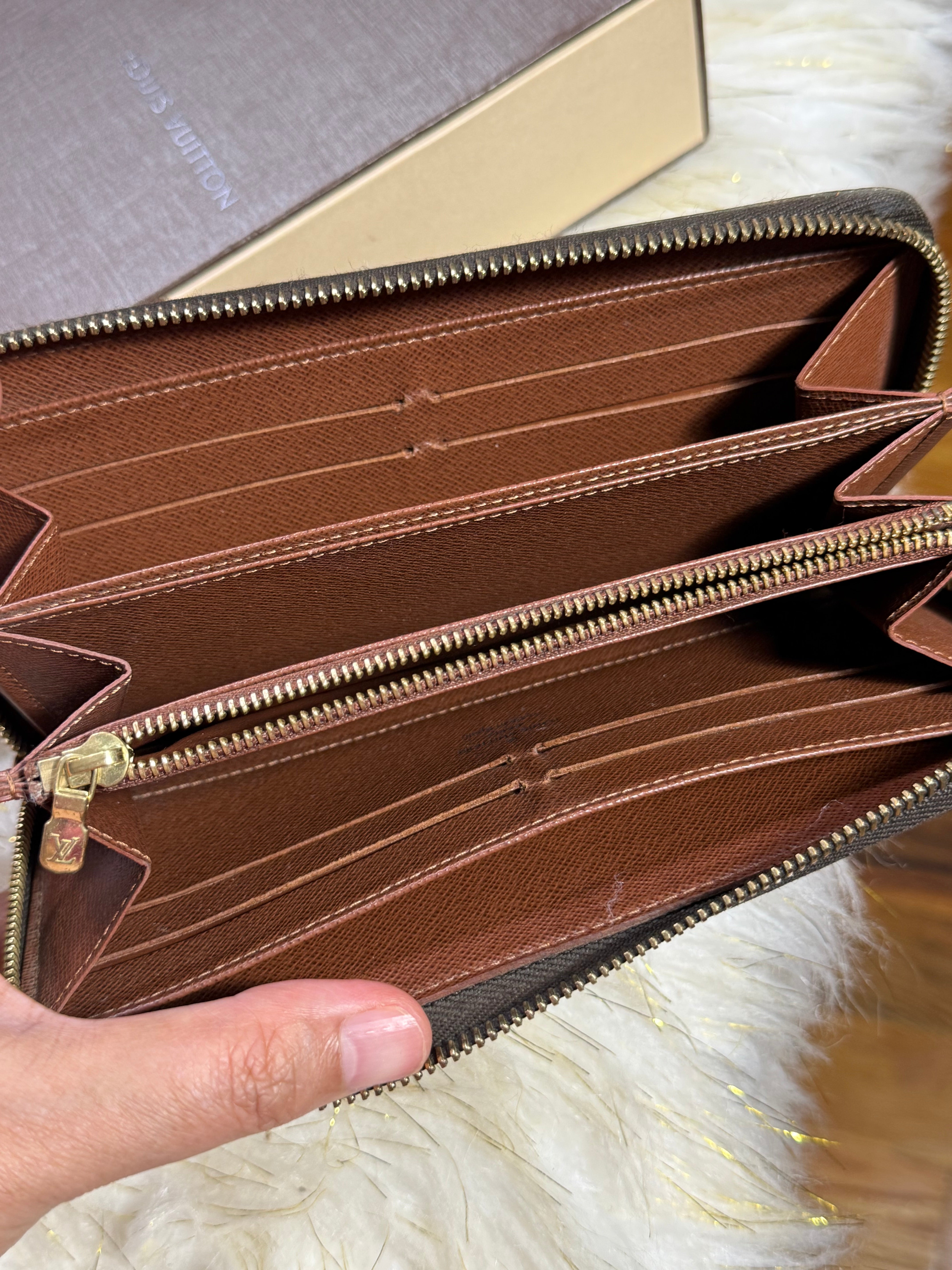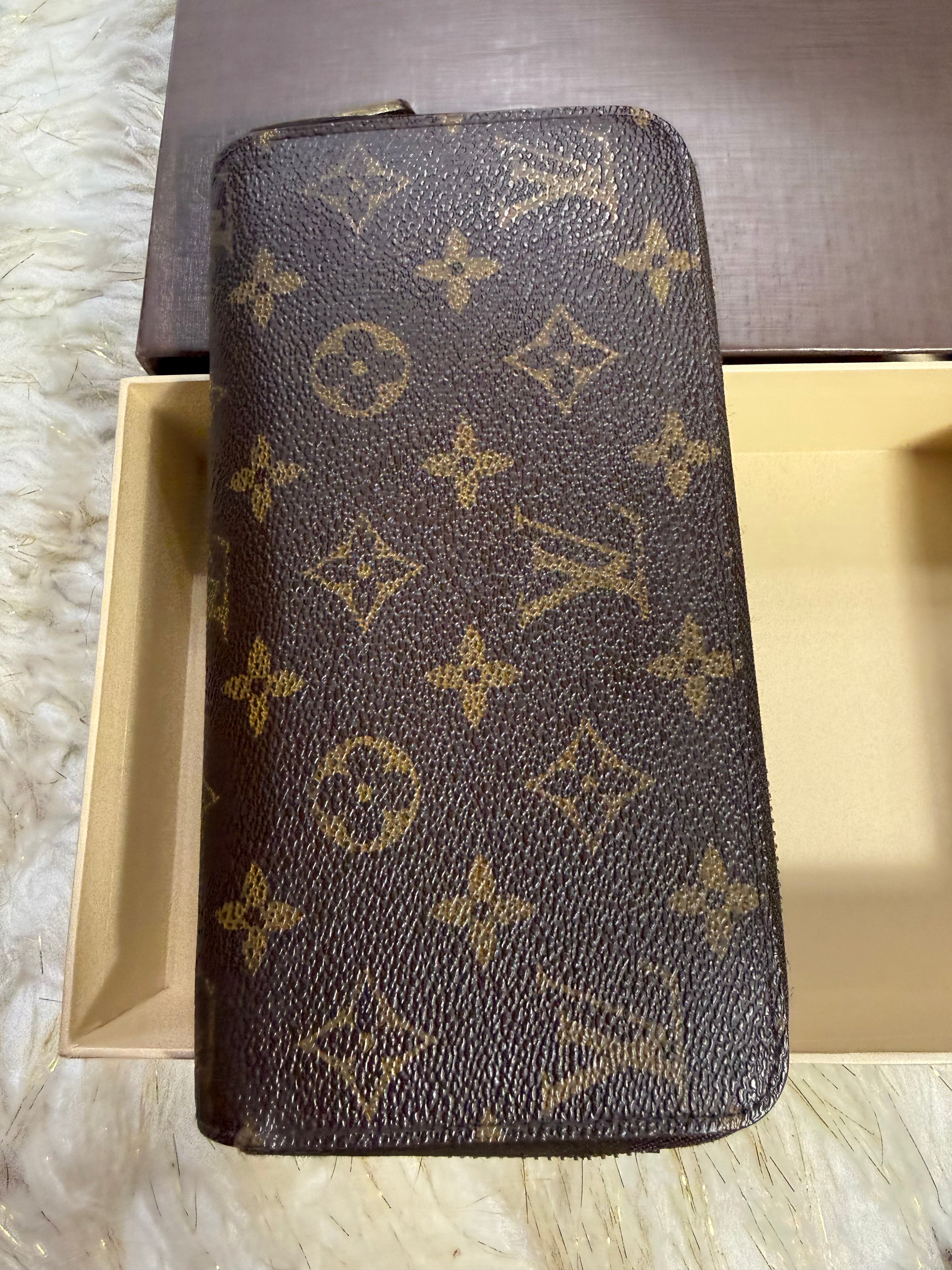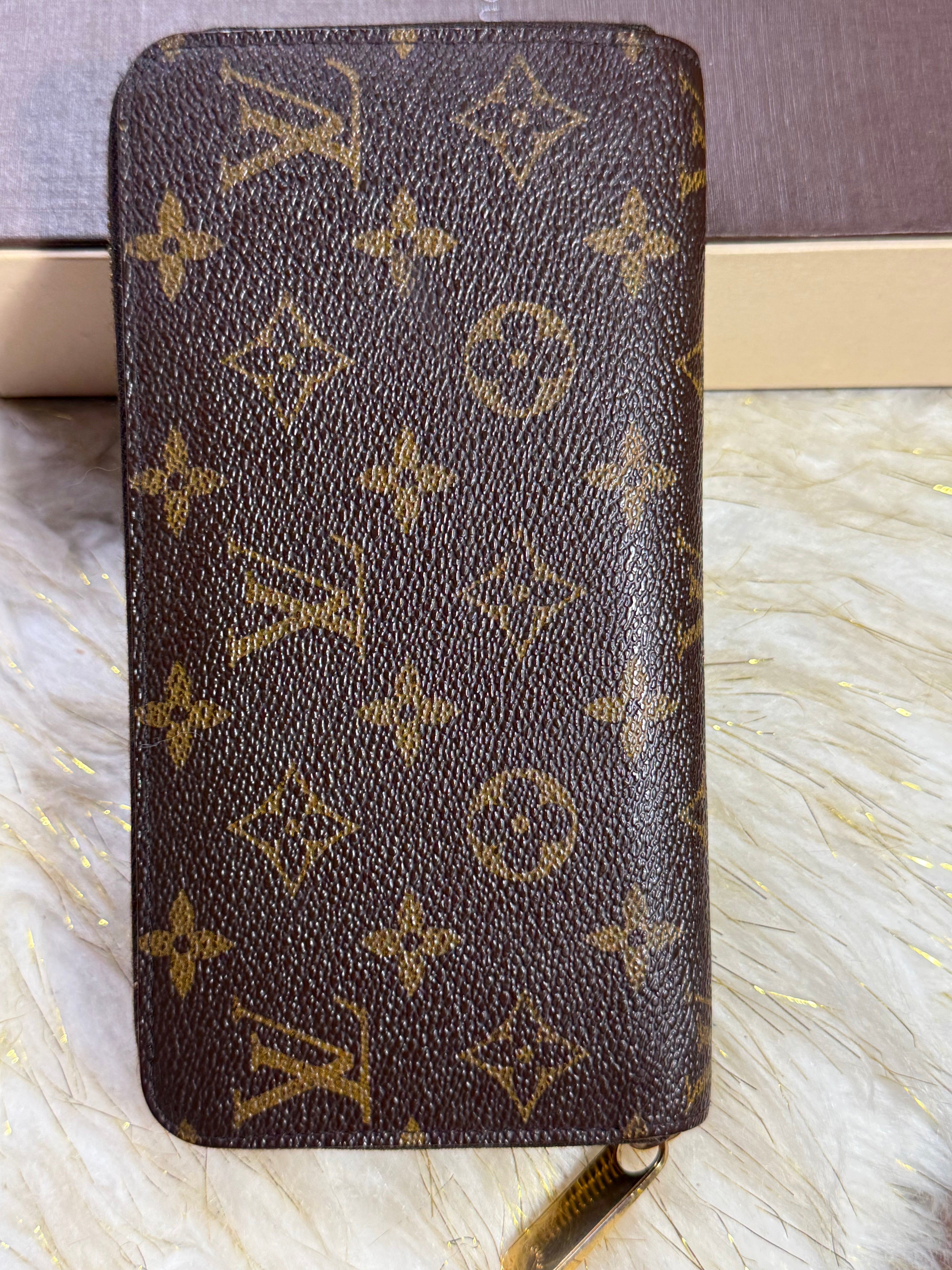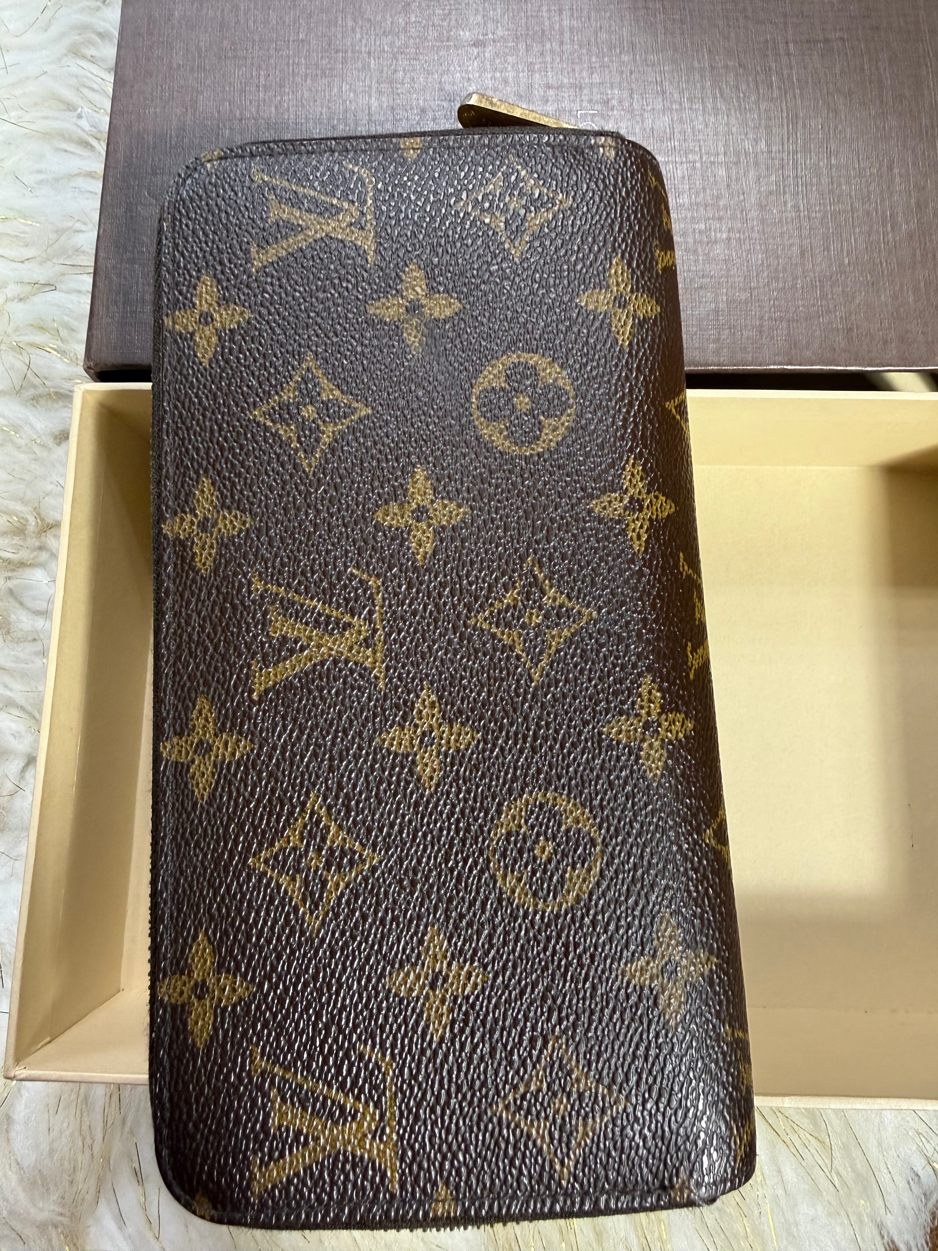 Auth. Preloved Louis Vuitton Zippy zip Brown Long Wallet Monogram with Box