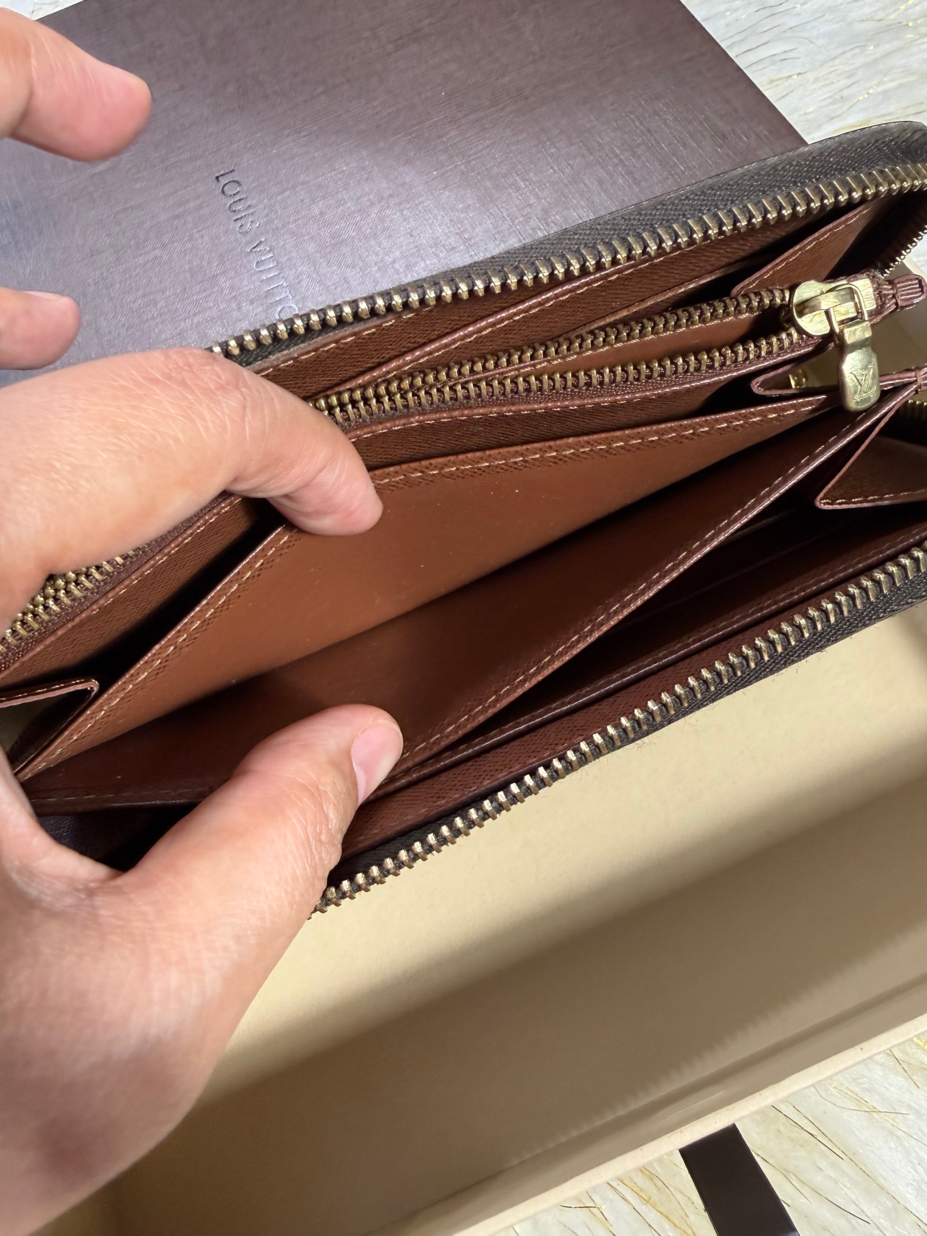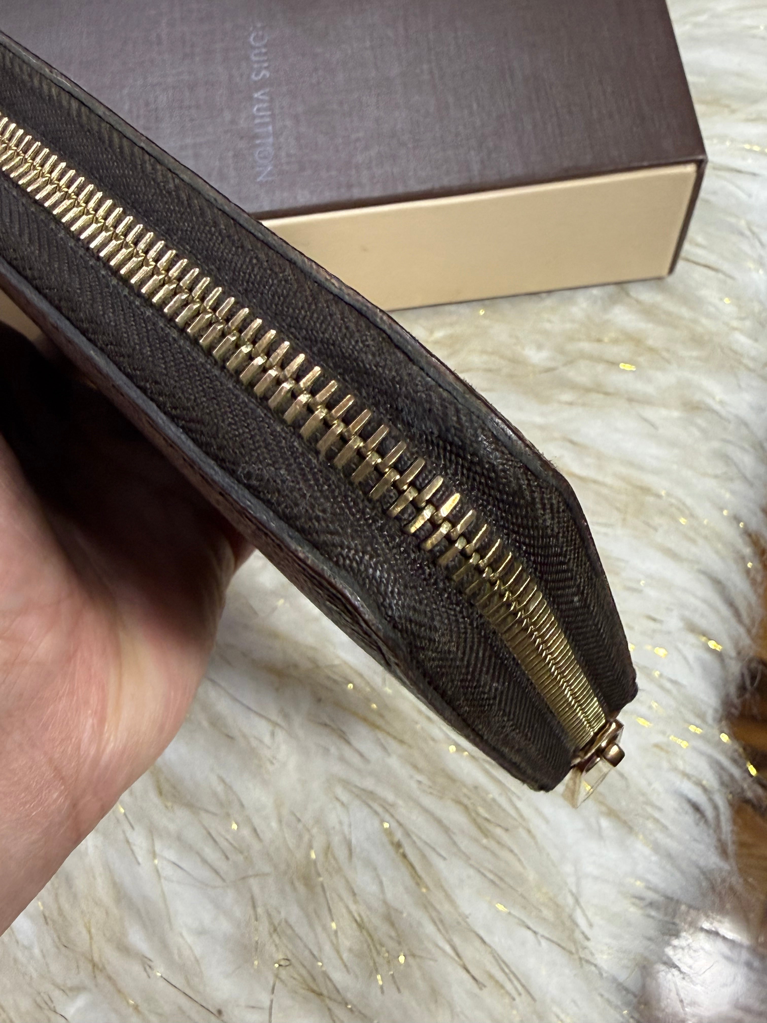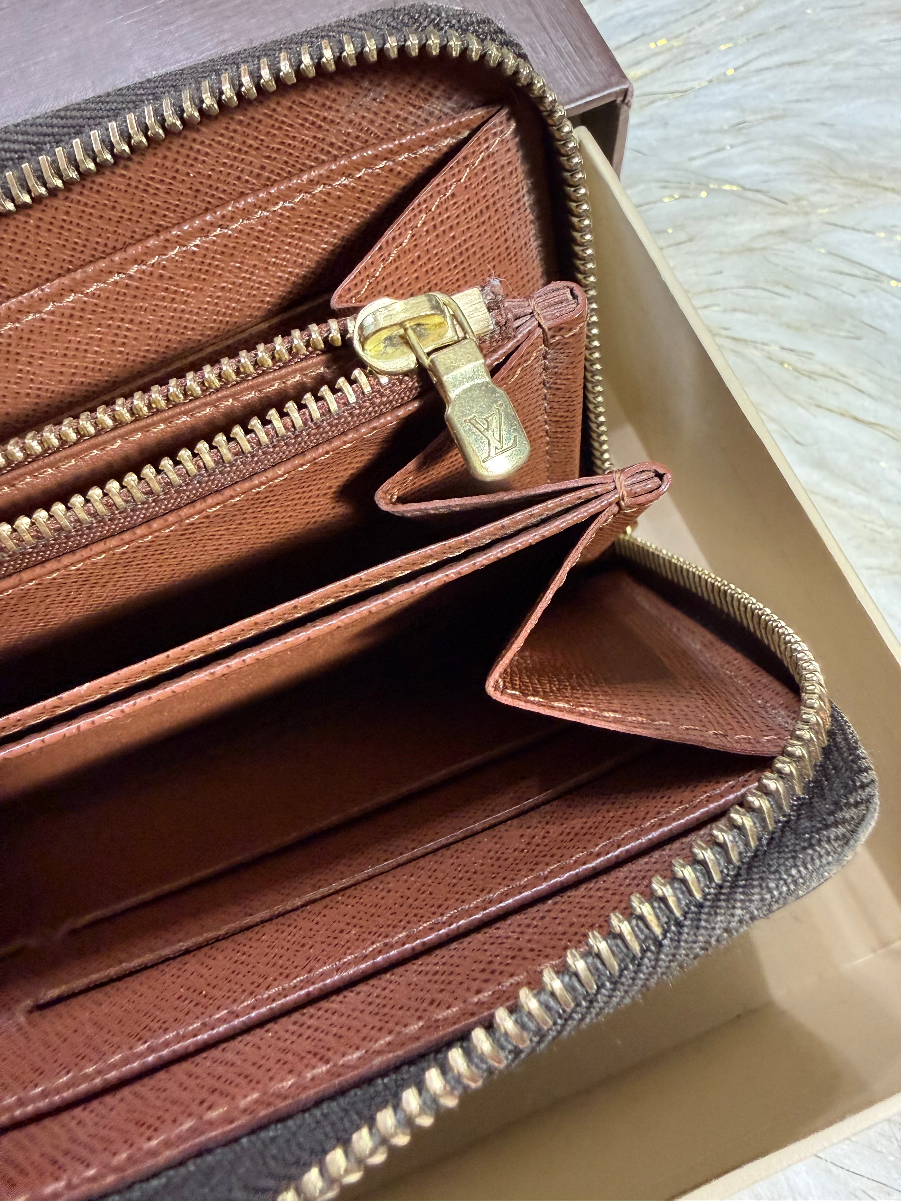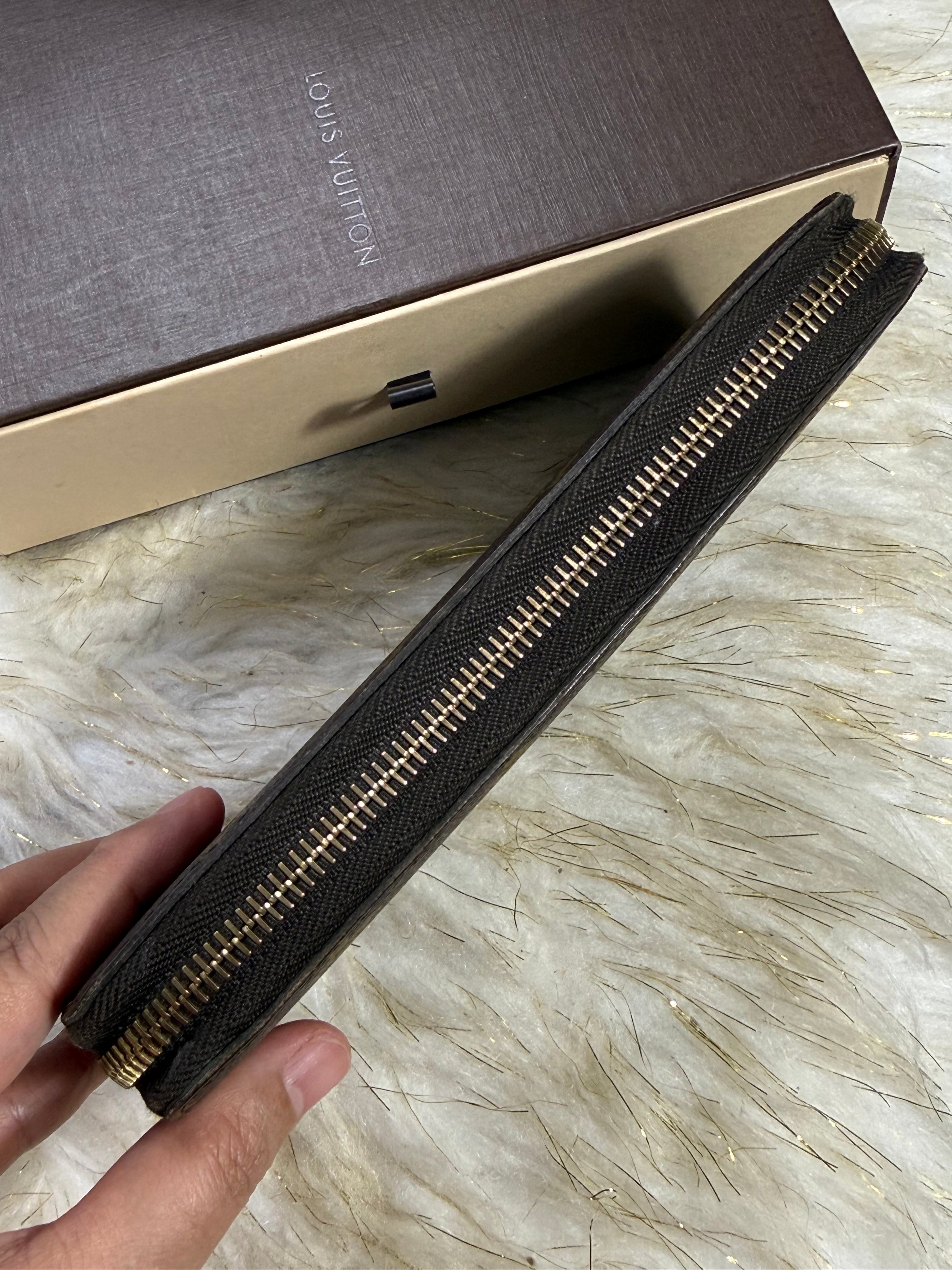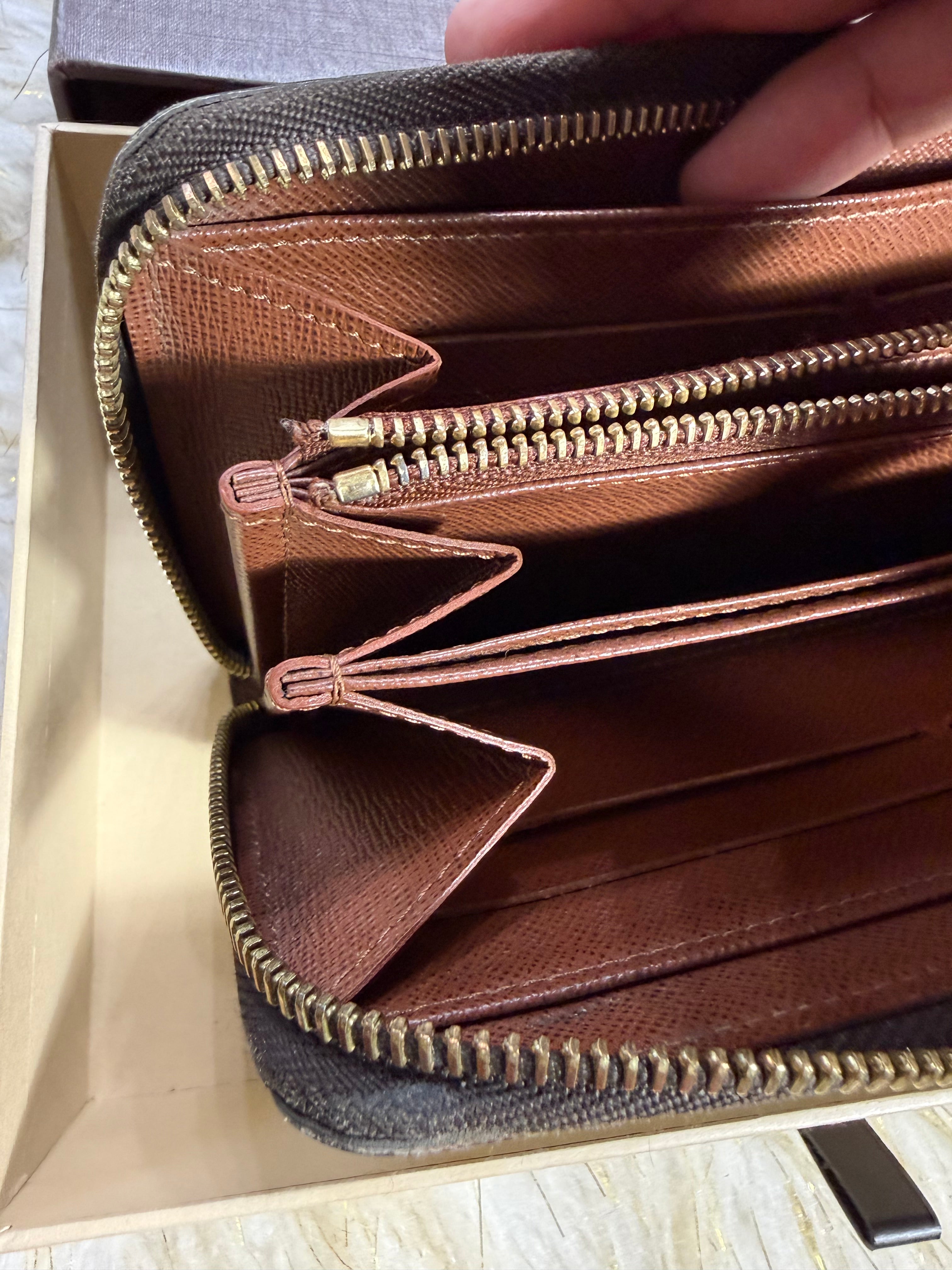 Auth. Preloved Louis Vuitton Zippy zip Brown Long Wallet Monogram with Box