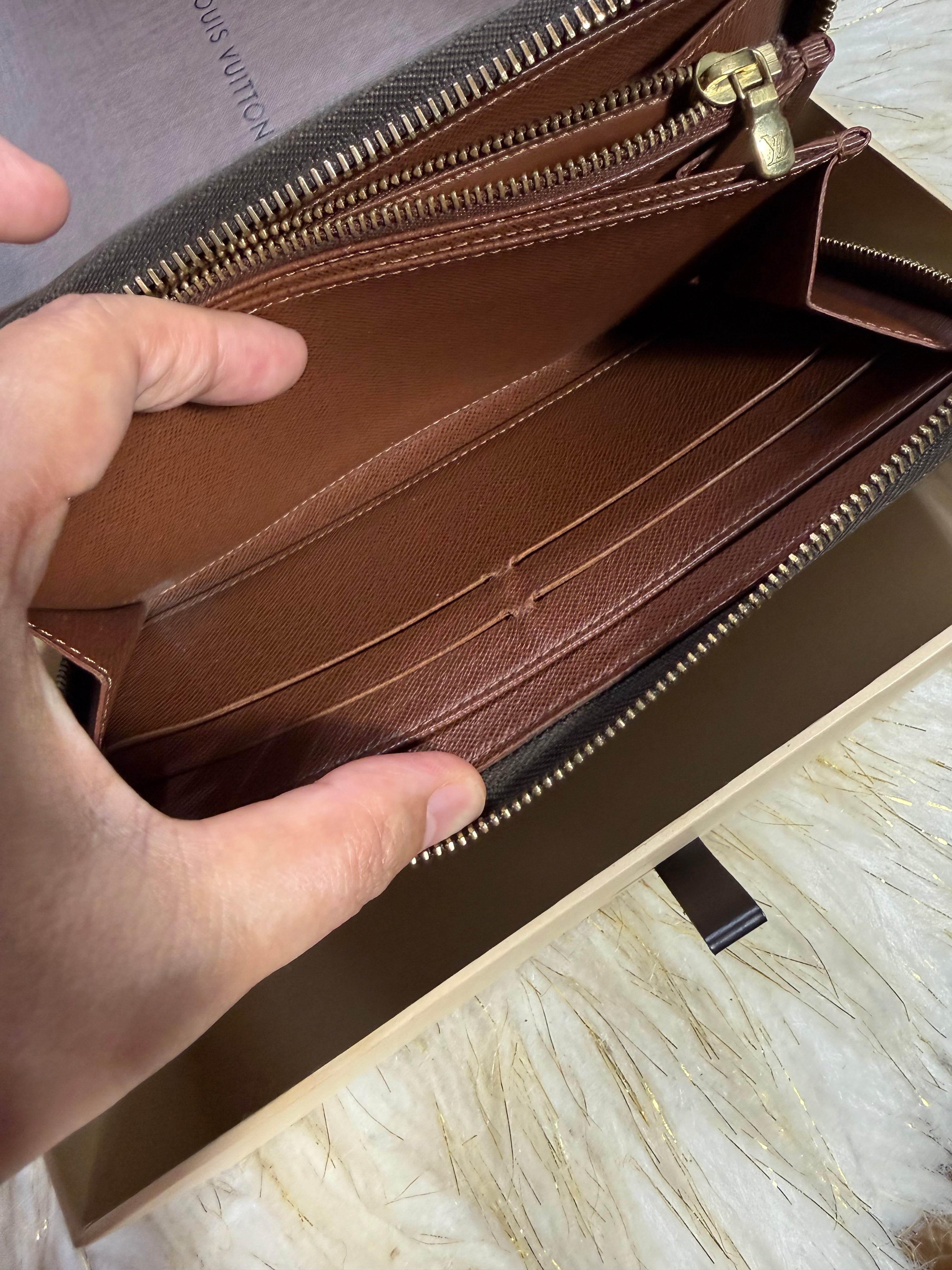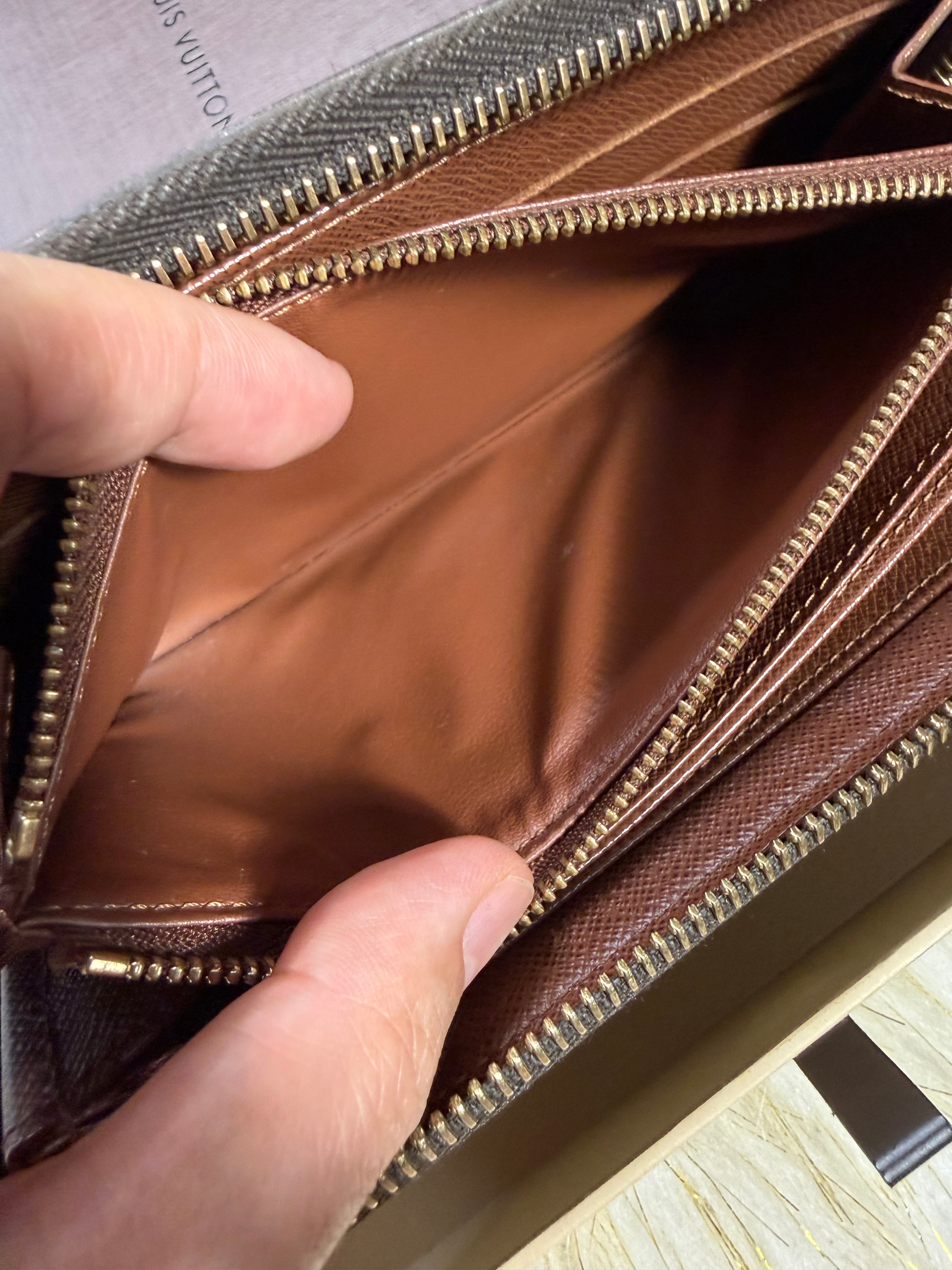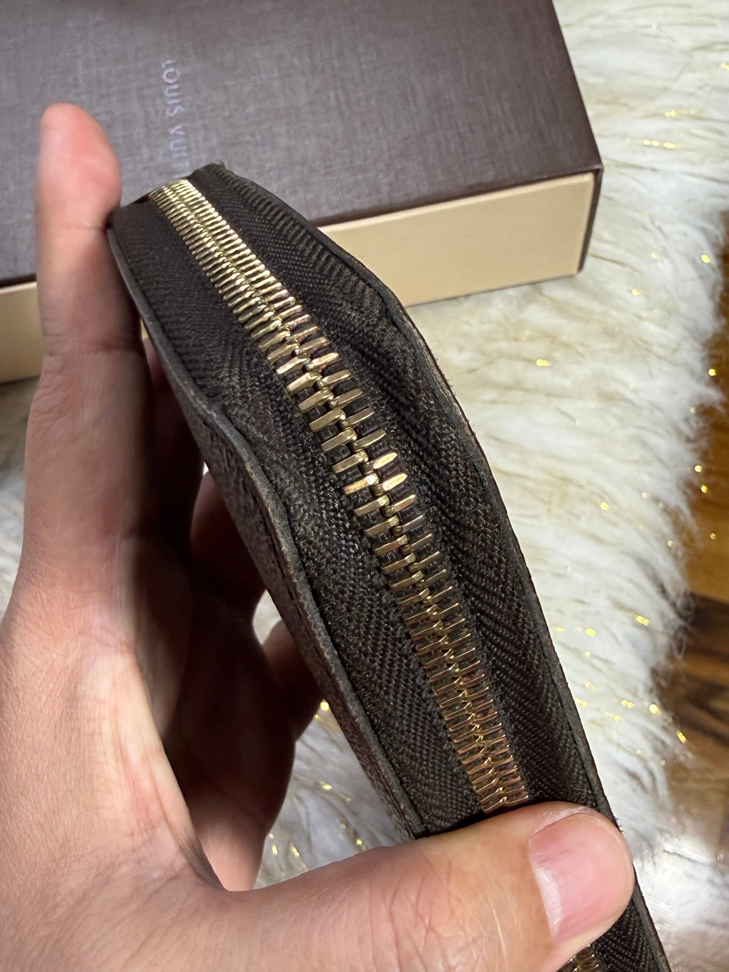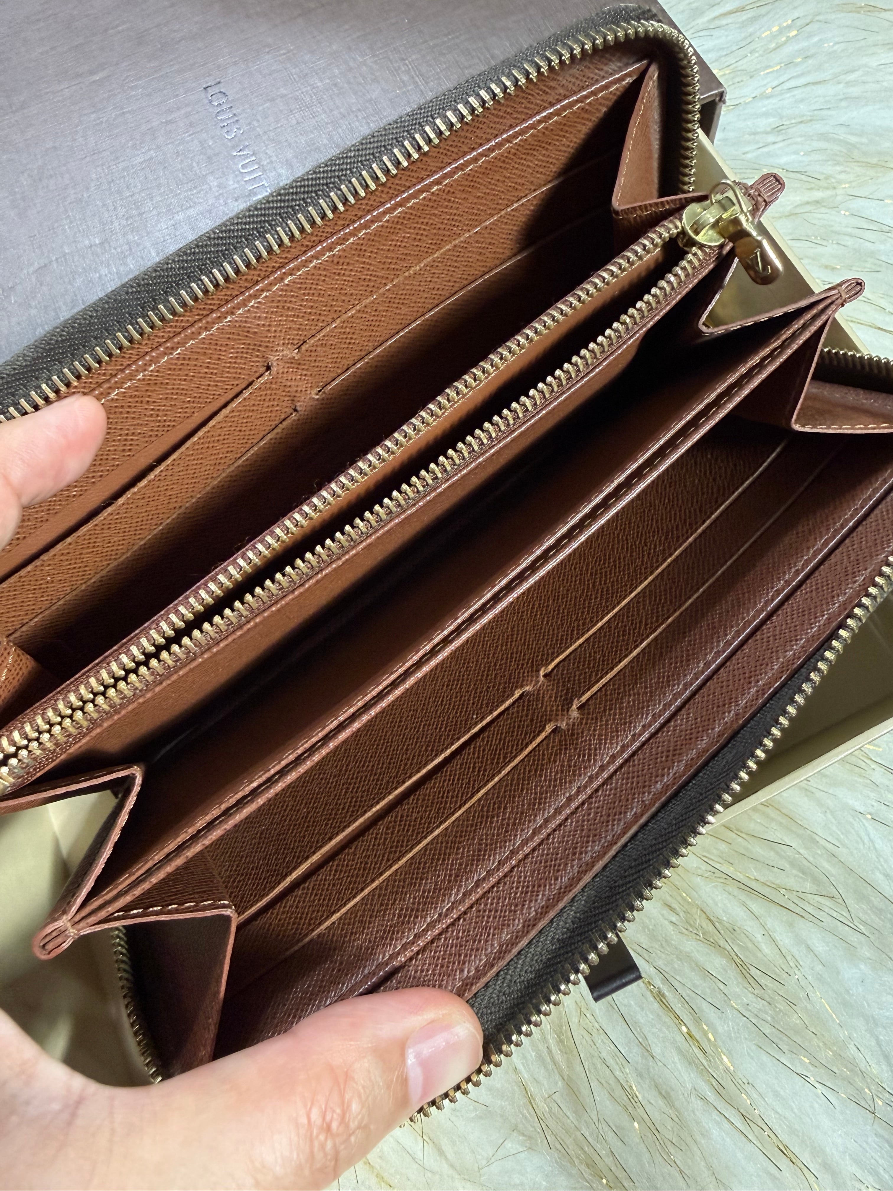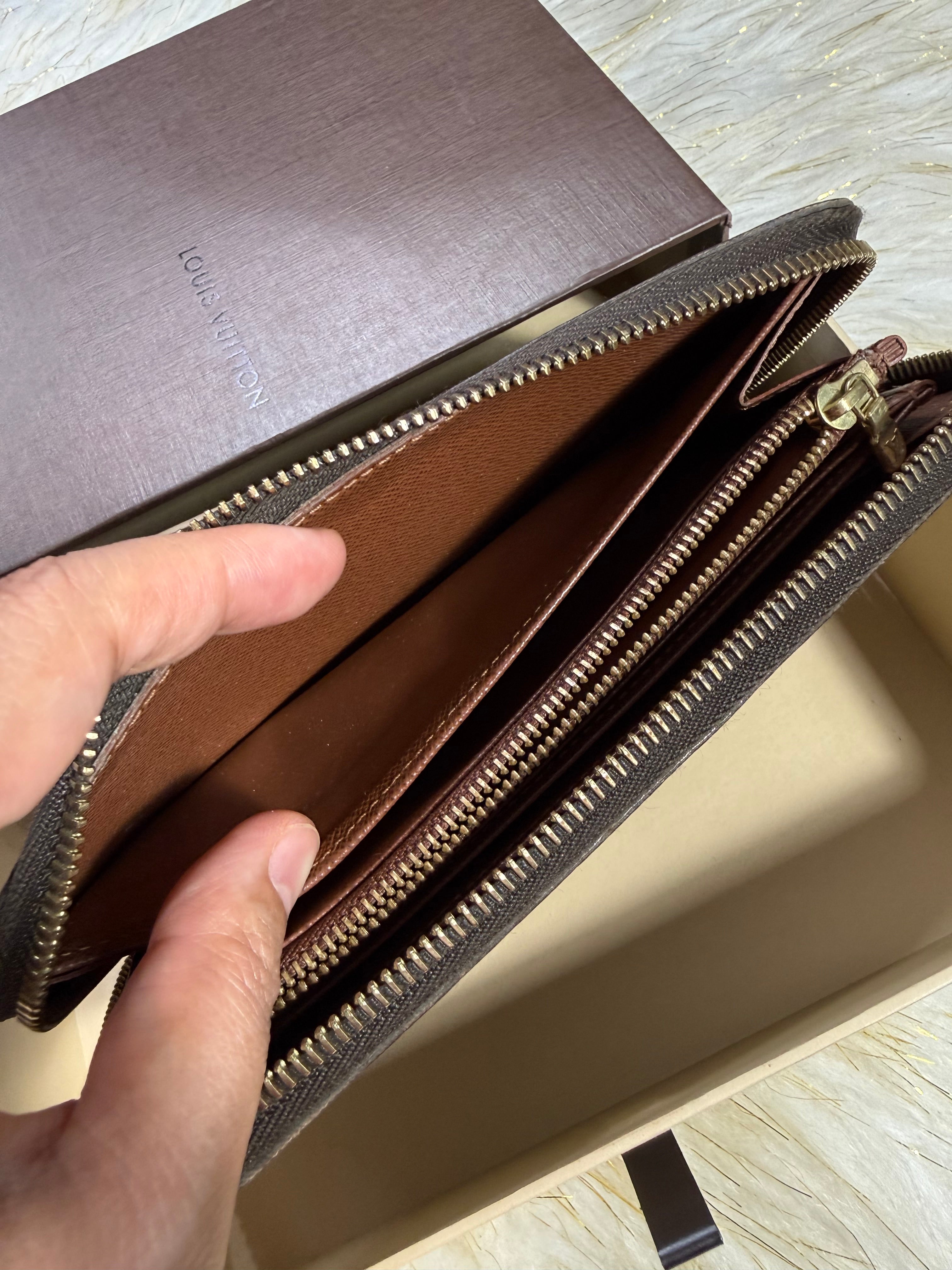 Auth. Preloved Louis Vuitton Zippy zip Brown Long Wallet Monogram with Box