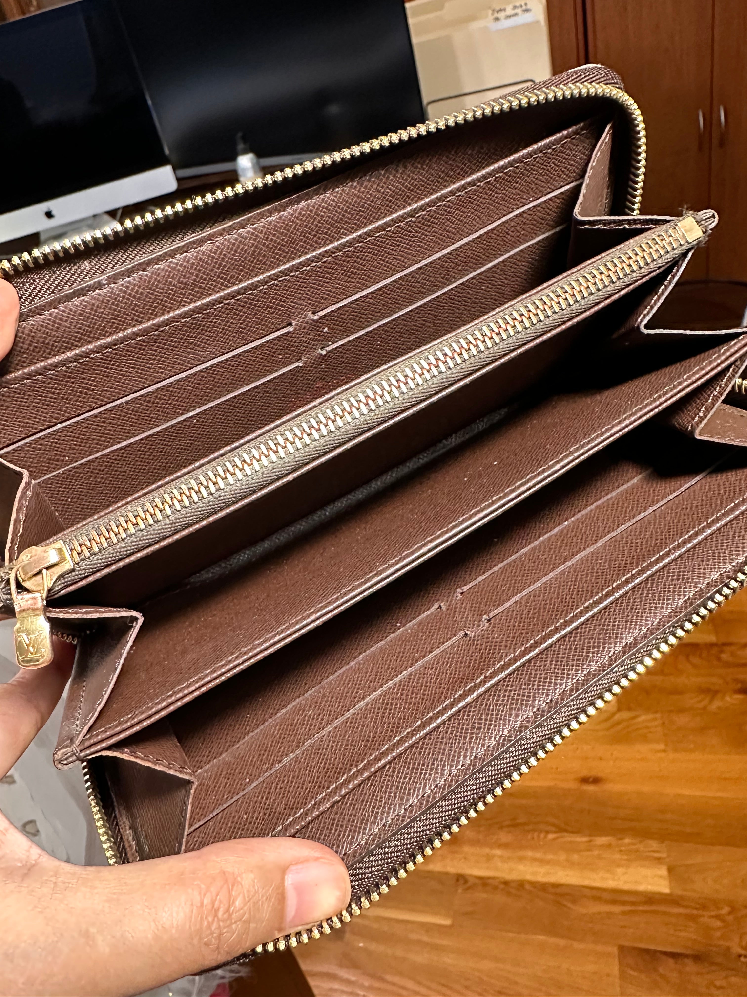 Pre owned Authentic Louis Vuitton Zippy zip long De brown interior wallet and duster