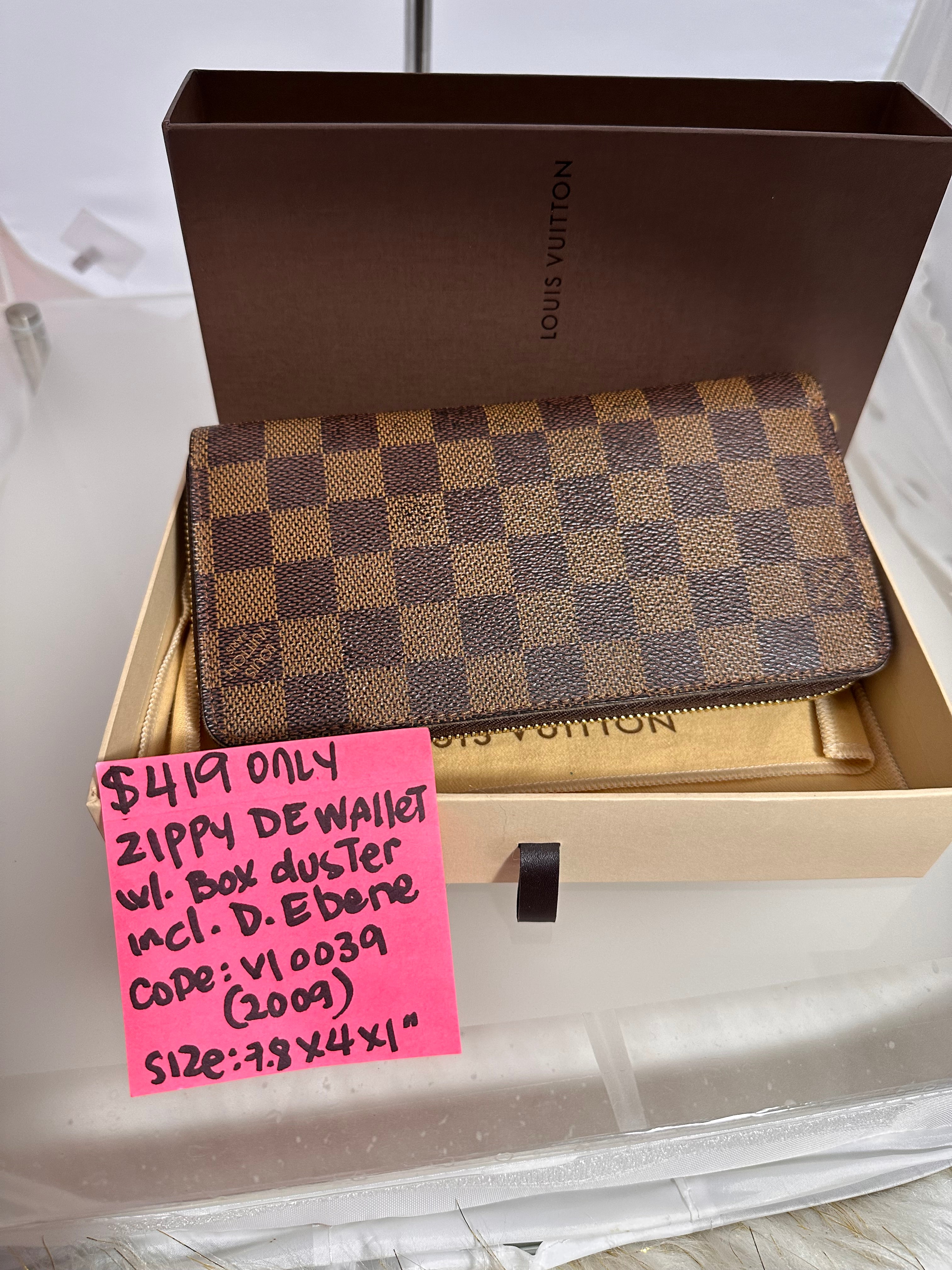 Louis Vuitton Zippy zip long De Damier Ebene Wallet w/ Box & Duster