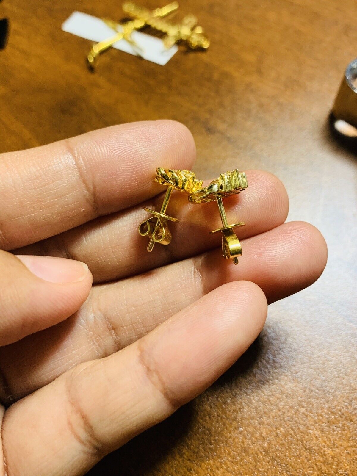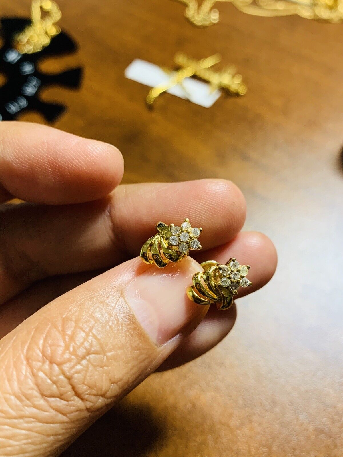 You are buying Real 14K Saudi Gold Real Saudi Diamond Earring Set yellow gold