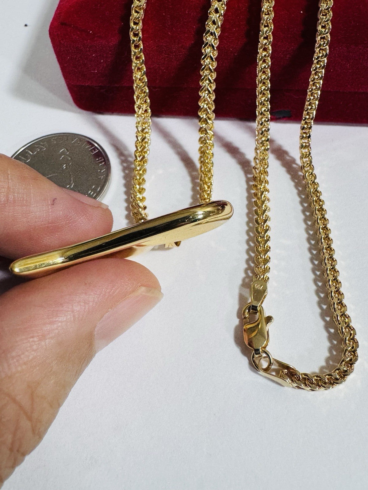 This beautiful Chain necklace is expertly crafted in 18K 750 real yellow gold and features a stunning Set Necklace with 21.8 inch chain with a lobster clasp with 3.2mm wide. 14.93 grams