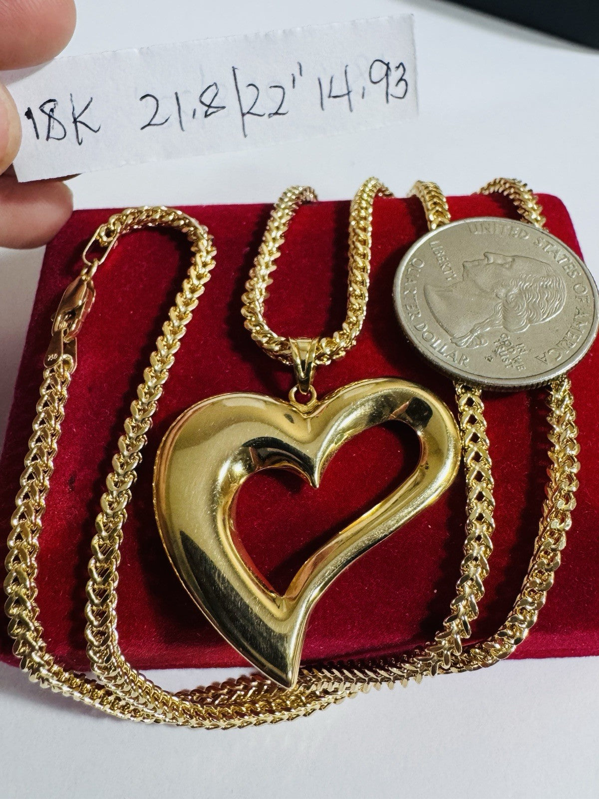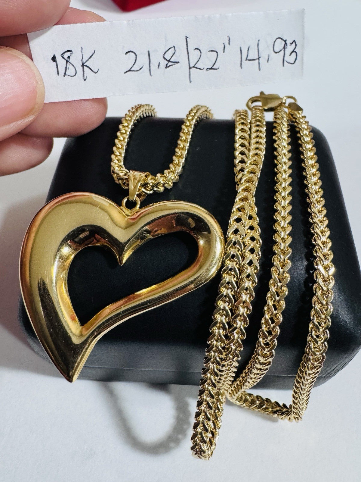 18C 18K 750 Fine Genuine Gold Heart Love Necklace 21.8”/22” Long 14.9g 3.2mm