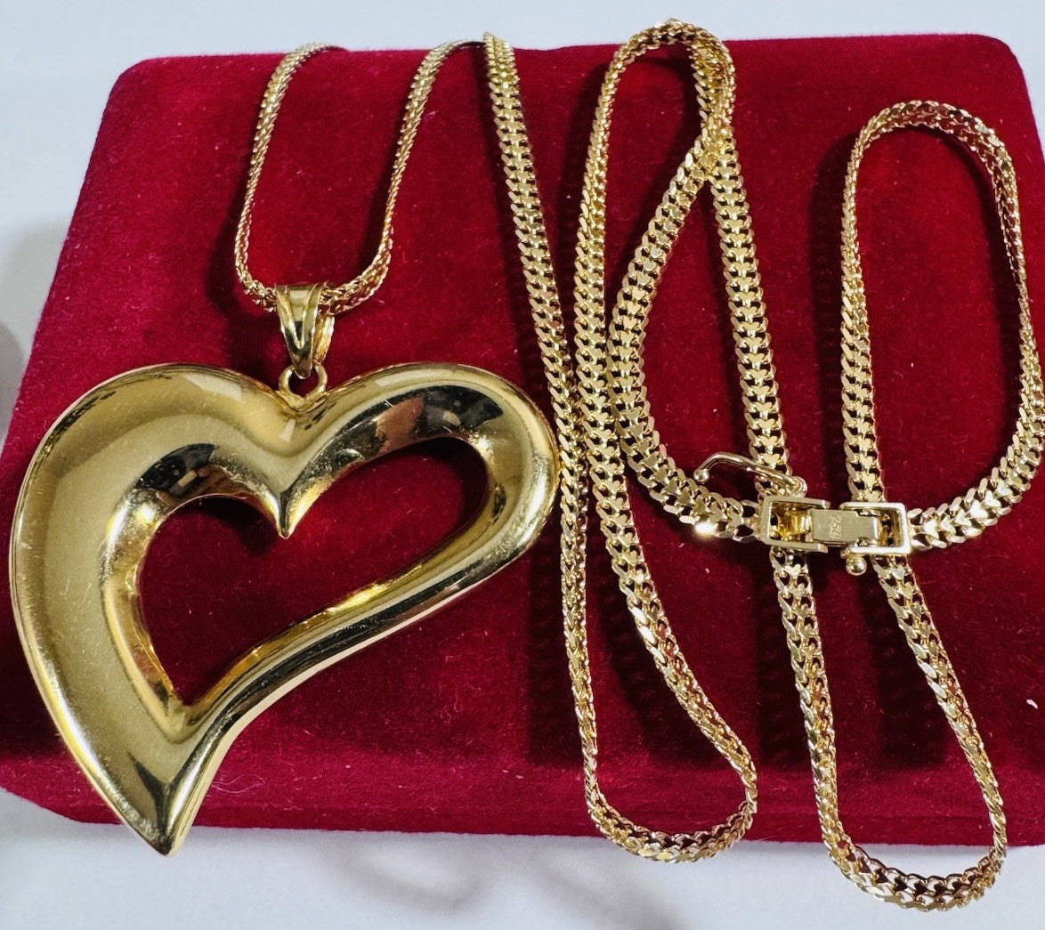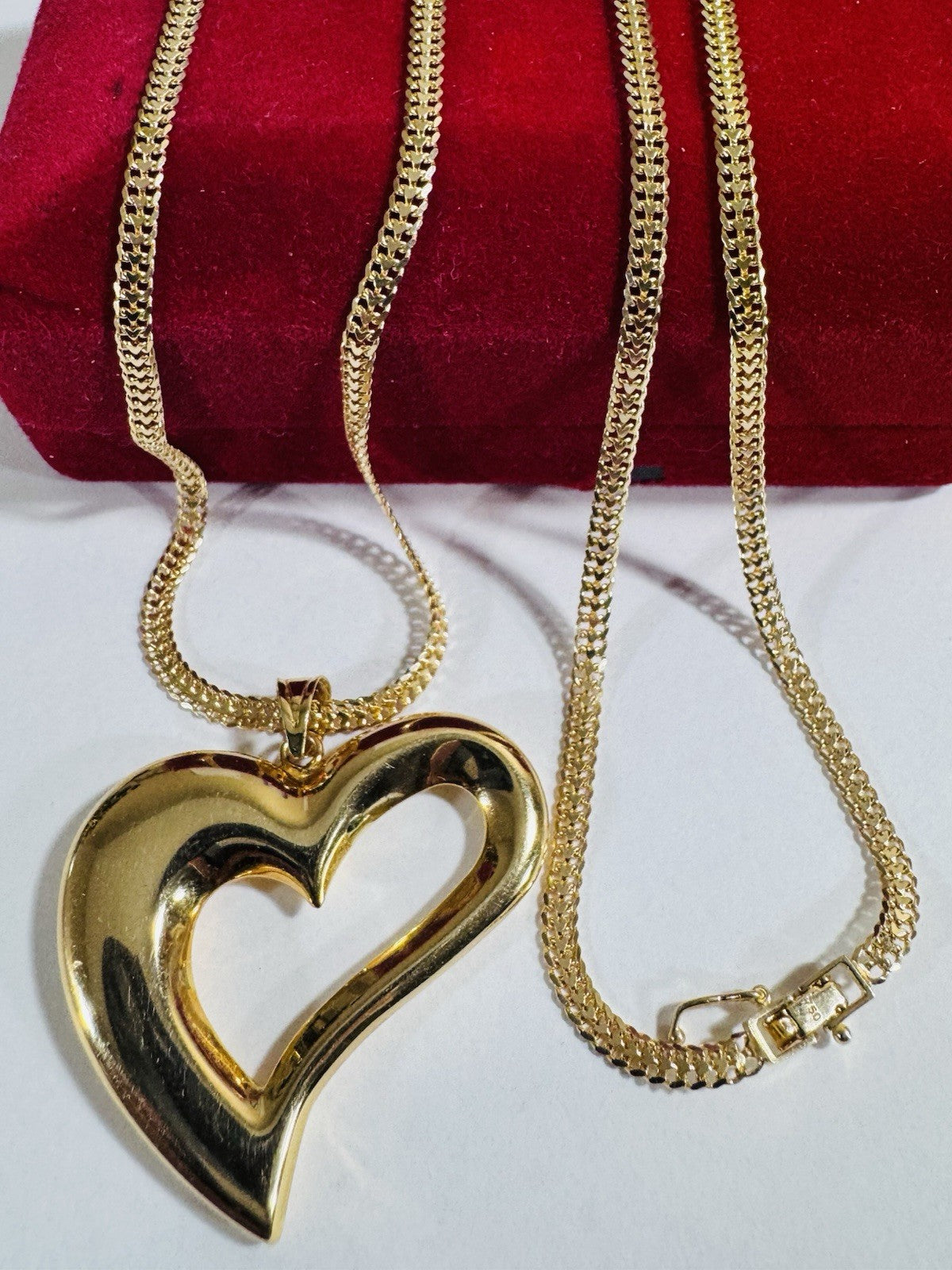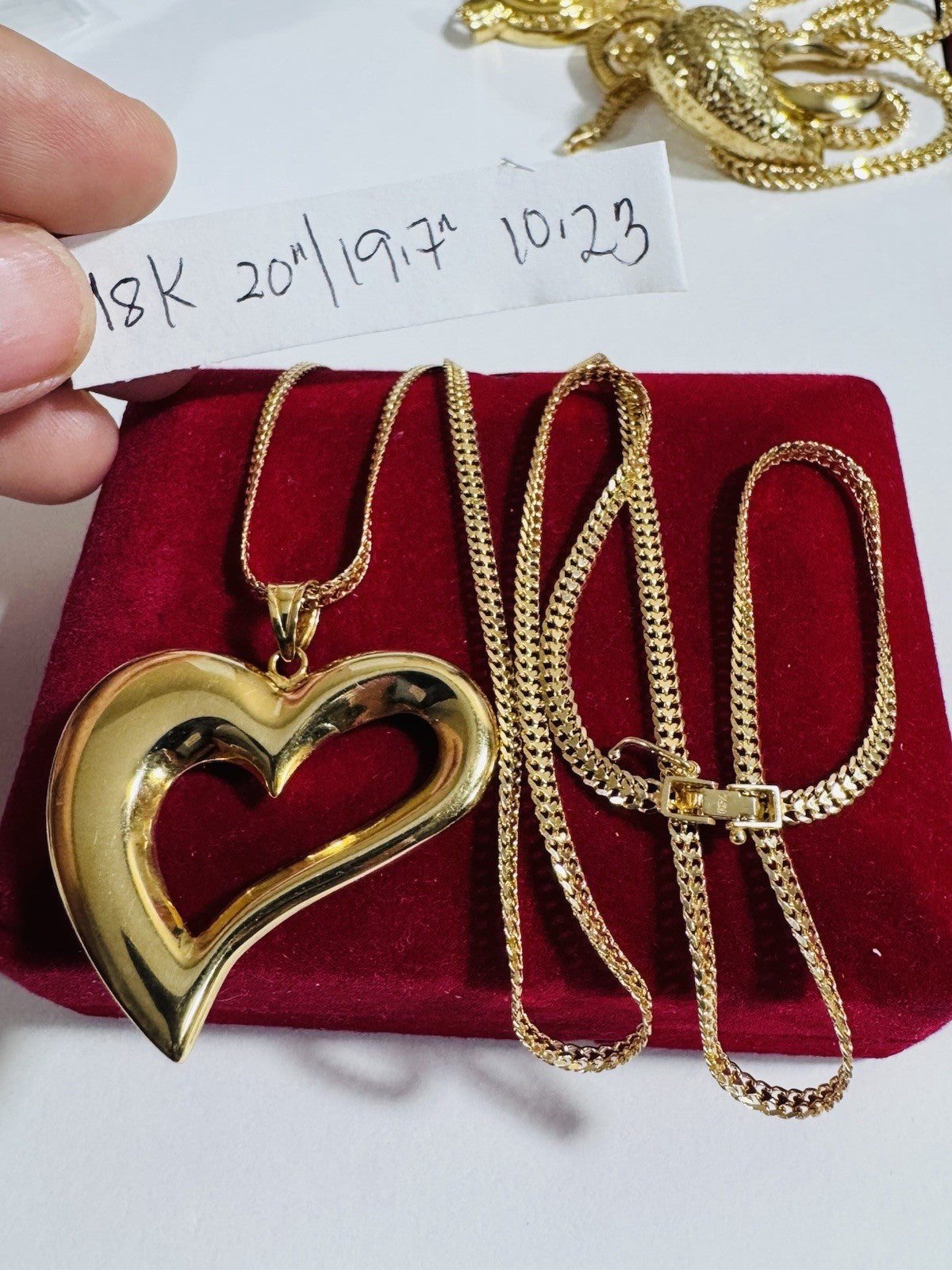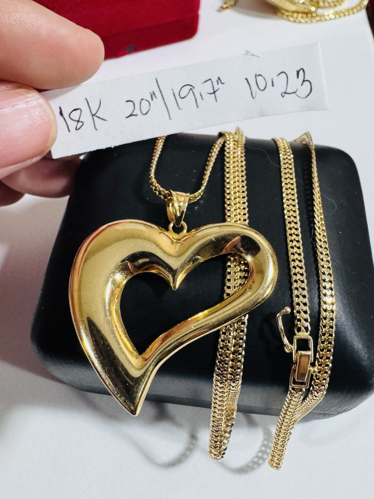18C 18K 750 Fine Genuine Gold Heart Love Set Necklace 19.7”/20” Long 10.2g 3mm