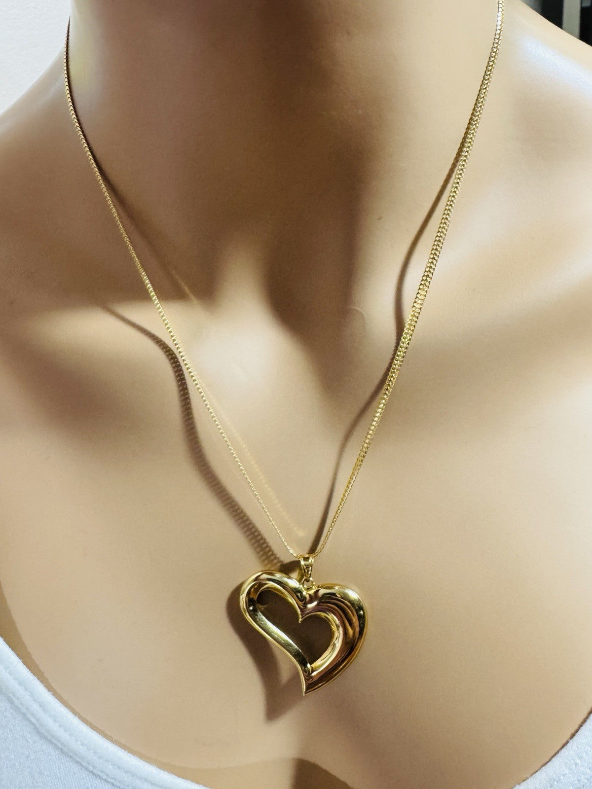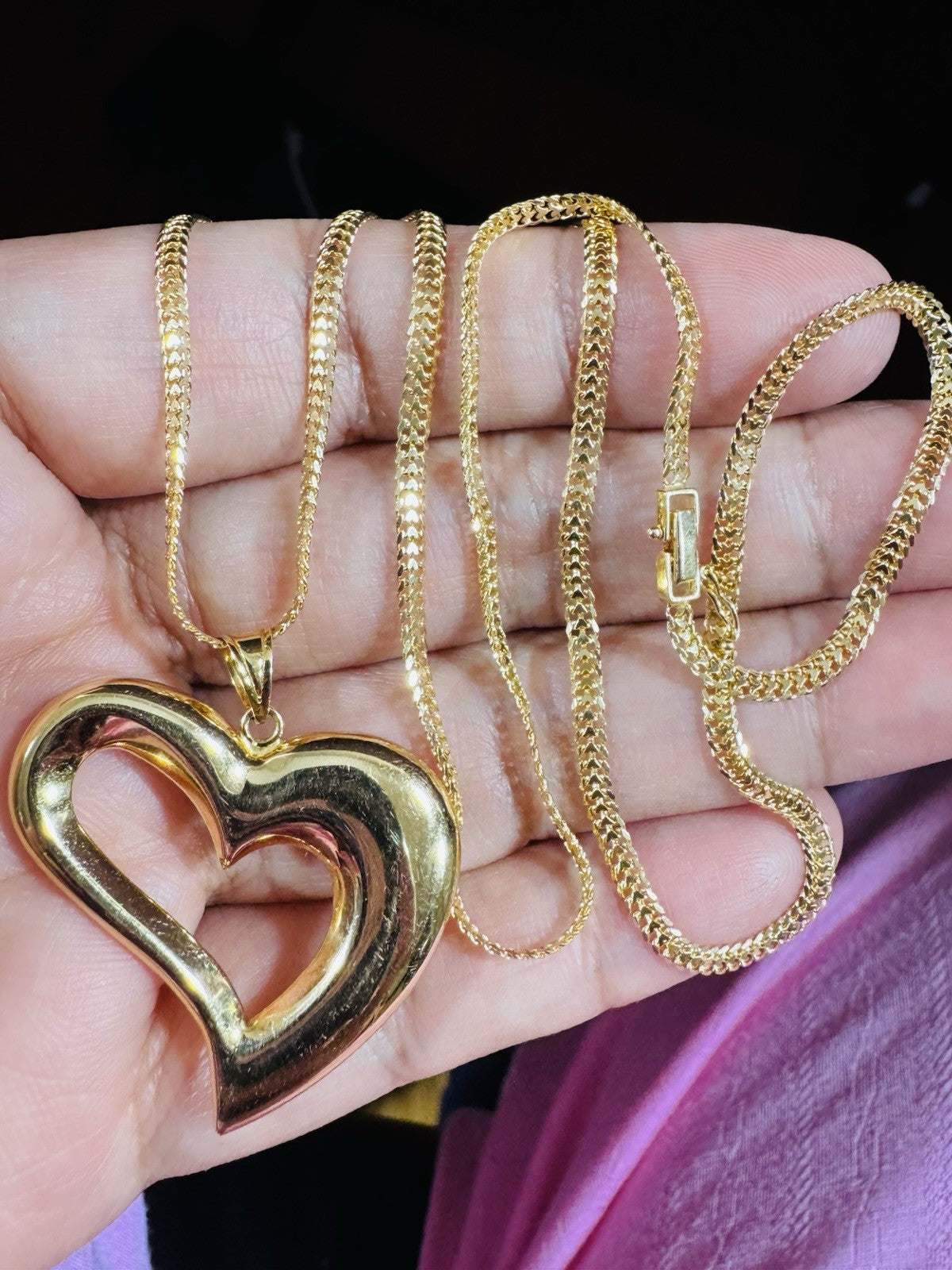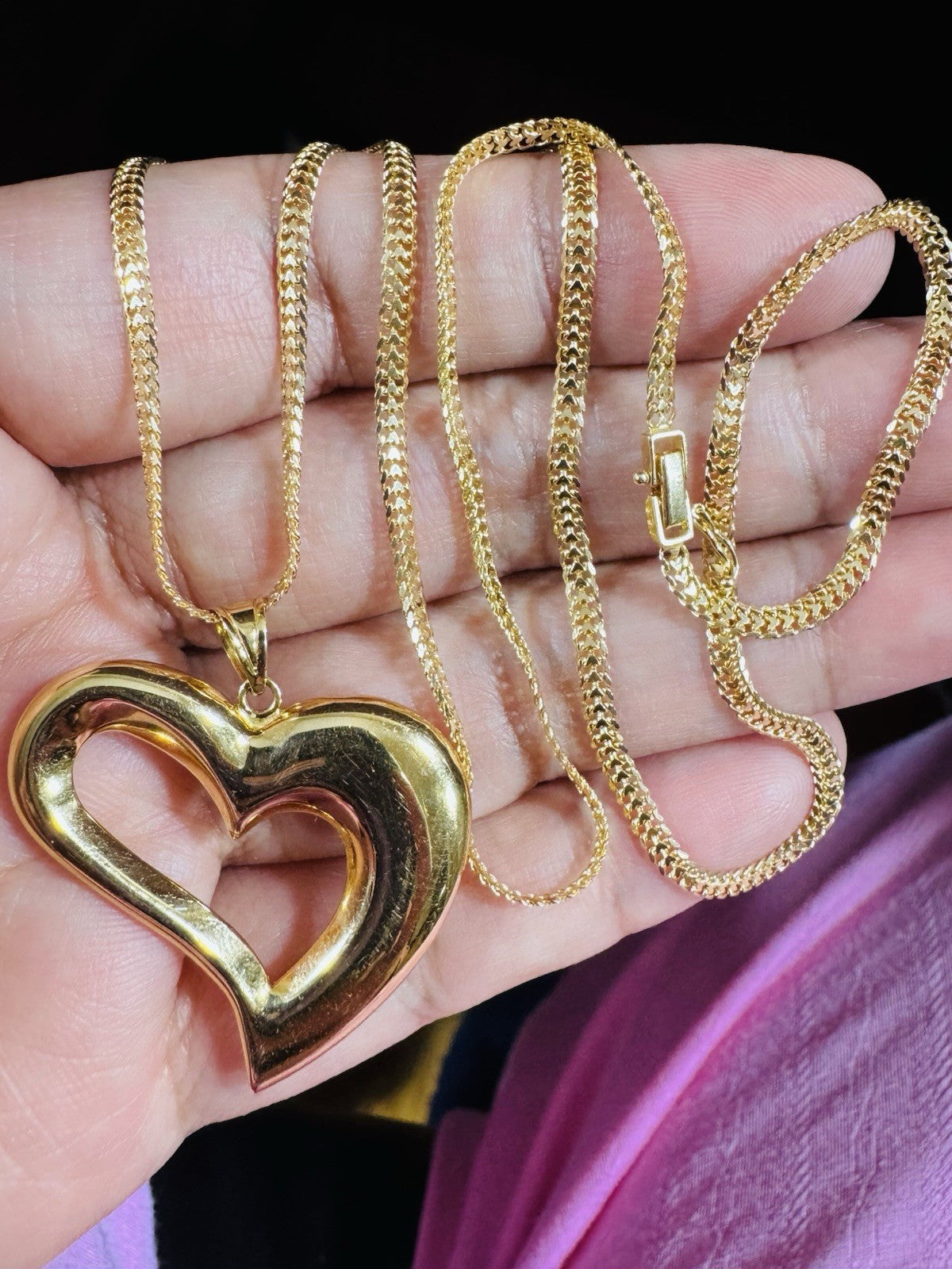 18C 18K 750 Fine Genuine Gold Heart Love Set Necklace 19.7”/20” Long 10.2g 3mm