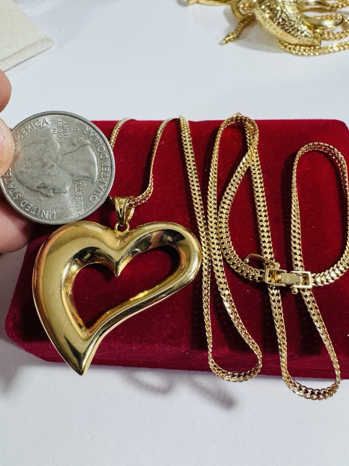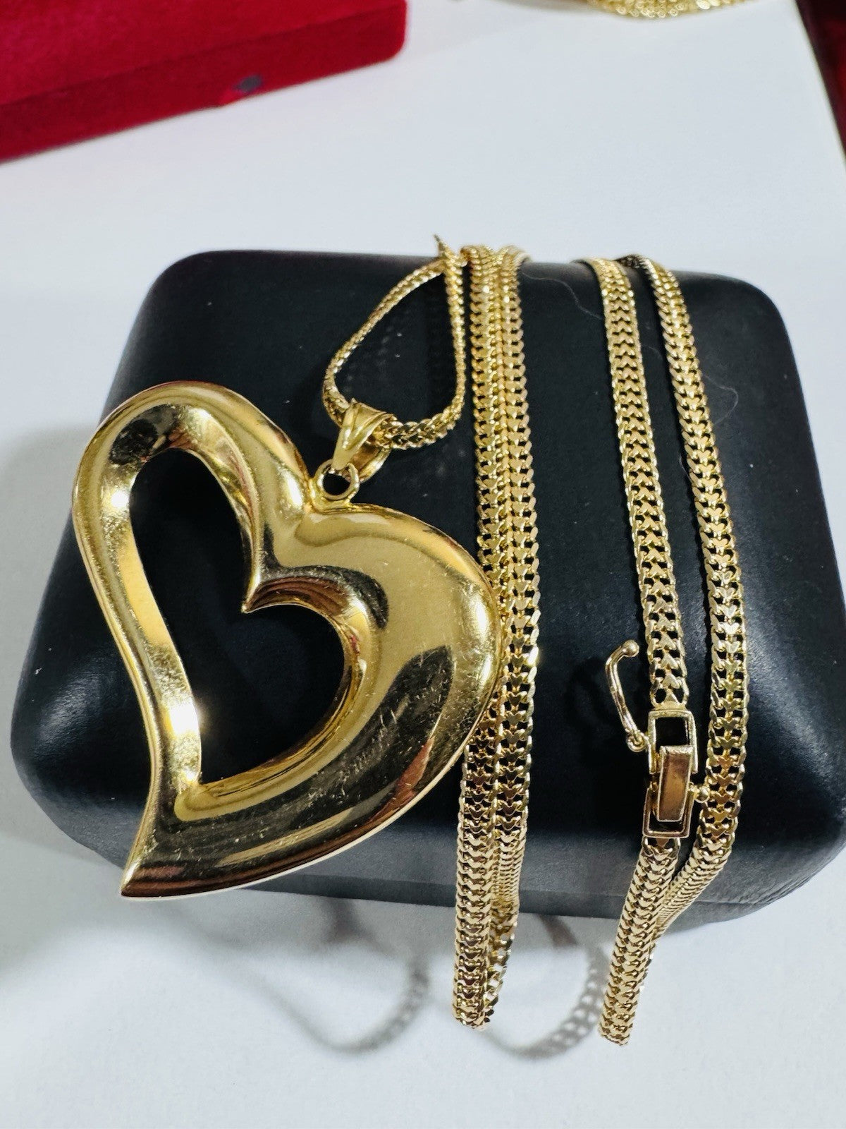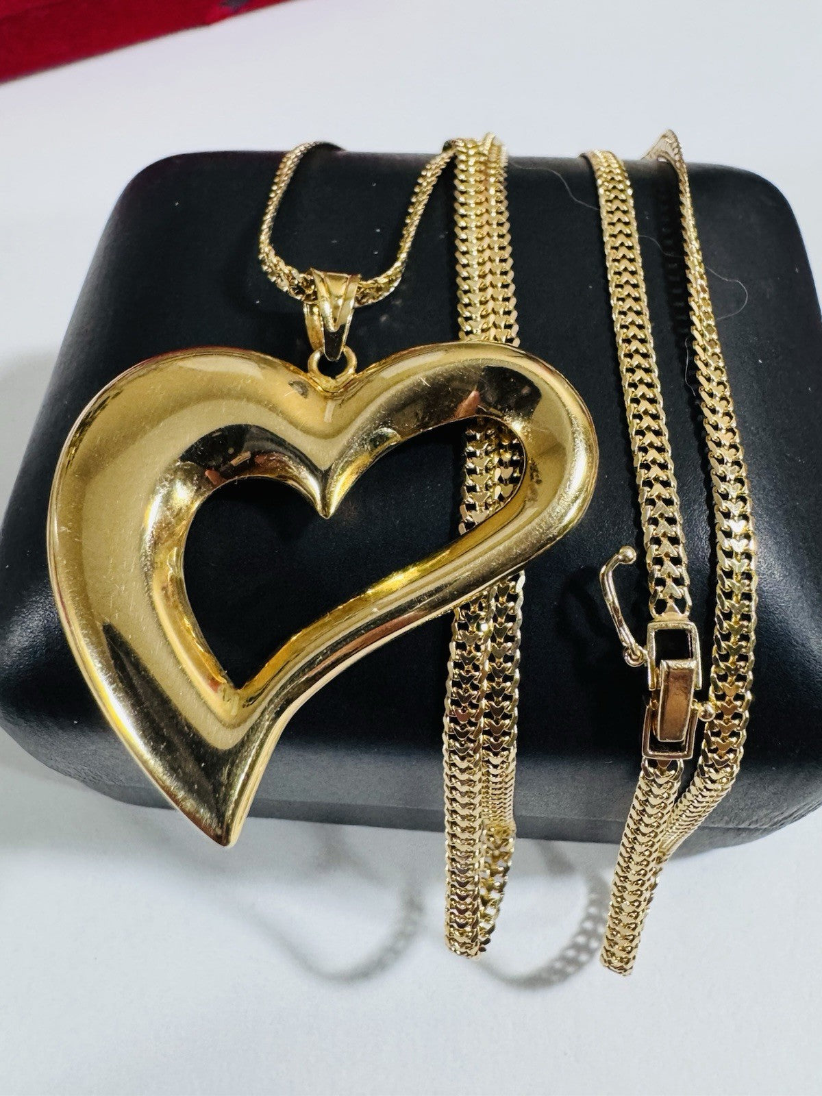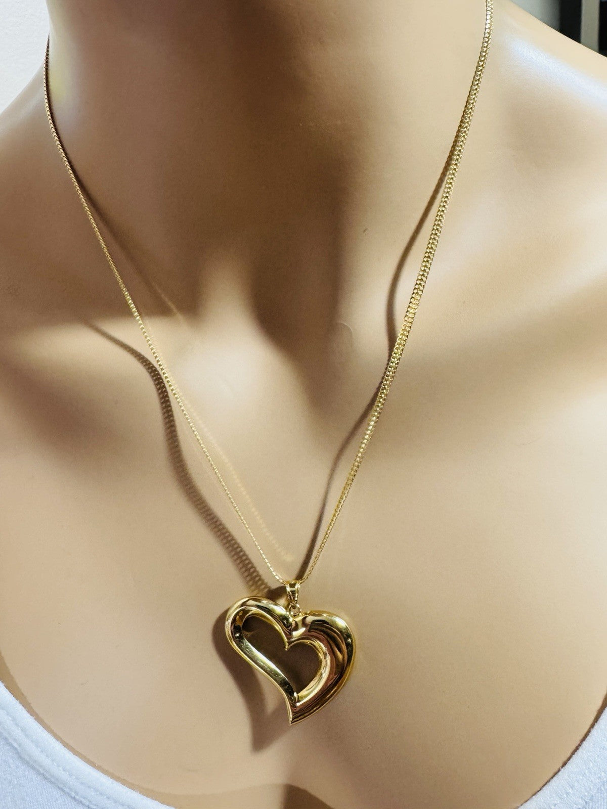 18C 18K 750 Fine Genuine Gold Heart Love Set Necklace 19.7”/20” Long 10.2g 3mm