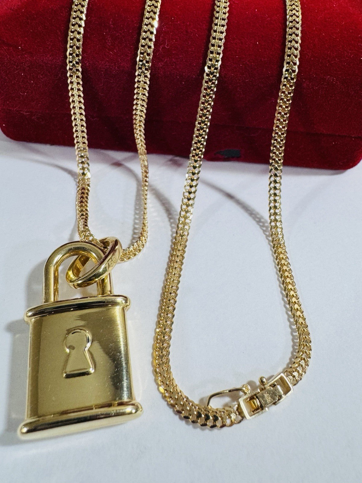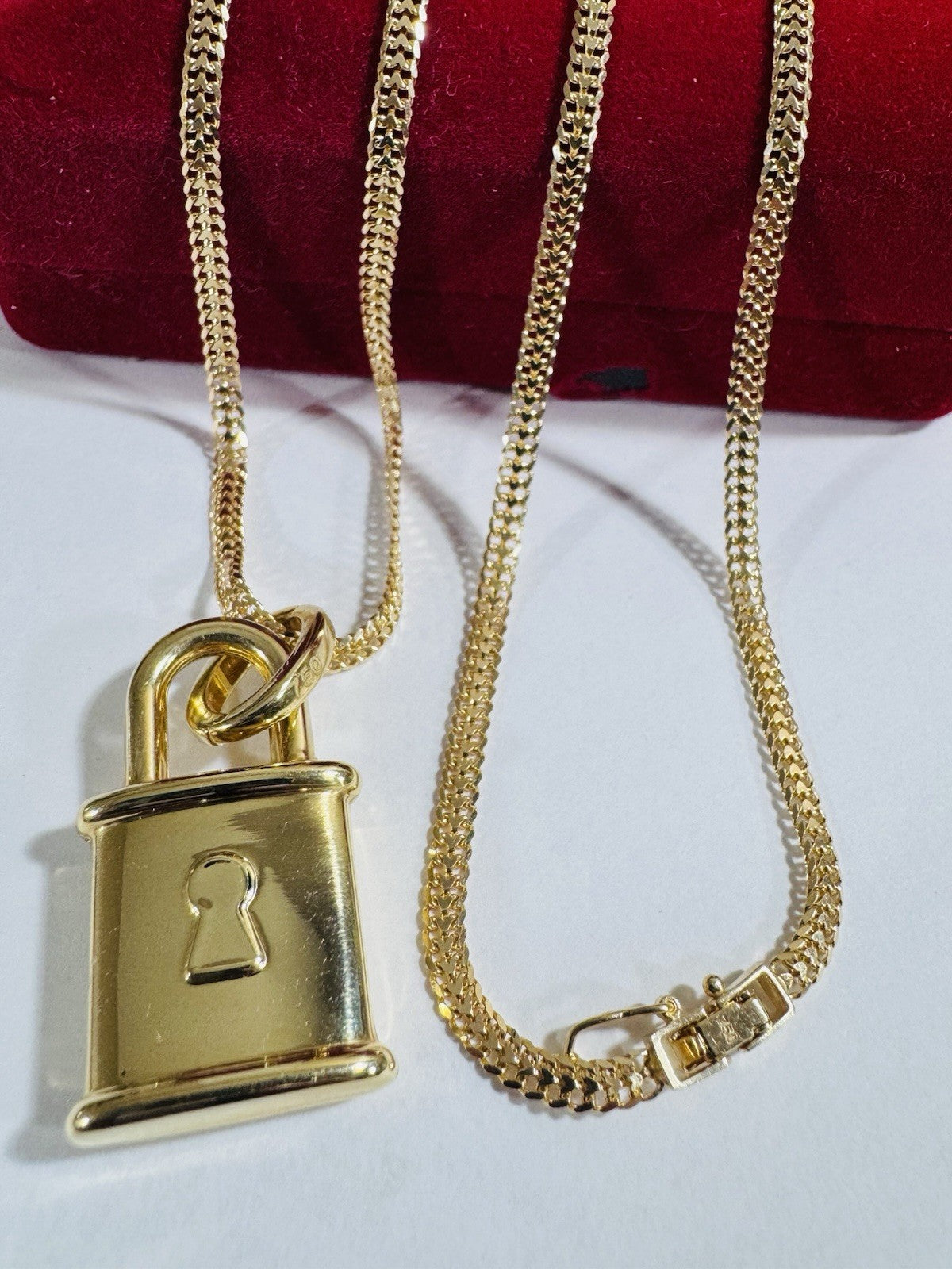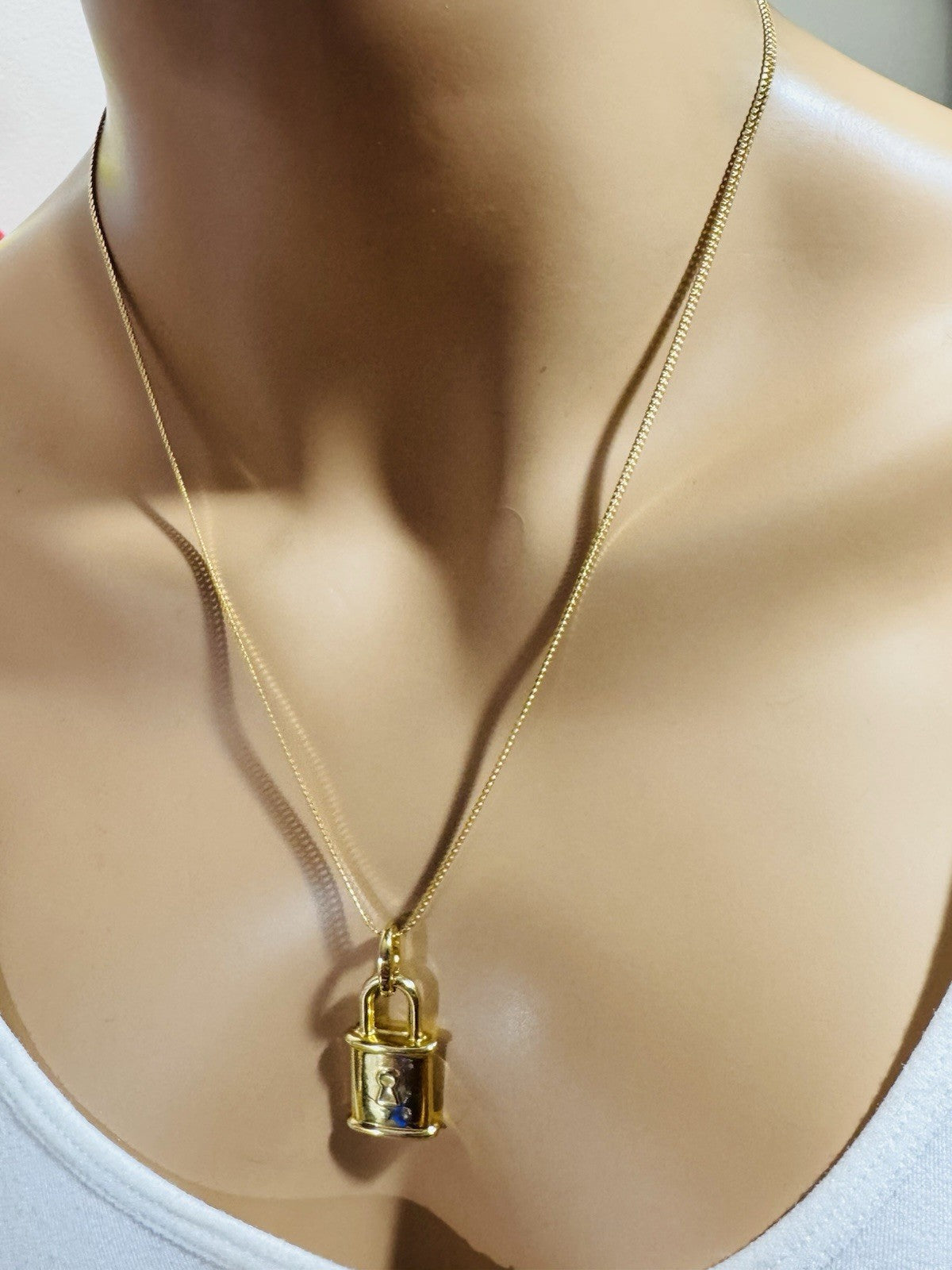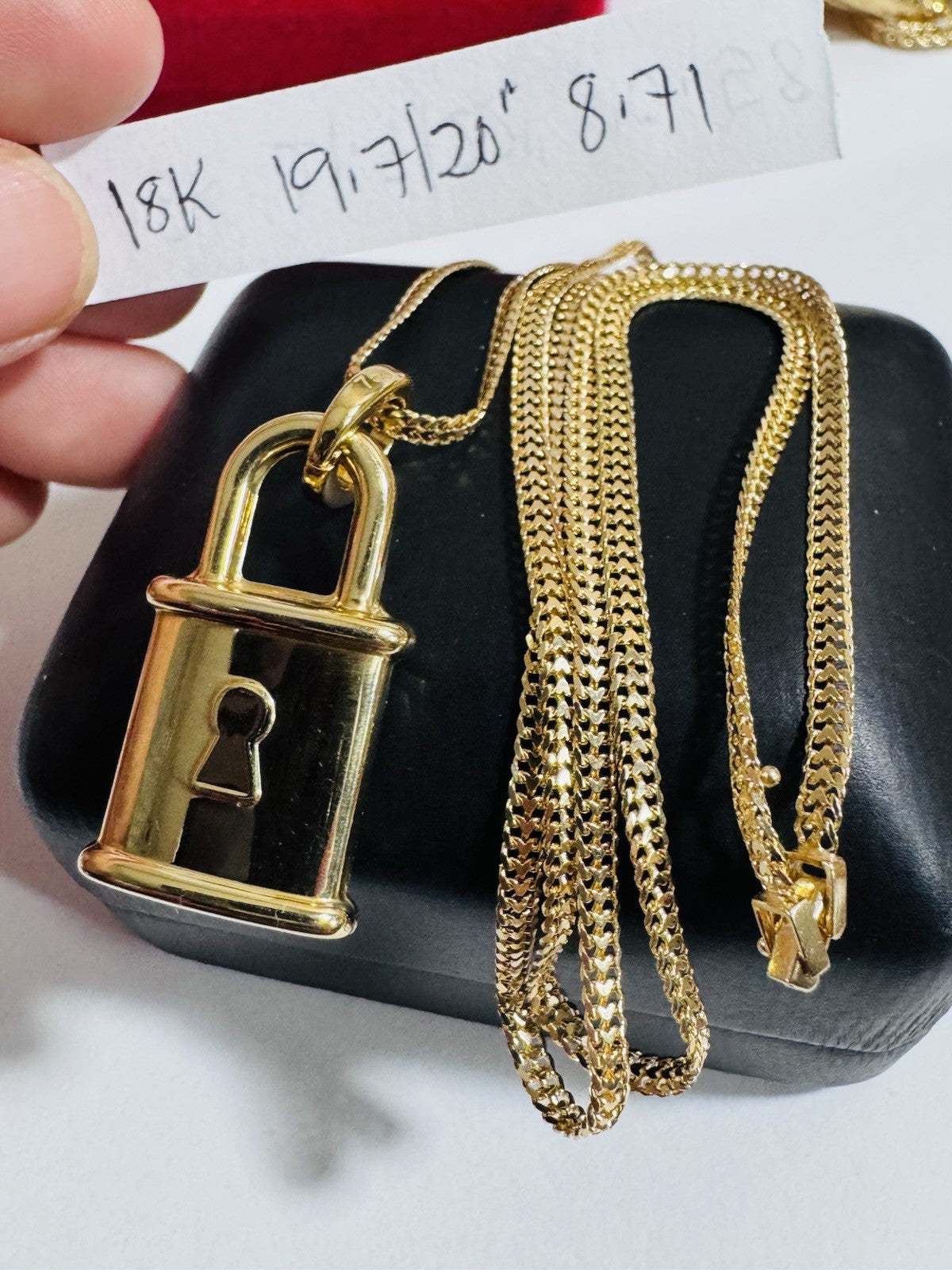 18C 18K 750 Fine Genuine Gold Padlock Set Necklace 19.7”/20” Long 8.7g 3mm