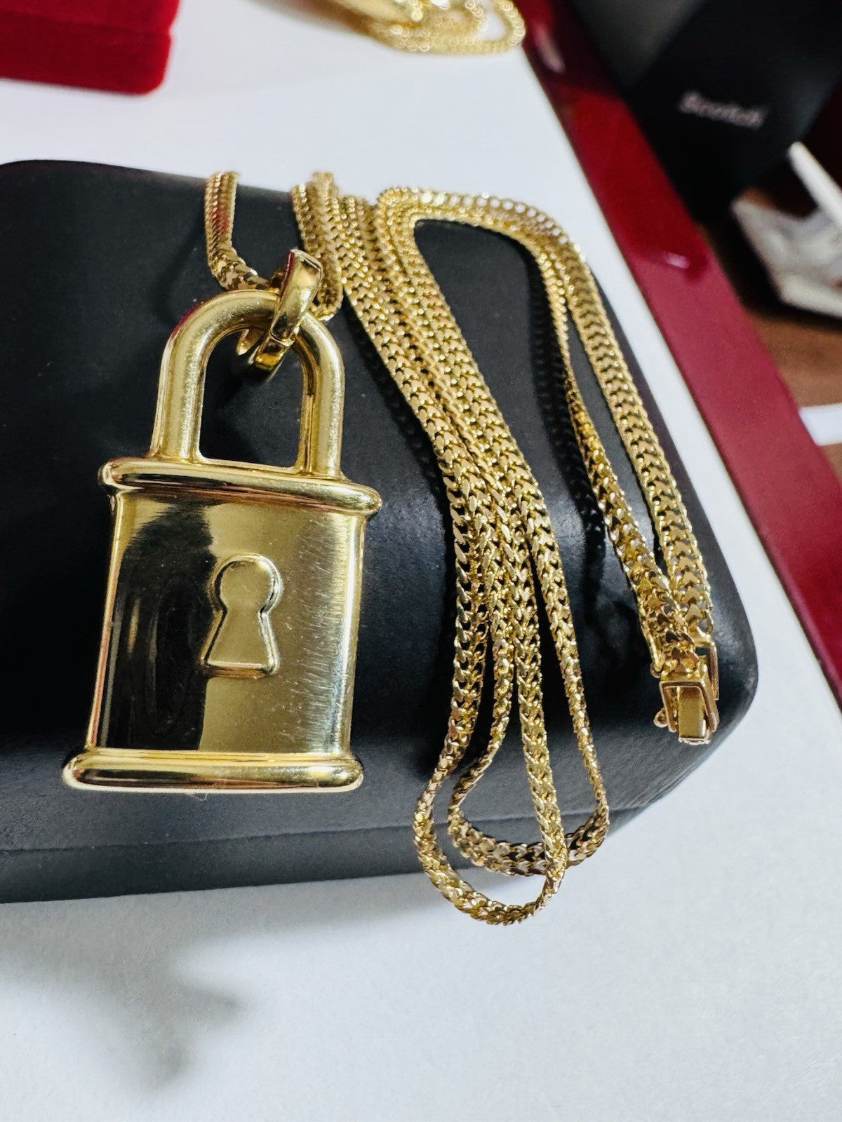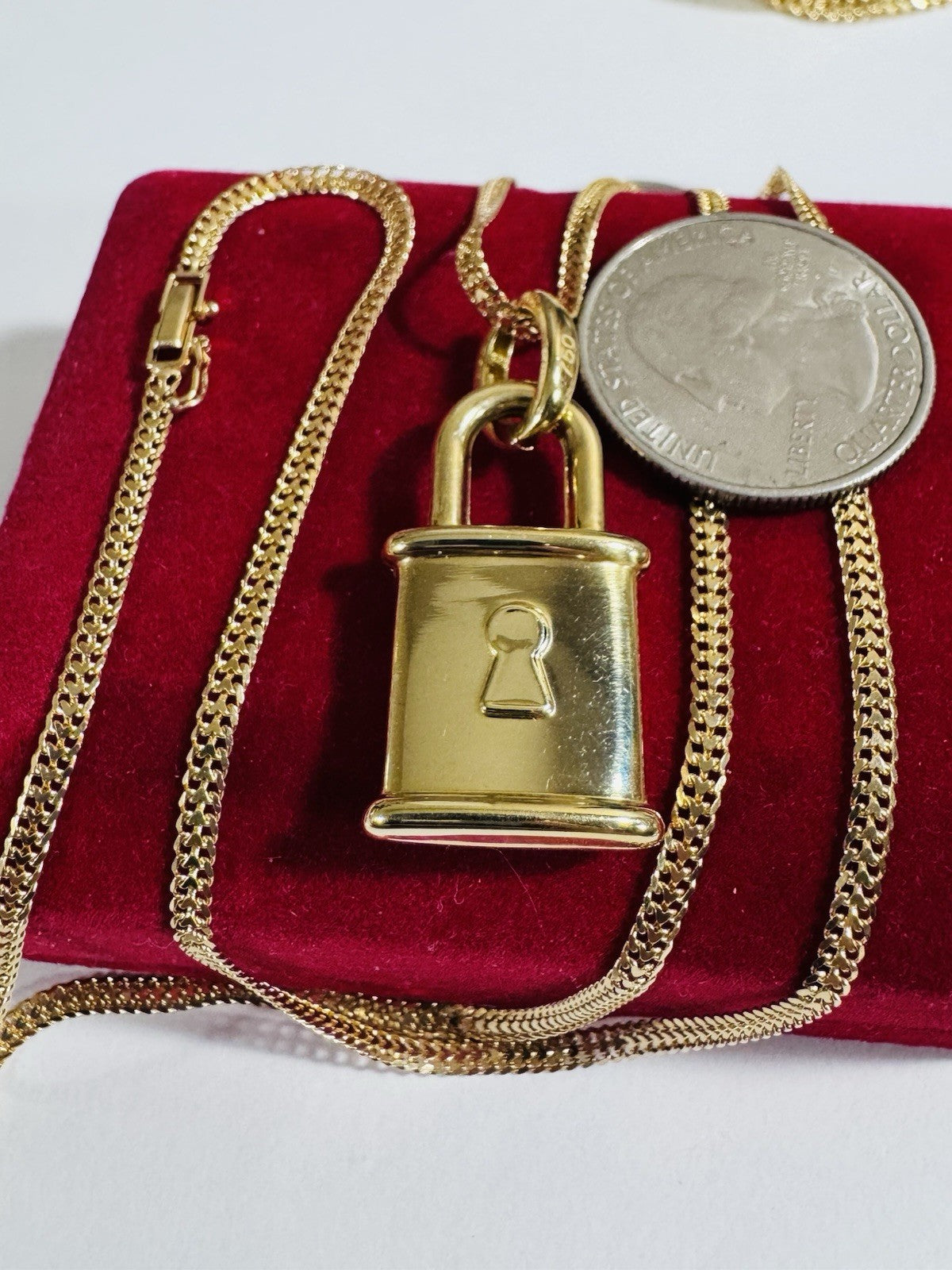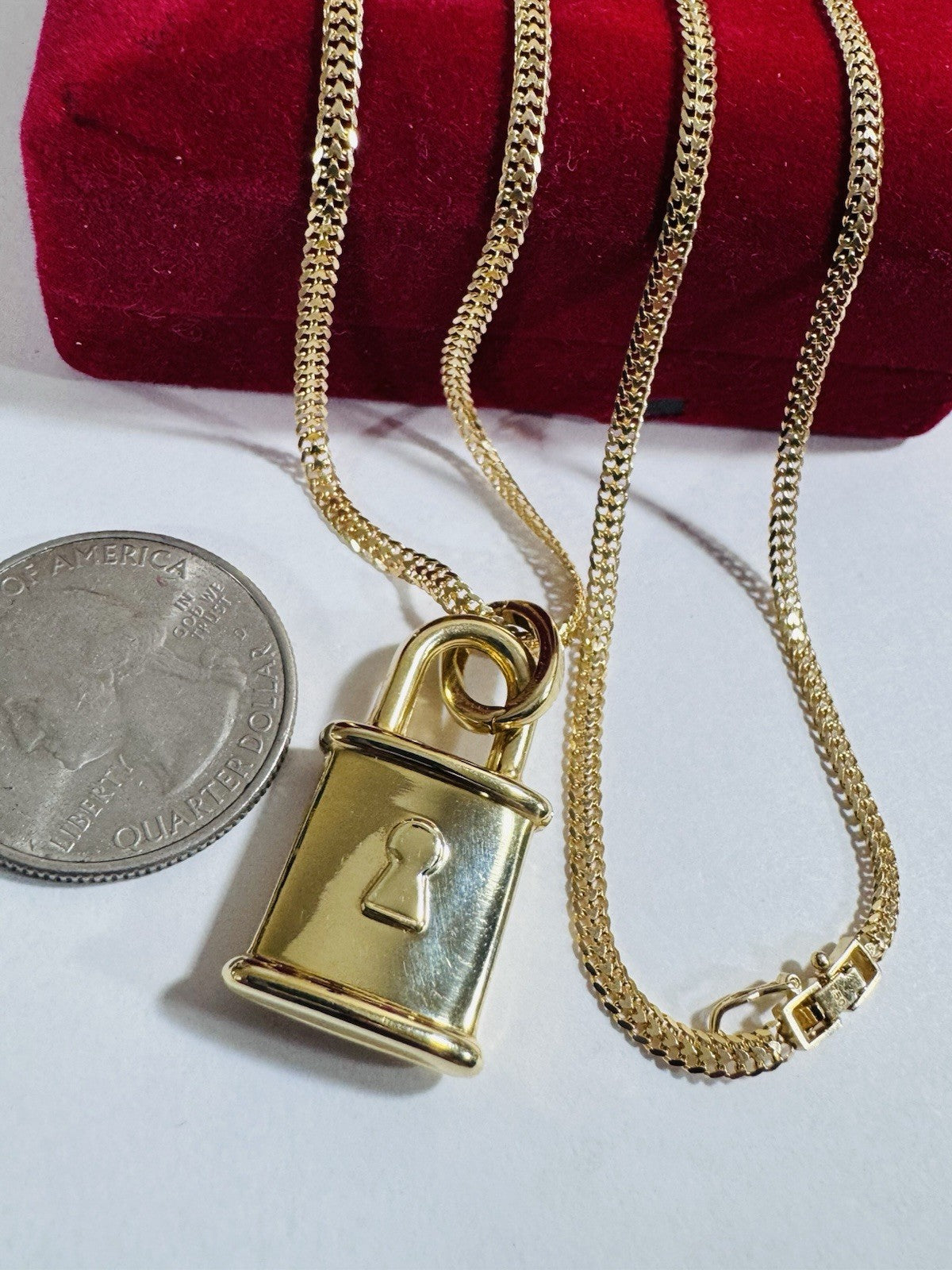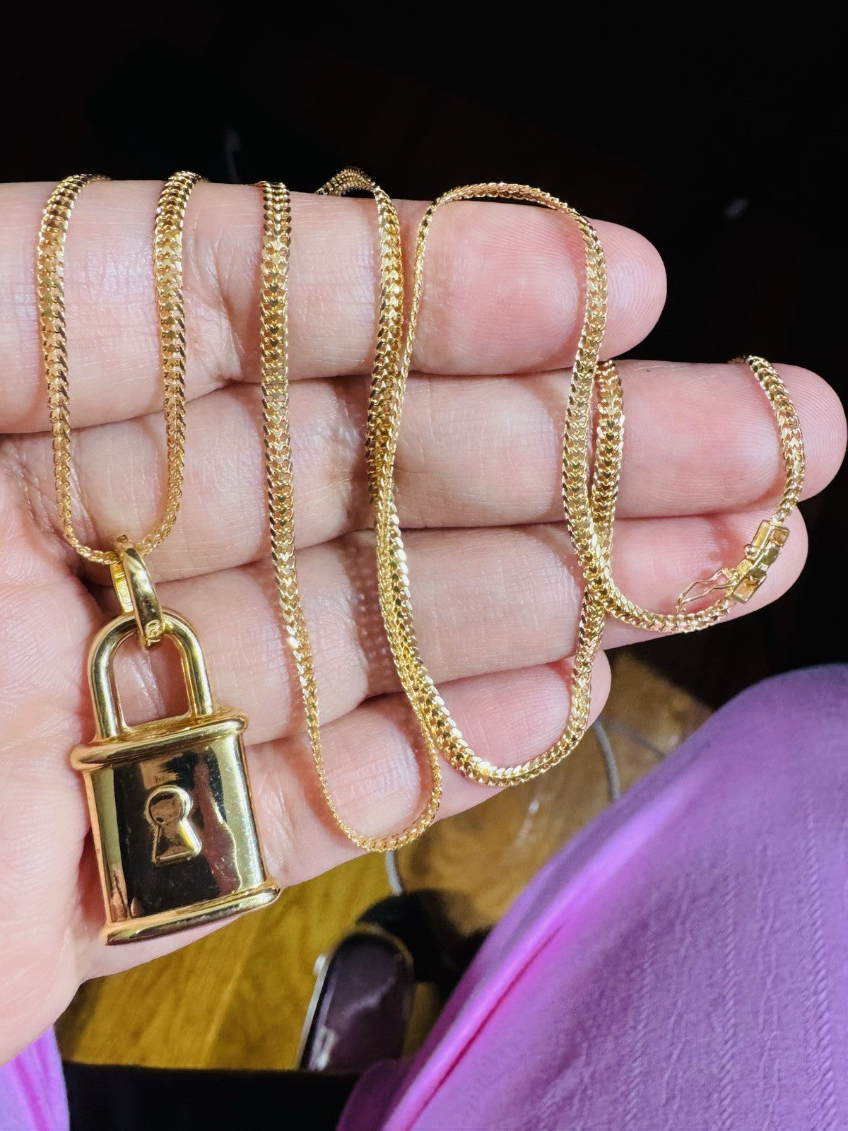 18C 18K 750 Fine Genuine Gold Padlock Set Necklace 19.7”/20” Long 8.7g 3mm