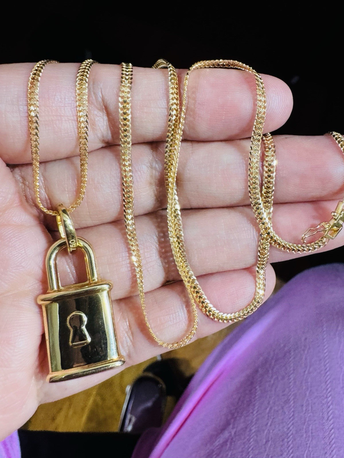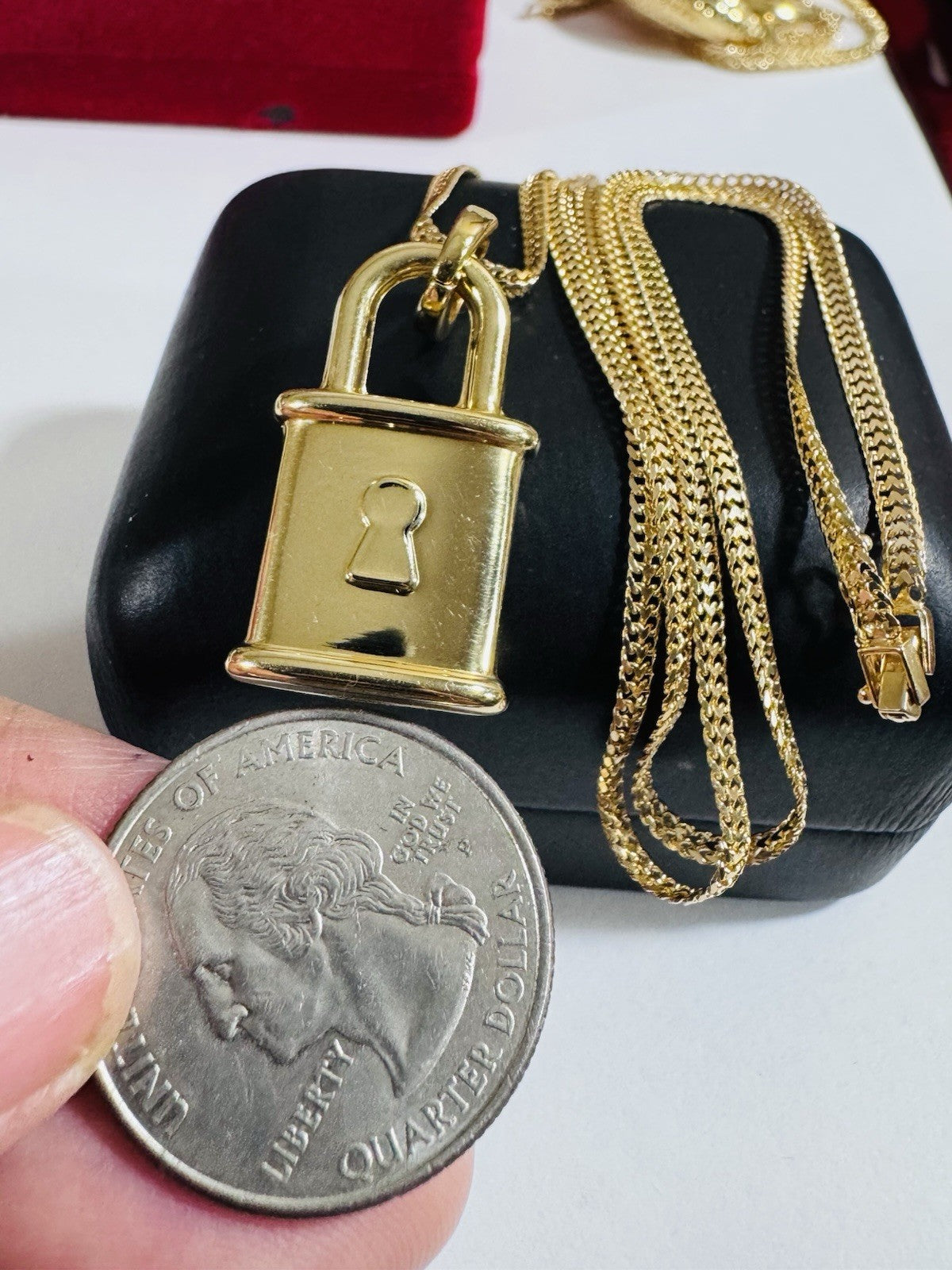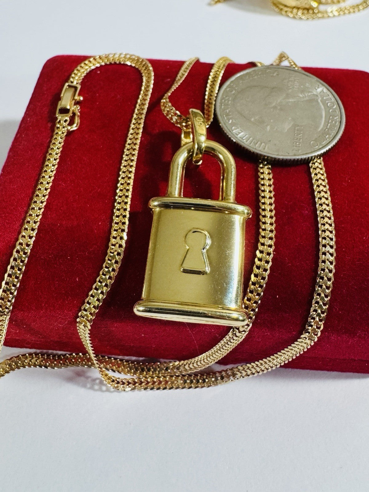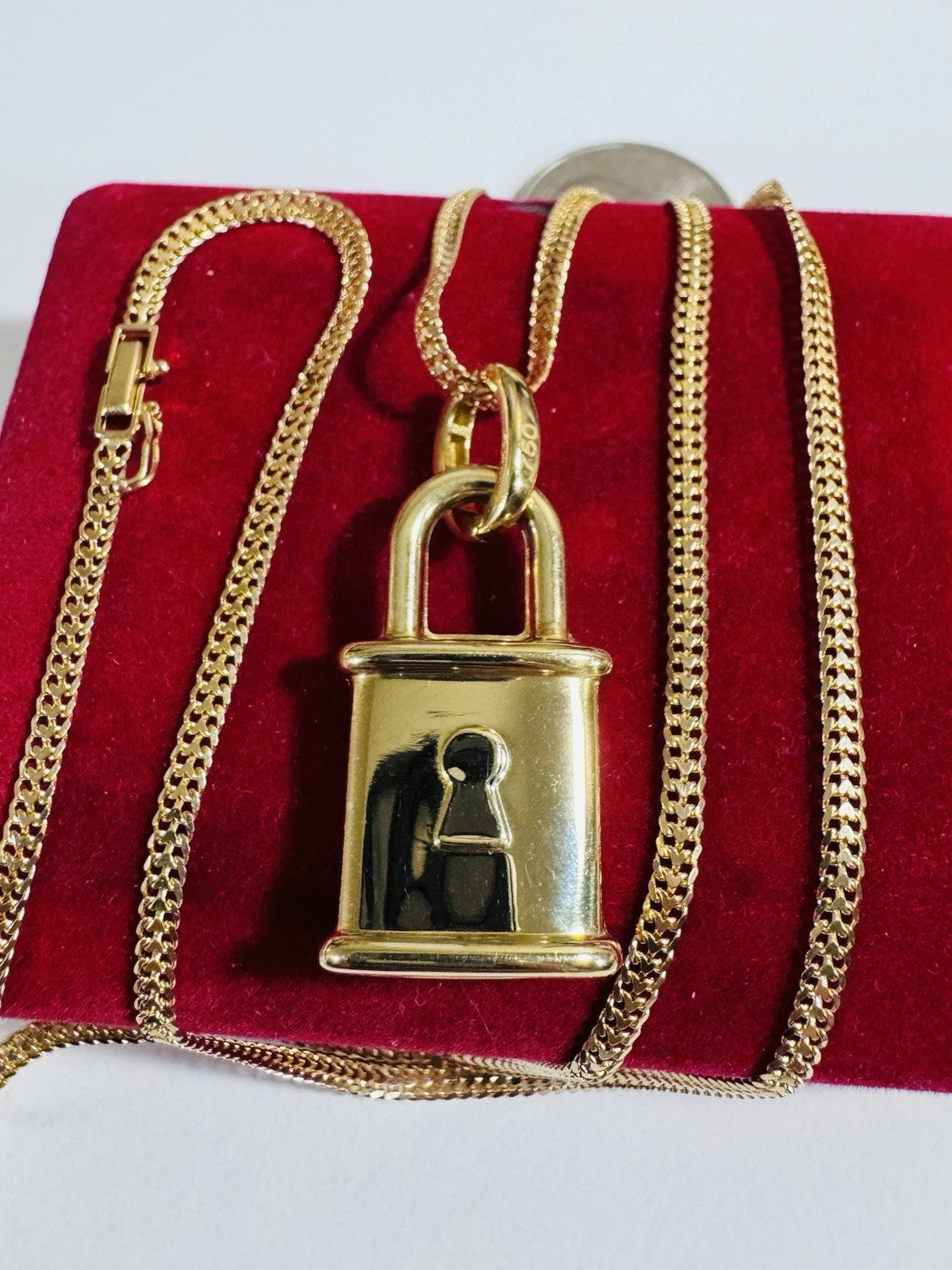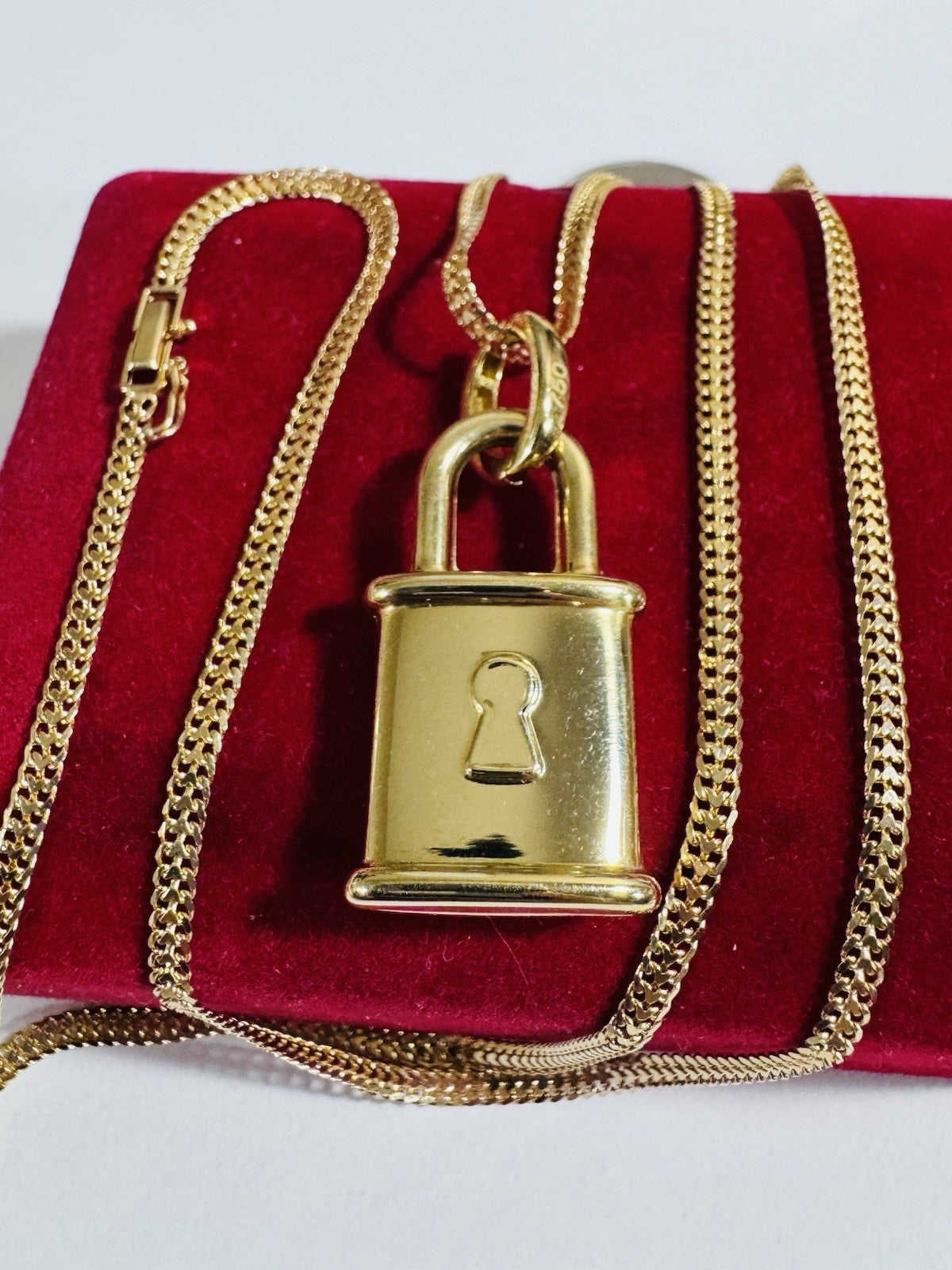 18C 18K 750 Fine Genuine Gold Padlock Set Necklace 19.7”/20” Long 8.7g 3mm