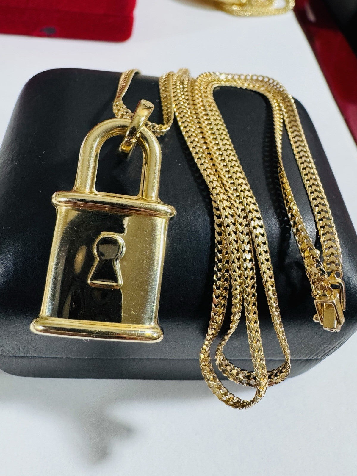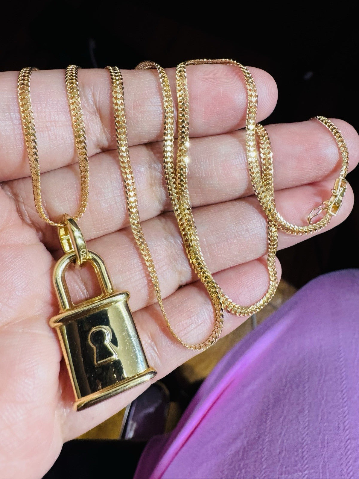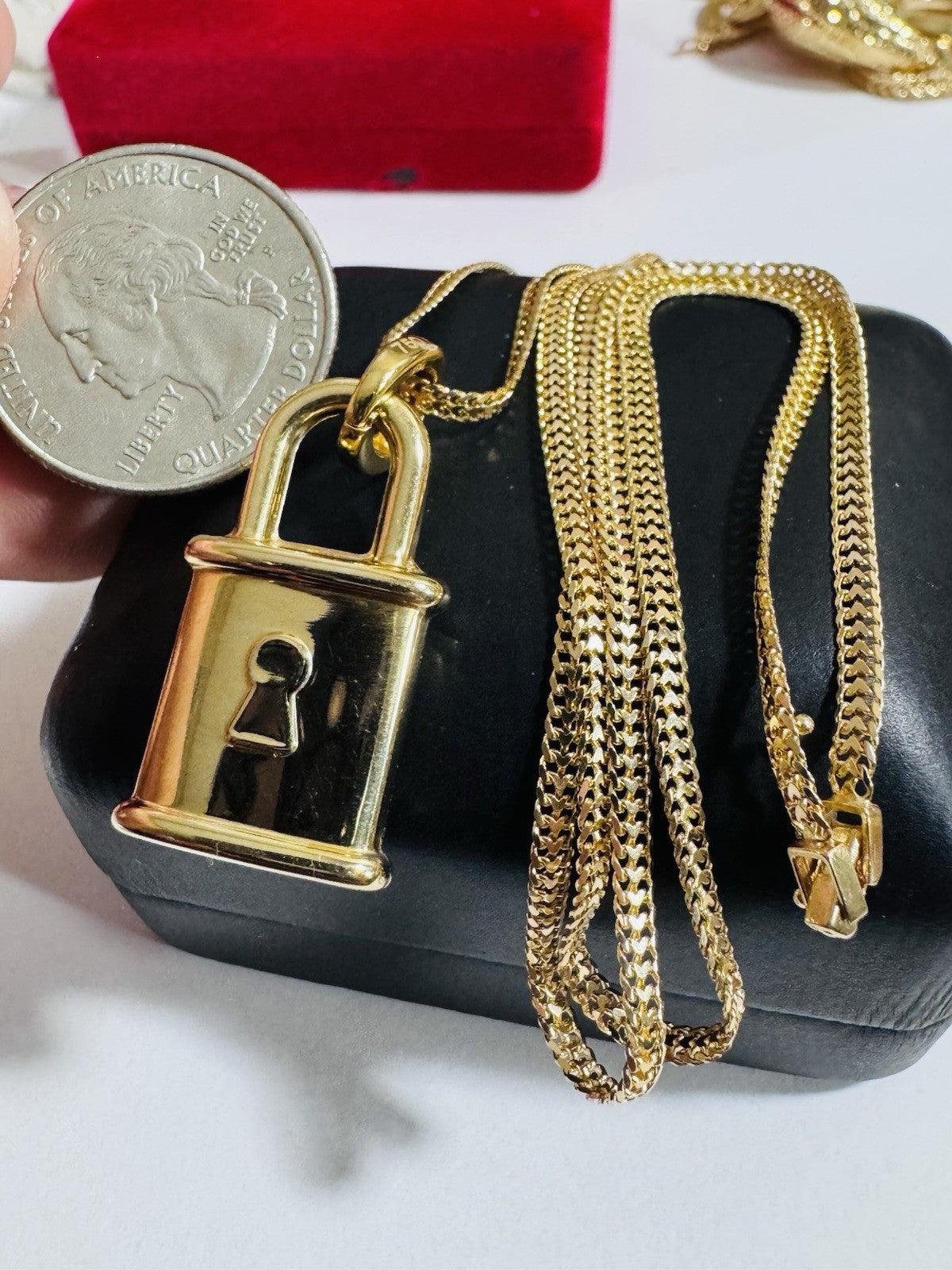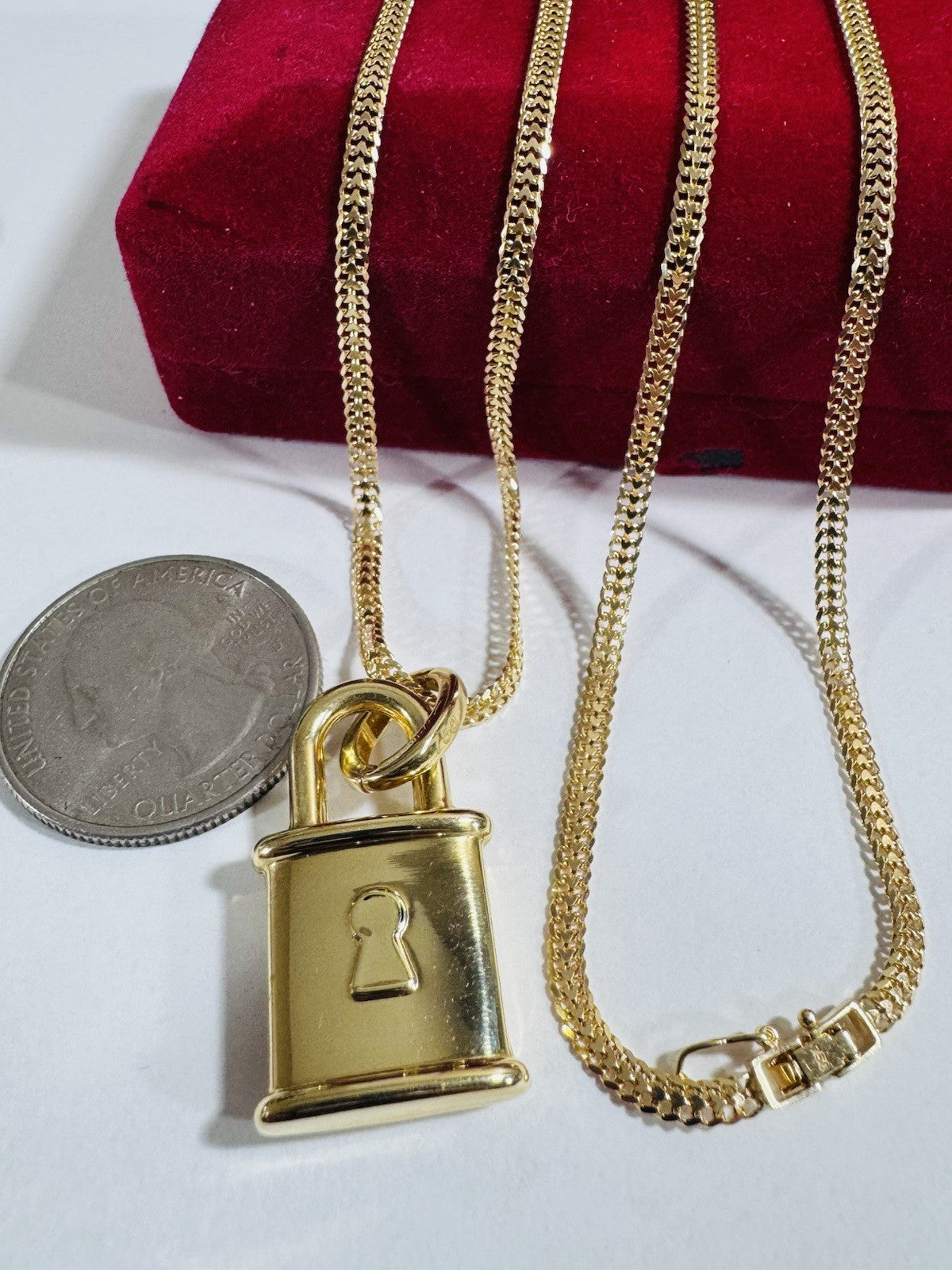 18C 18K 750 Fine Genuine Gold Padlock Set Necklace 19.7”/20” Long 8.7g 3mm