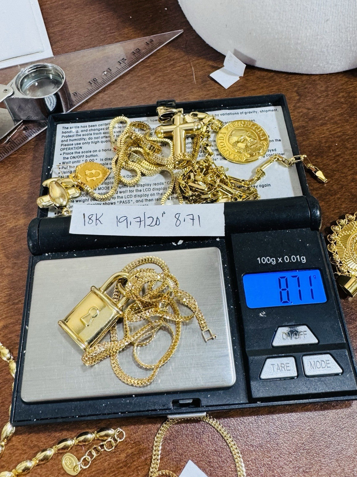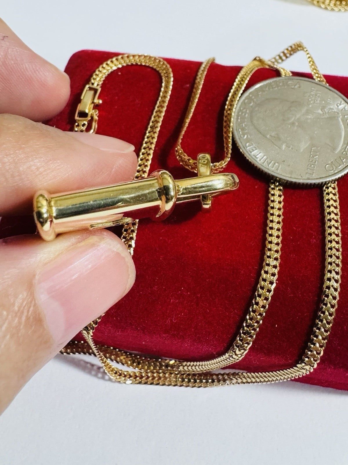 This beautiful Chain necklace is expertly crafted in 18K 750 real yellow gold and features a stunning Set Necklace with 19.7 inch chain with a lobster clasp with 3mm wide. 8.7 grams