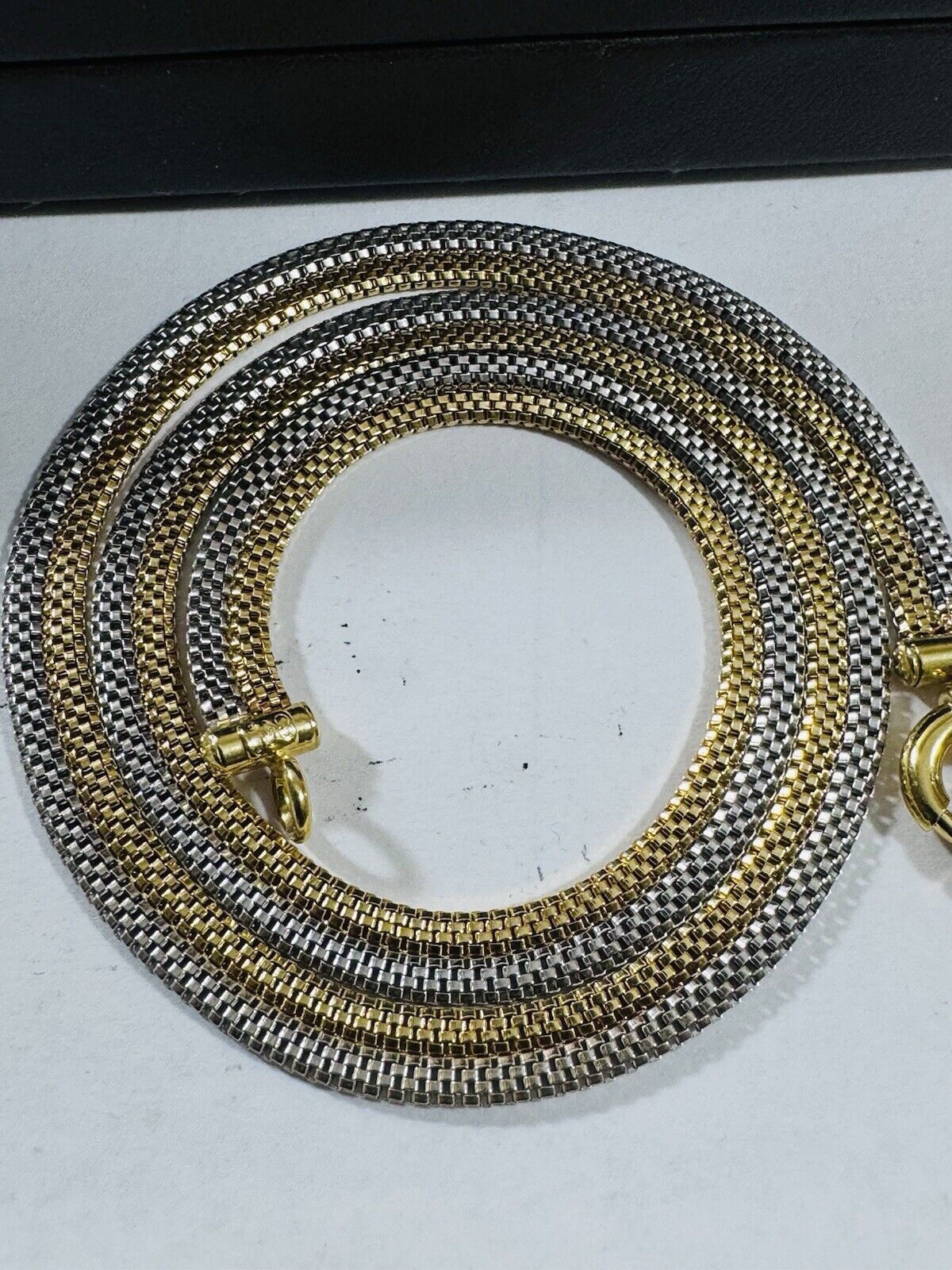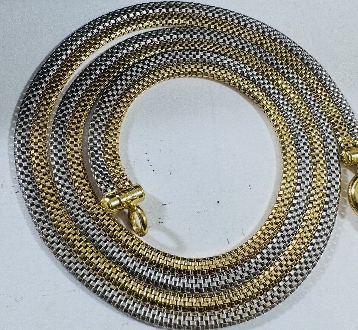 18K 18Ct 750 Fine Gold Twotone Chain Snake Chain Necklace 17” Long 6mm 15.8g