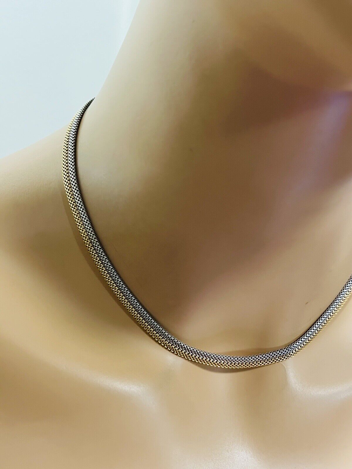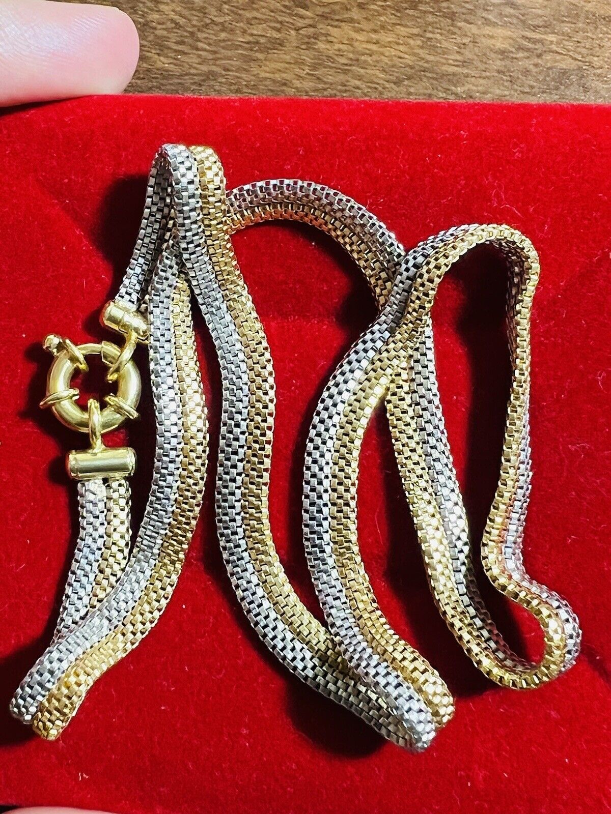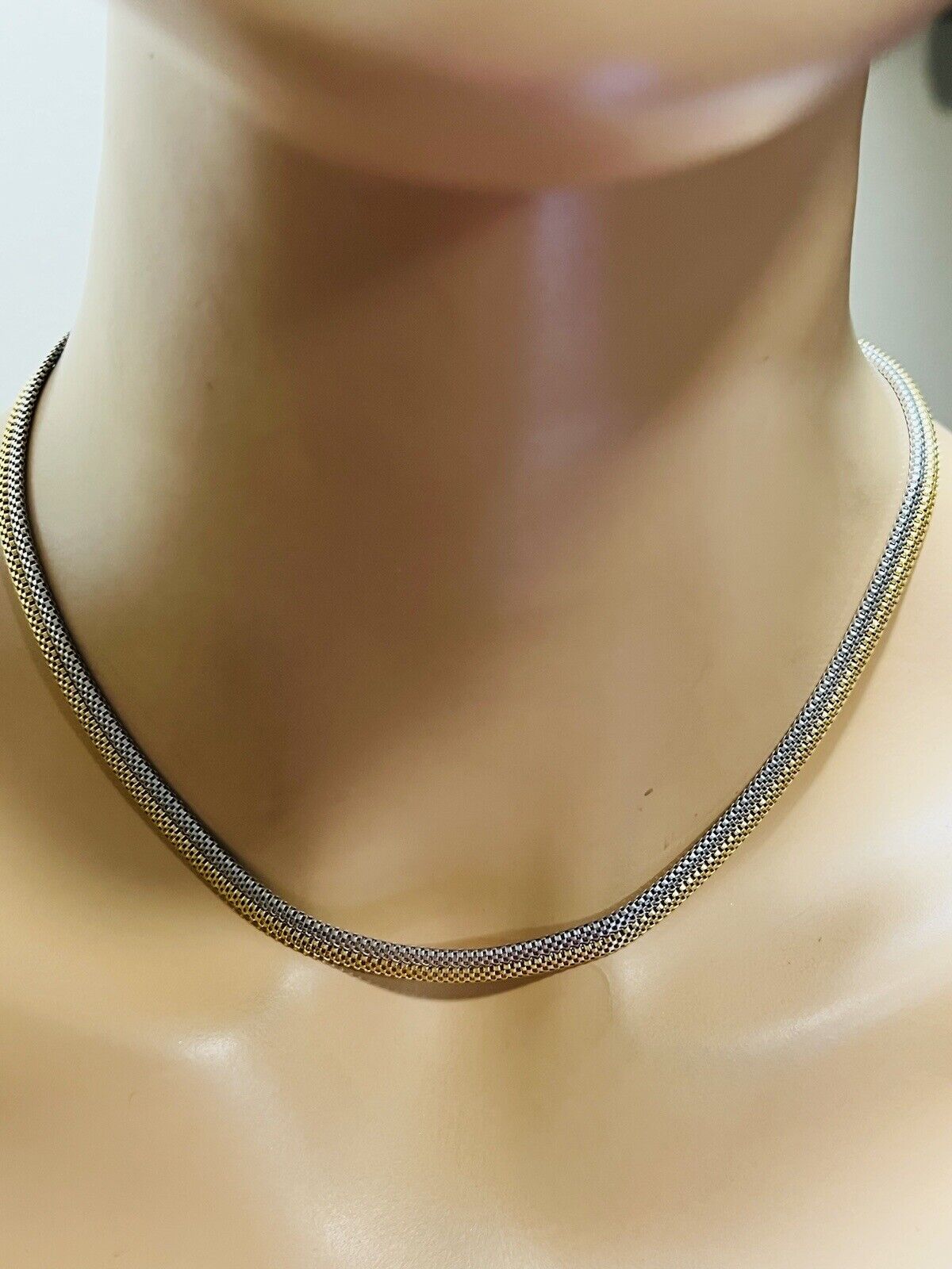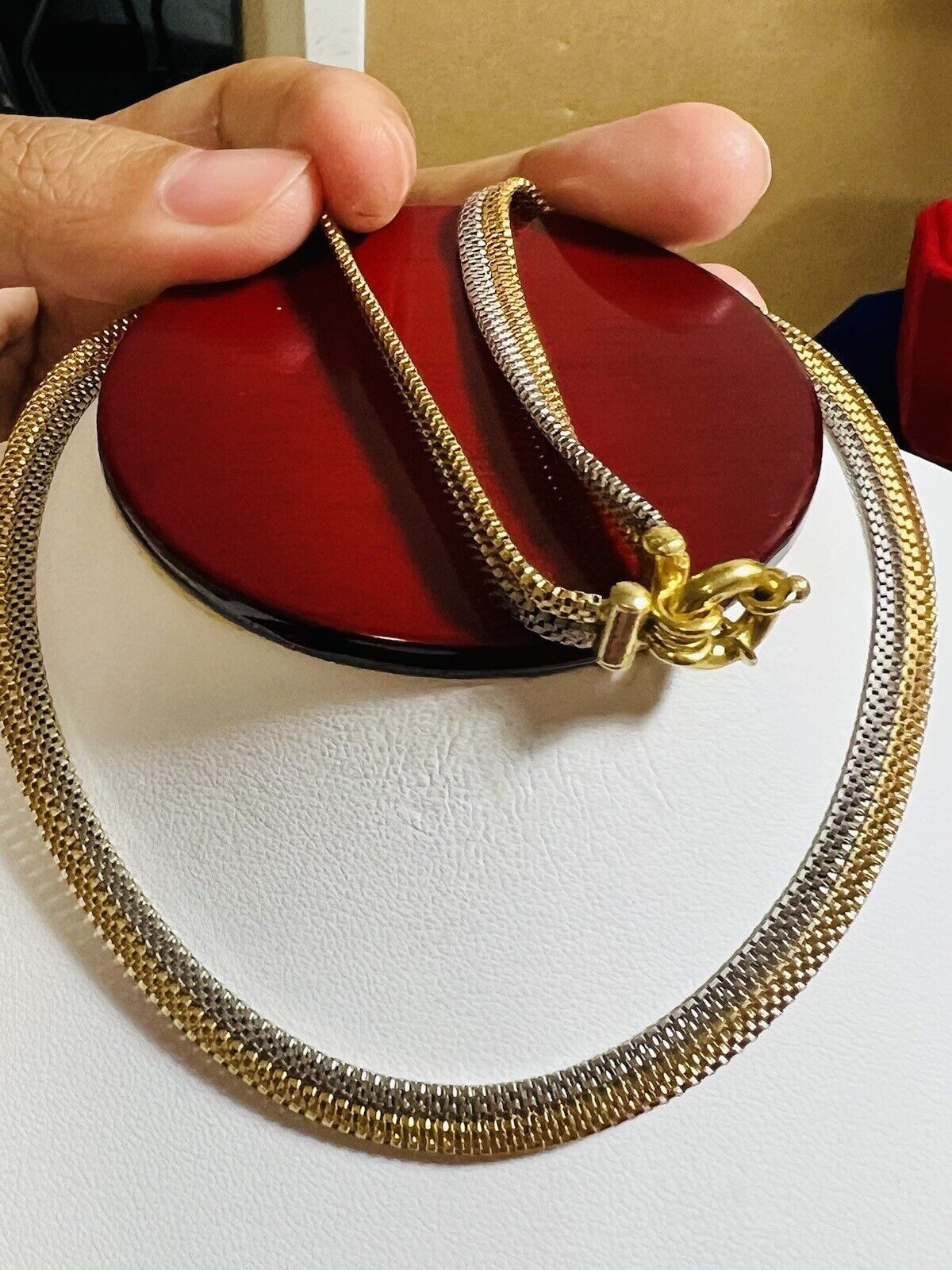 18K 18CT 750 Saudi Two Tone Gold Snake Women’s Necklace 17” Long 6mm 15.8g