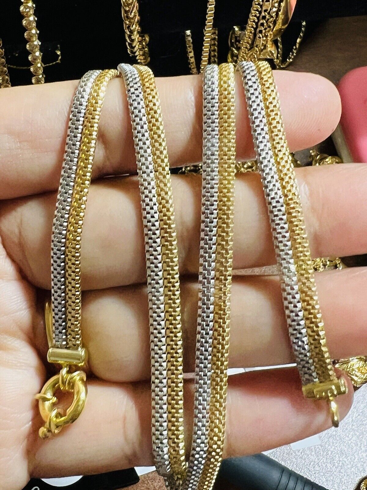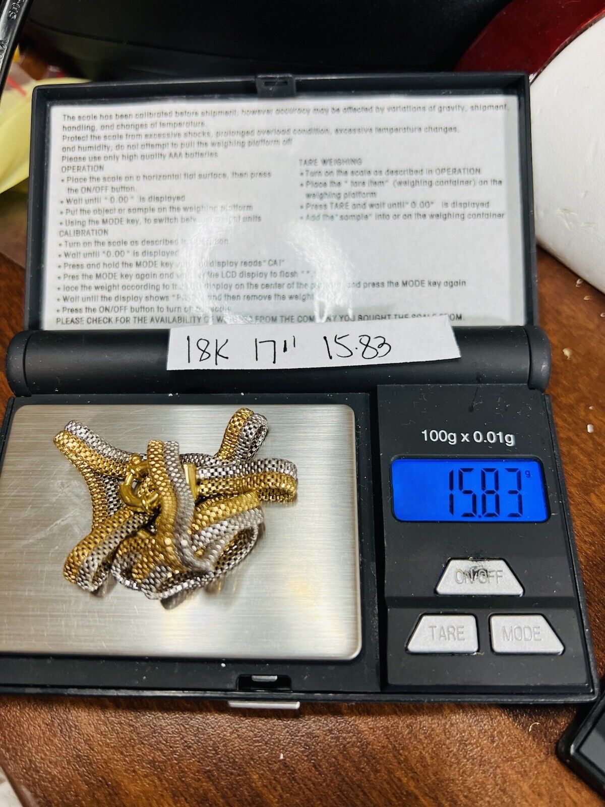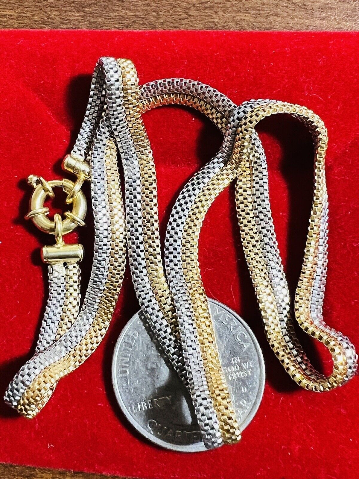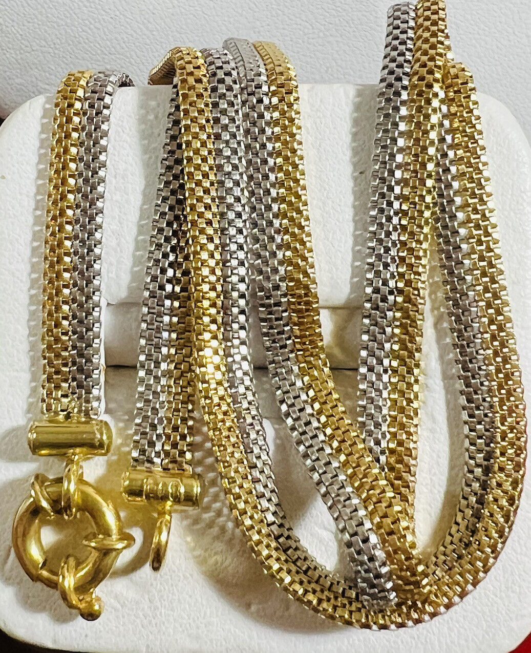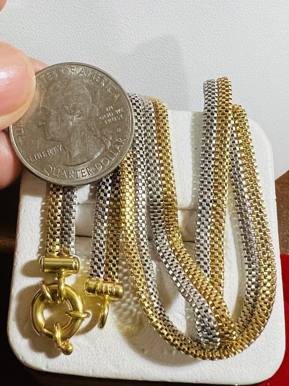 18K 18CT 750 Saudi Two Tone Gold Snake Women’s Necklace 17” Long 6mm 15.8g