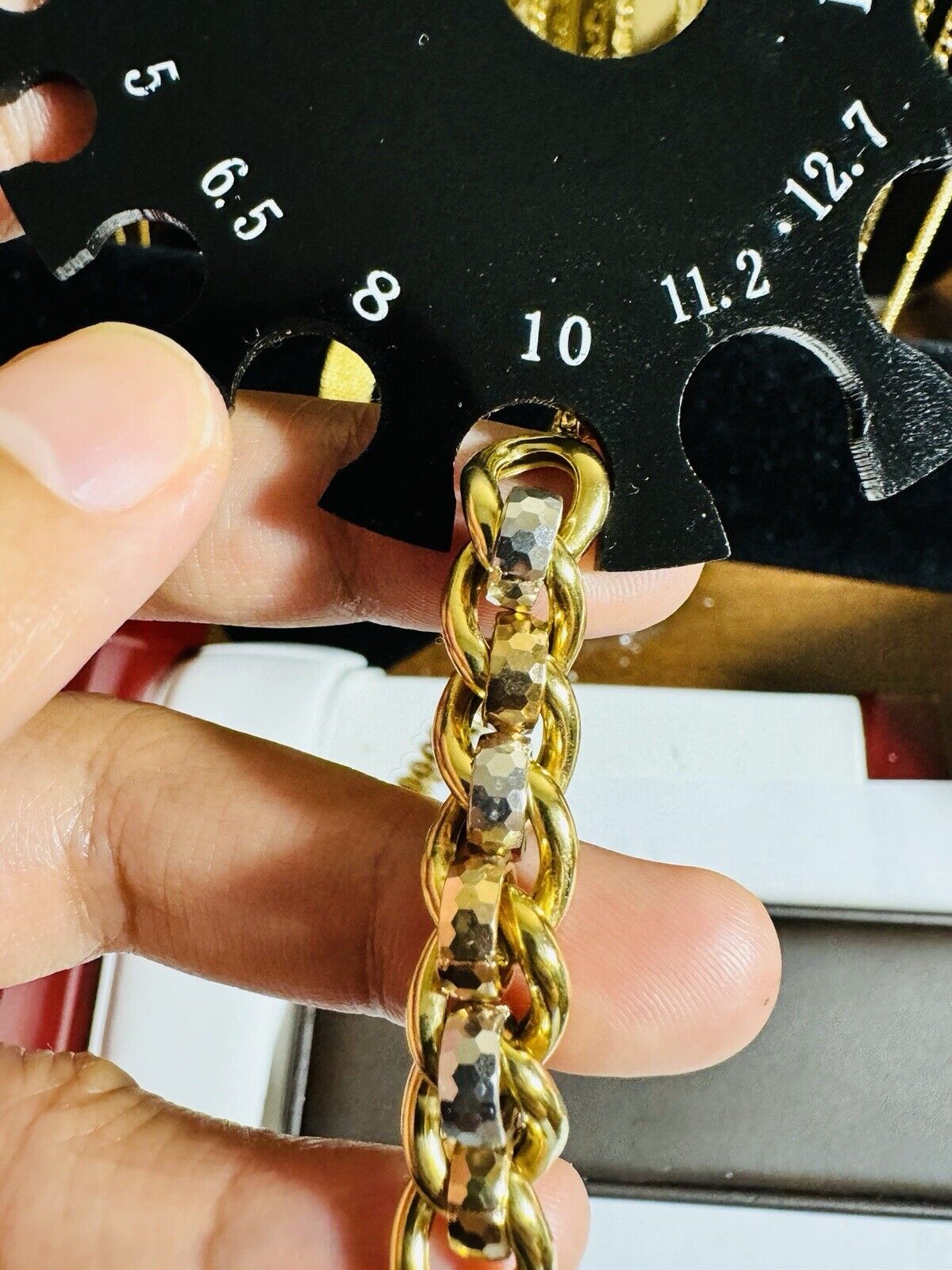 You are buying Real Beautiful 18K 750 Fine Saudi Gold will fits 6.5-8” Long Womens Bar Bracelet With 10.8g 10mm Wide Tri colors Fast Ship!