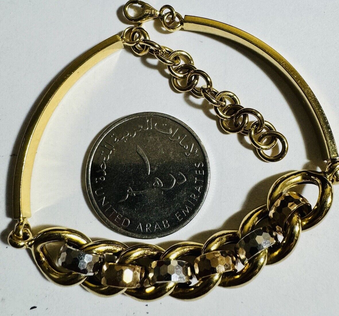18K 750 18C Saudi Dubai Fine Tricolors Gold 6.5-8” Long Bracelet 10.8g 10mm