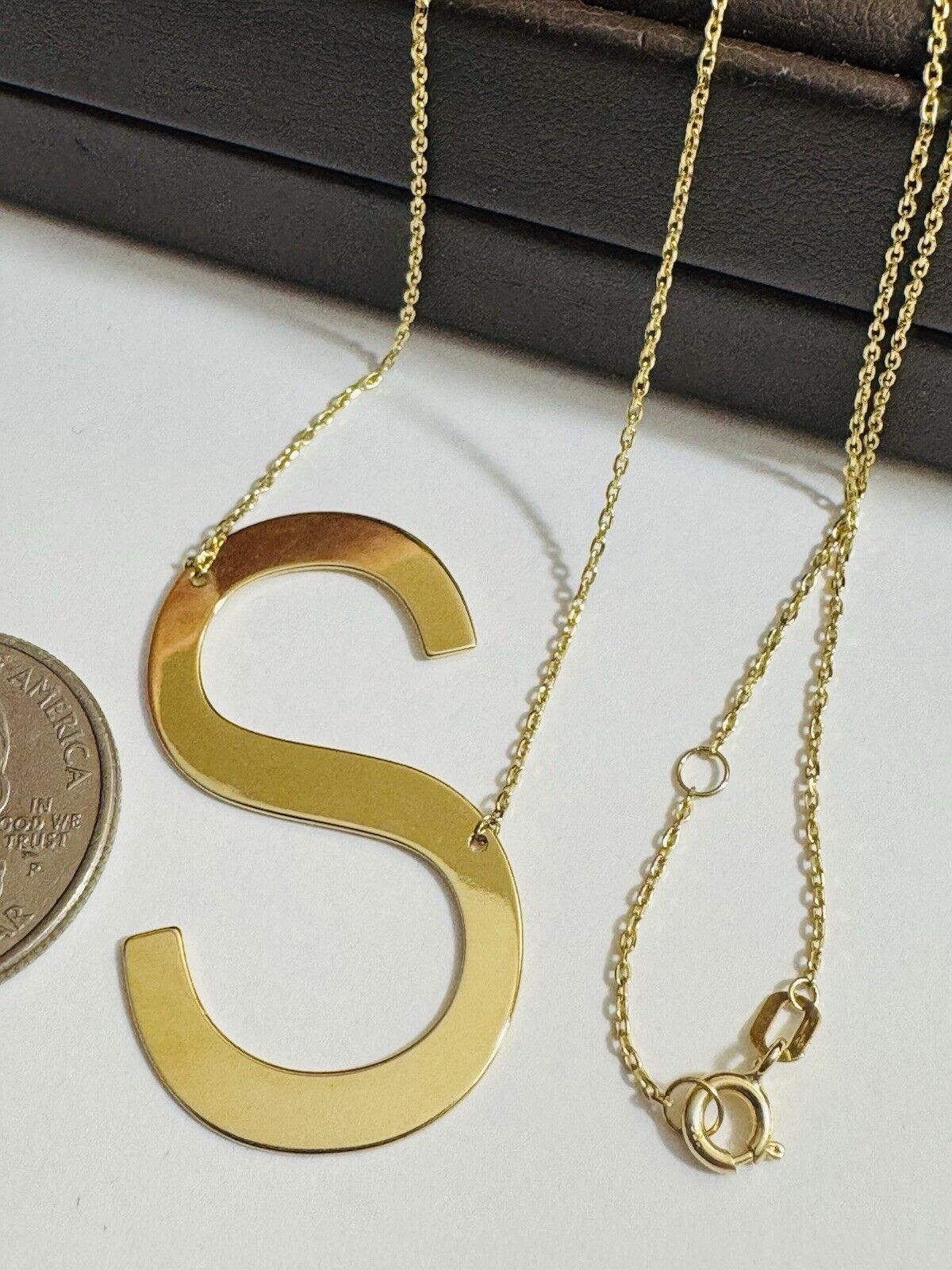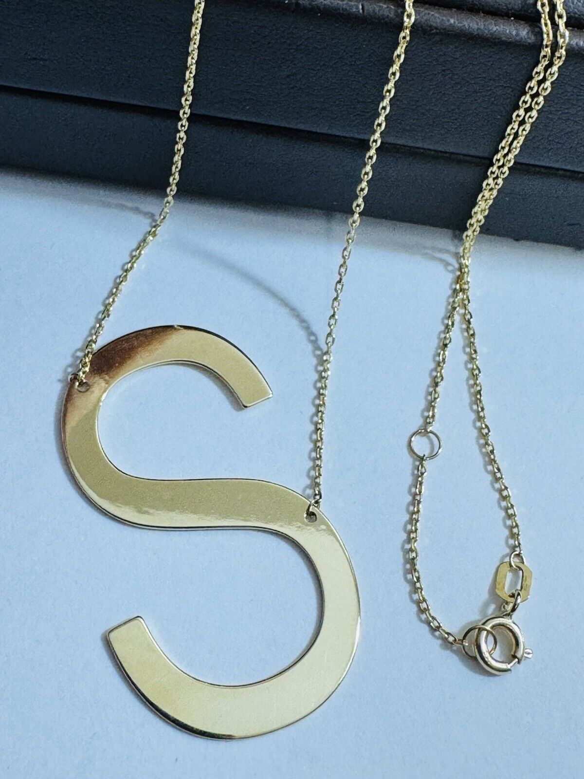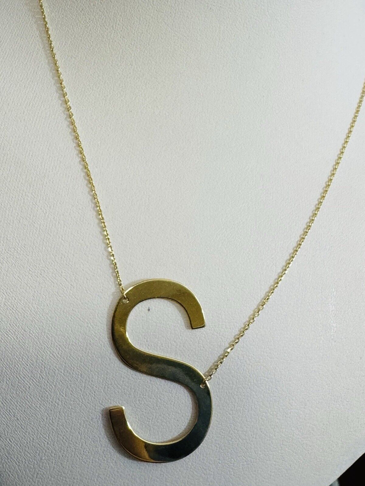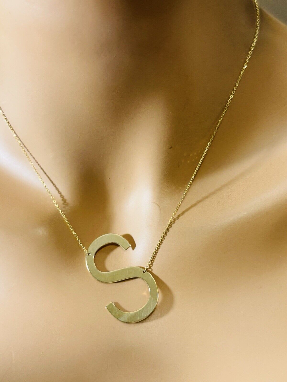 This beautiful necklace is expertly crafted in 18K 750 real yellow gold and features a stunning Name Initial pendant on a 16.5/17.5” inch chain with a secured clasp. Light weight and thin chain.