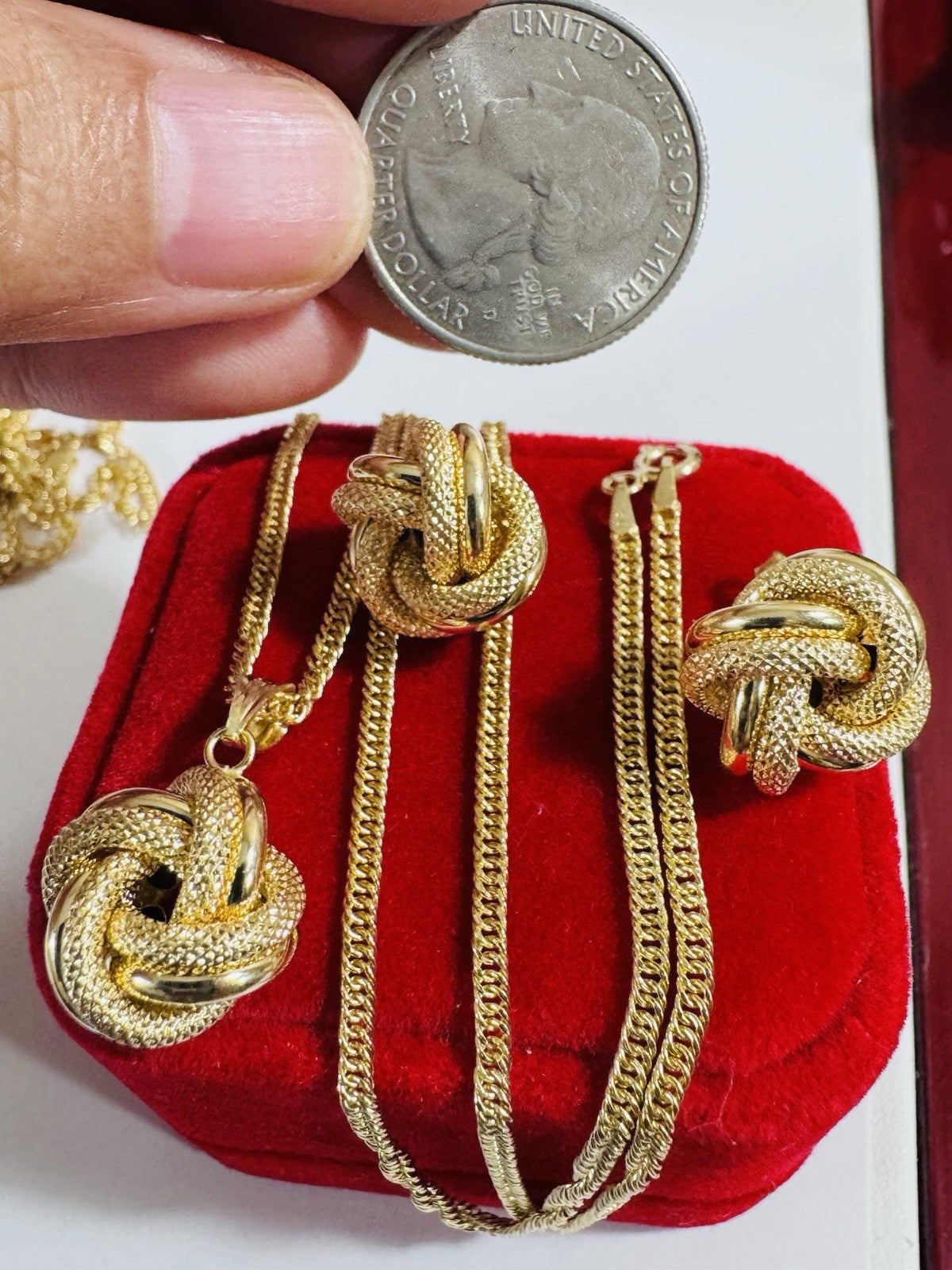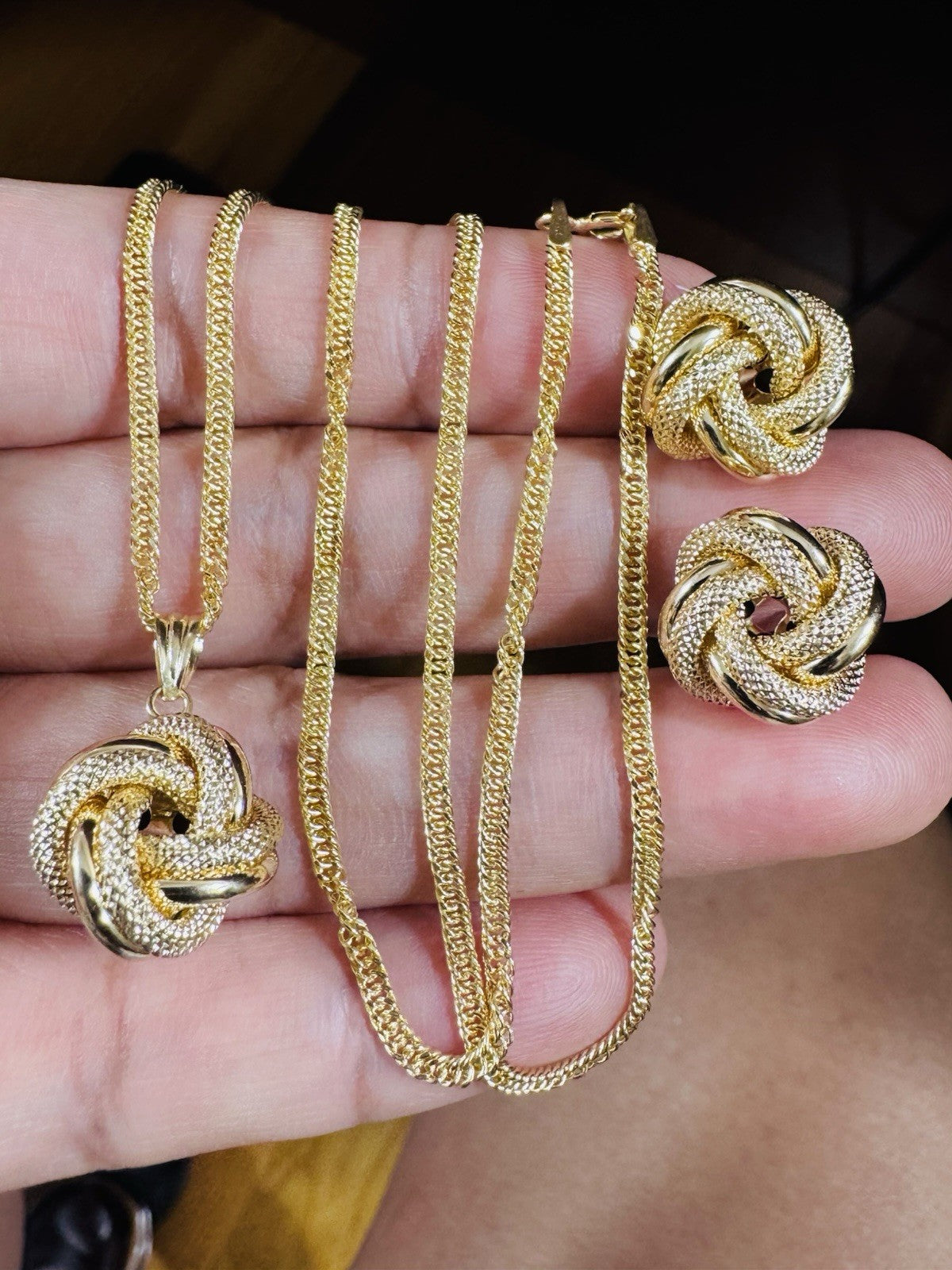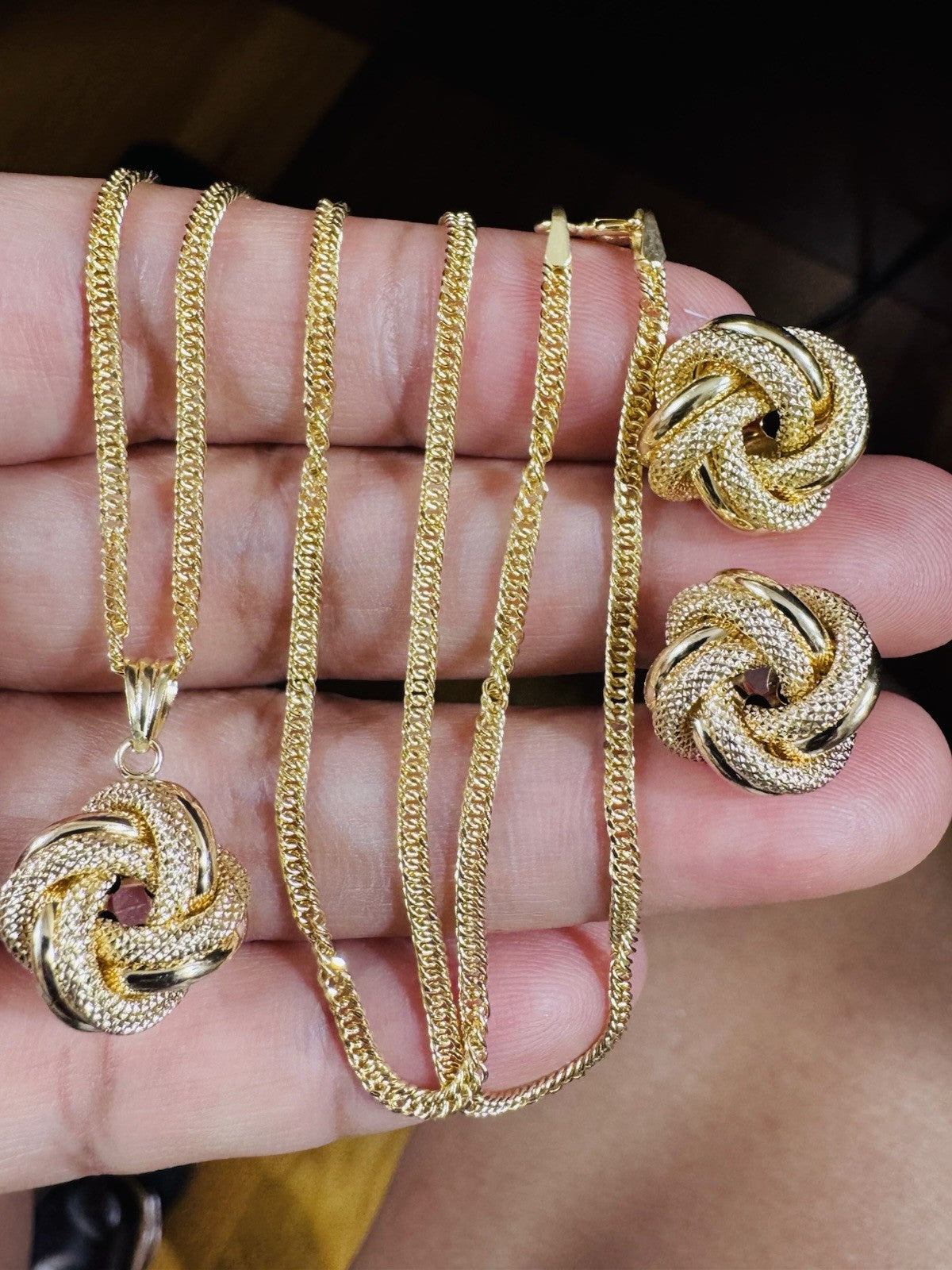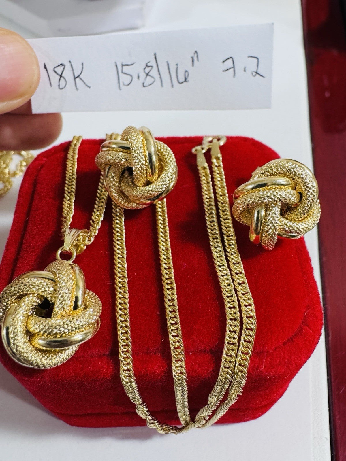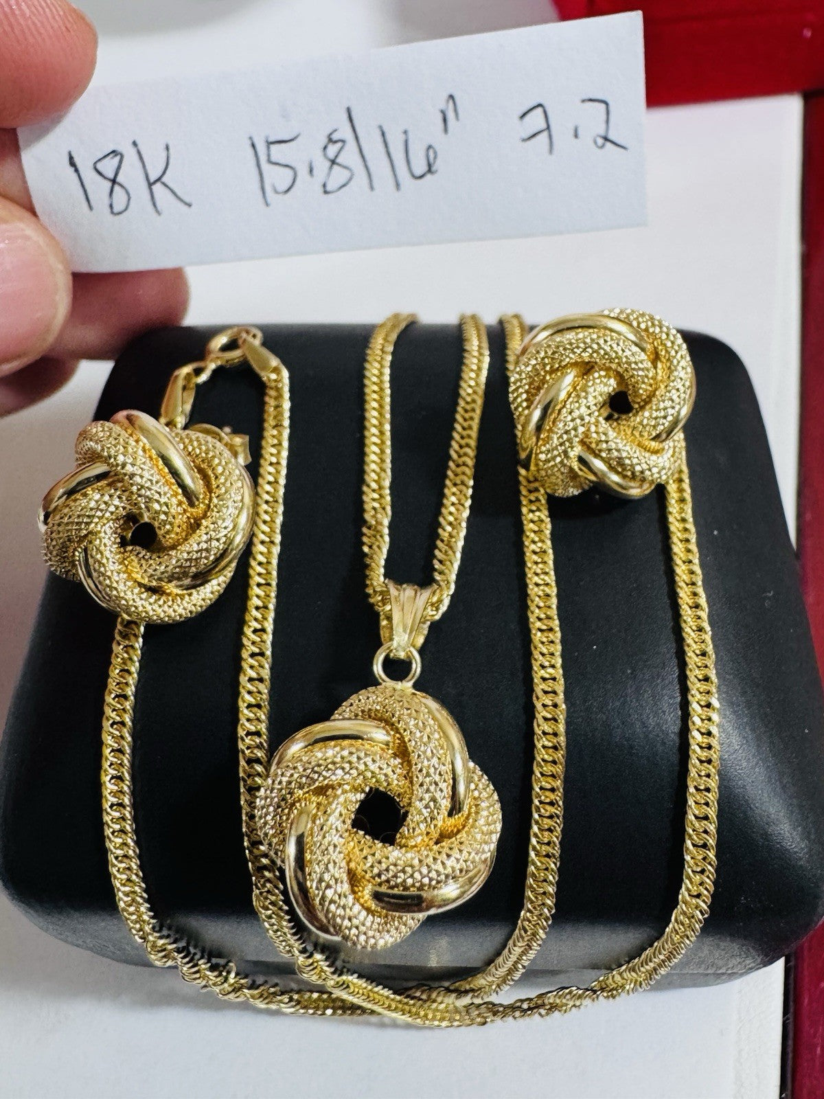 18K 750 Fine Genuine Gold Knot Love Earring & Necklace 15.8/16” Long 7.2g 2.2mm