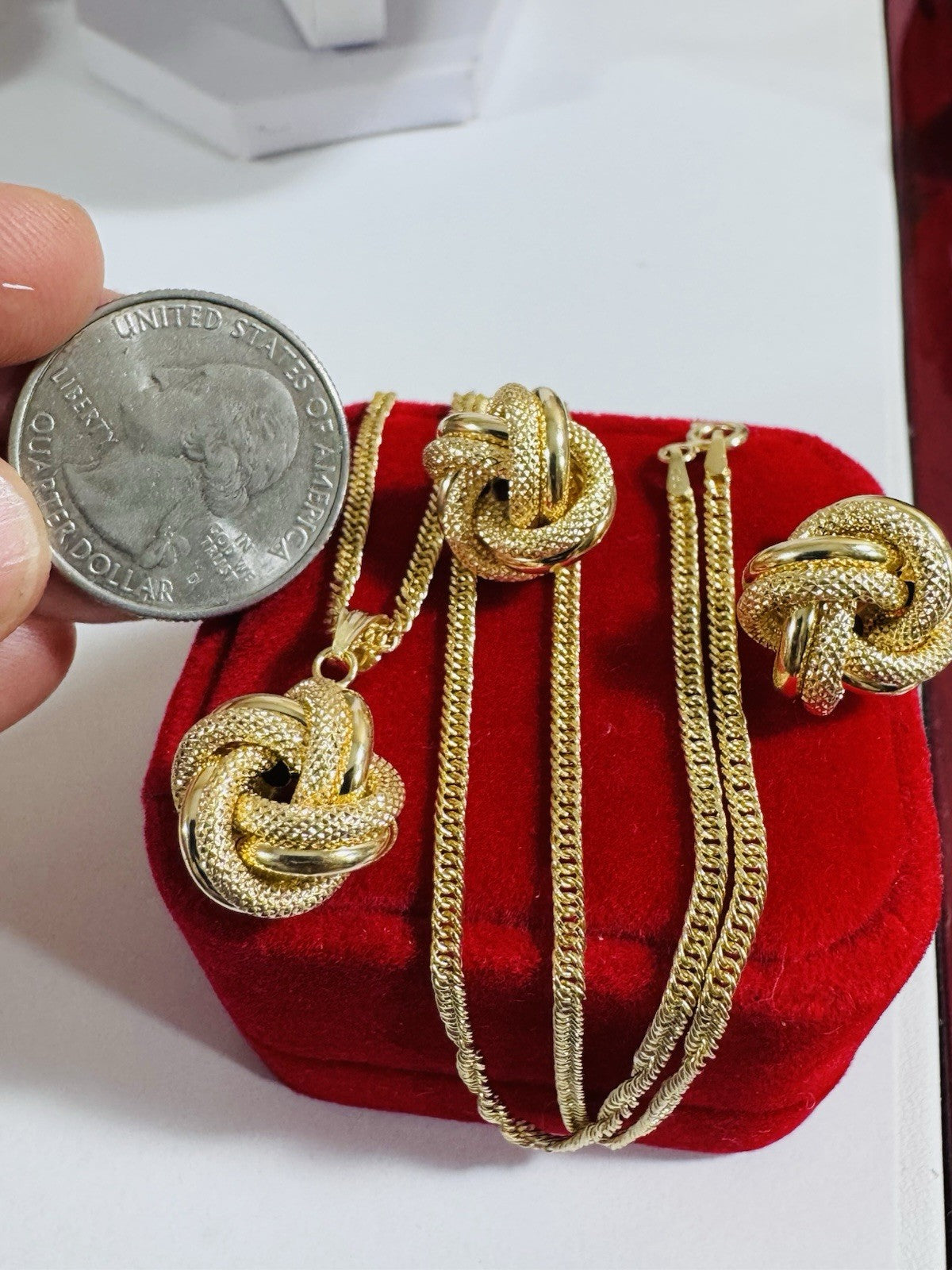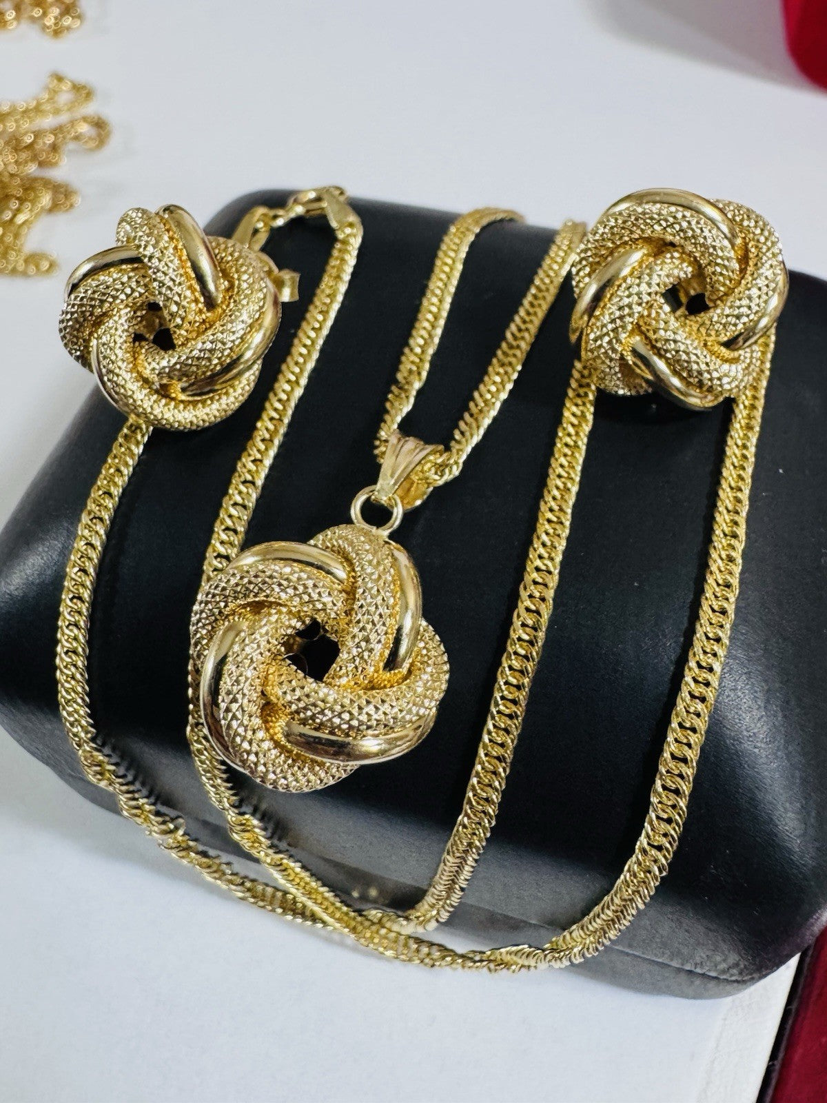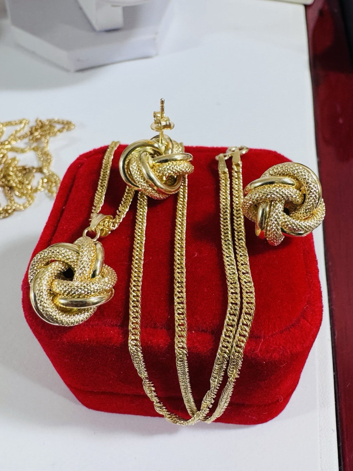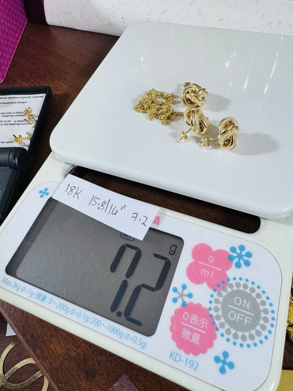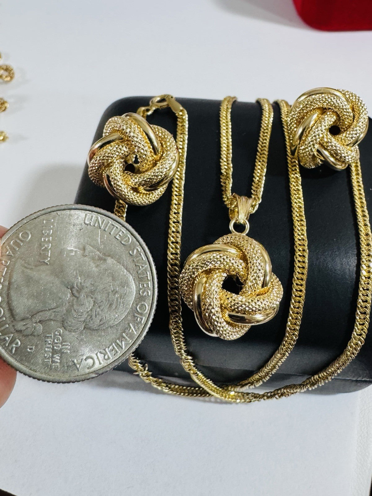 18K 750 Fine Genuine Gold Knot Love Earring & Necklace 15.8/16” Long 7.2g 2.2mm