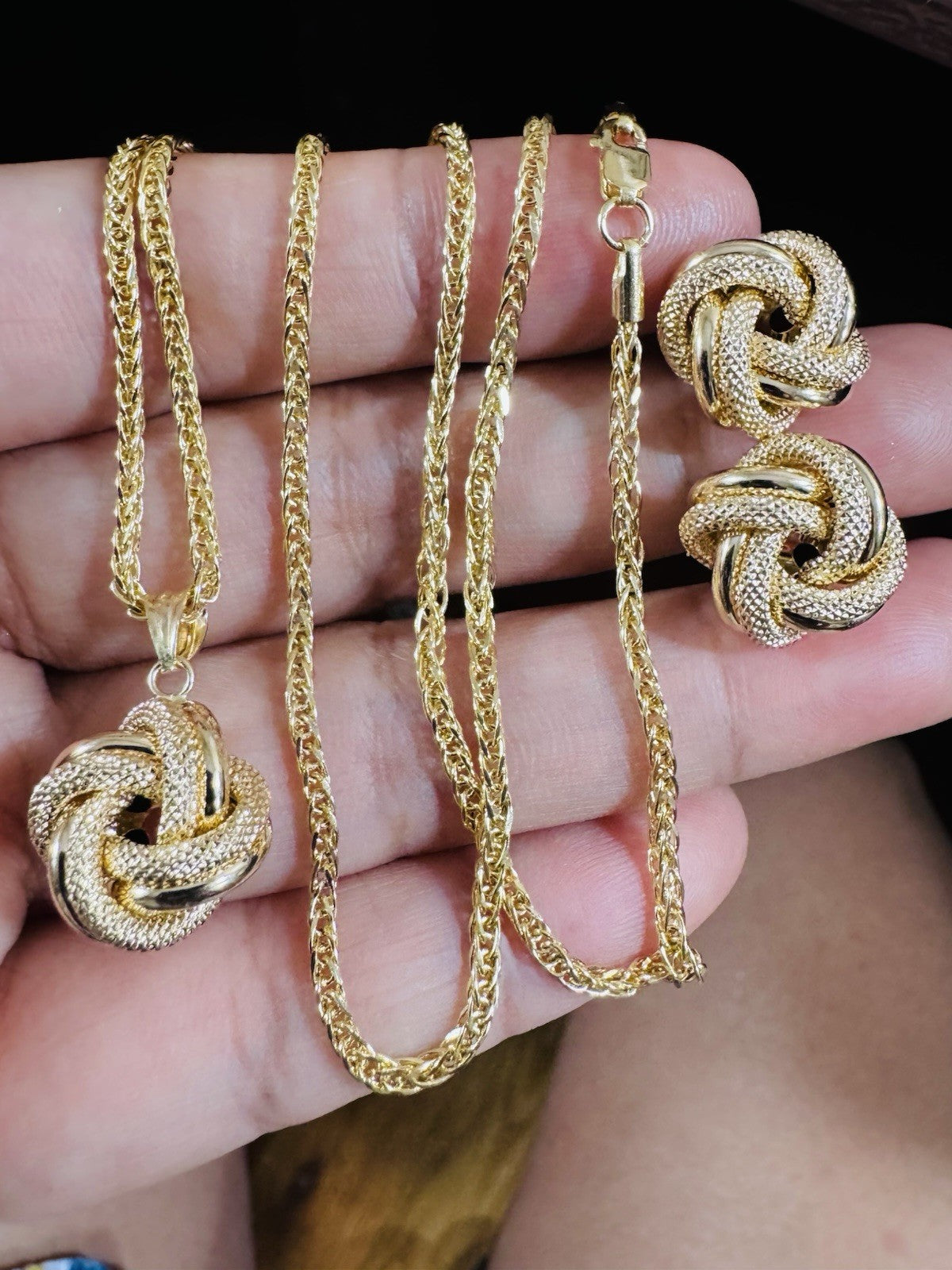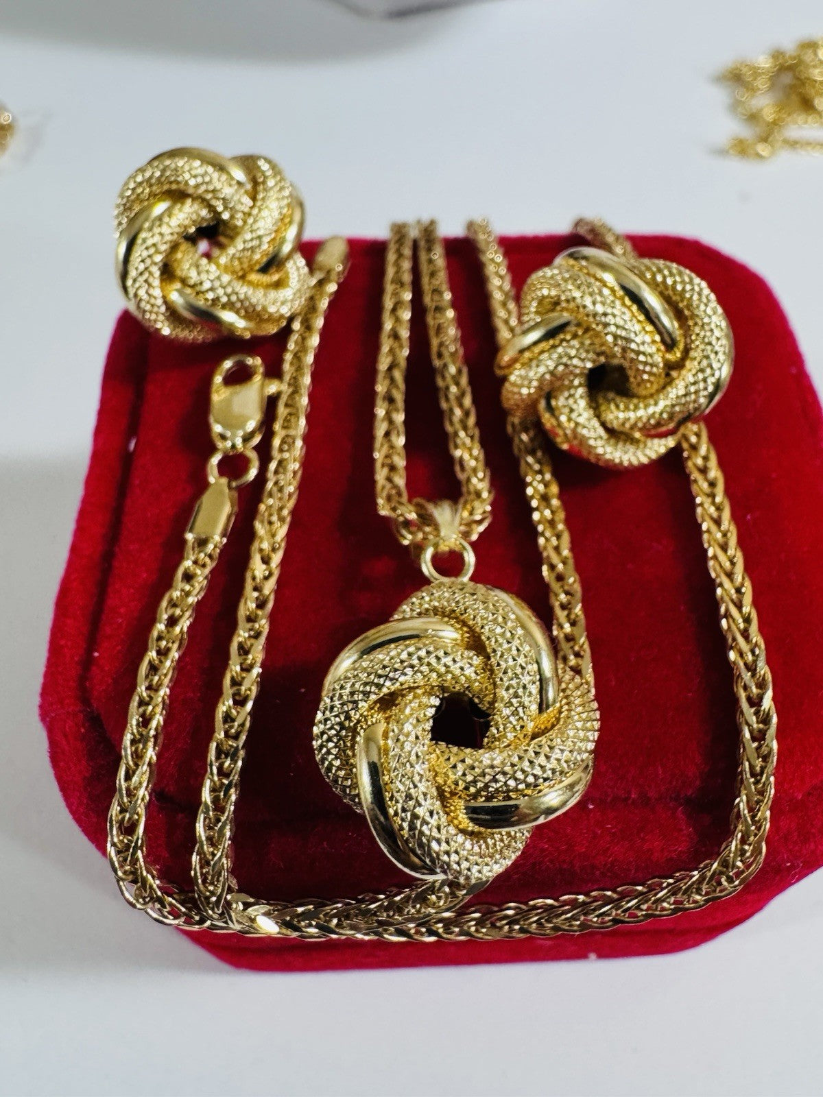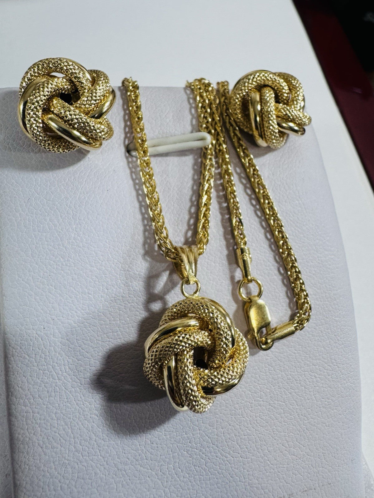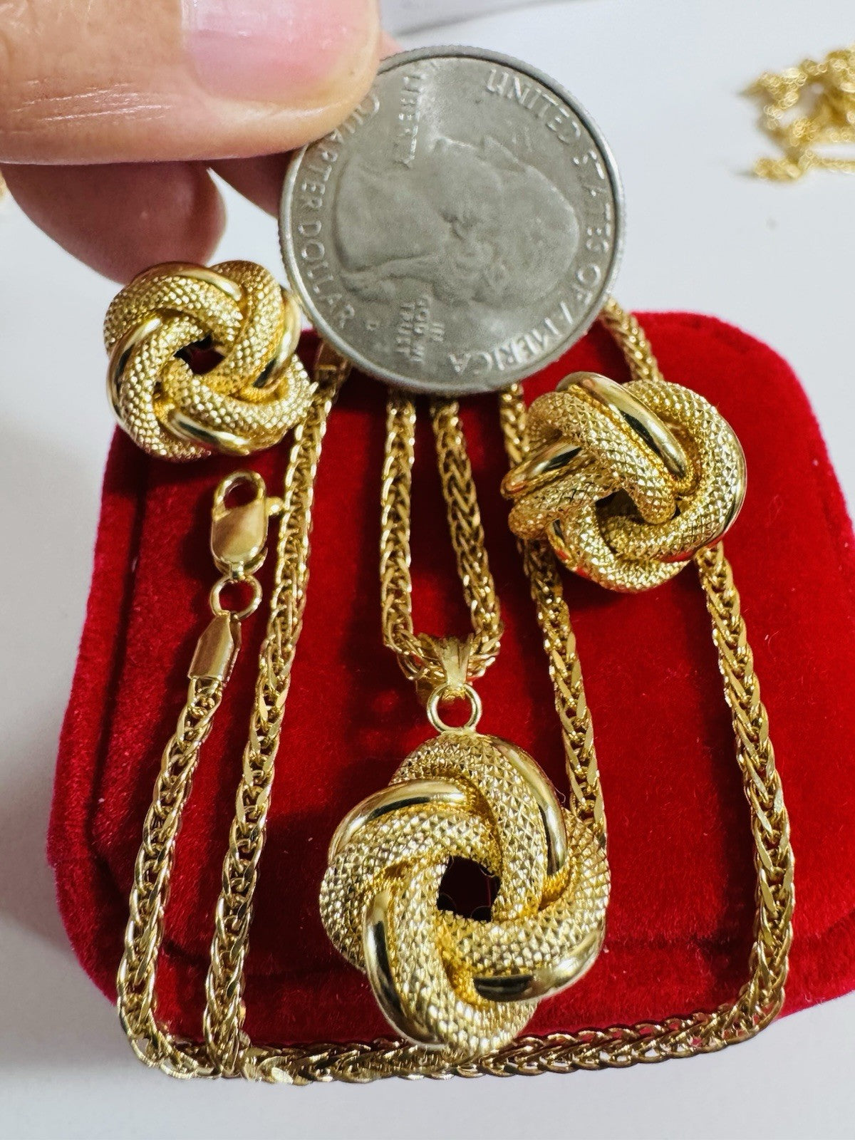 18K 750 Fine Genuine Gold Knot Love Earring & Necklace 15.8/16” Long 8g 2mm