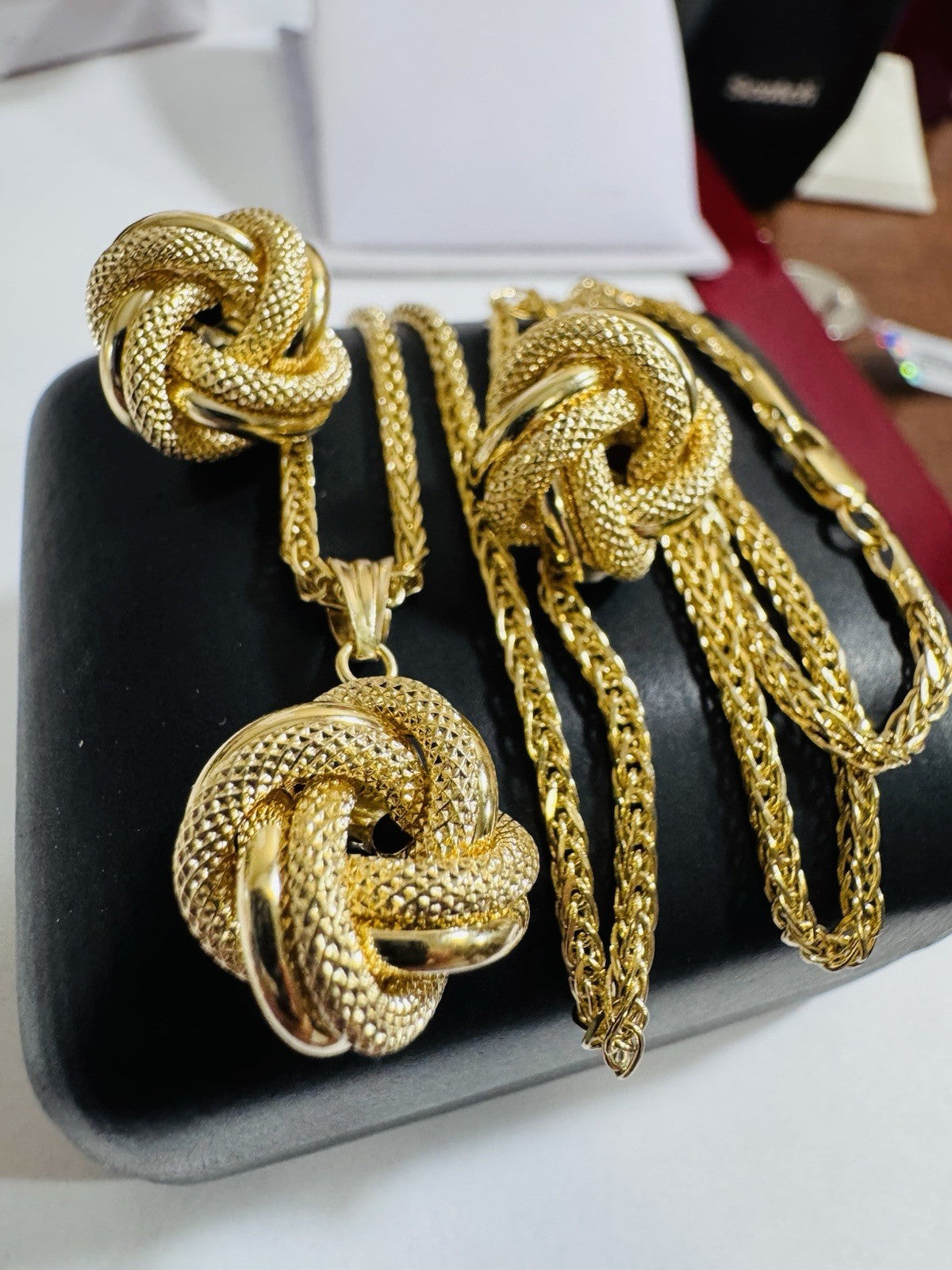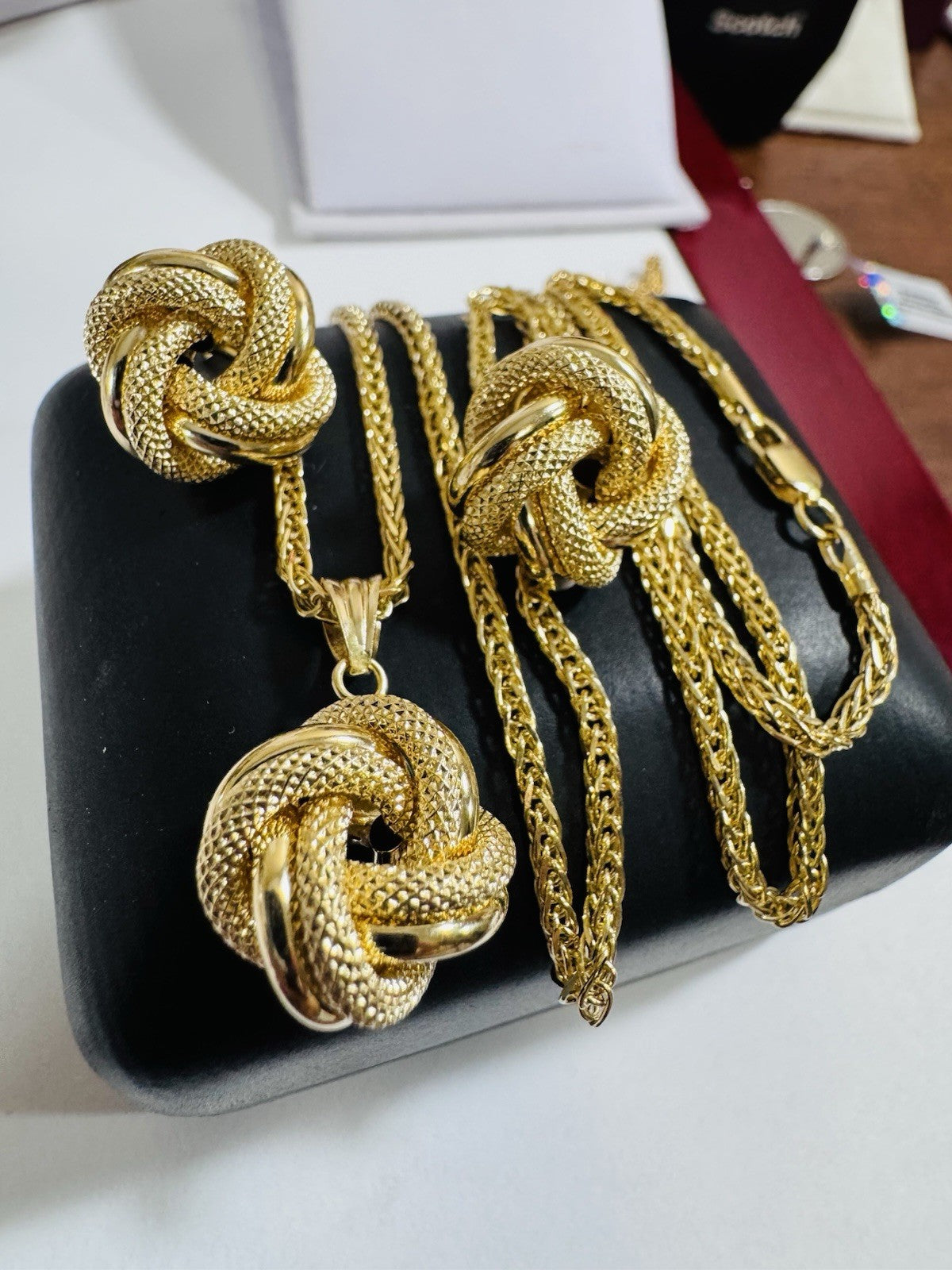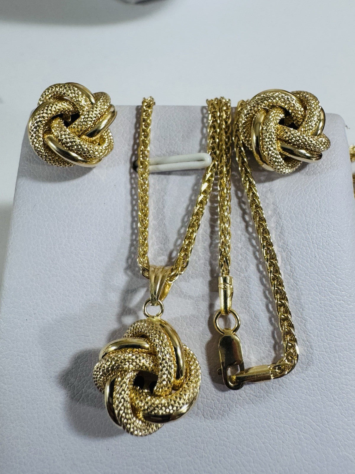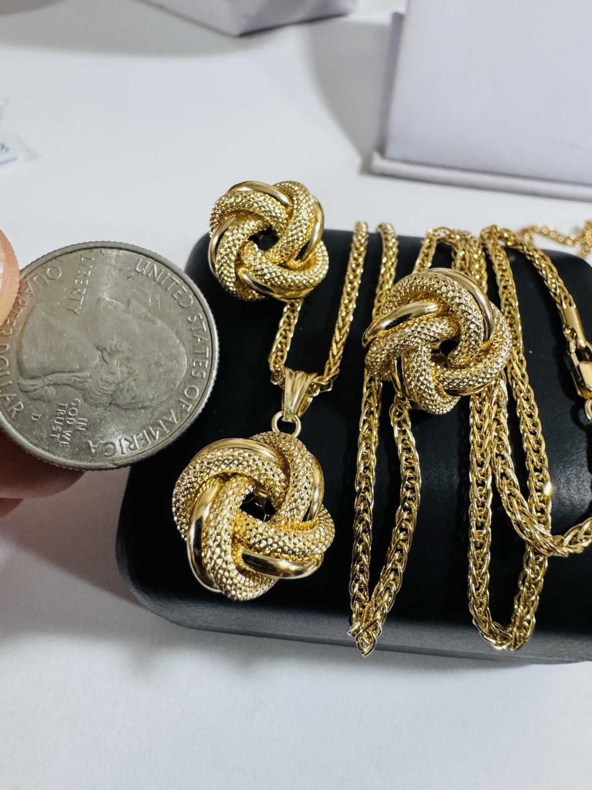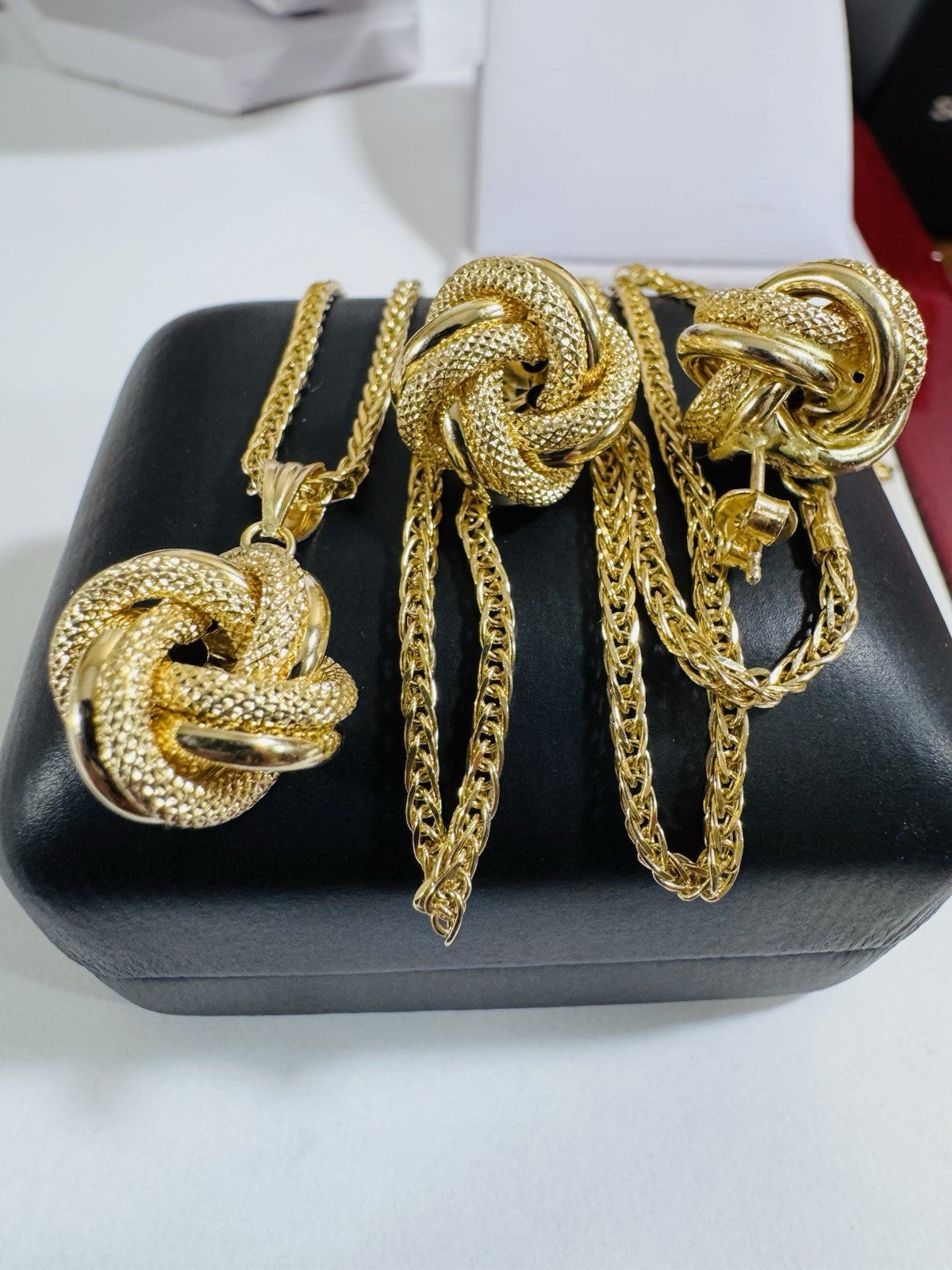 18K 750 Fine Genuine Gold Knot Love Earring & Necklace 15.8/16” Long 8g 2mm