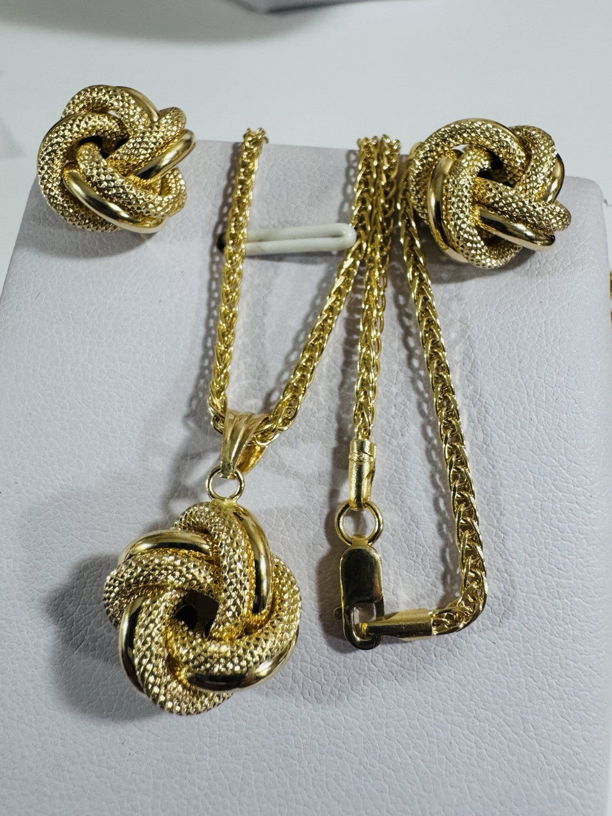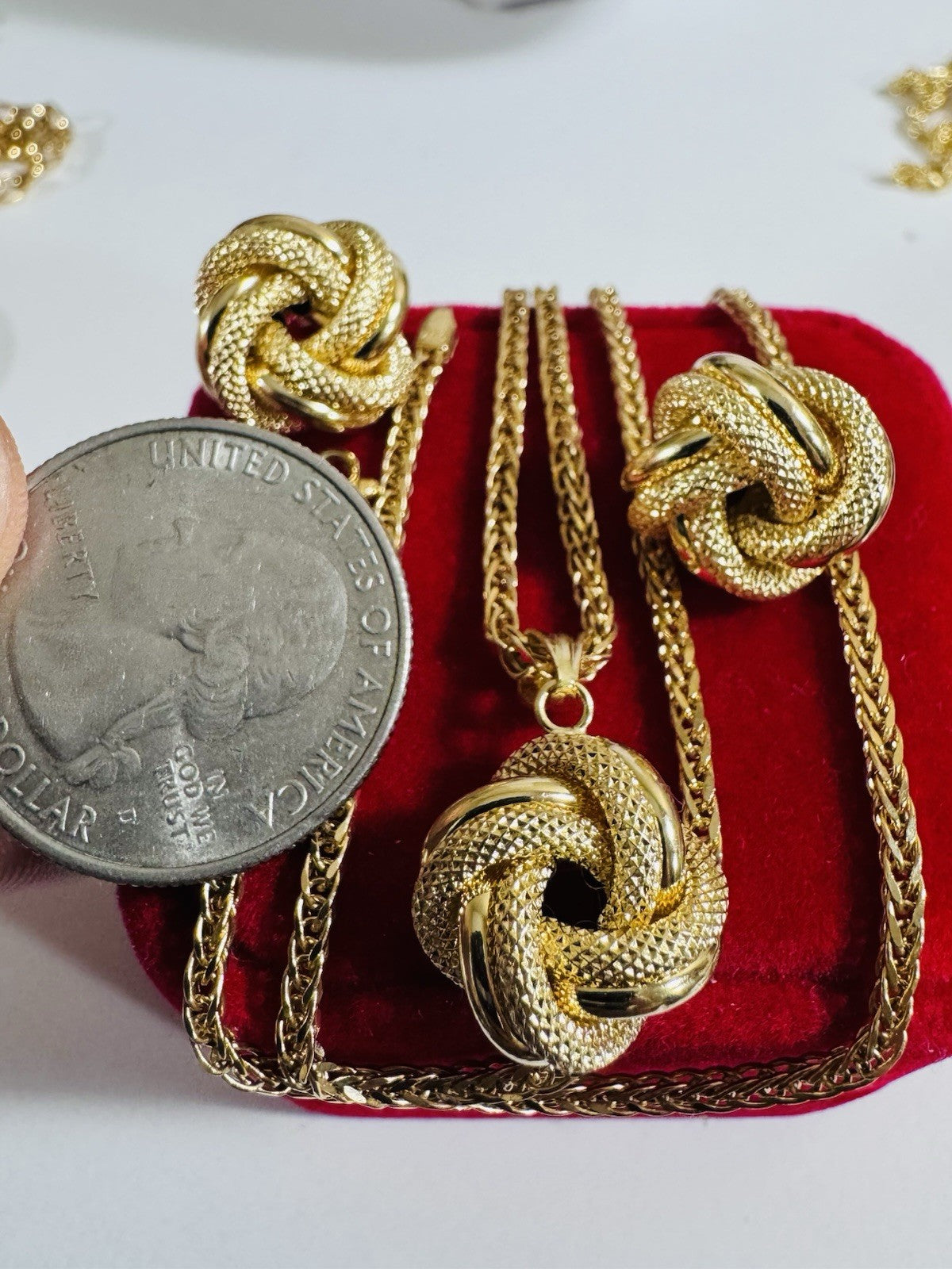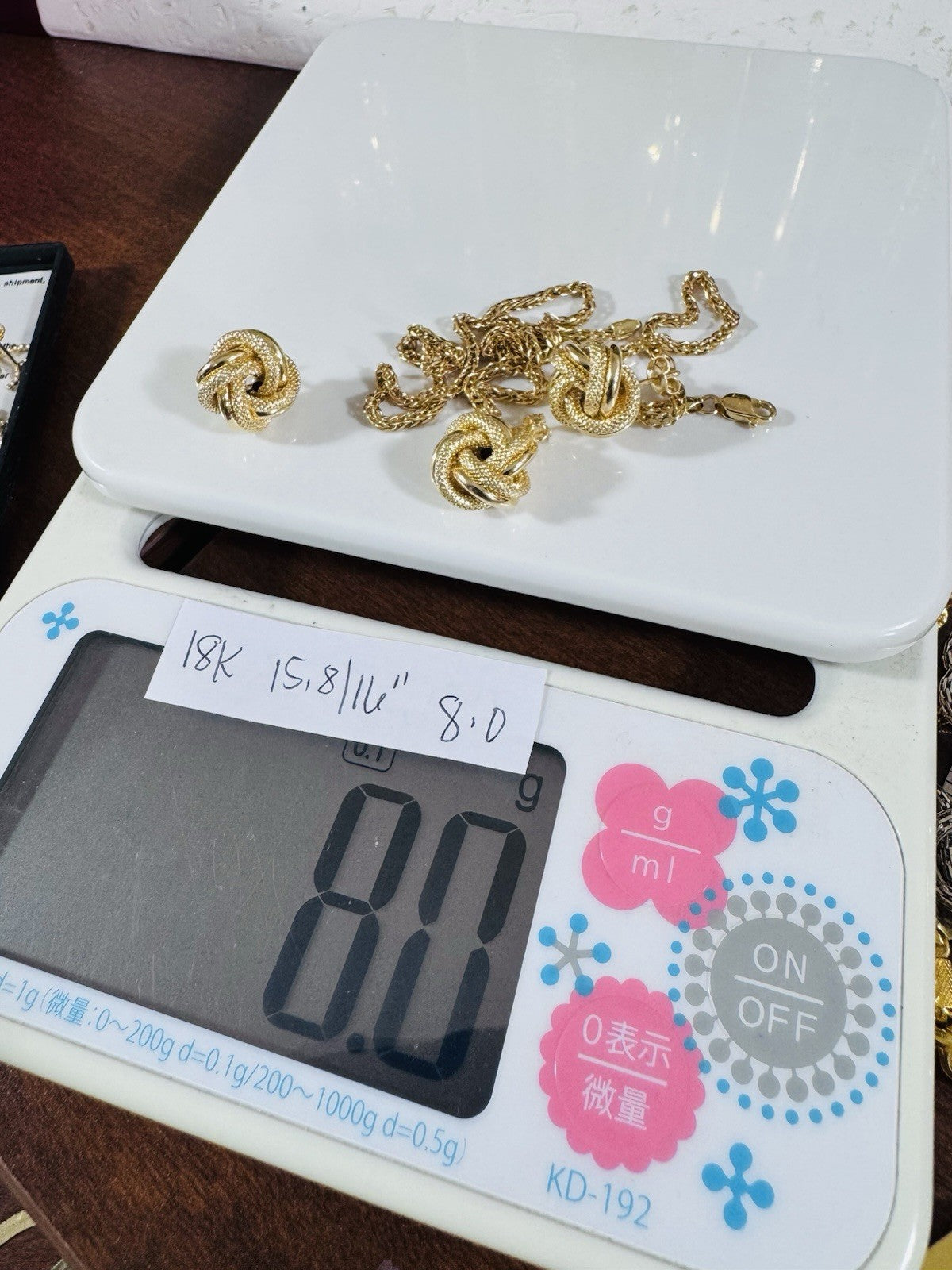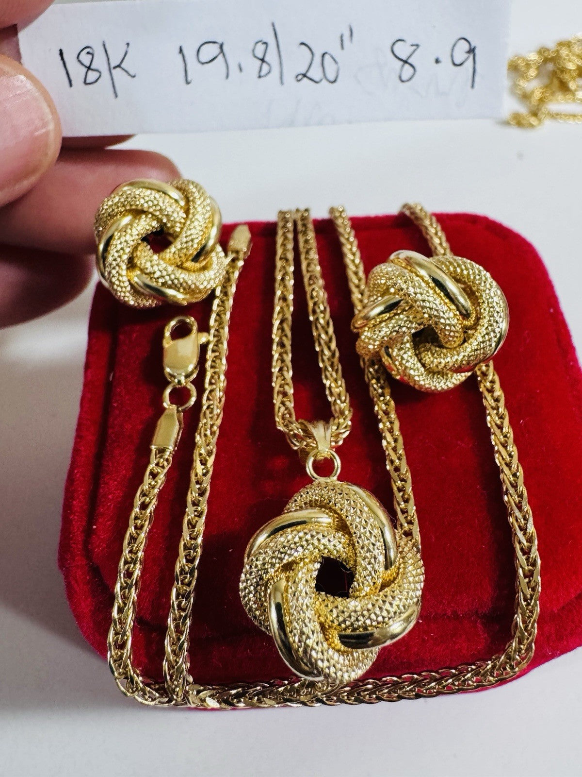 18K 750 Fine Genuine Gold Knot Love Earring & Necklace 15.8/16” Long 8g 2mm