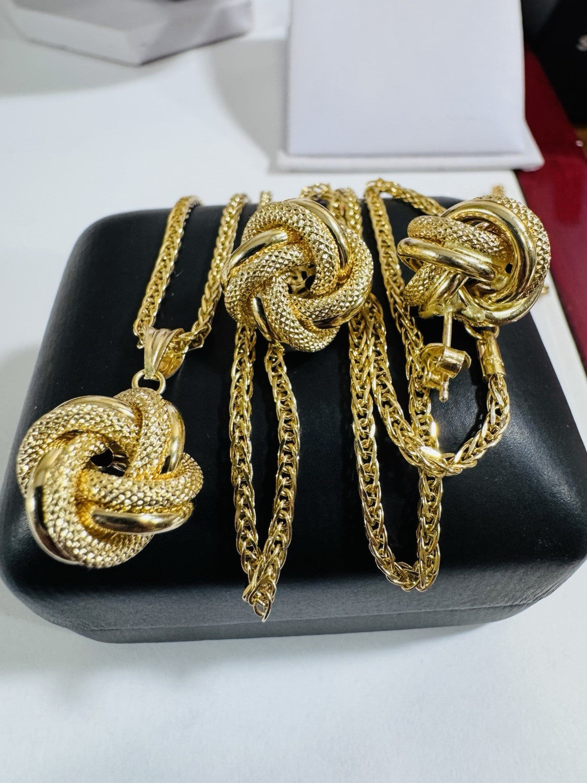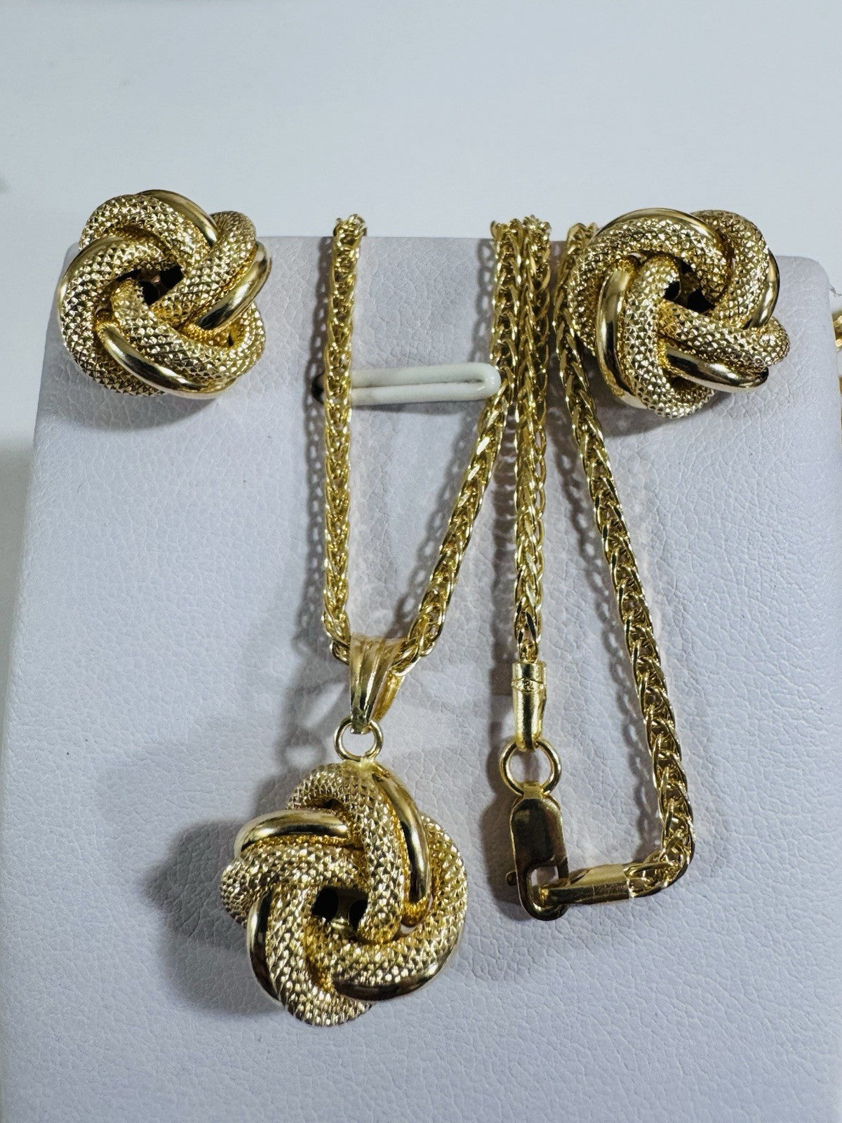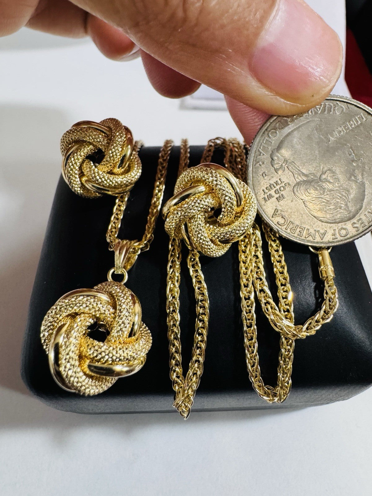 18K 750 Fine Genuine Gold Knot Love Earring & Necklace 15.8/16” Long 8g 2mm