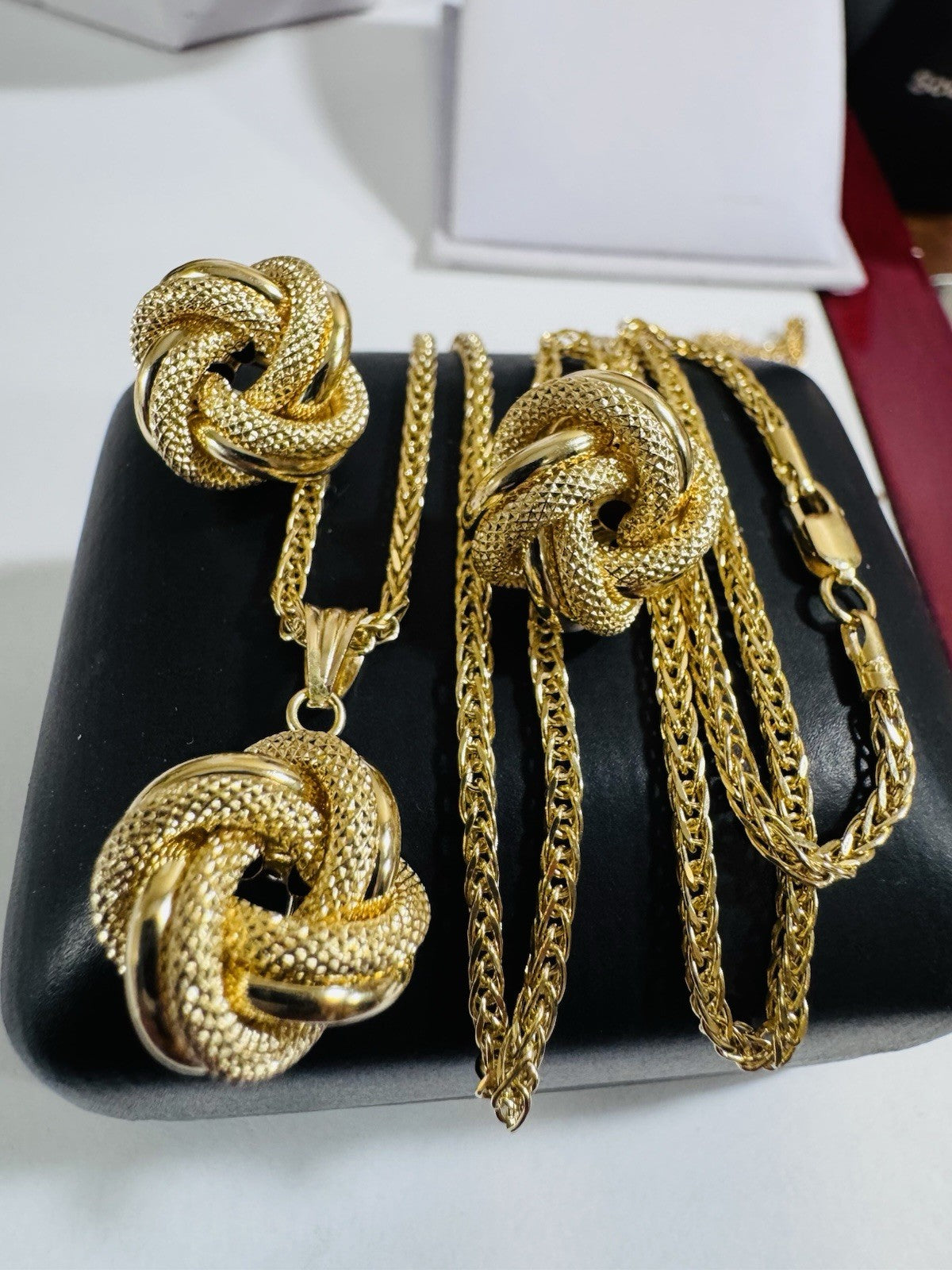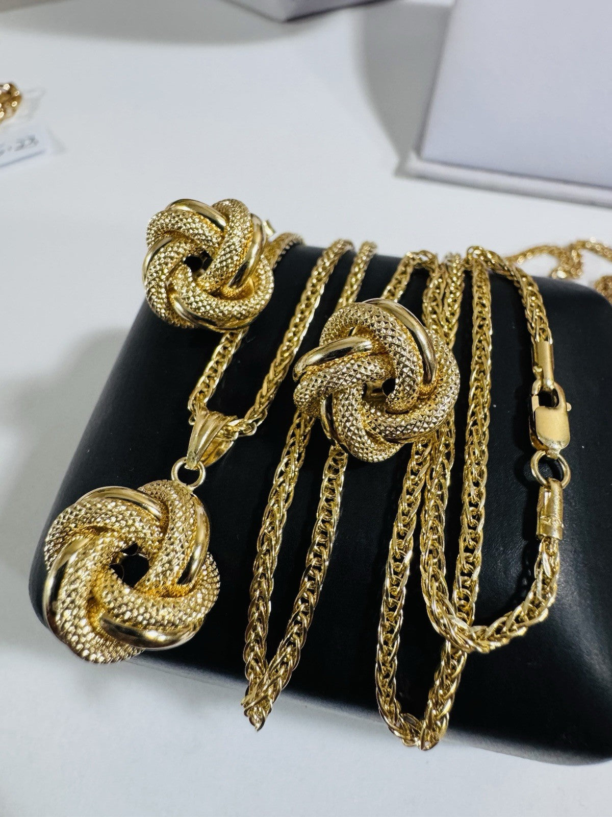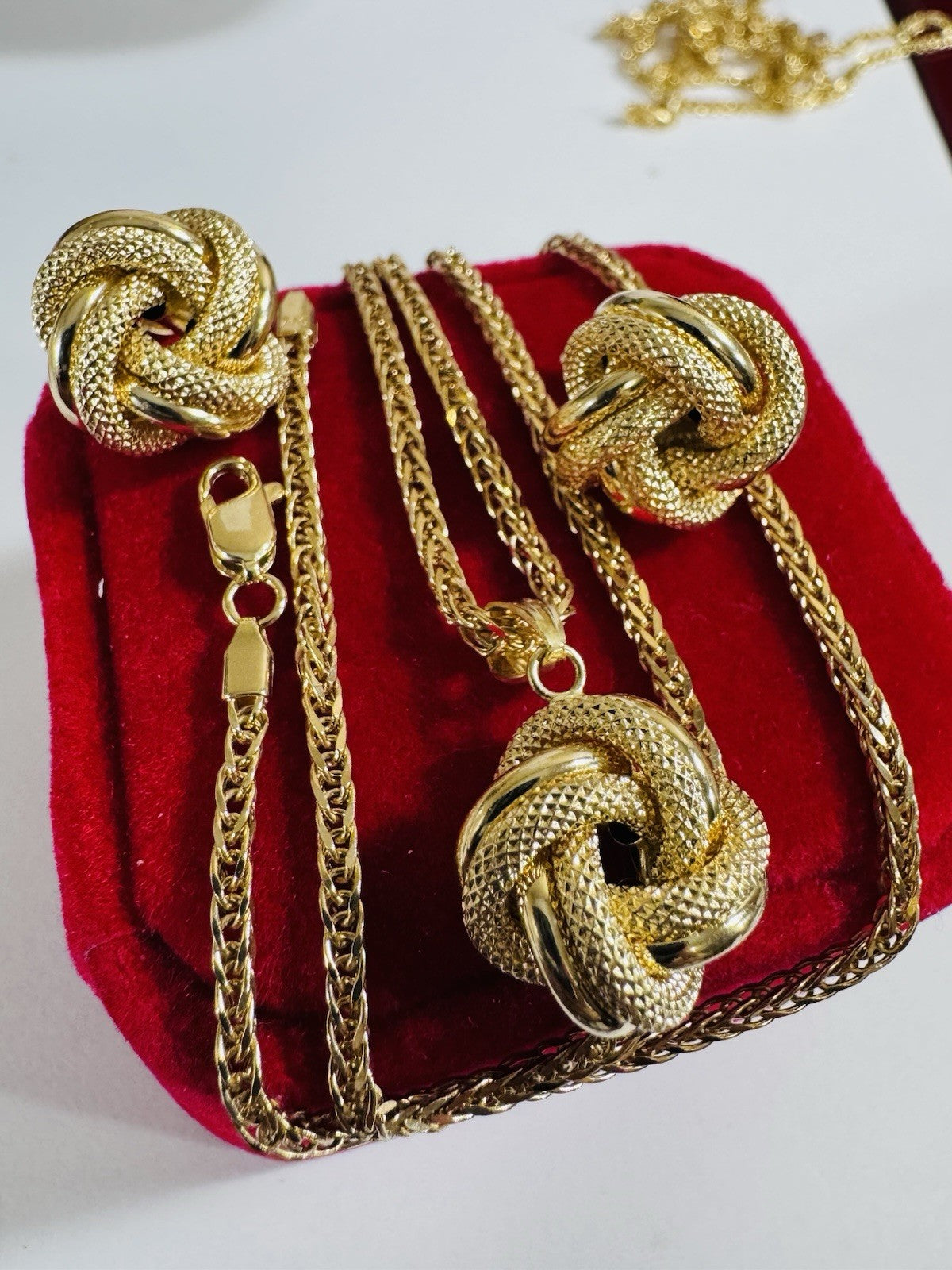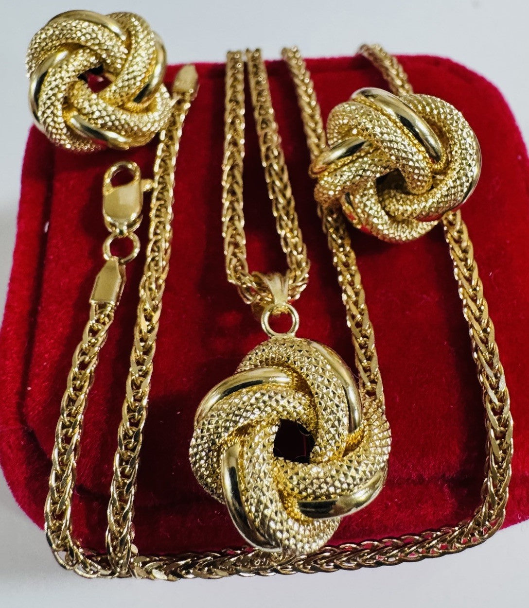 18K 750 Fine Genuine Gold Knot Love Earring & Necklace 15.8/16” Long 8g 2mm