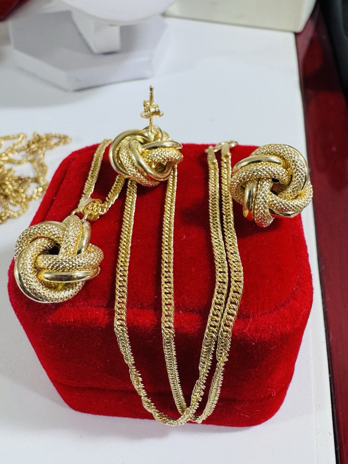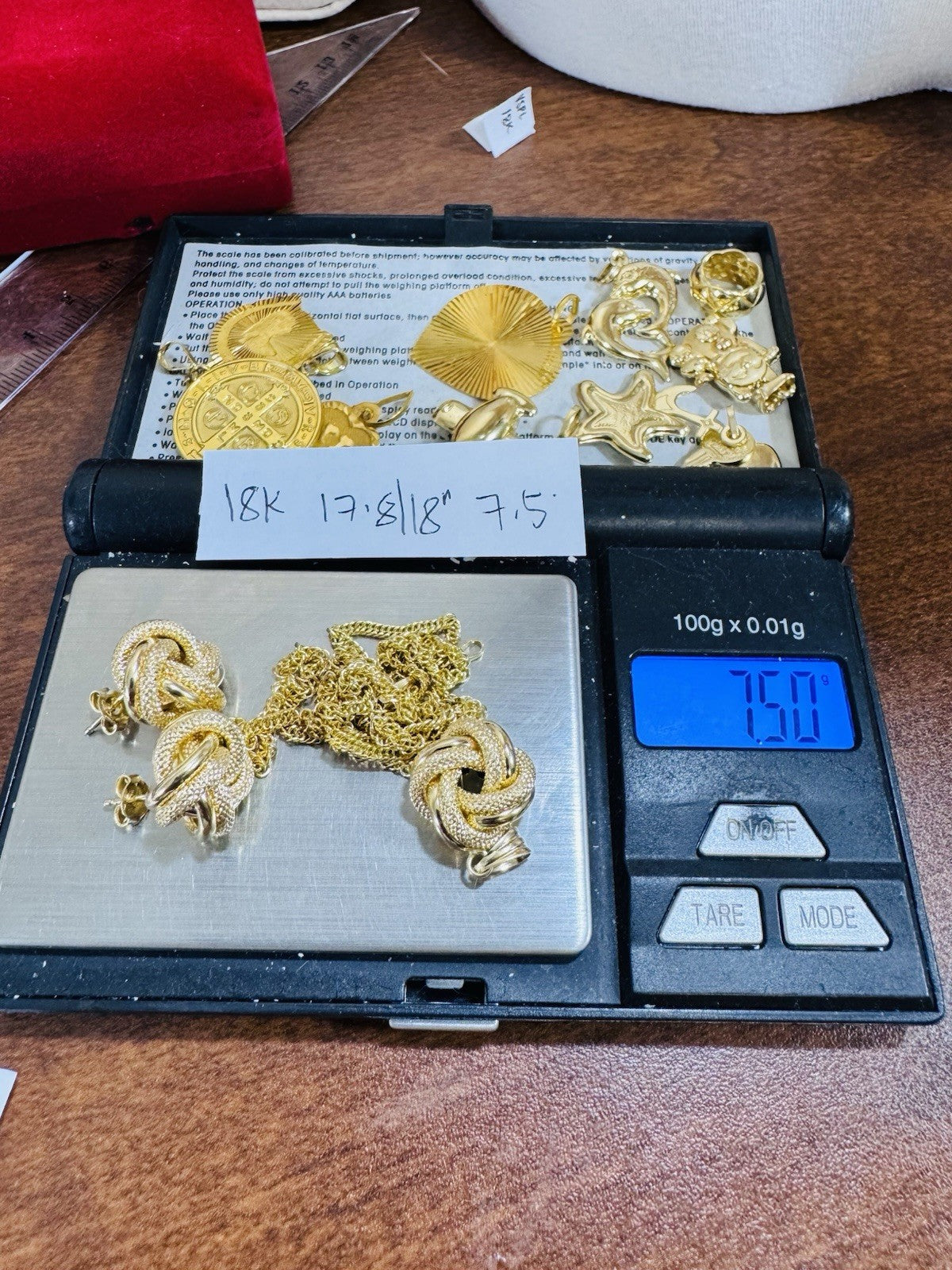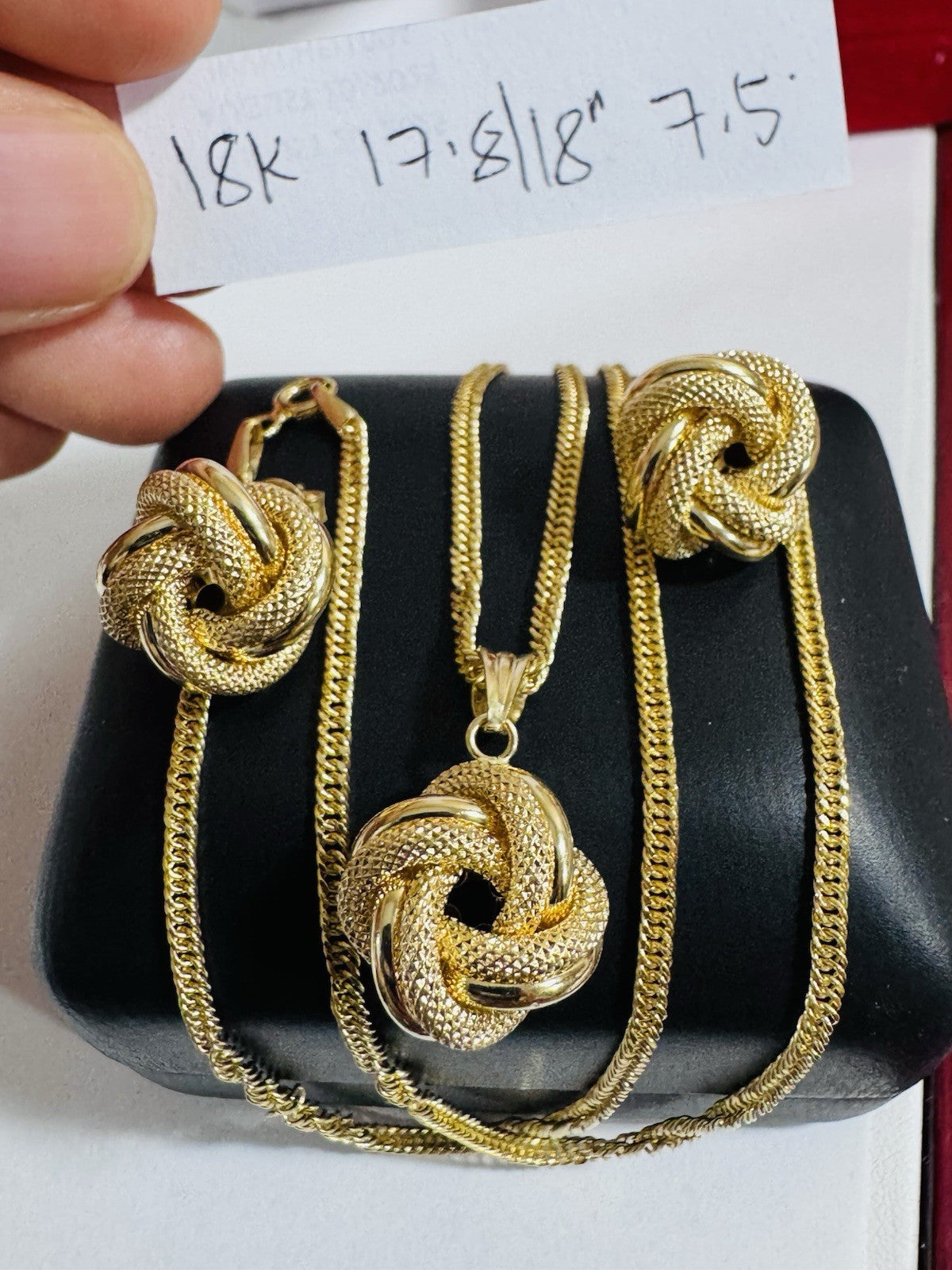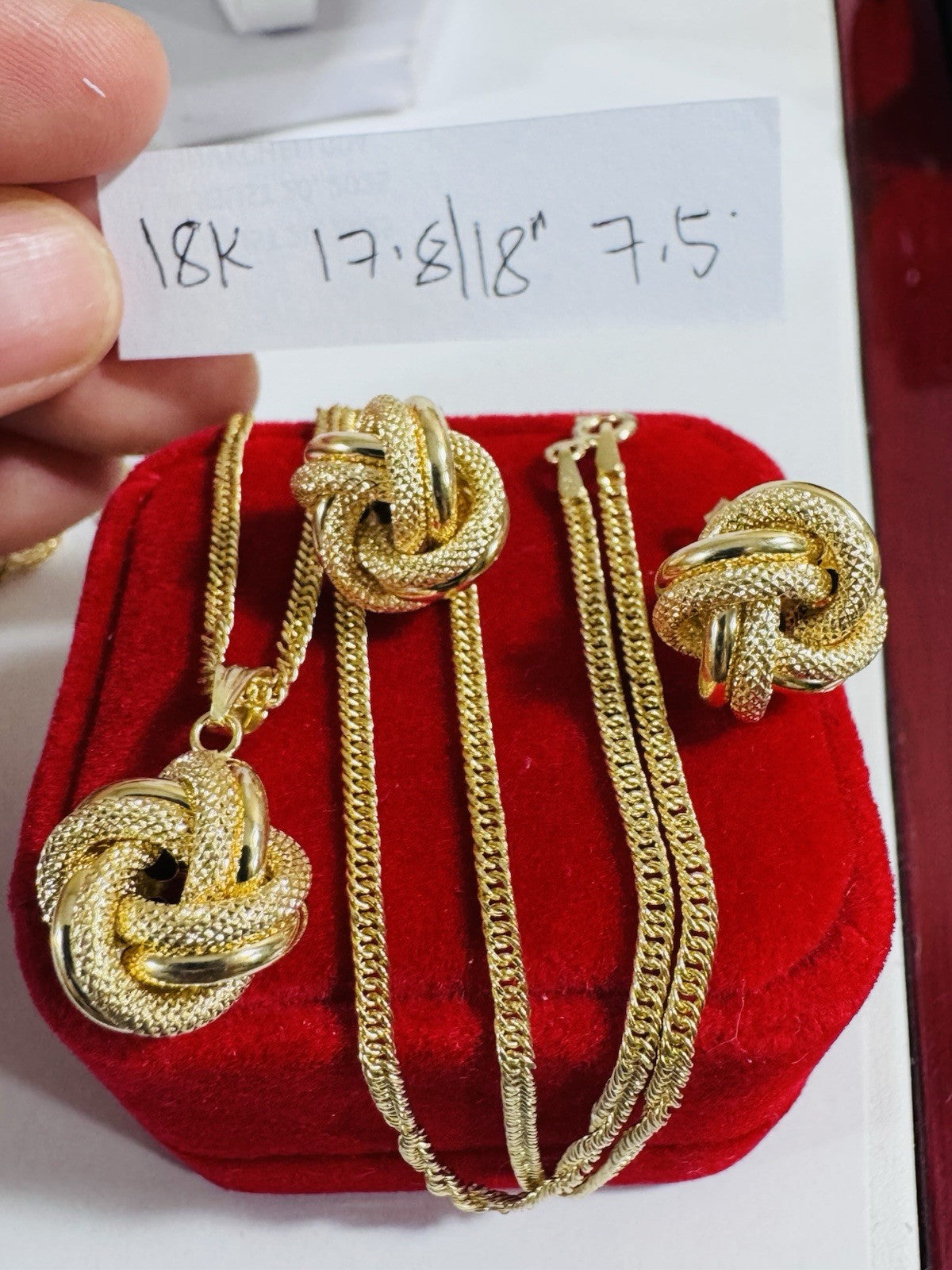18K 750 Fine Genuine Gold Knot Love Earring & Necklace 17.8/18” Long 7.5g 2.2mm